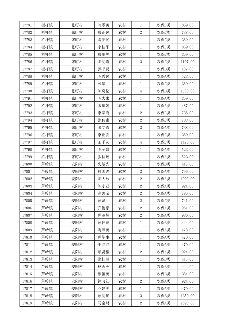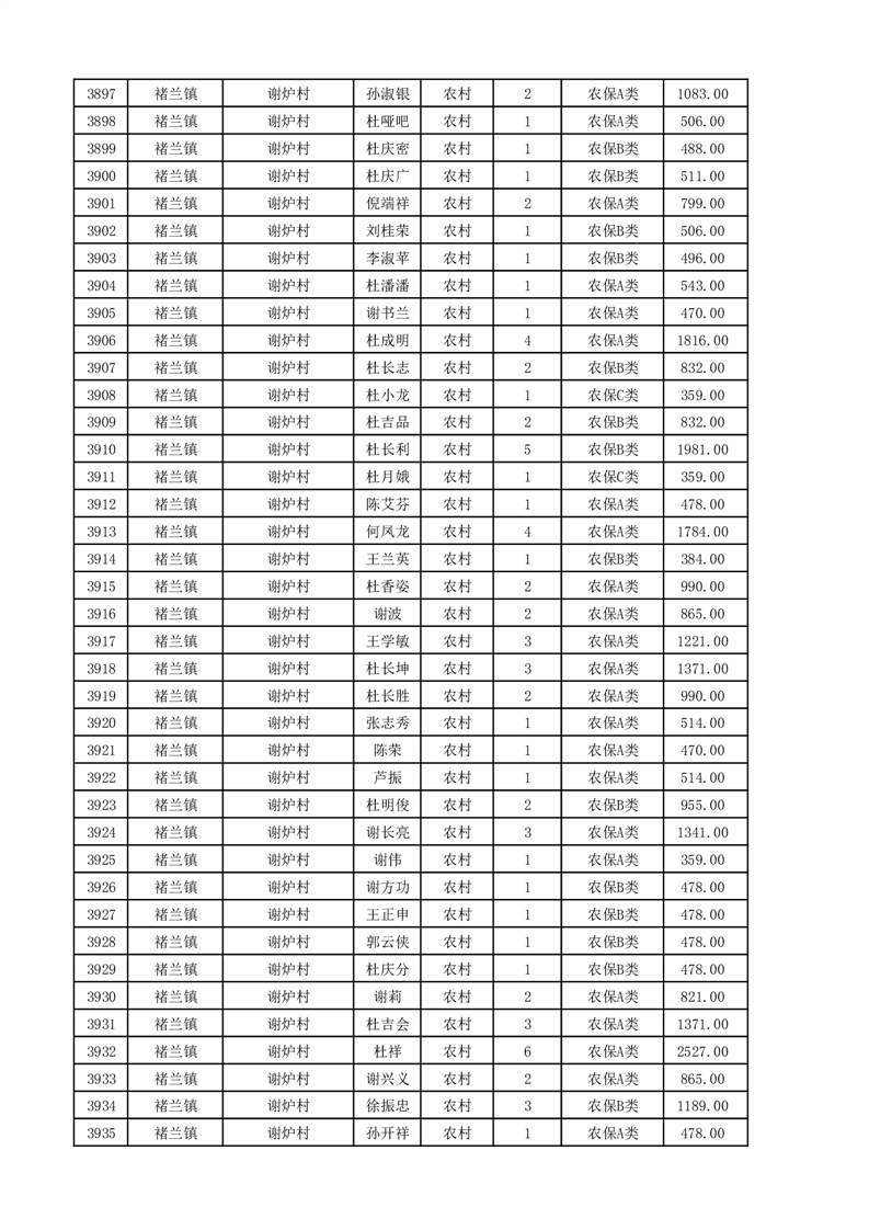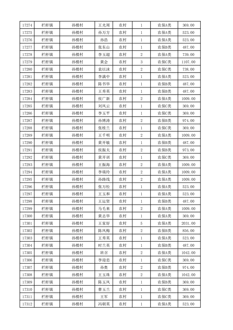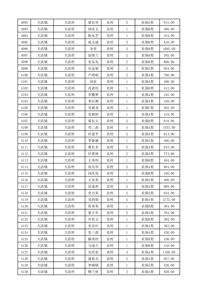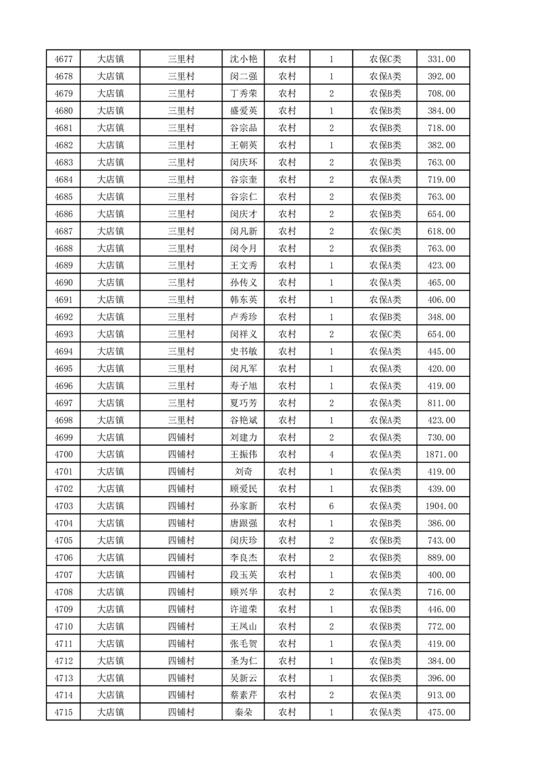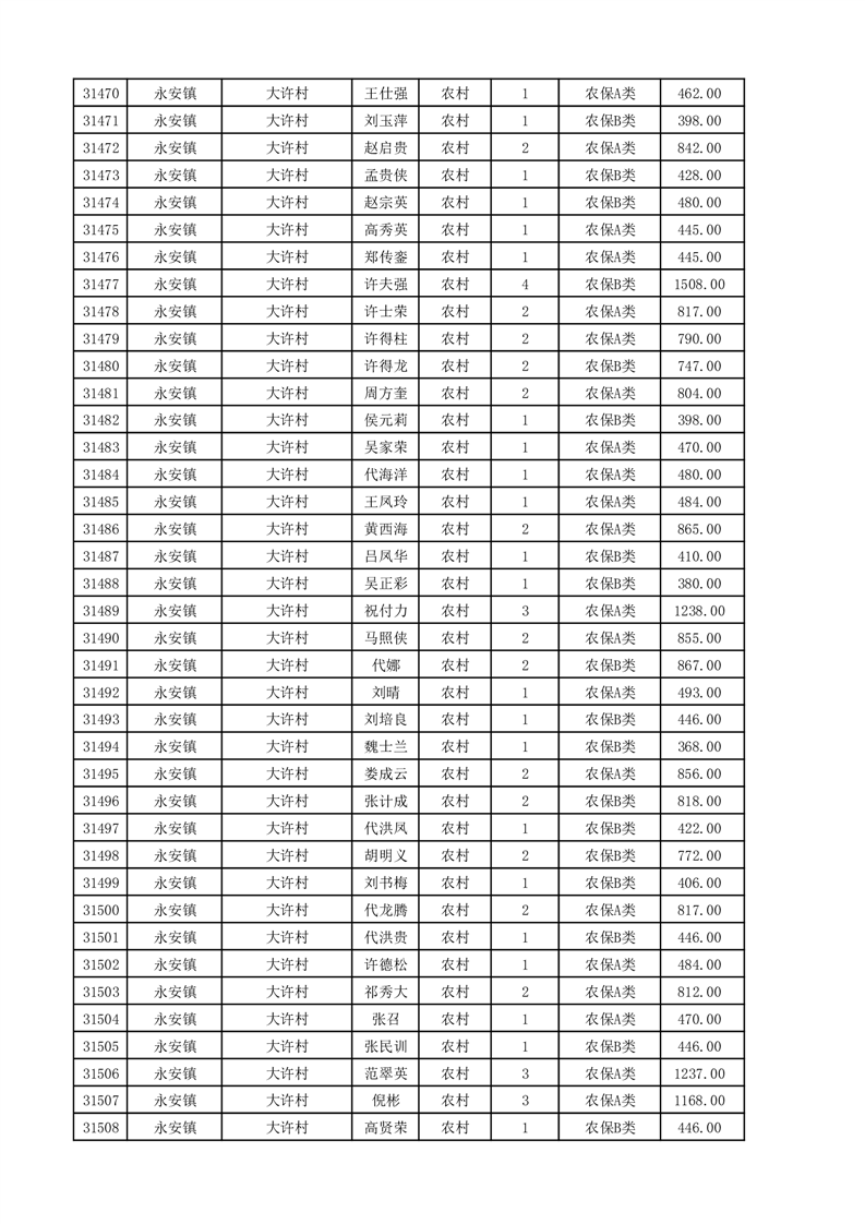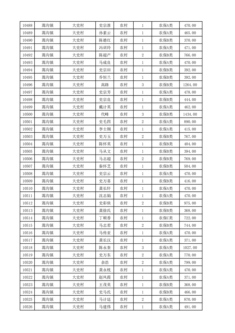 埇桥区2025年11月份农村低保花名册