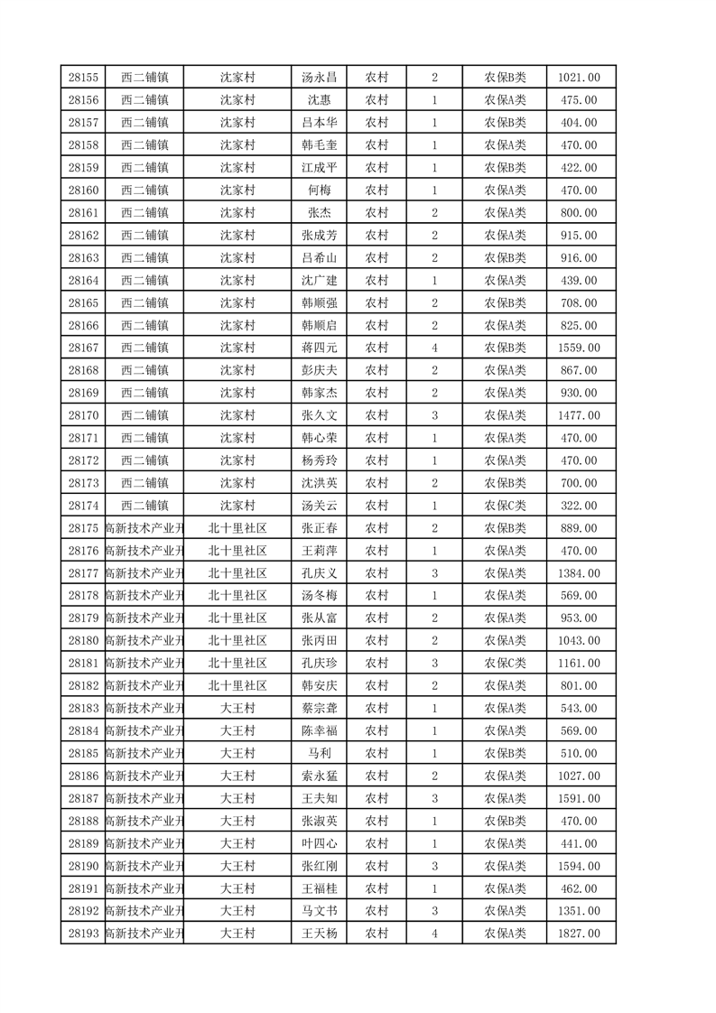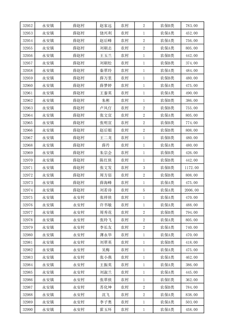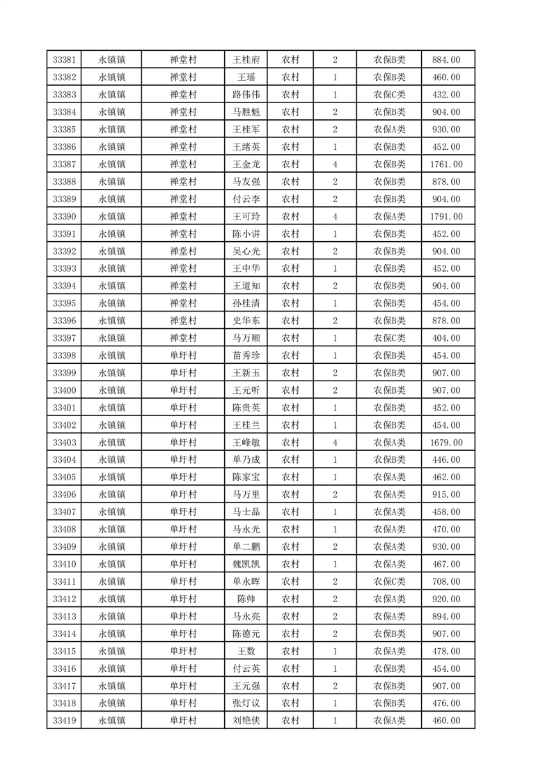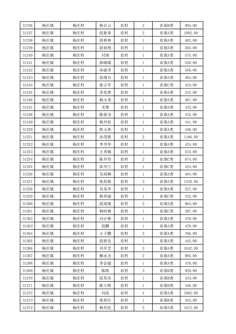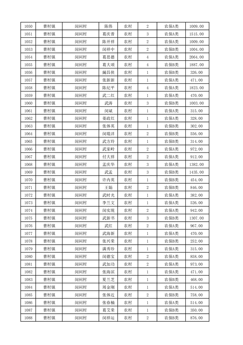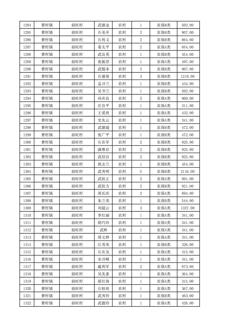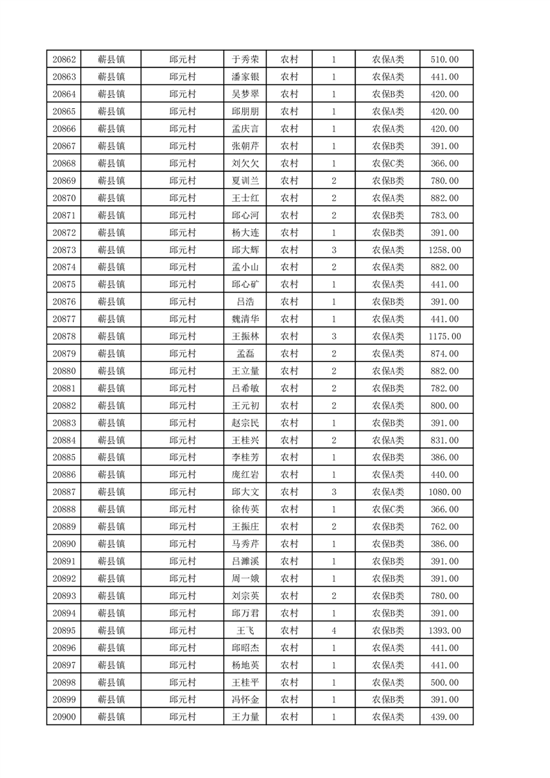埇桥区2025年11月份农村低保花名册