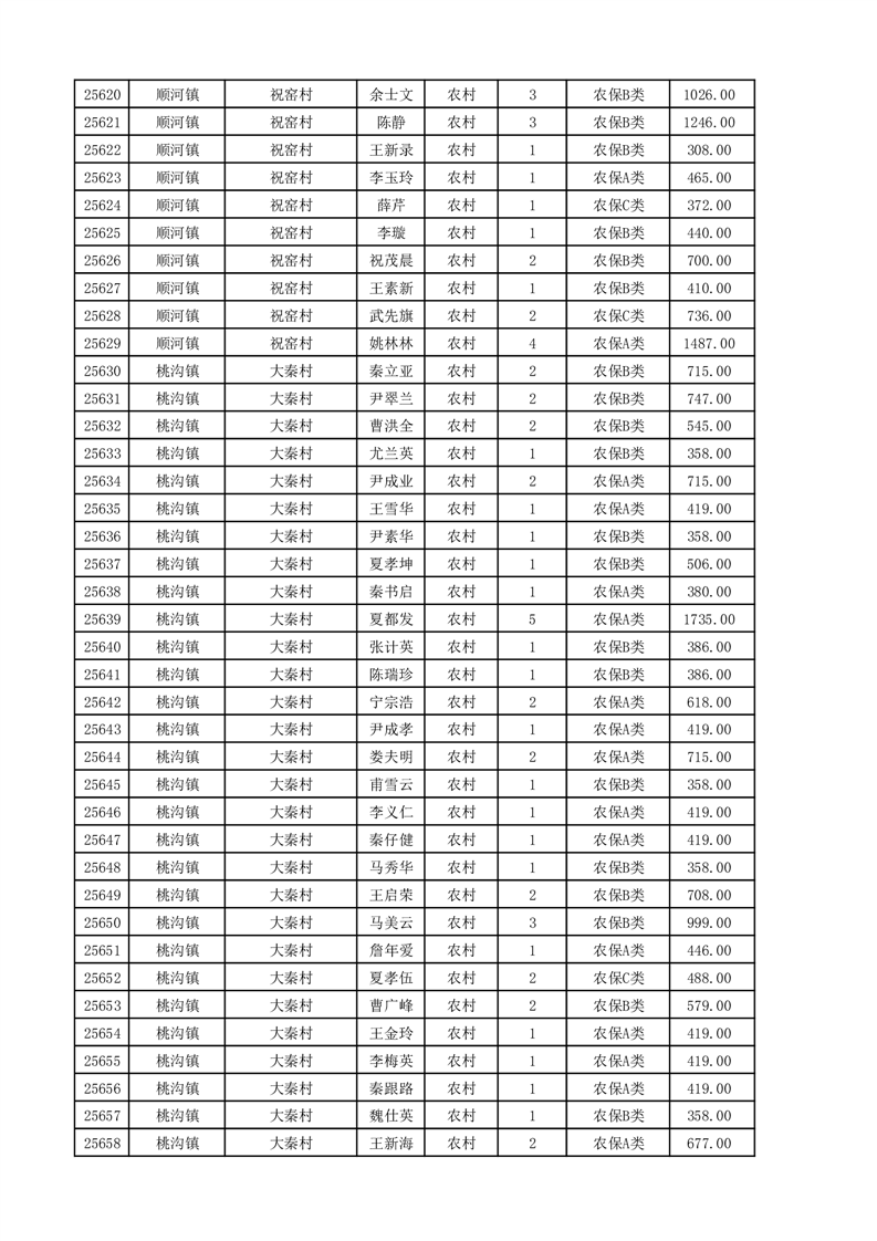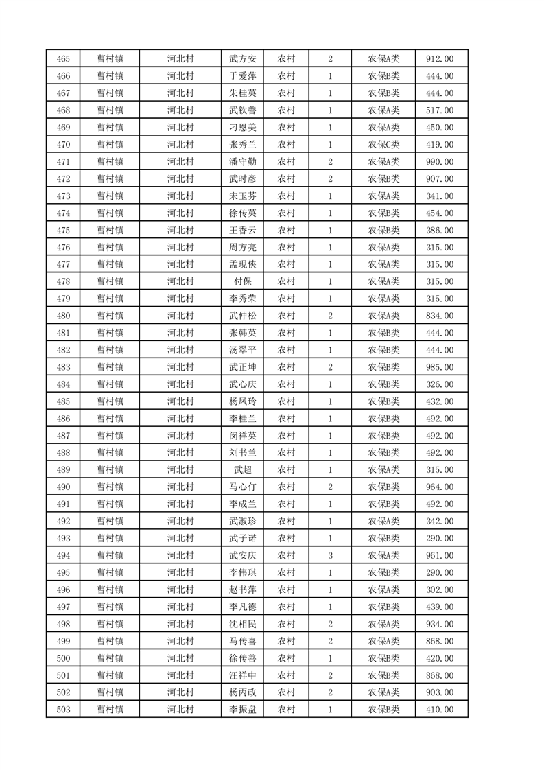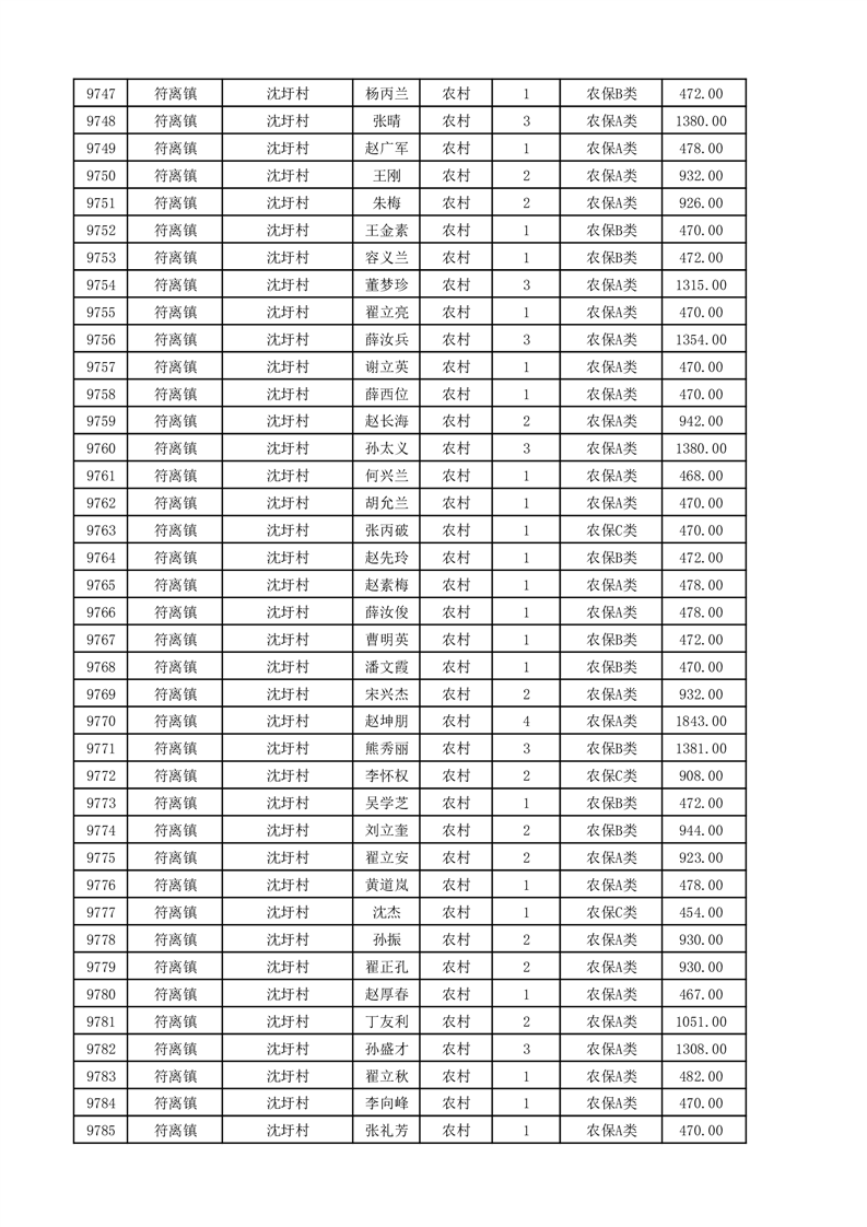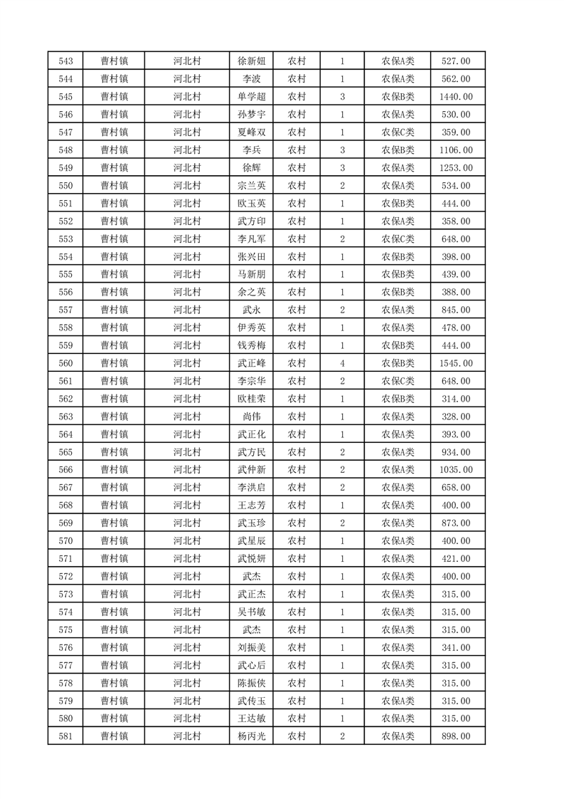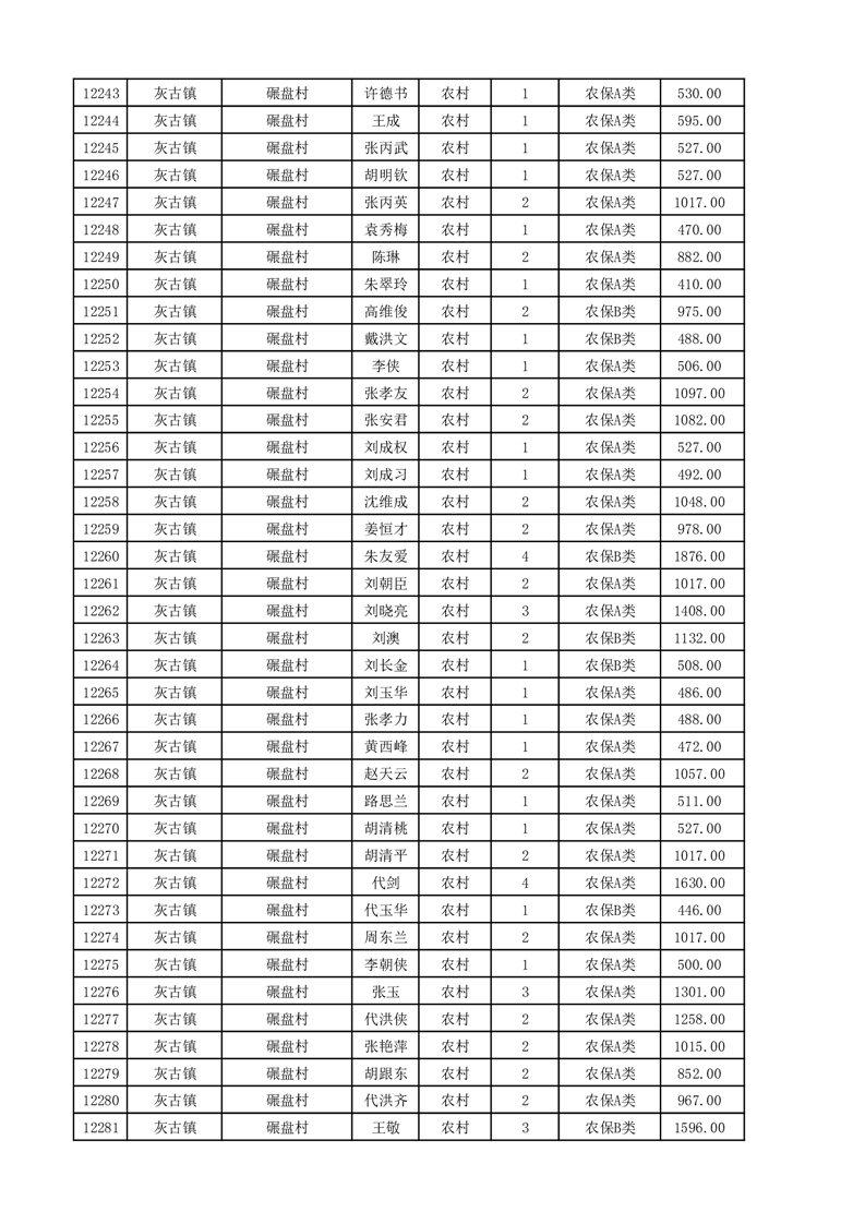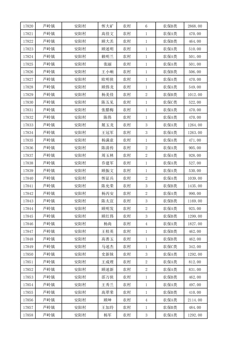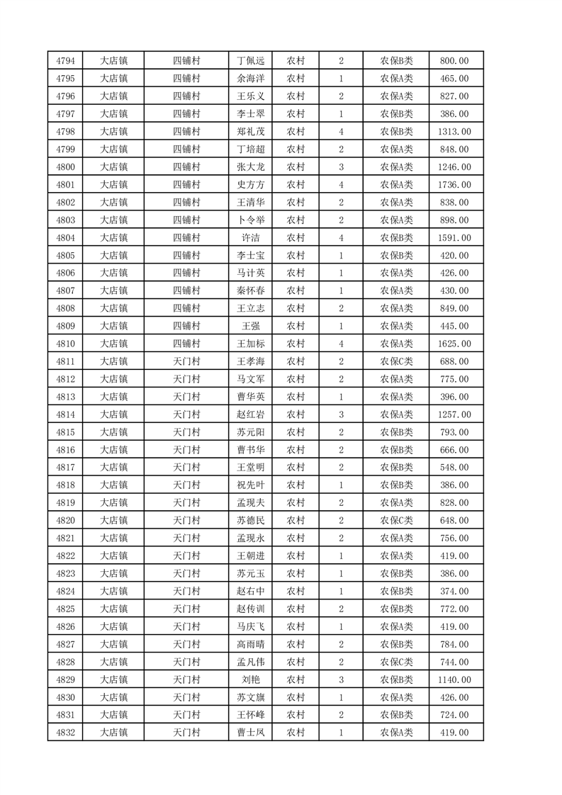埇桥区2025年11月份农村低保花名册