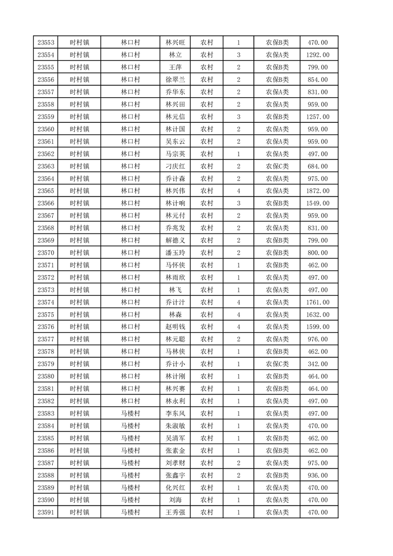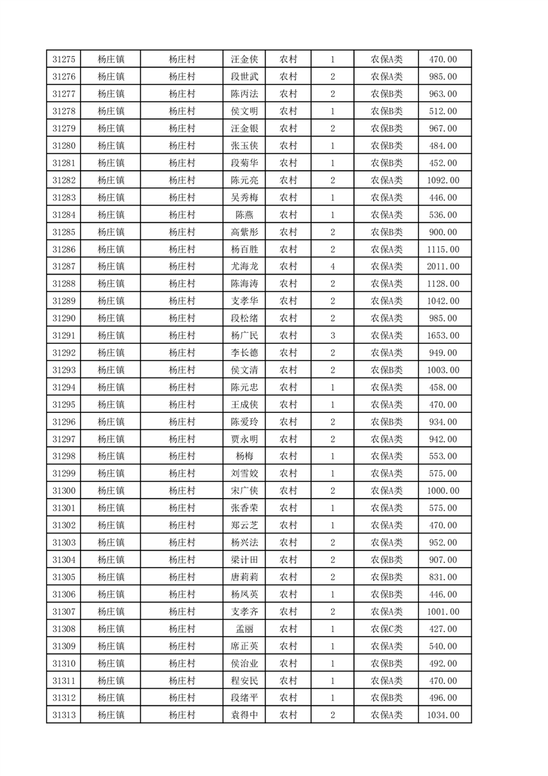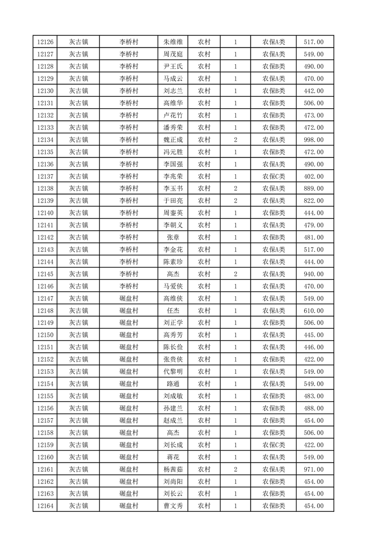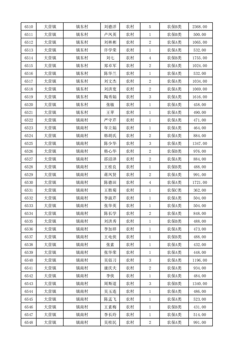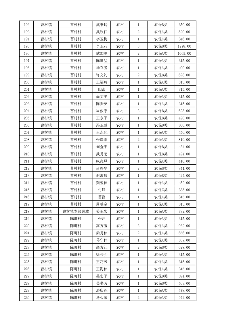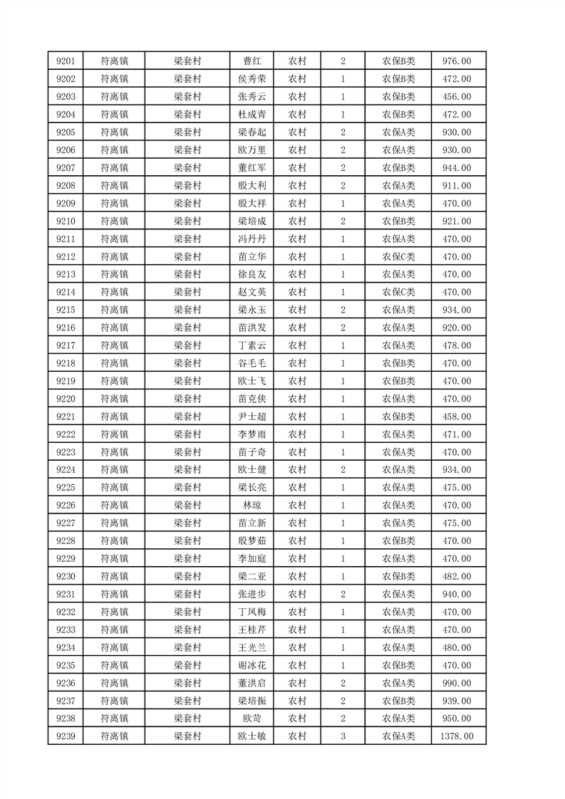 埇桥区2025年11月份农村低保花名册