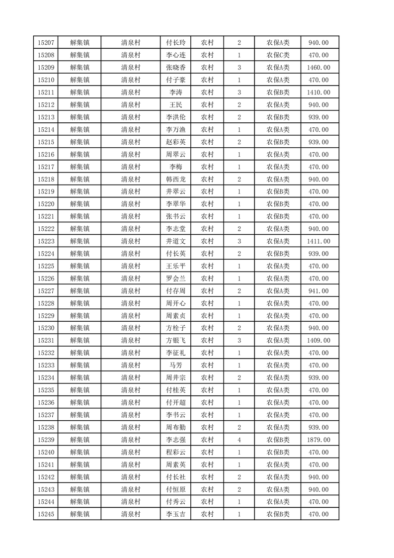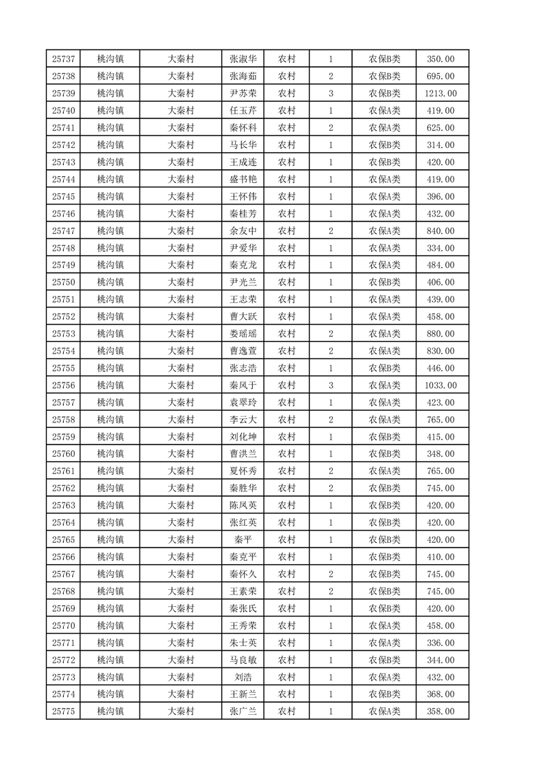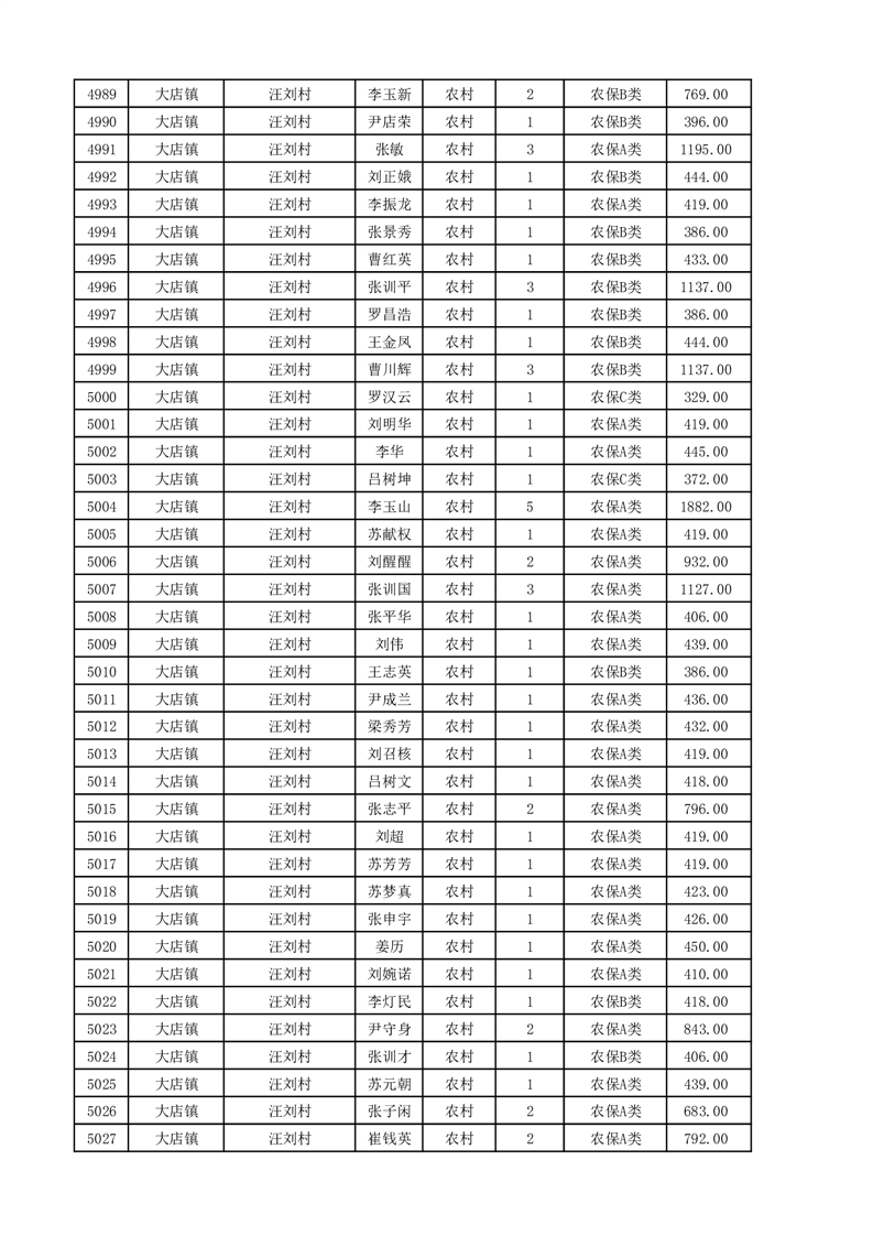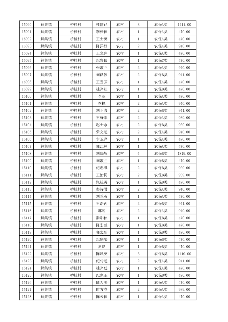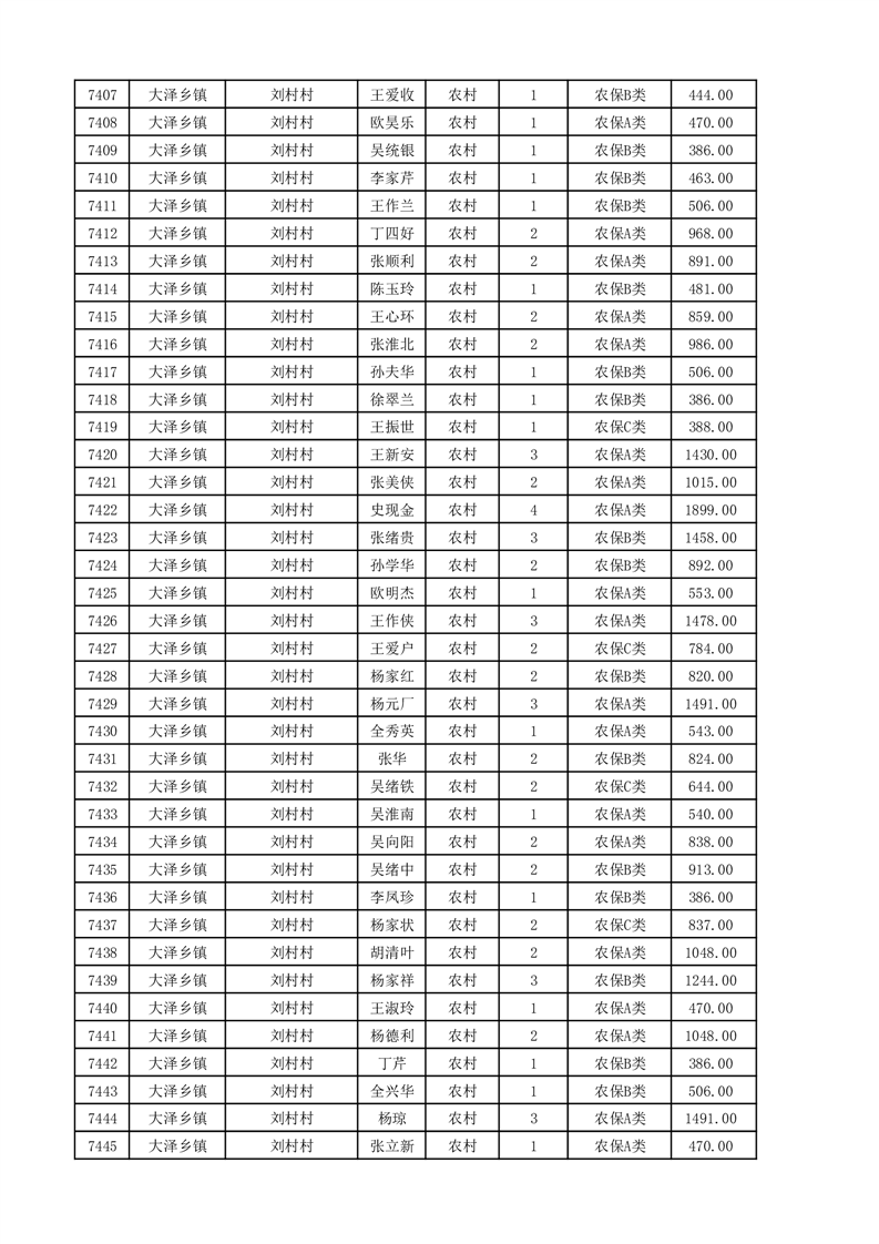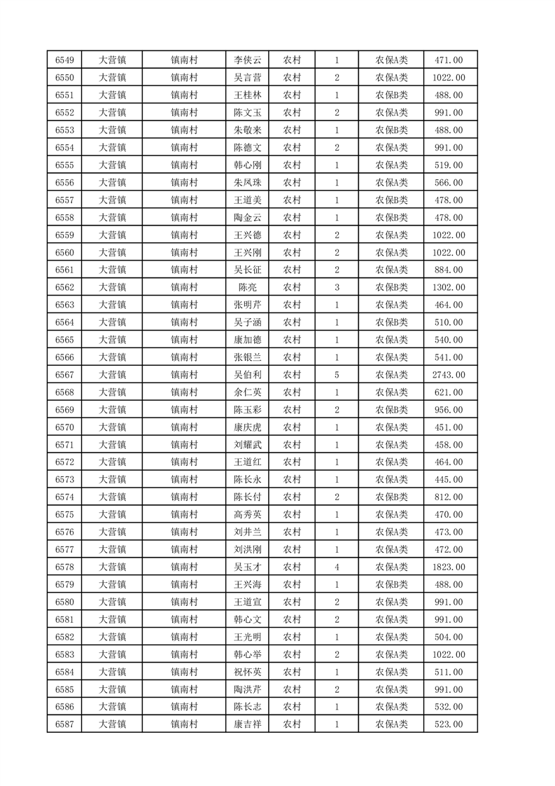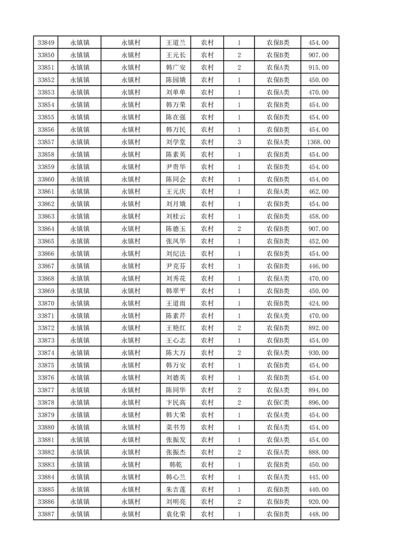 埇桥区2025年11月份农村低保花名册