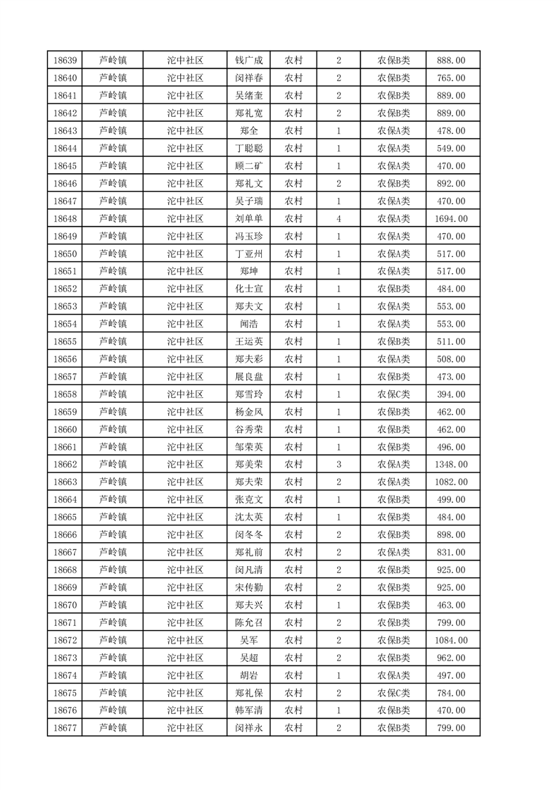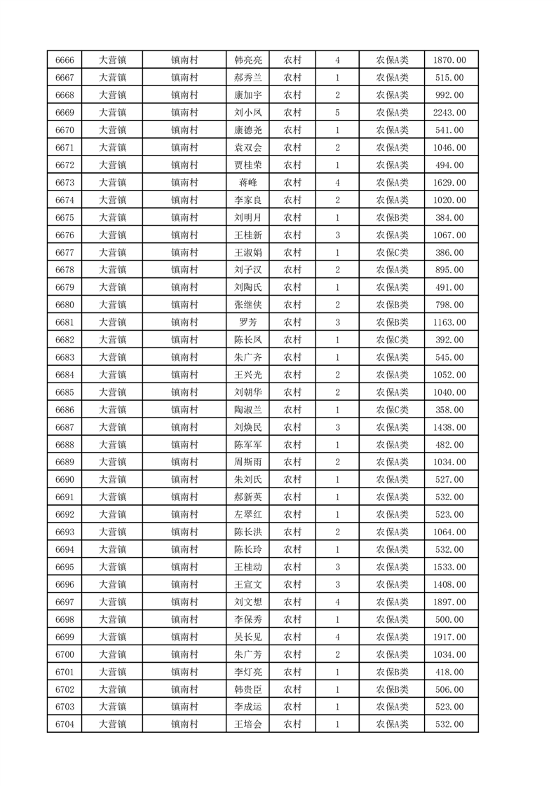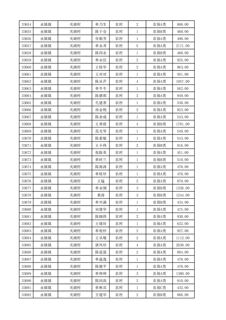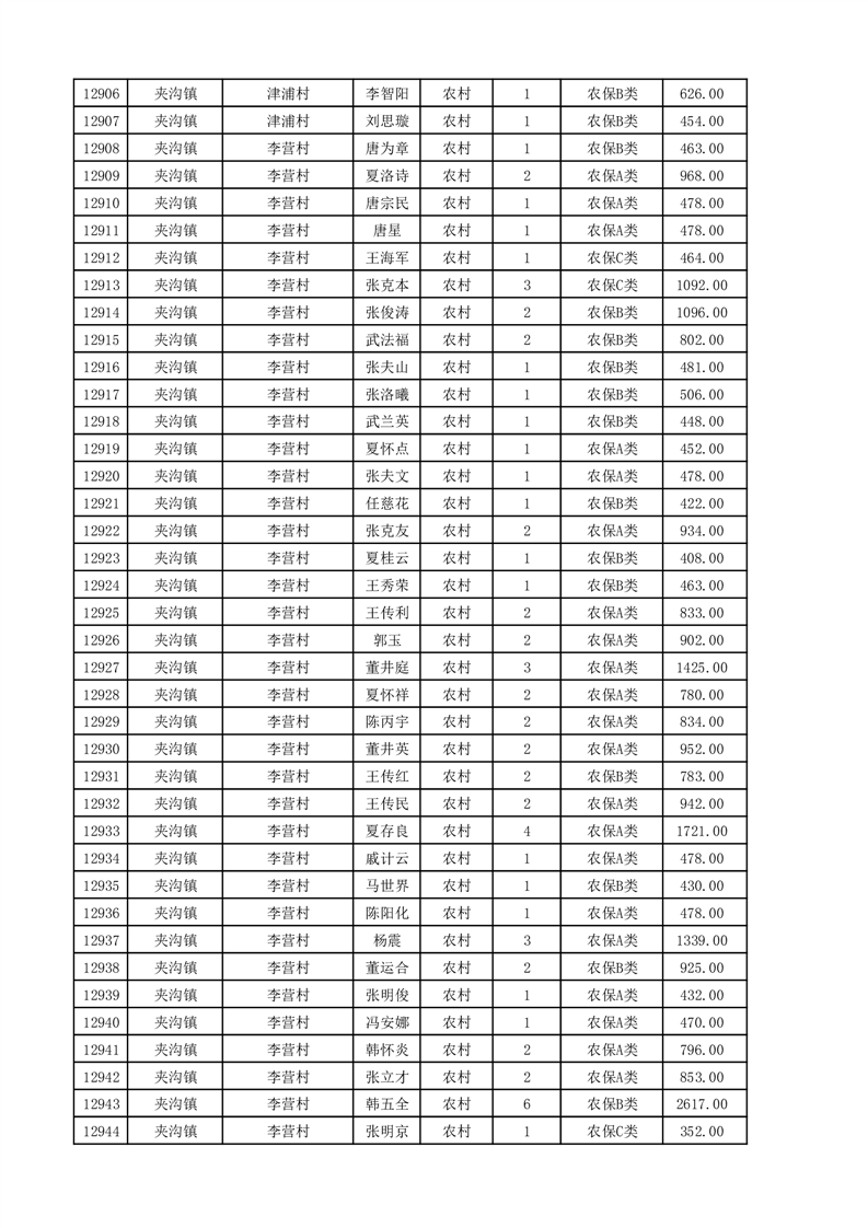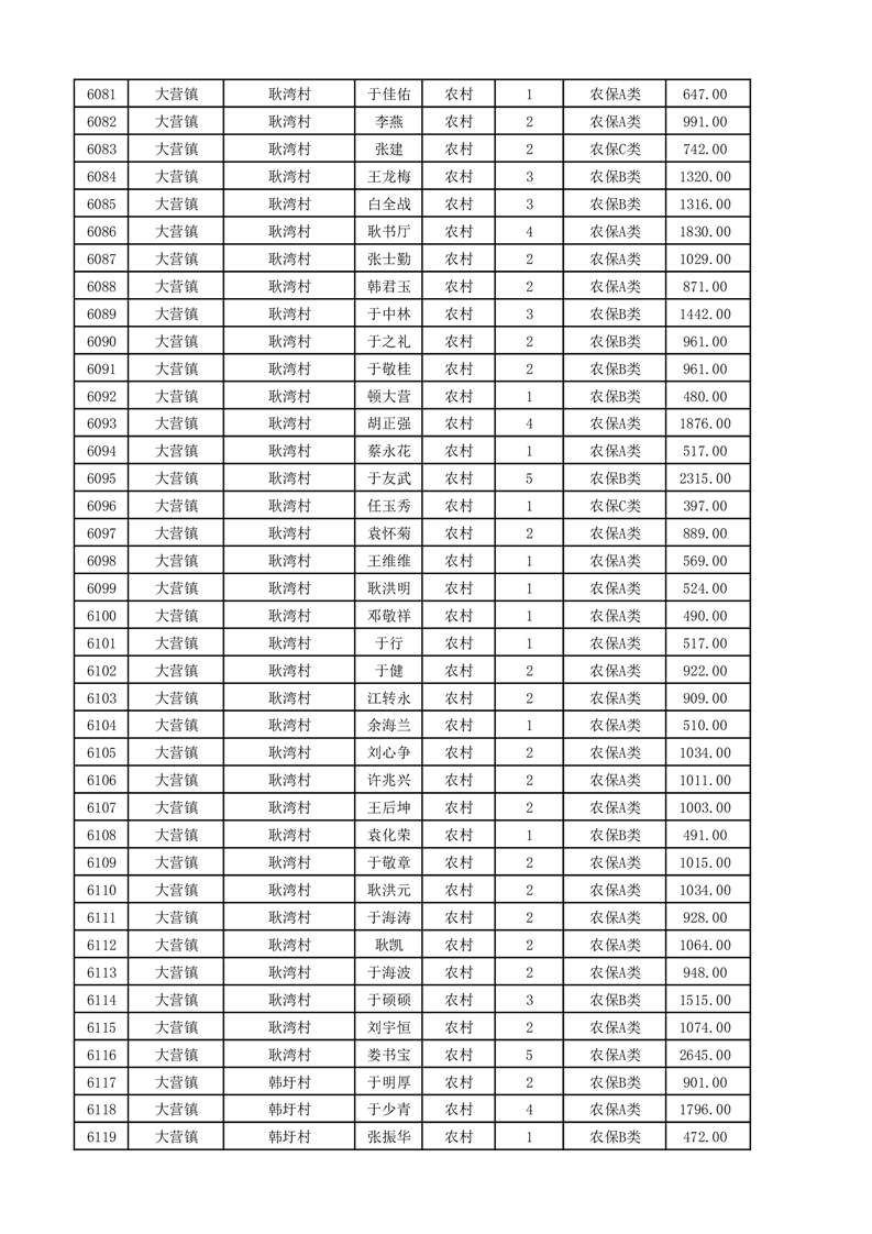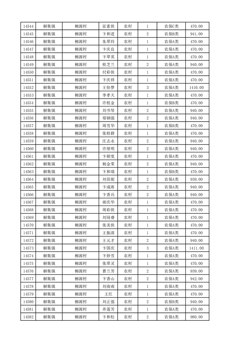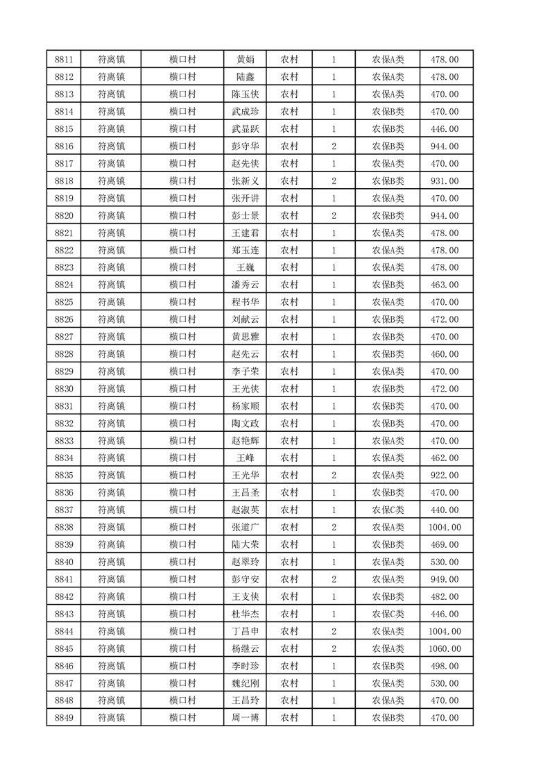 埇桥区2025年11月份农村低保花名册