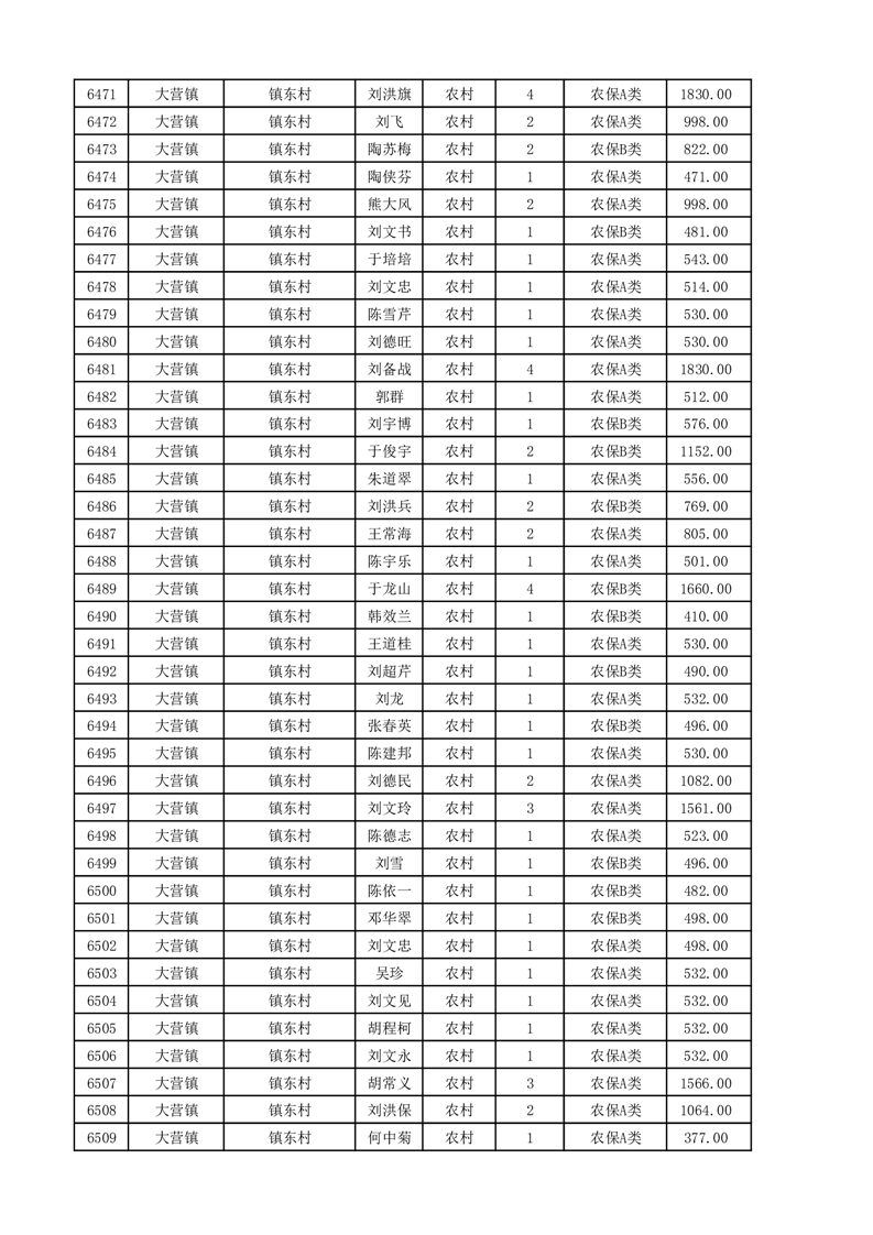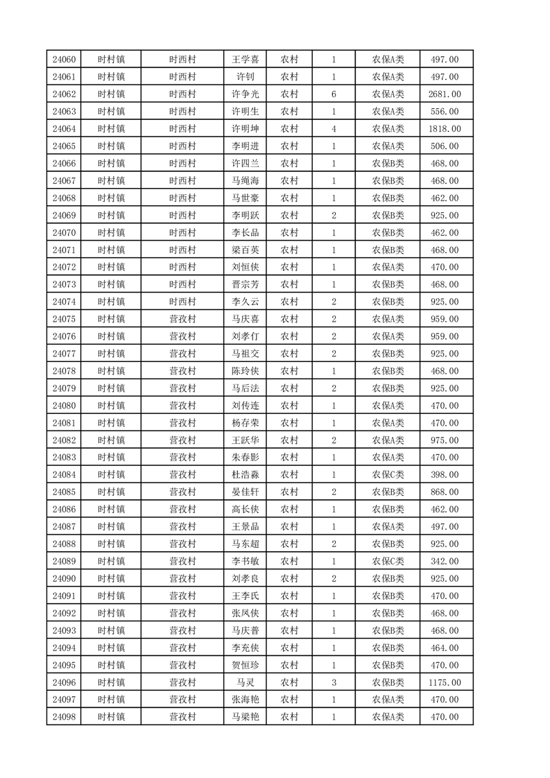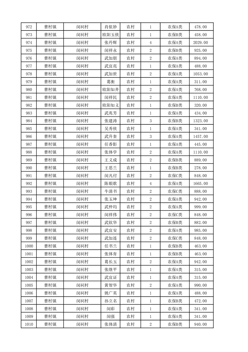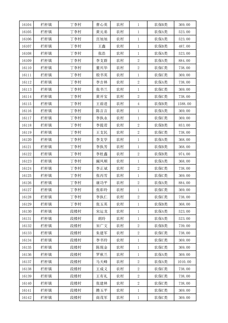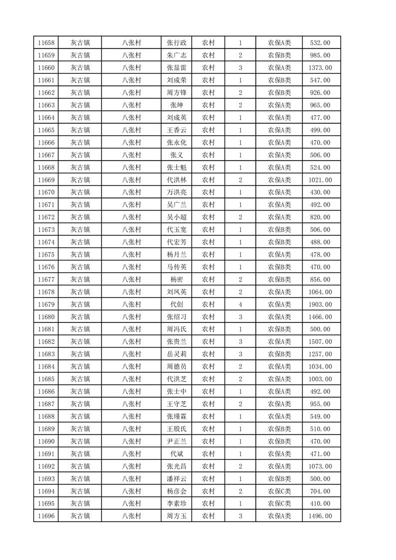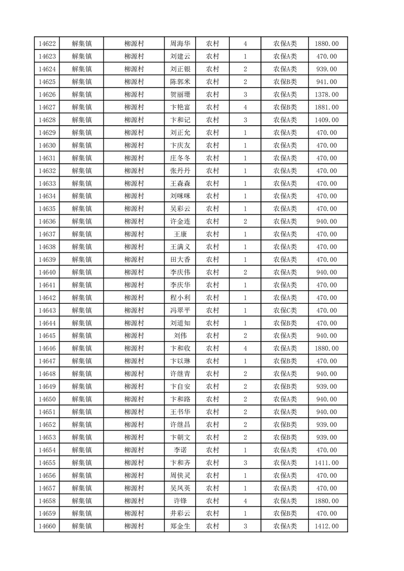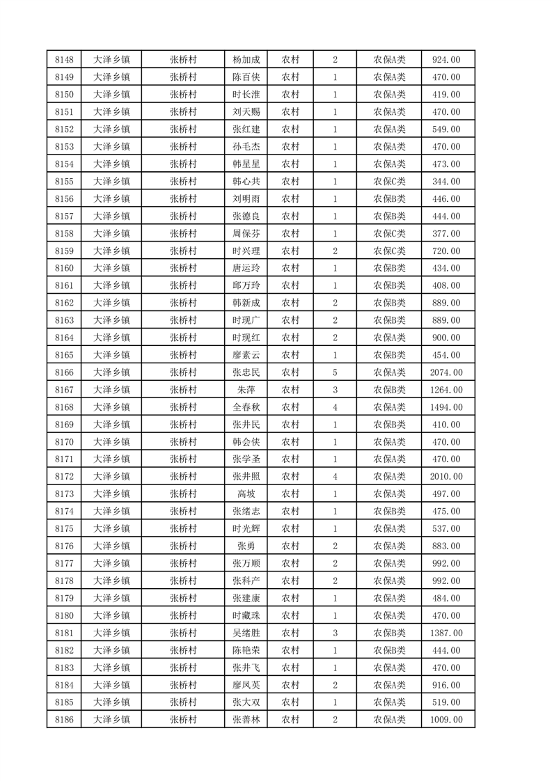 埇桥区2025年11月份农村低保花名册