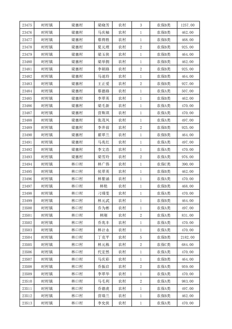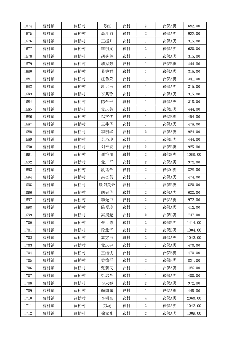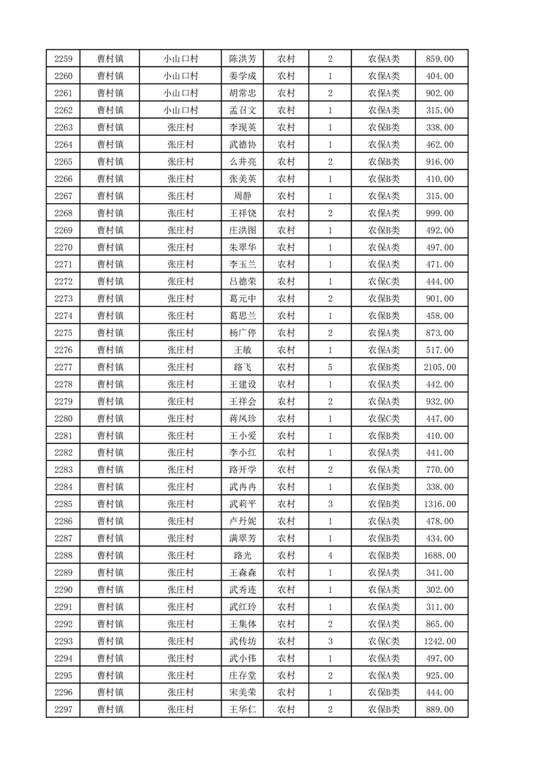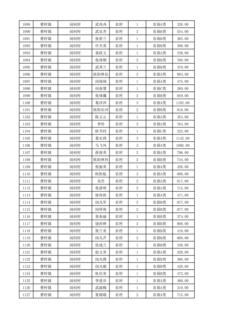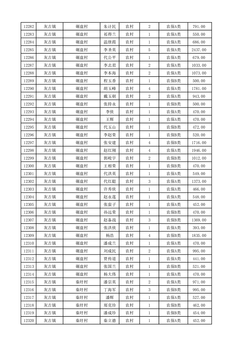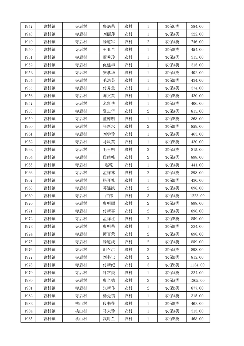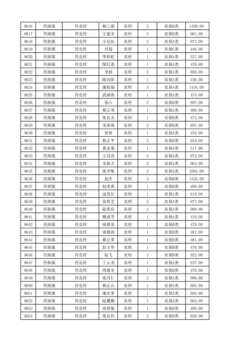 埇桥区2025年11月份农村低保花名册
