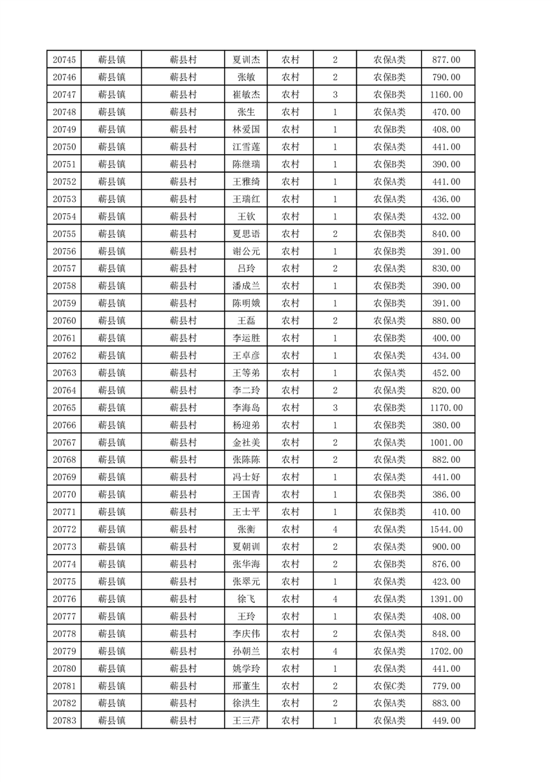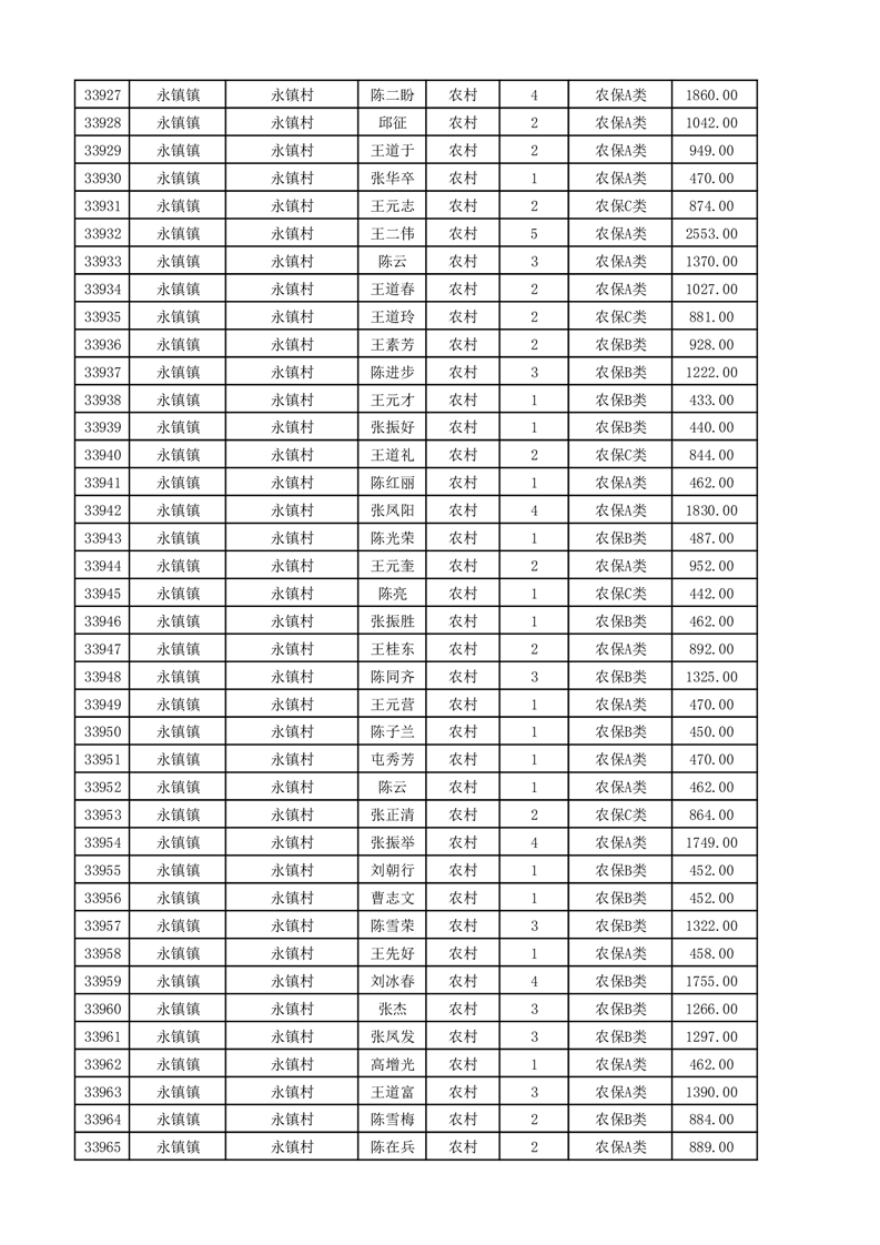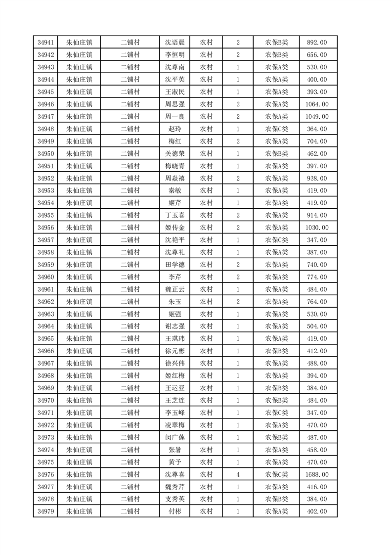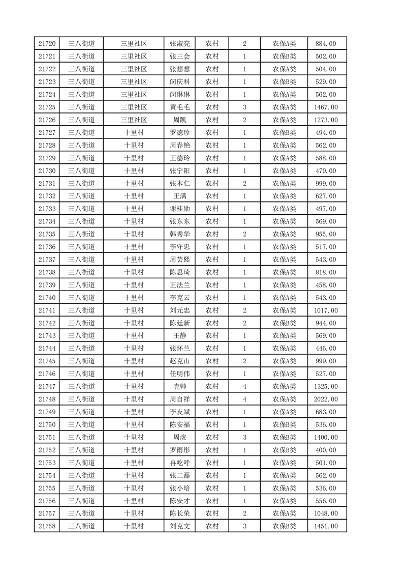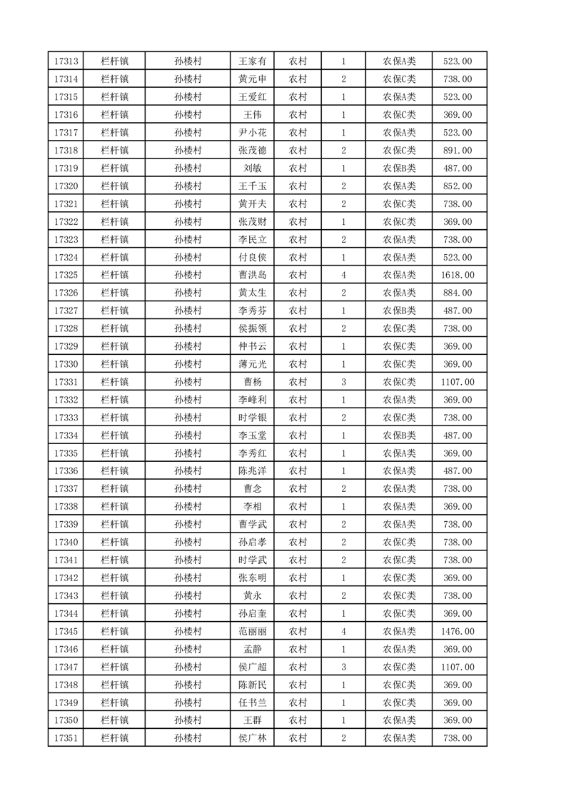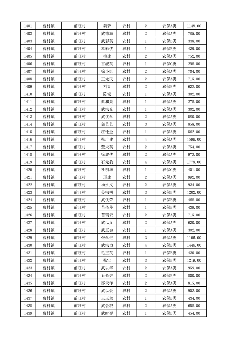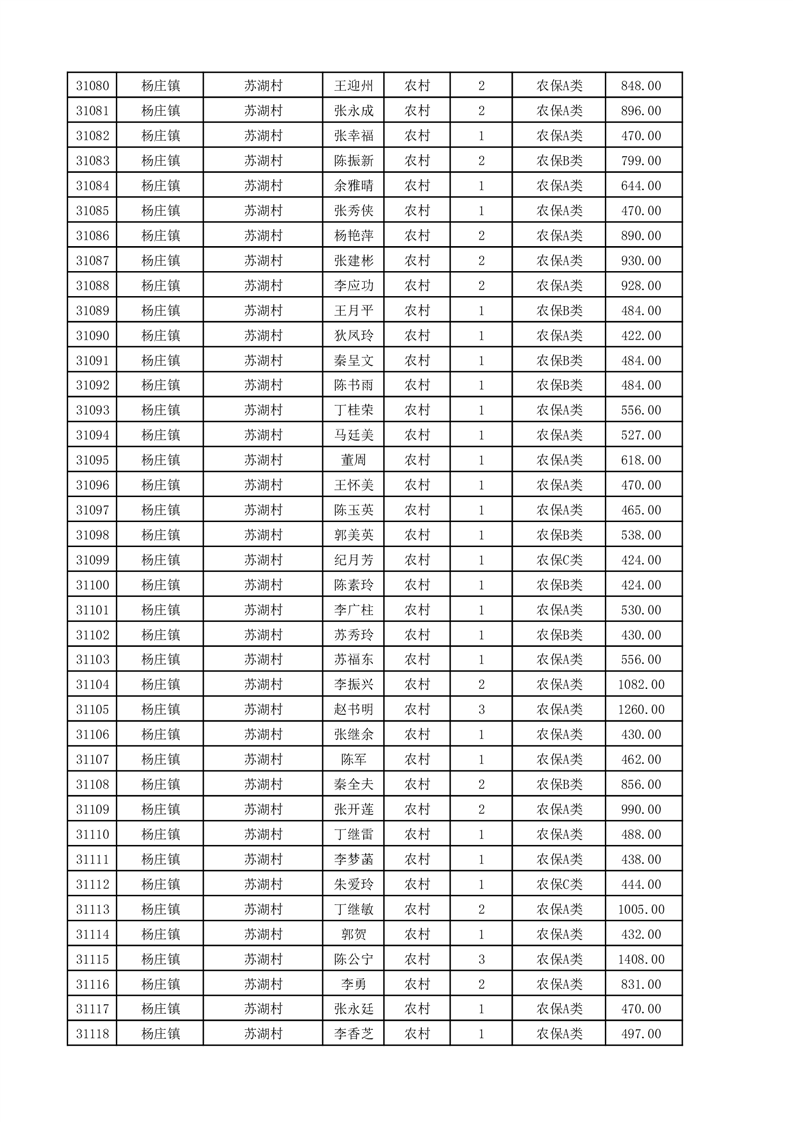 埇桥区2025年11月份农村低保花名册