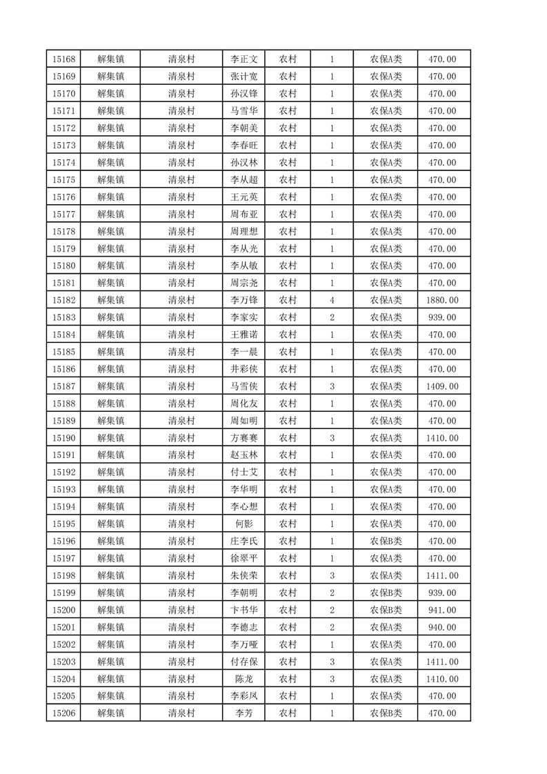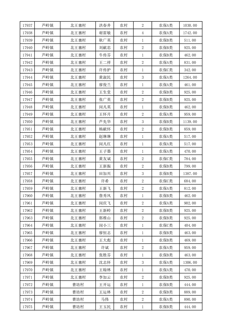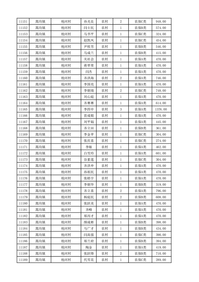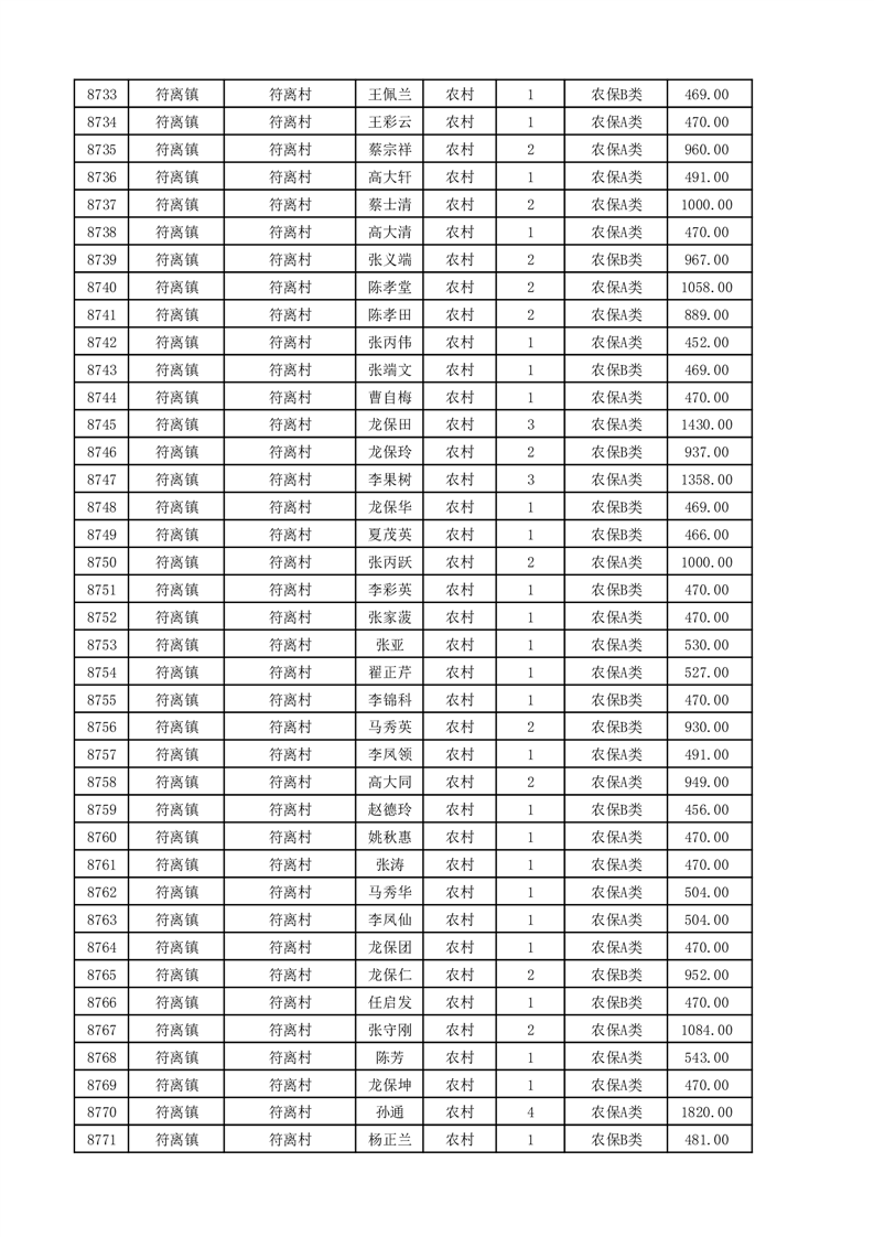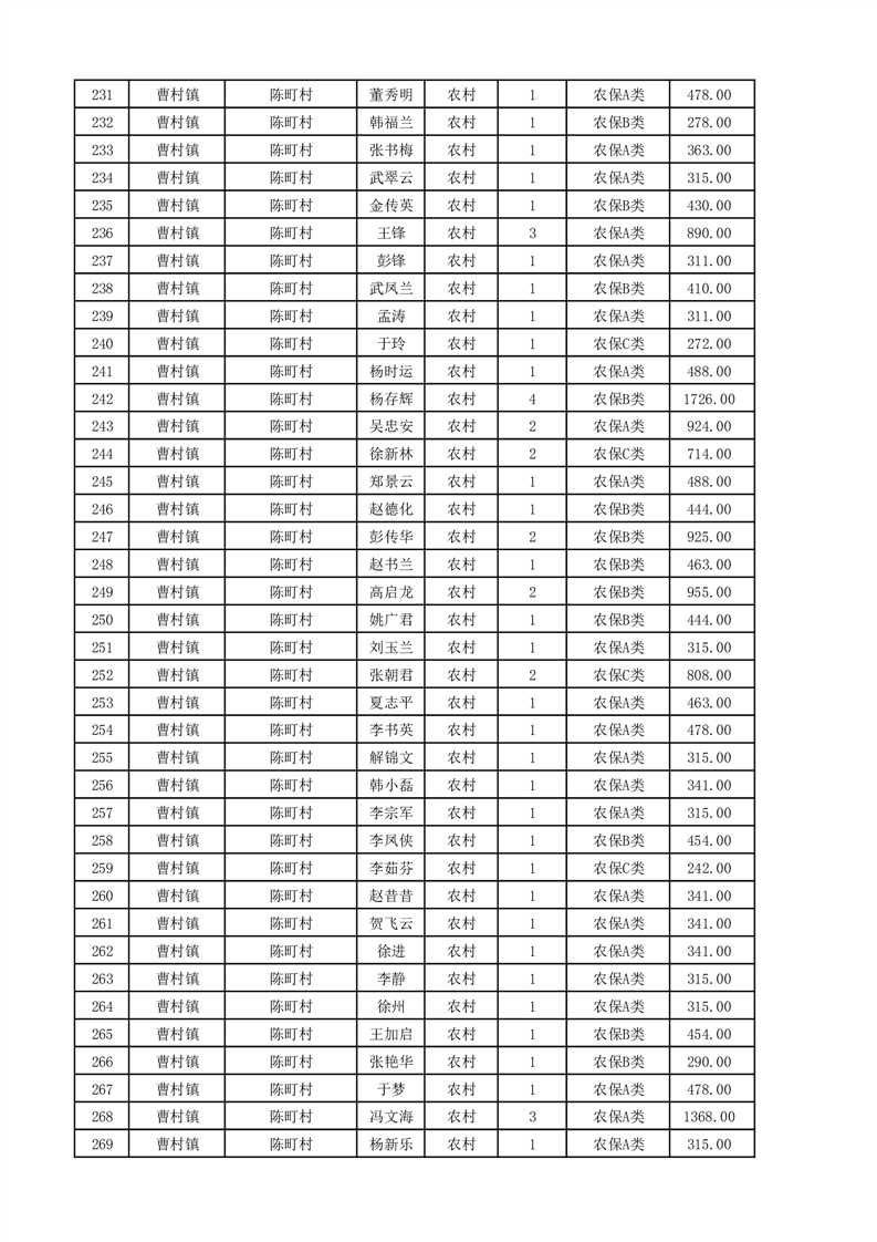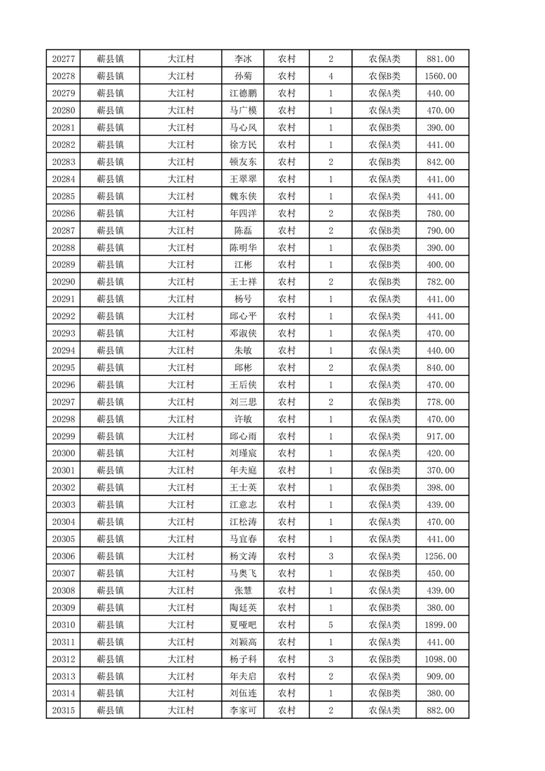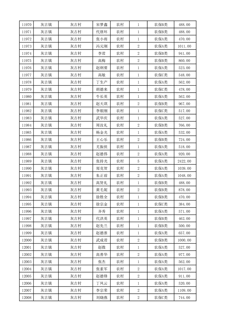 埇桥区2025年11月份农村低保花名册