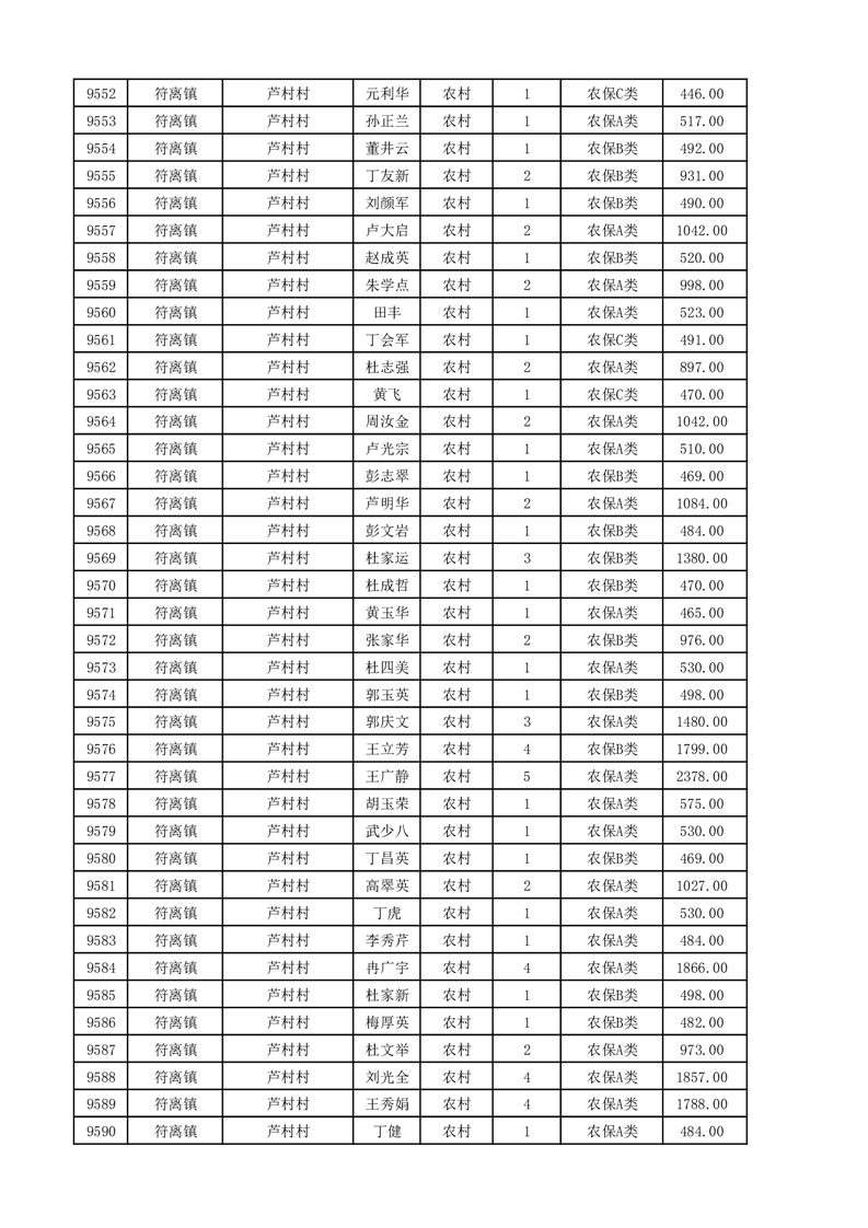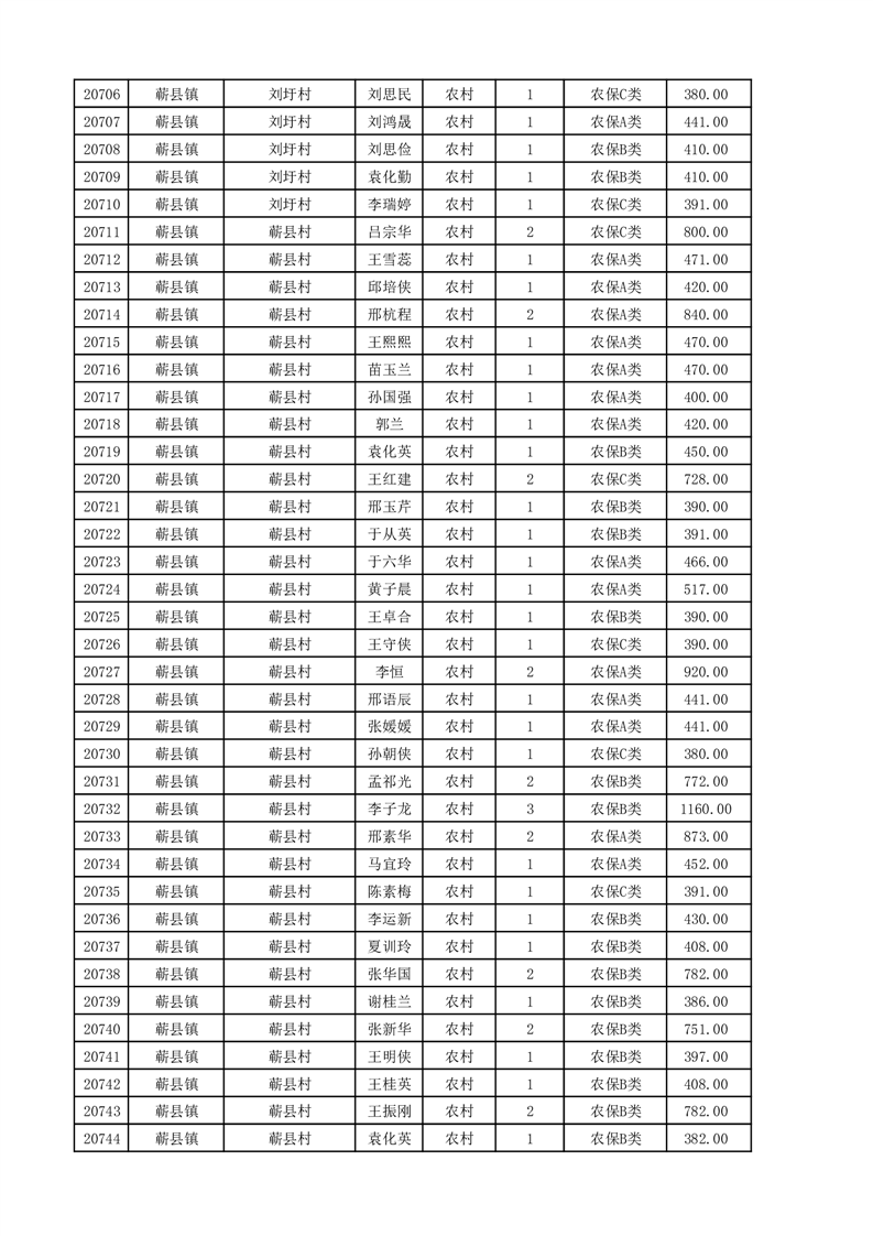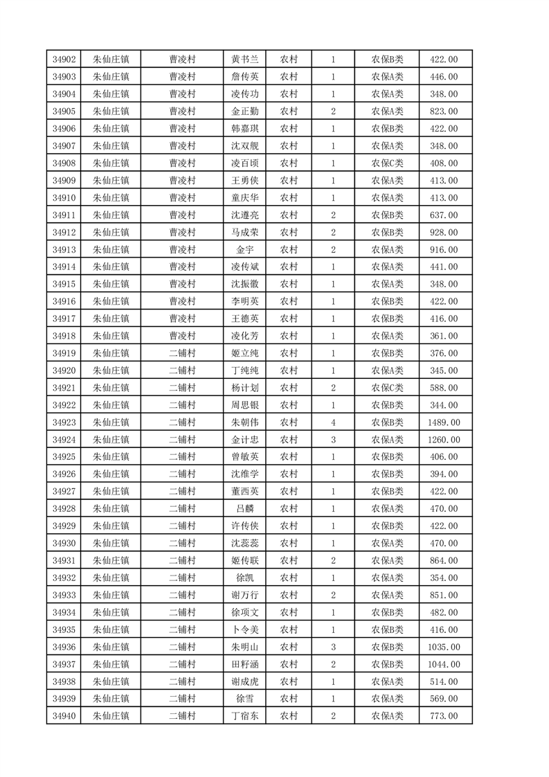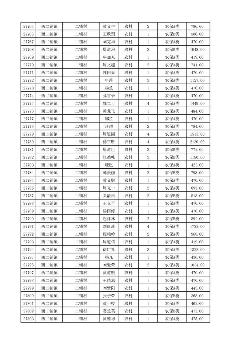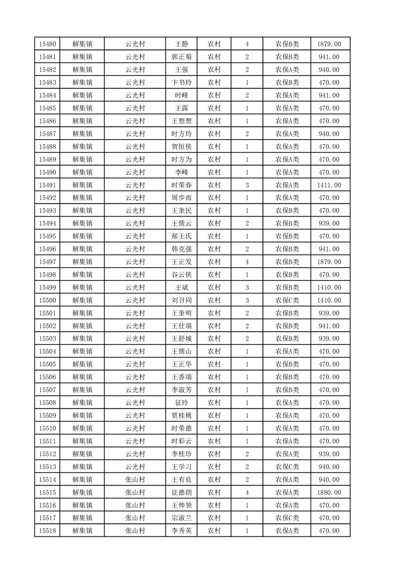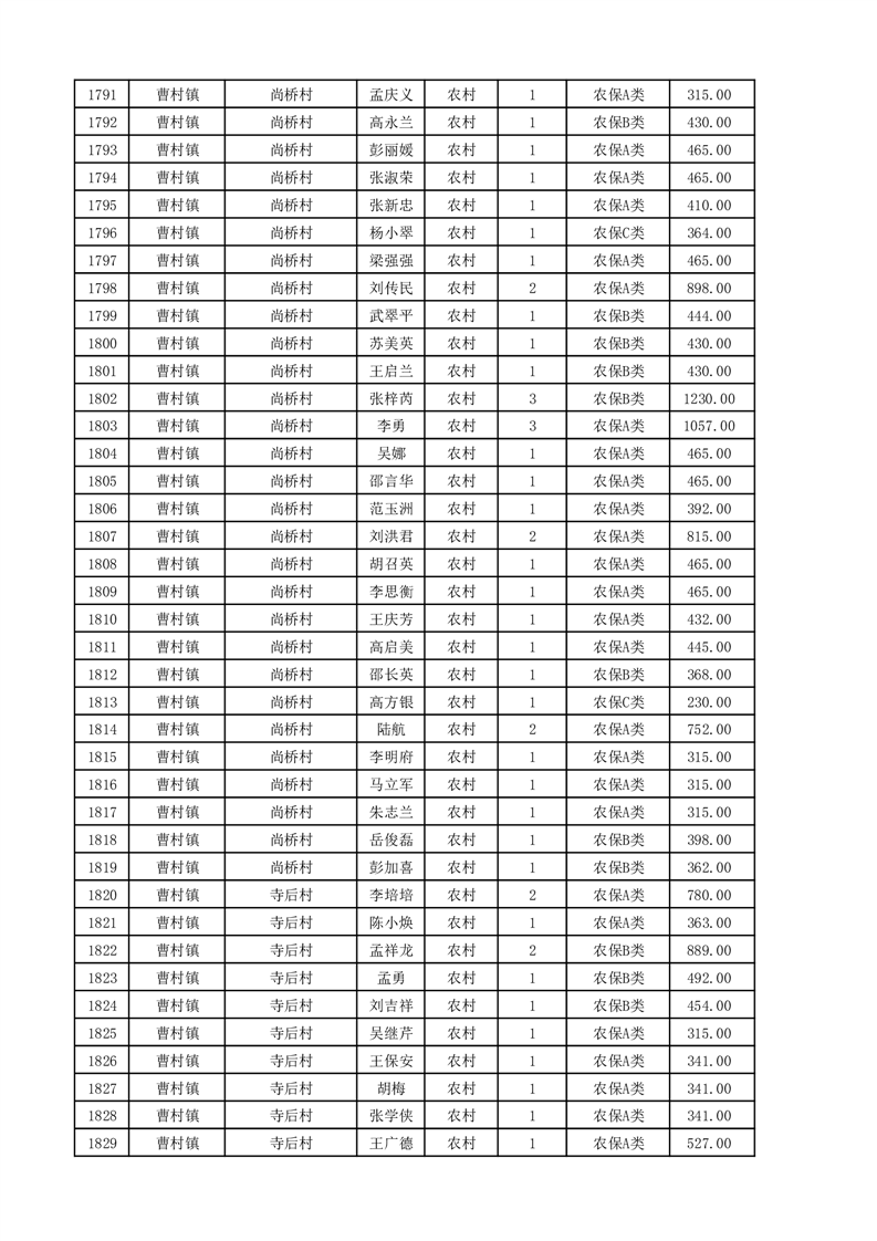 埇桥区2025年11月份农村低保花名册