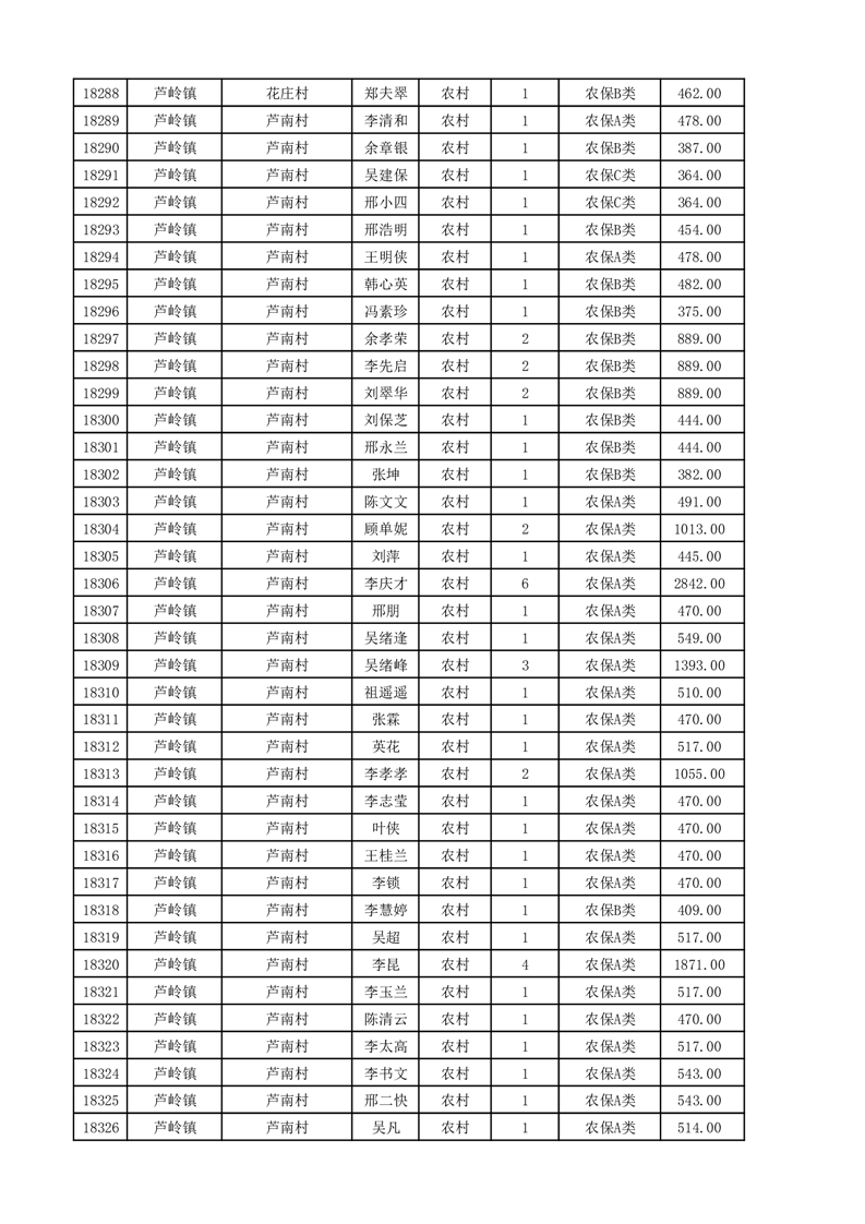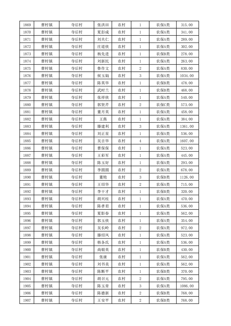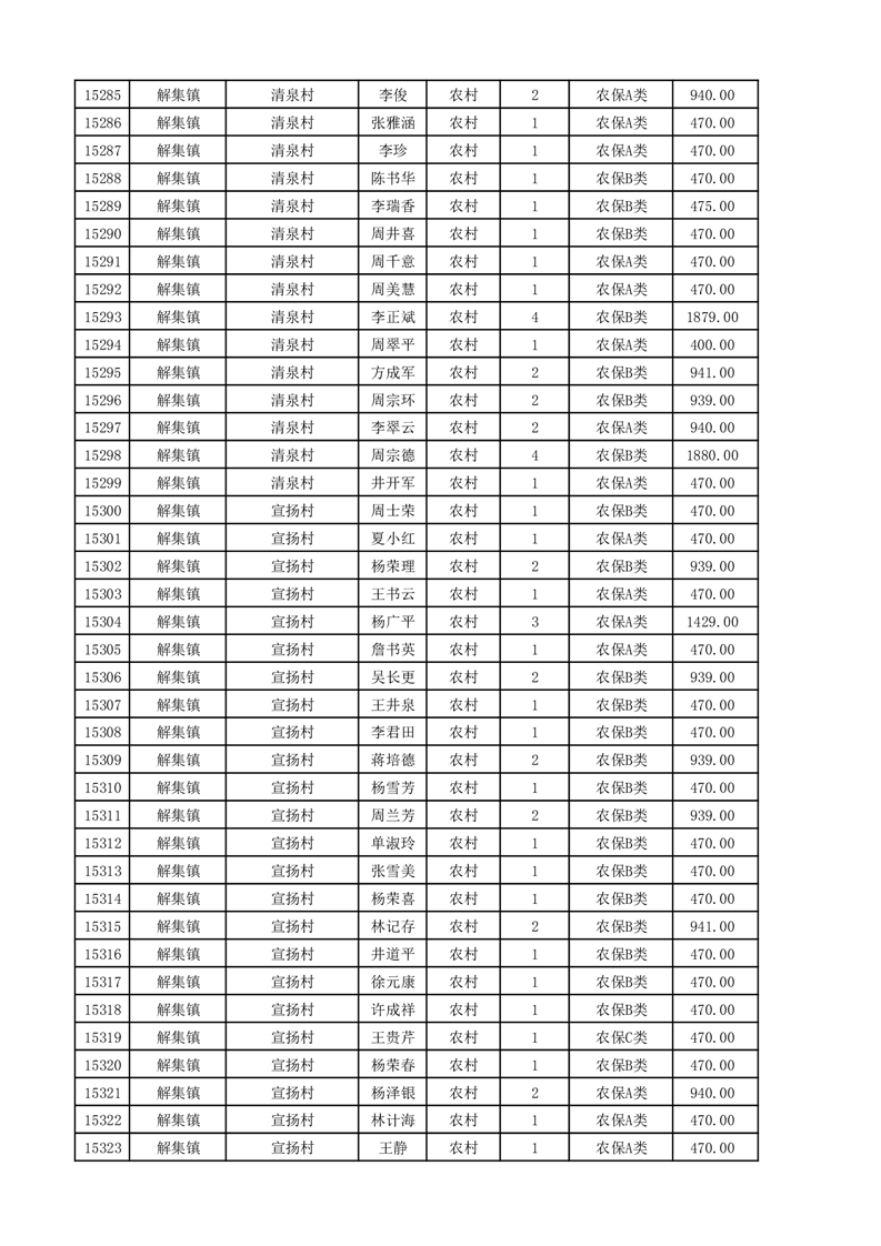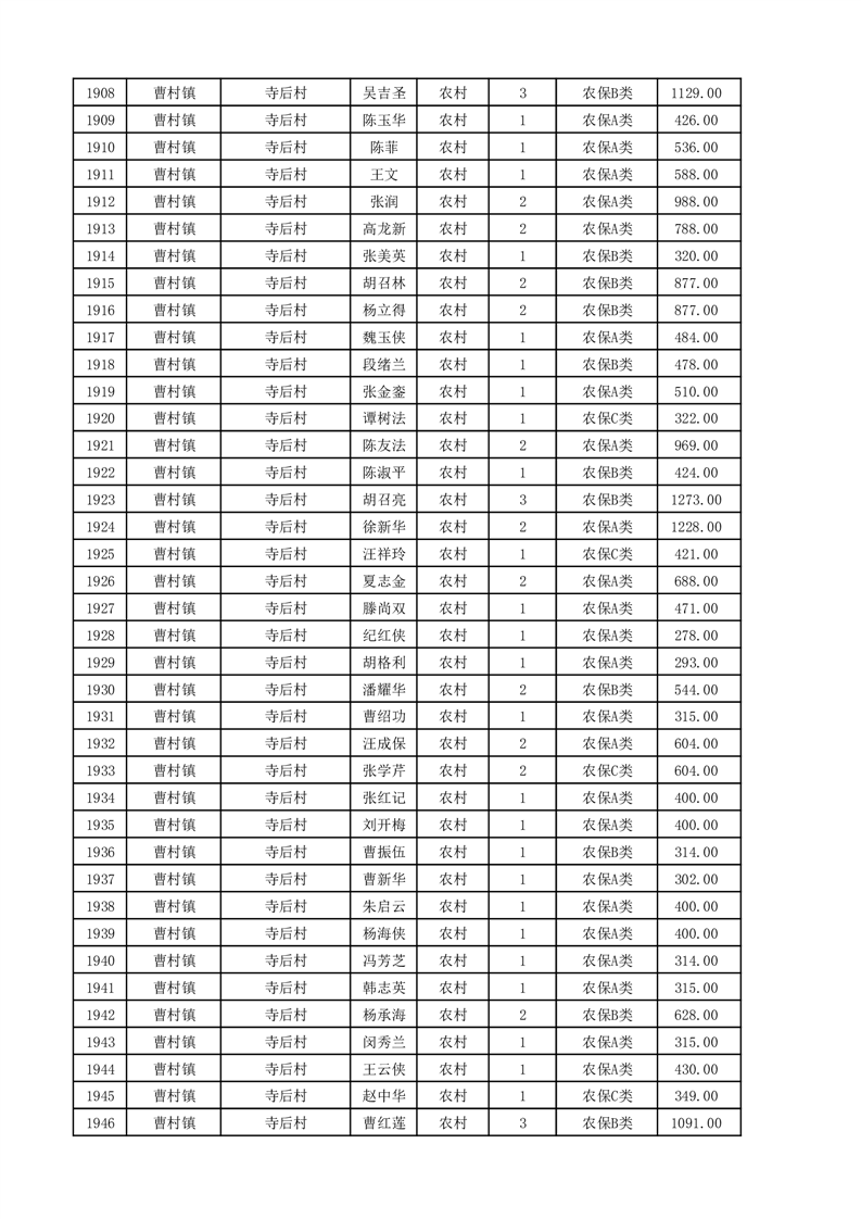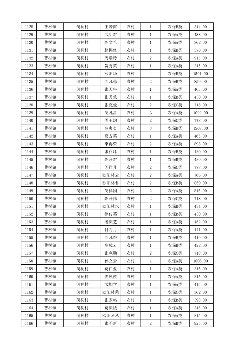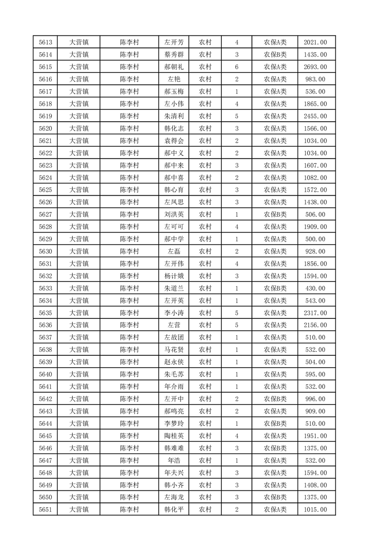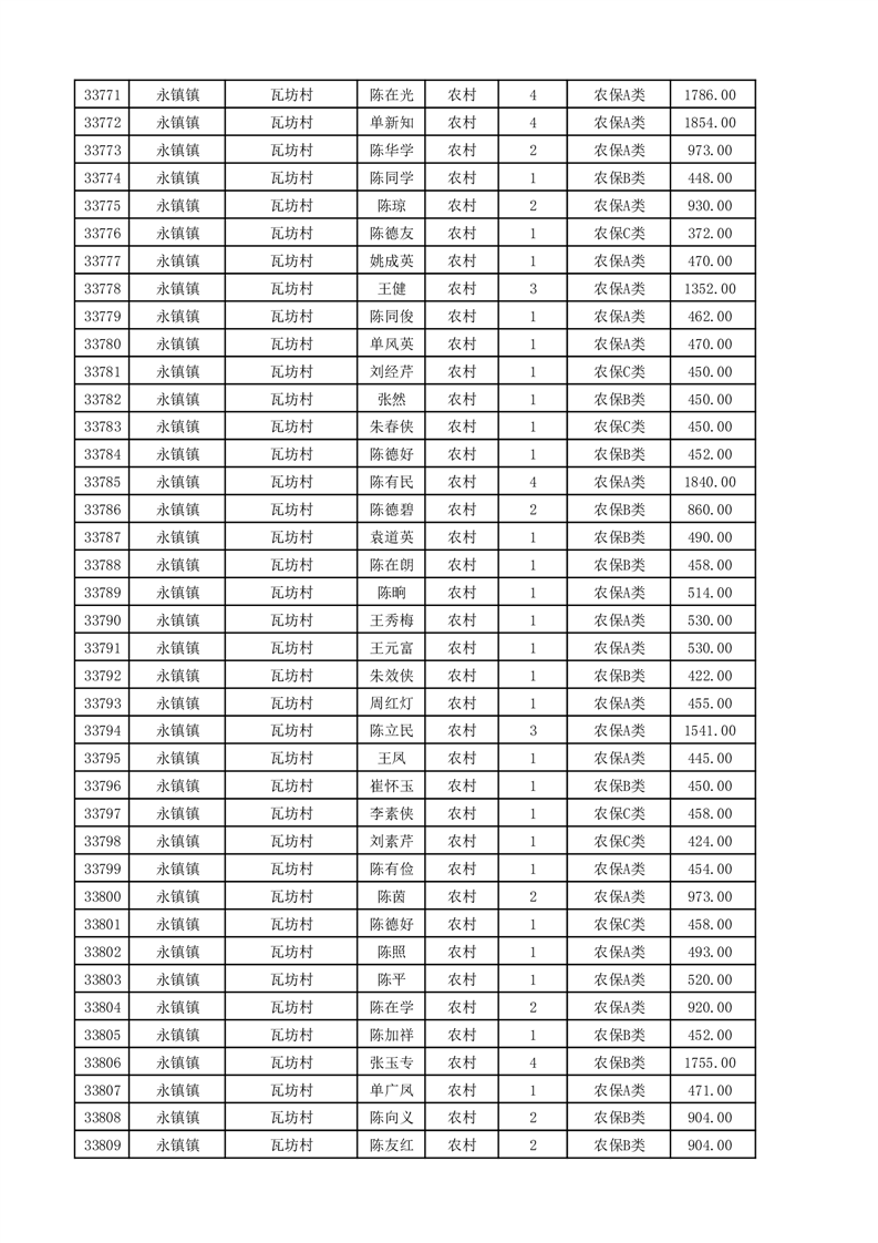 埇桥区2025年11月份农村低保花名册
