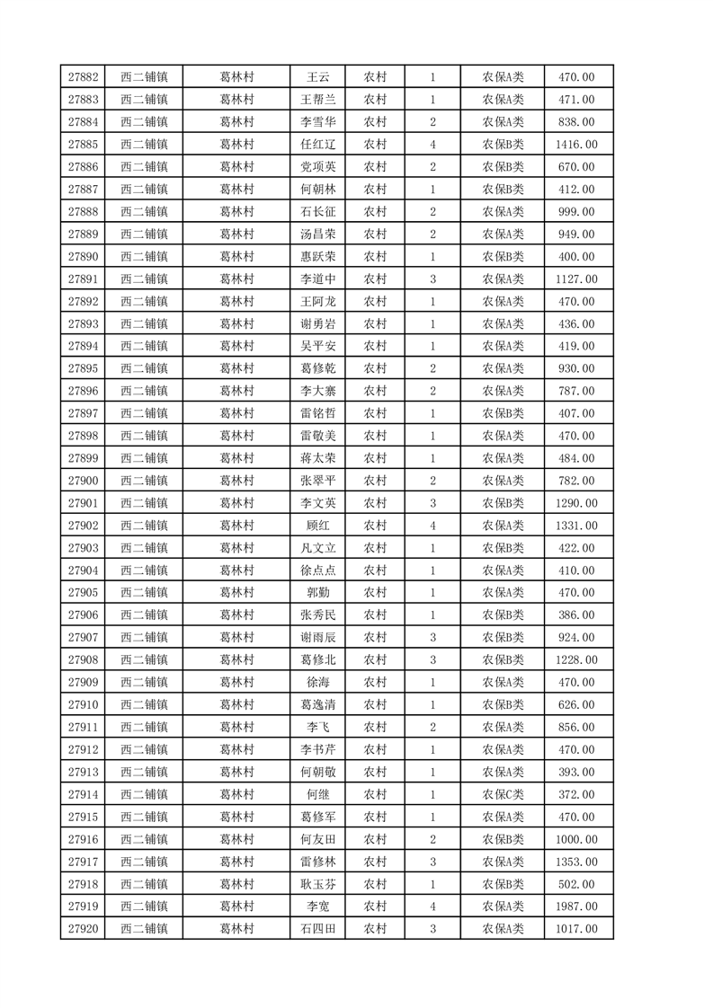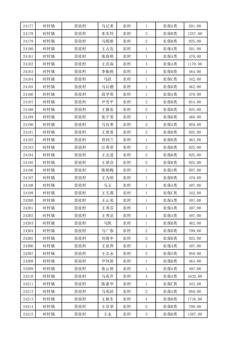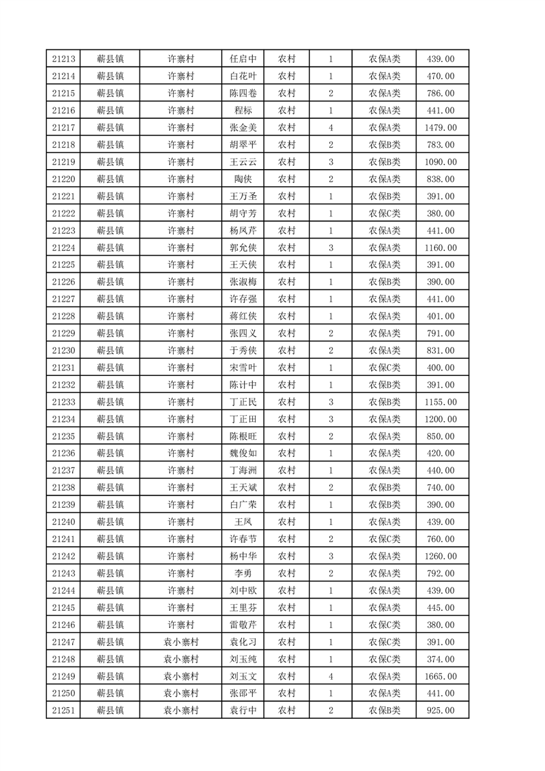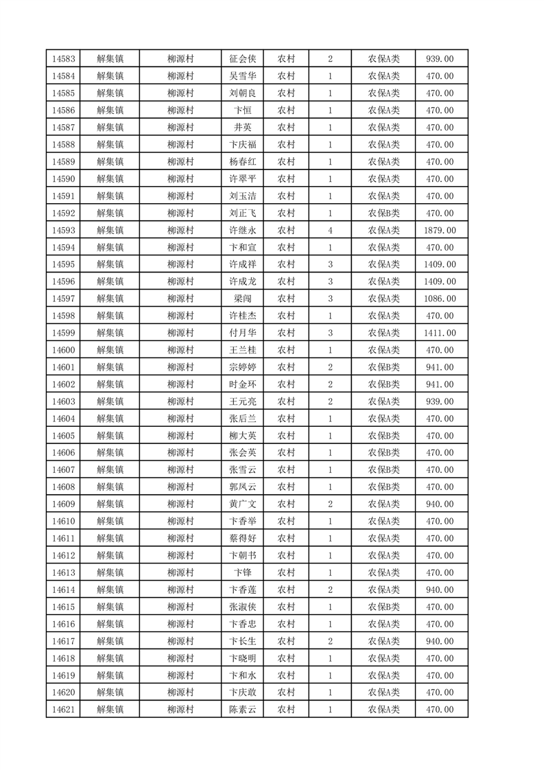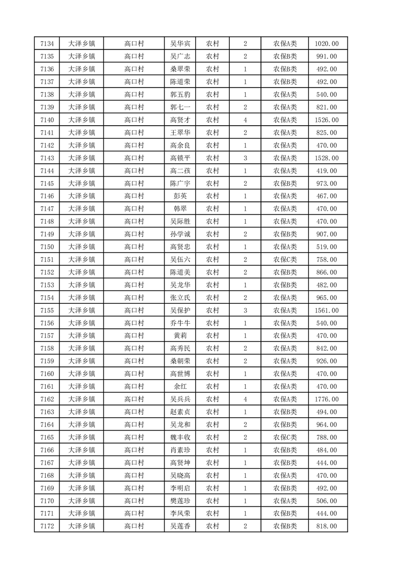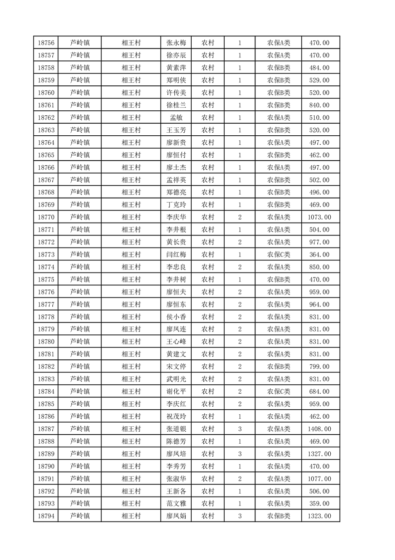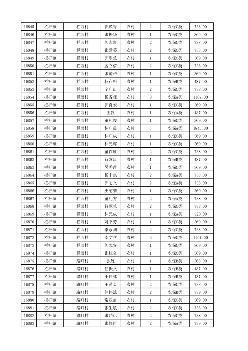 埇桥区2025年11月份农村低保花名册