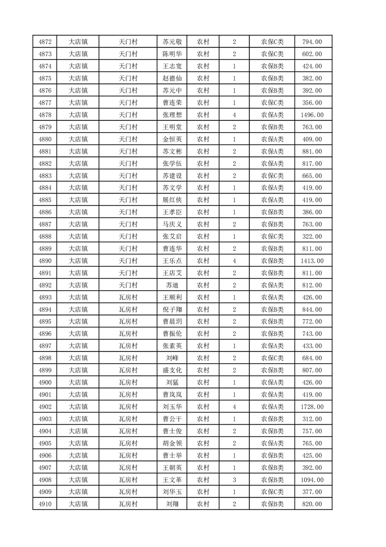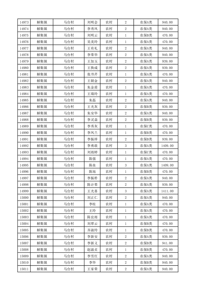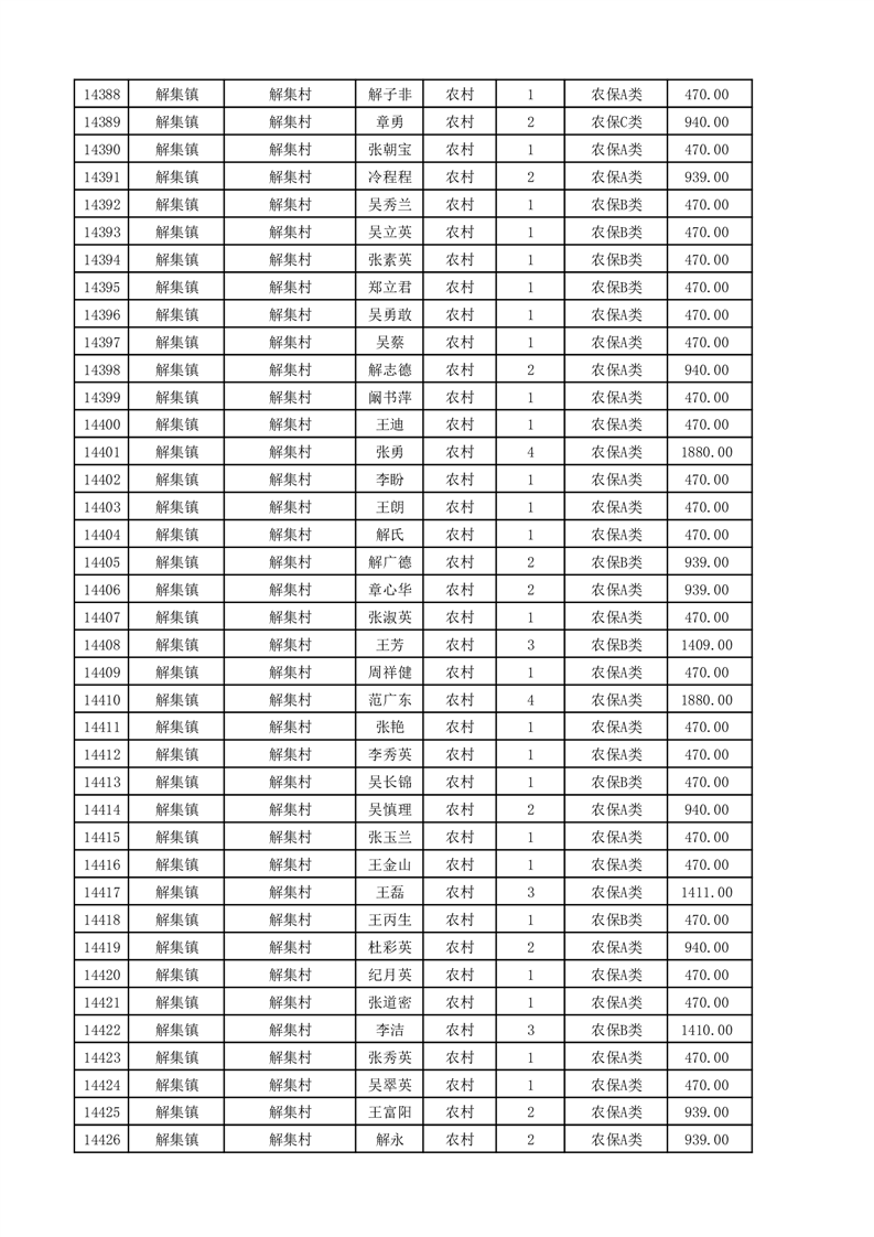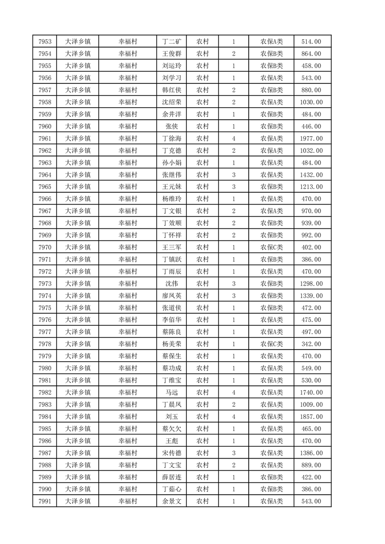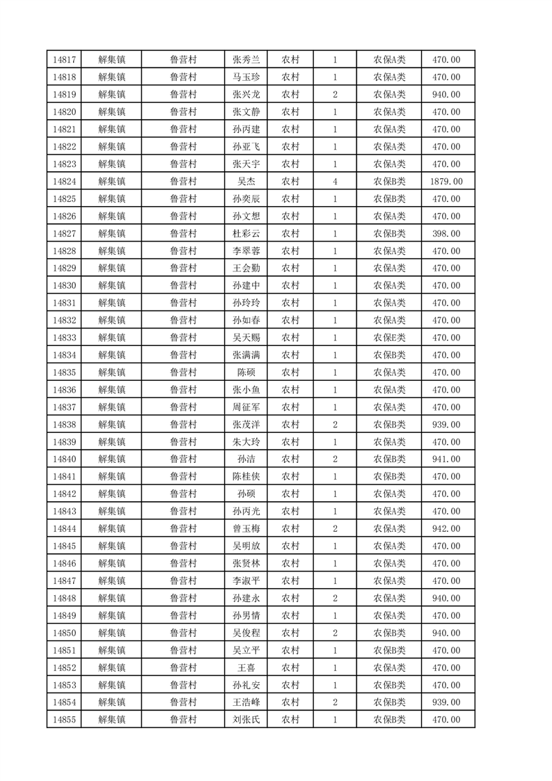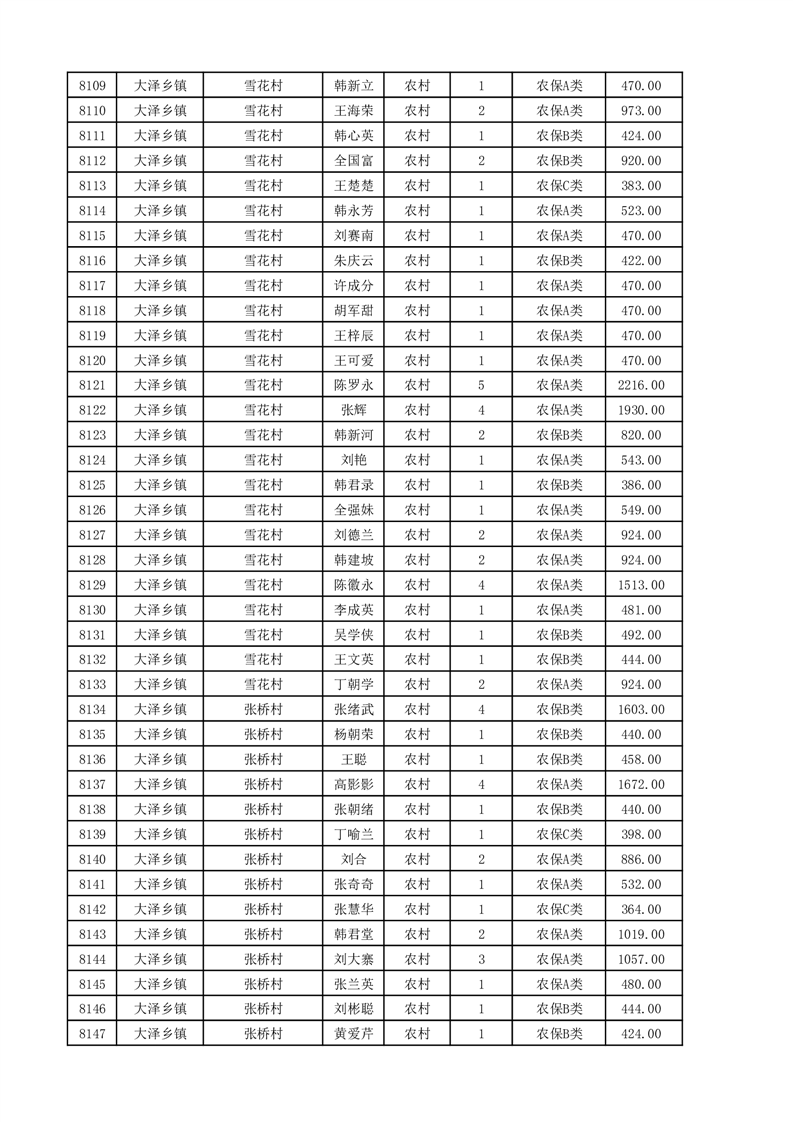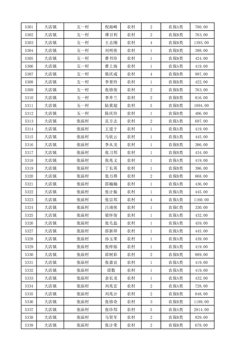 埇桥区2025年11月份农村低保花名册