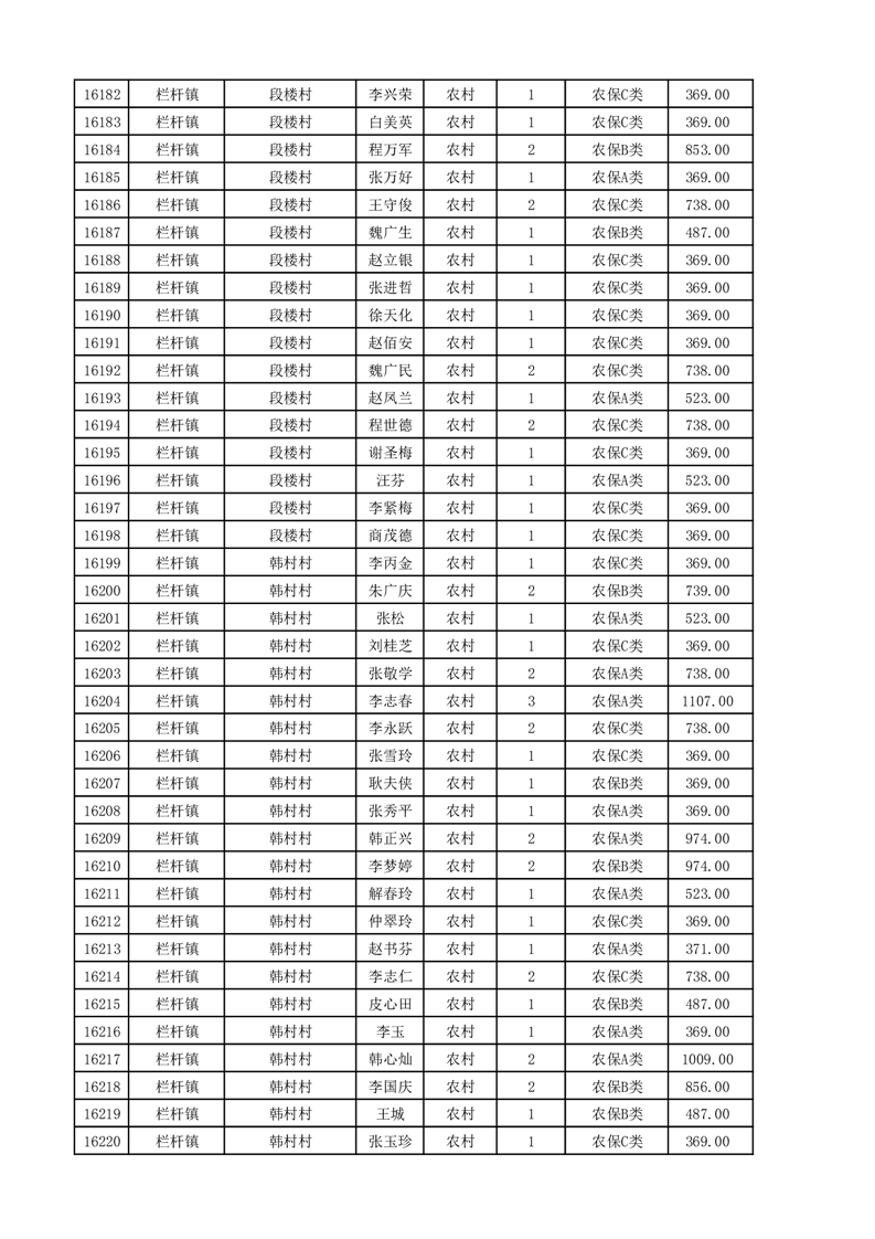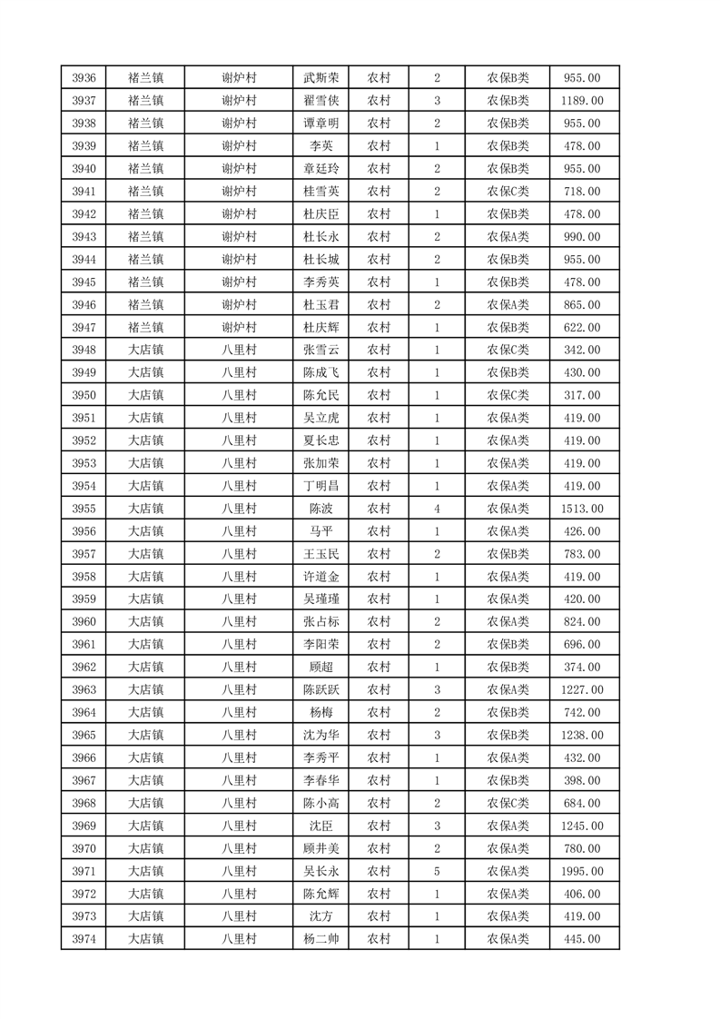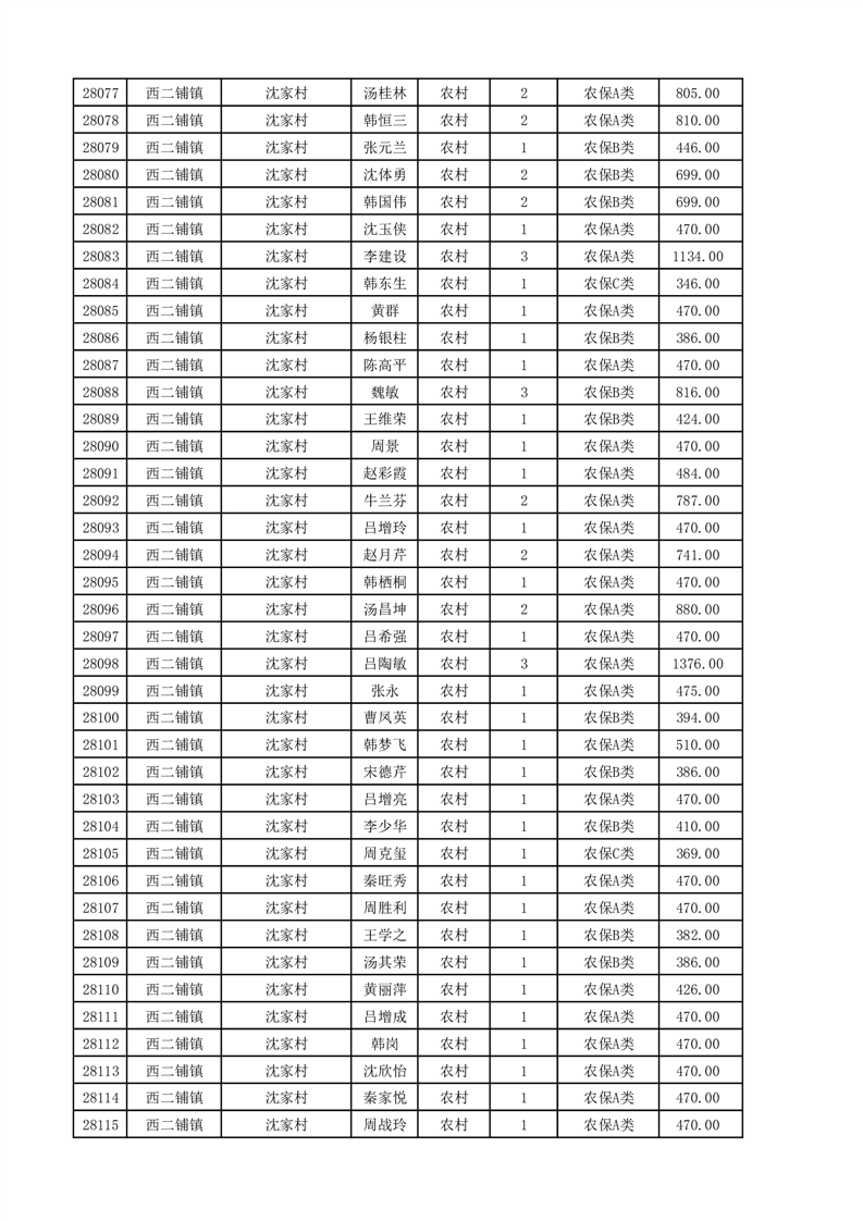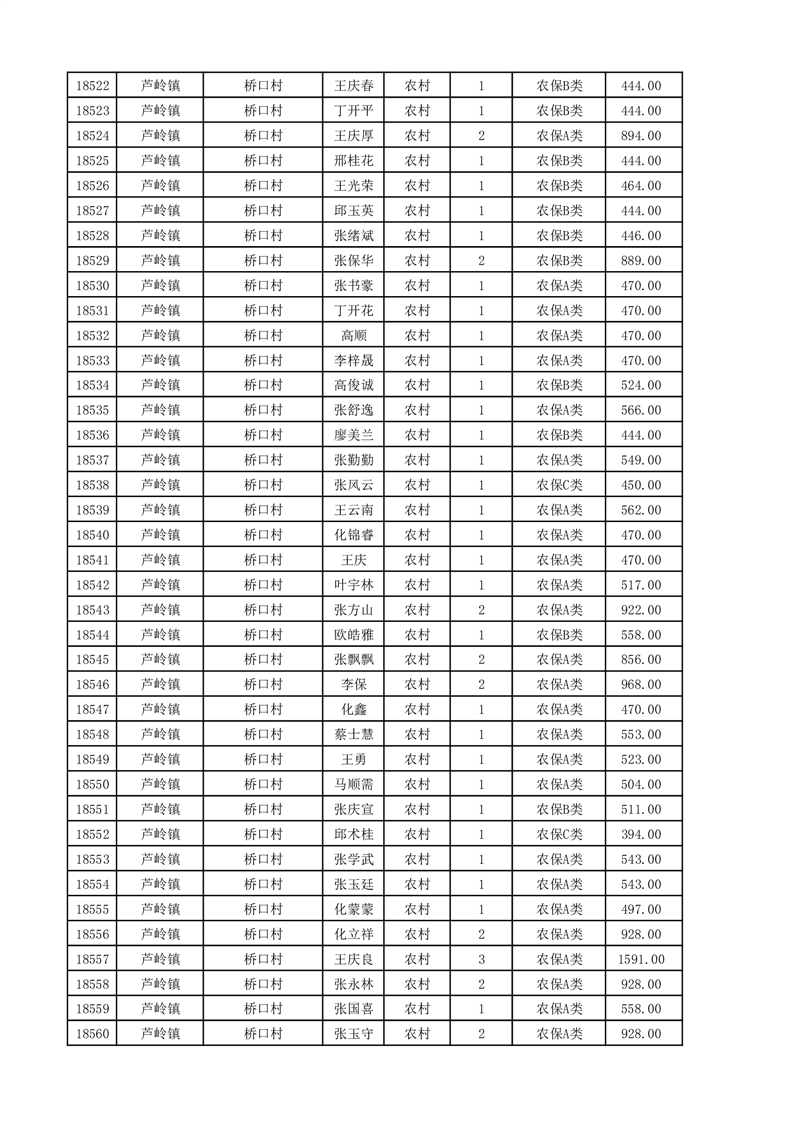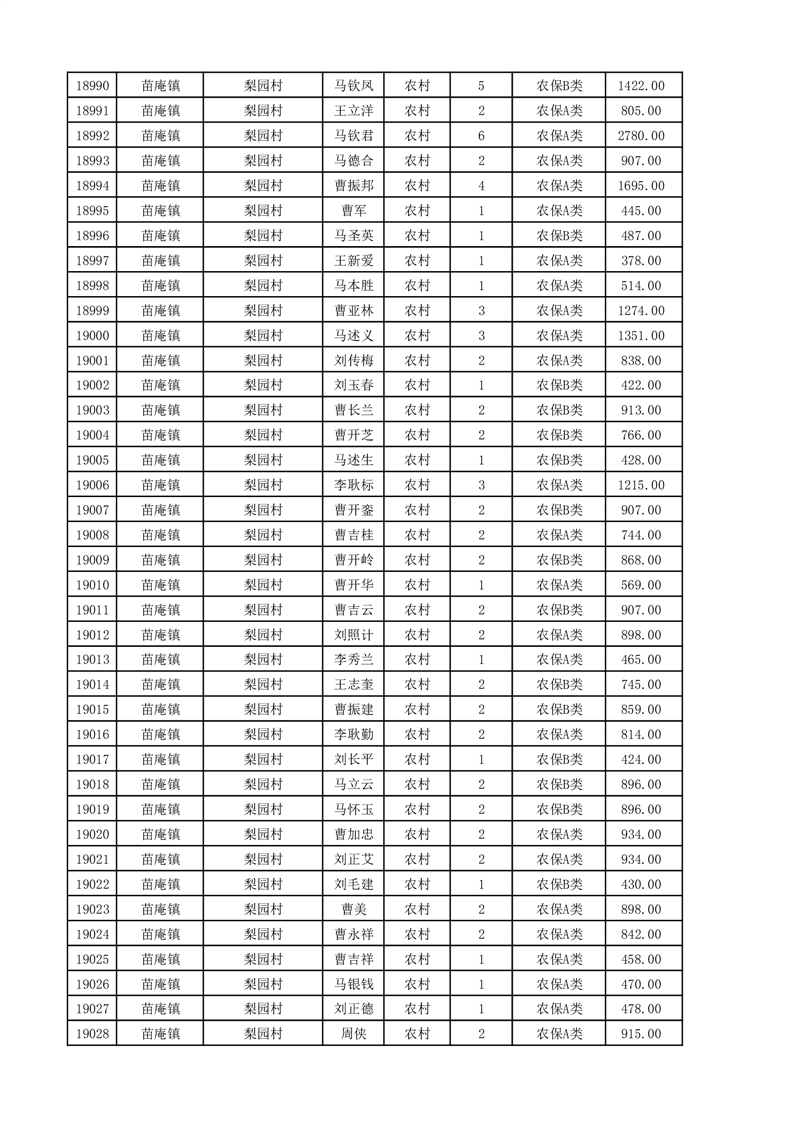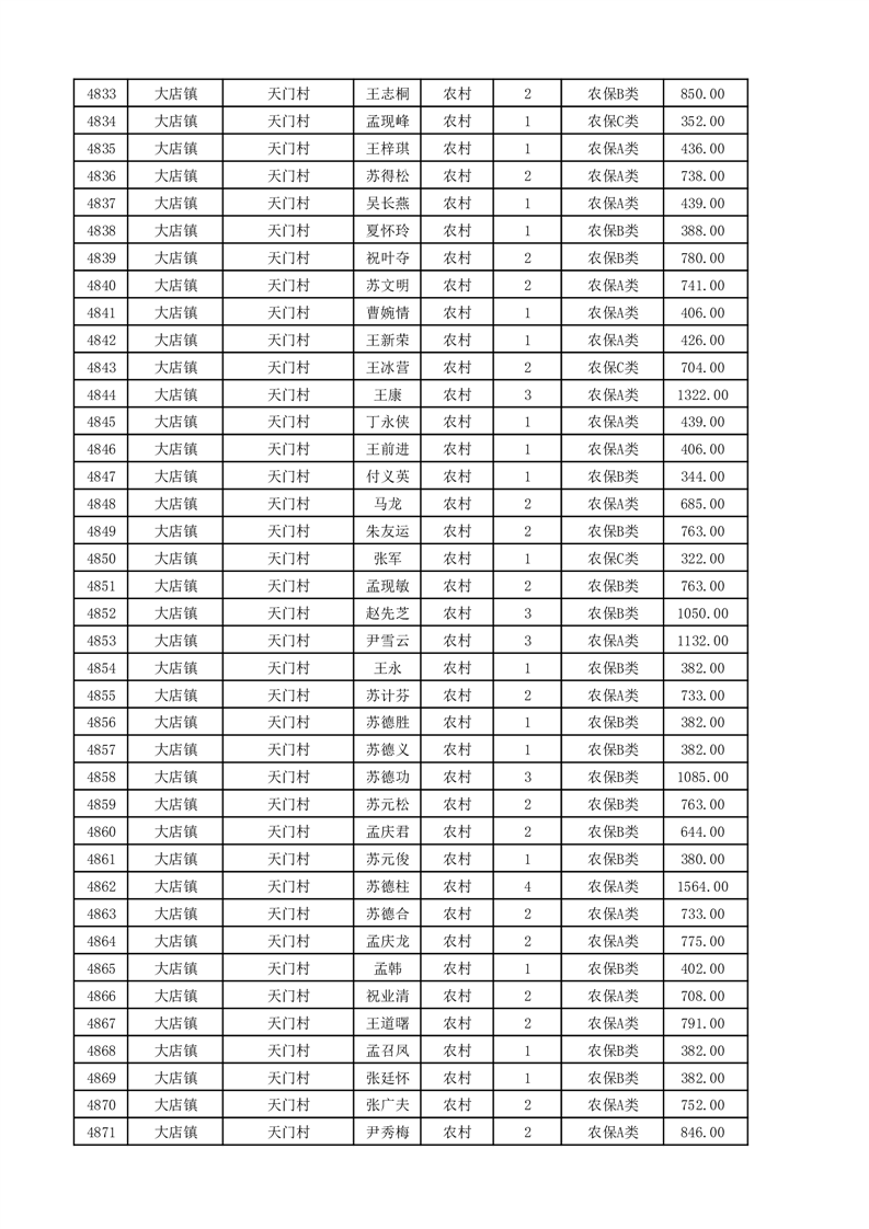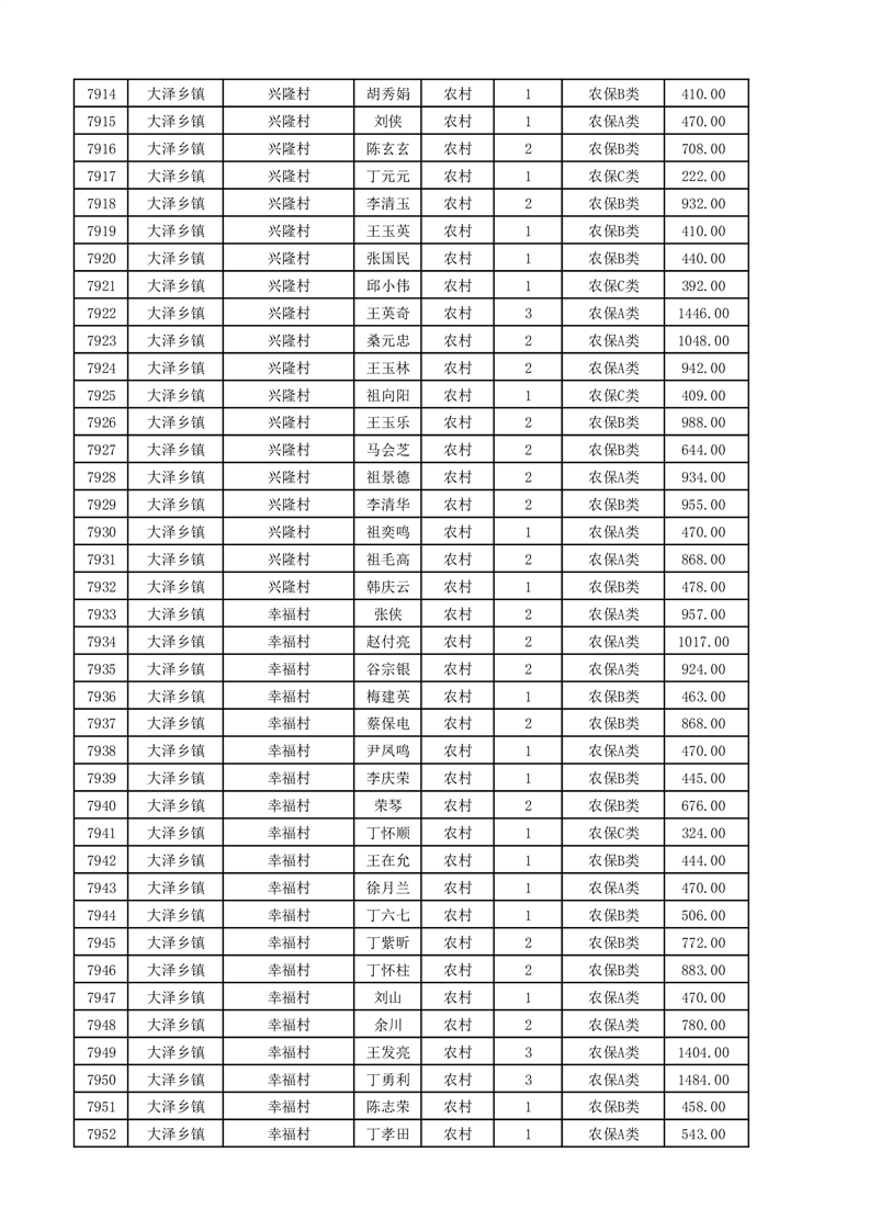 埇桥区2025年11月份农村低保花名册