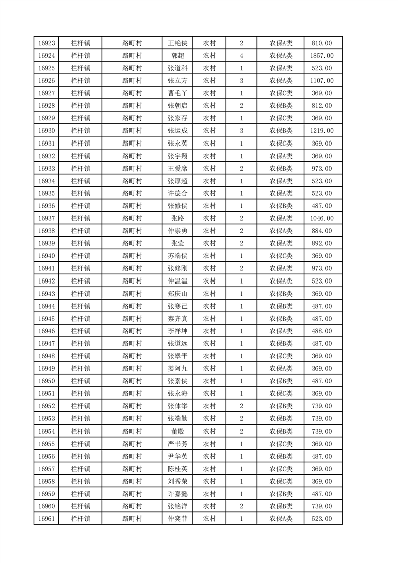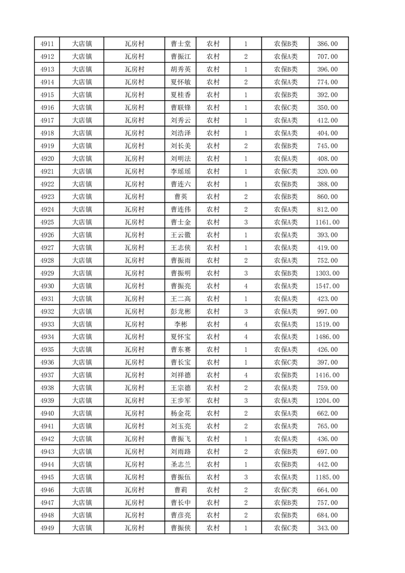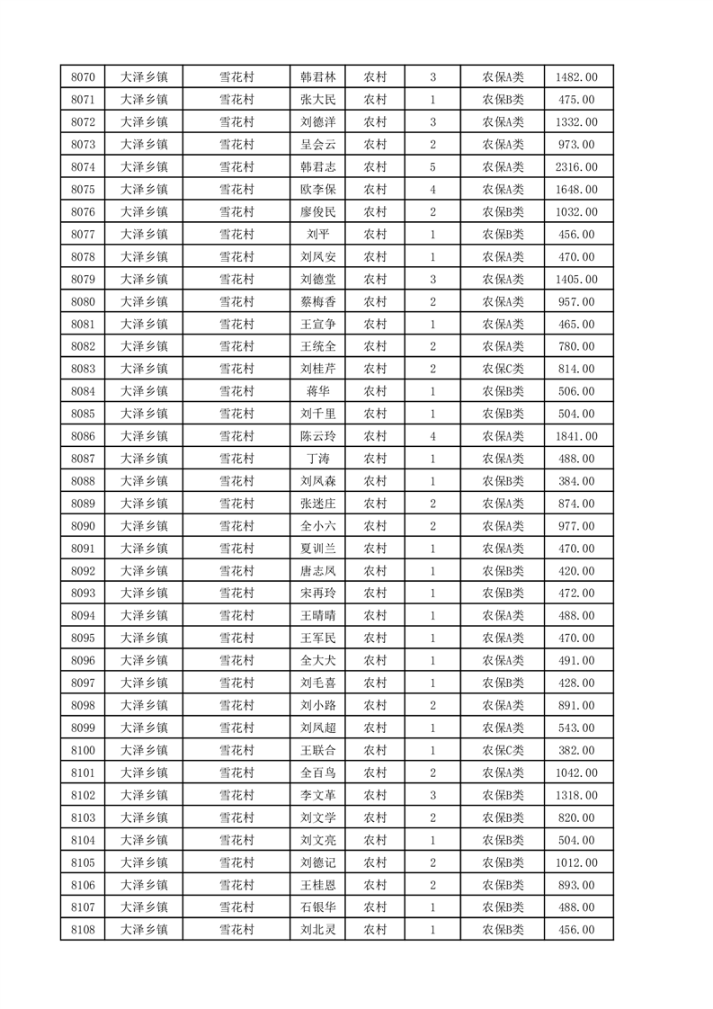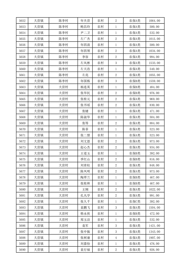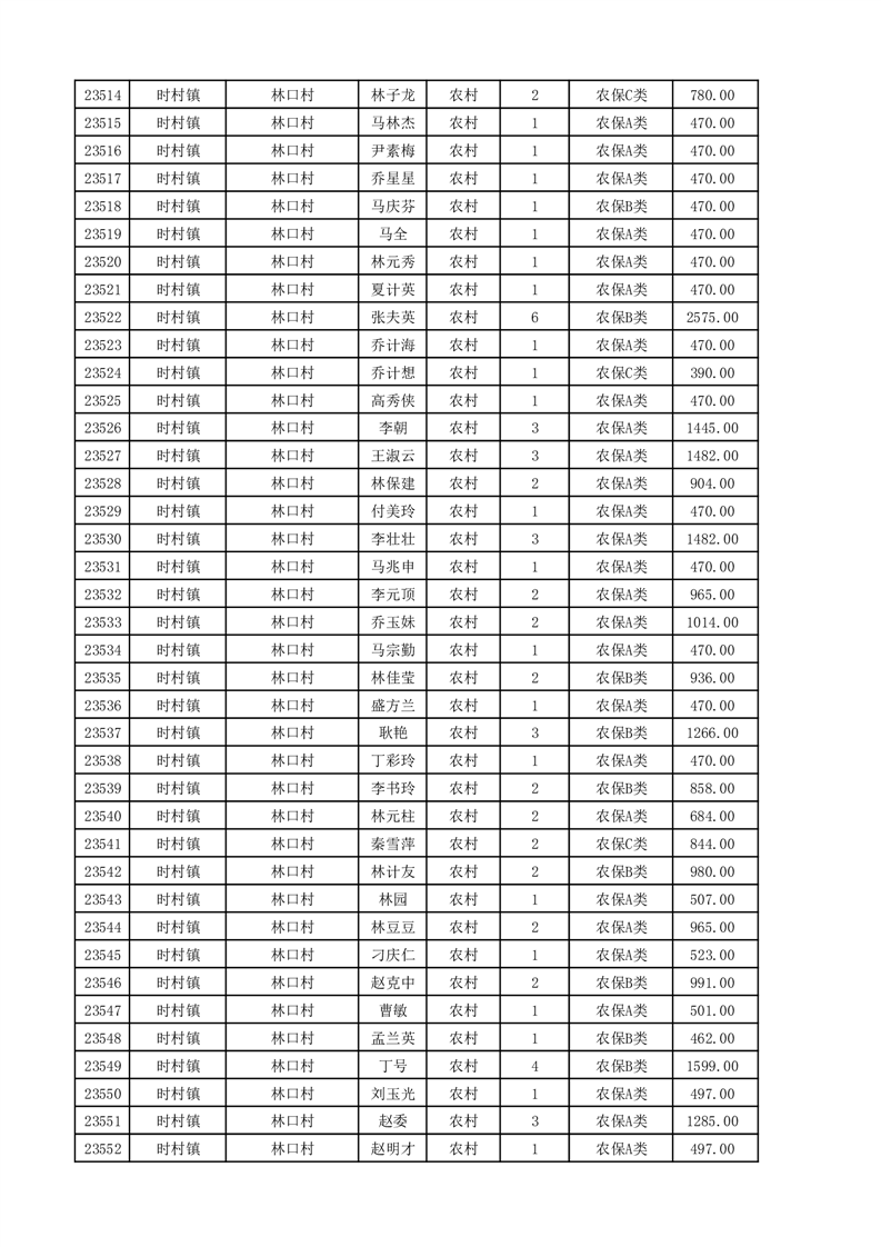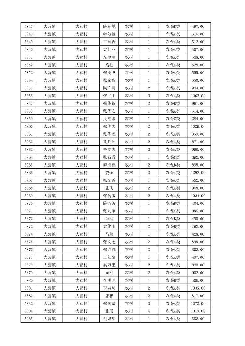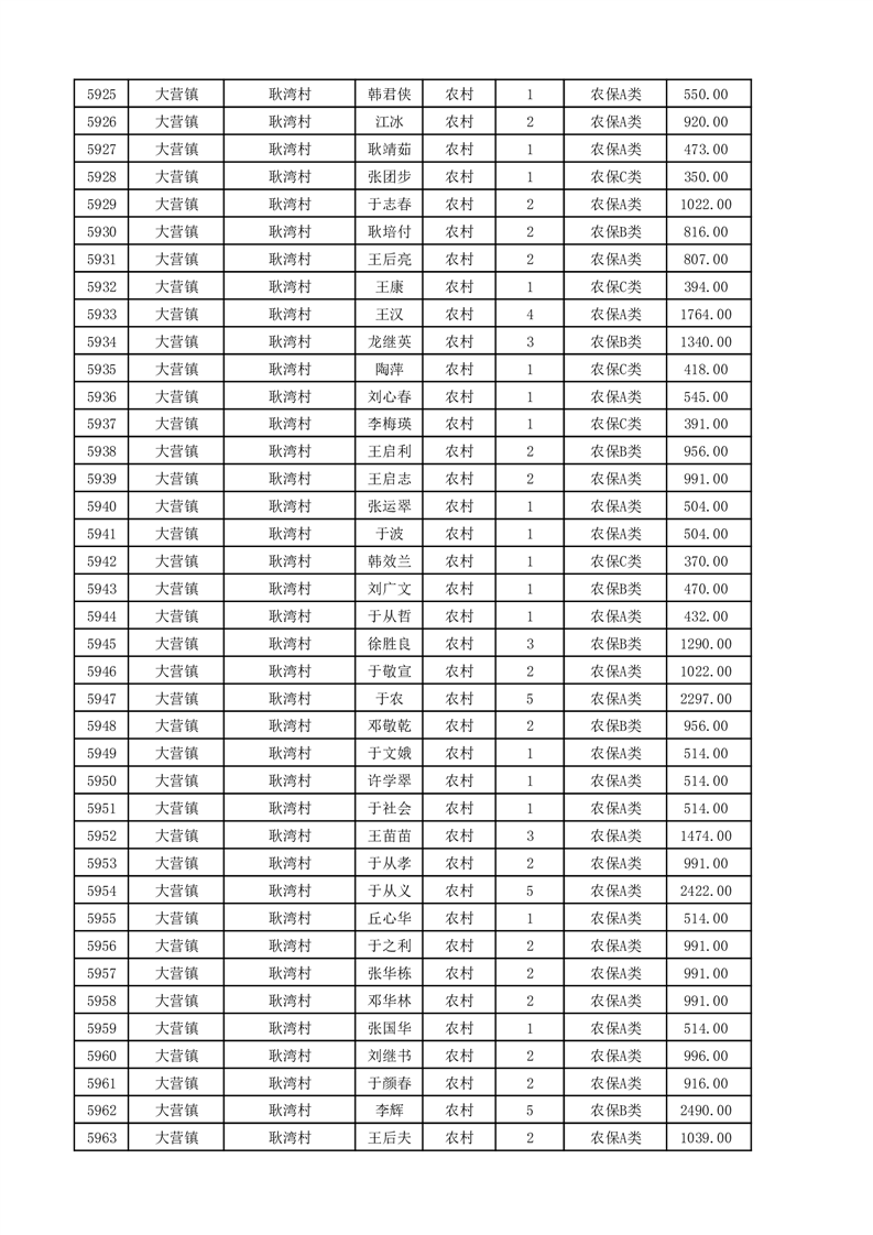 埇桥区2025年11月份农村低保花名册