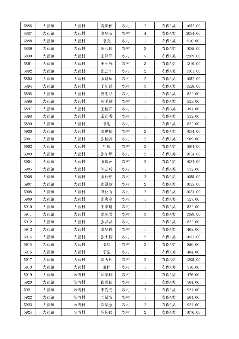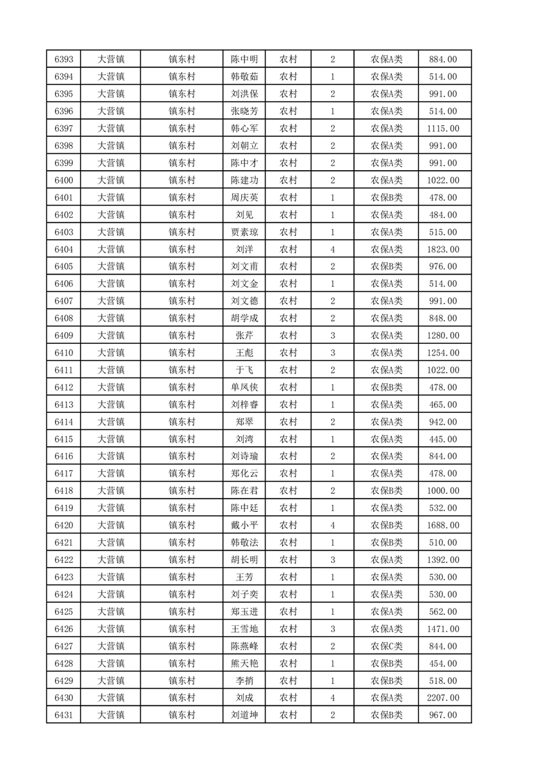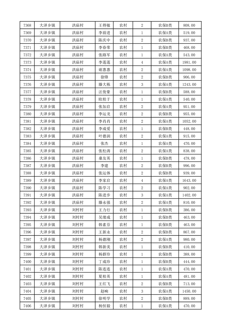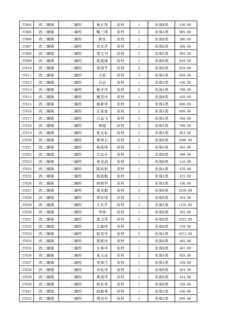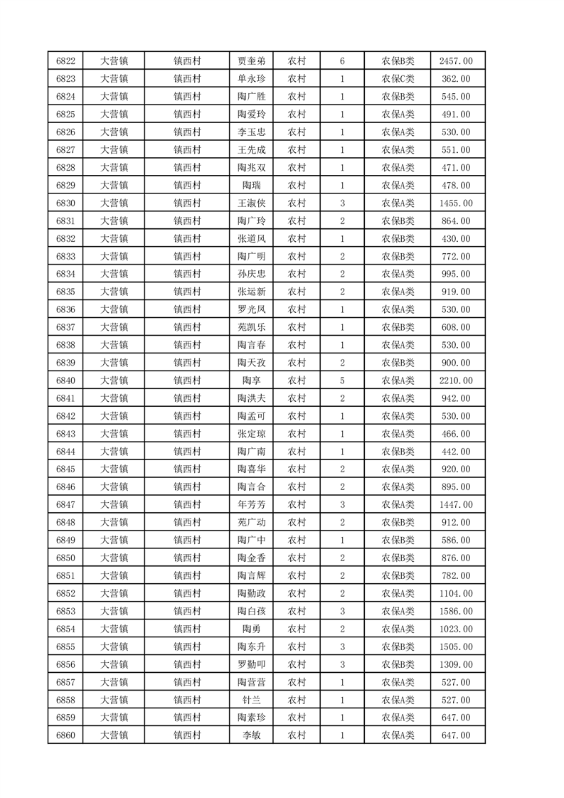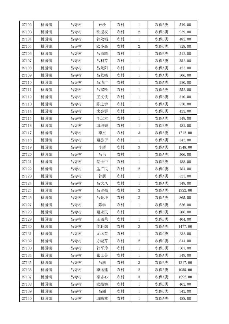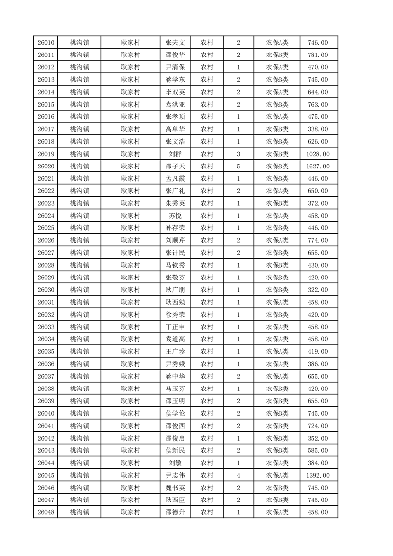 埇桥区2025年11月份农村低保花名册