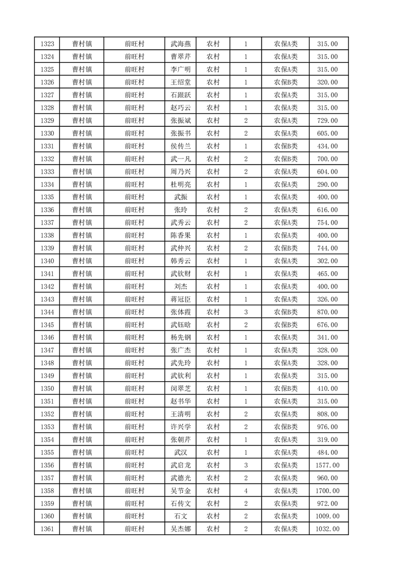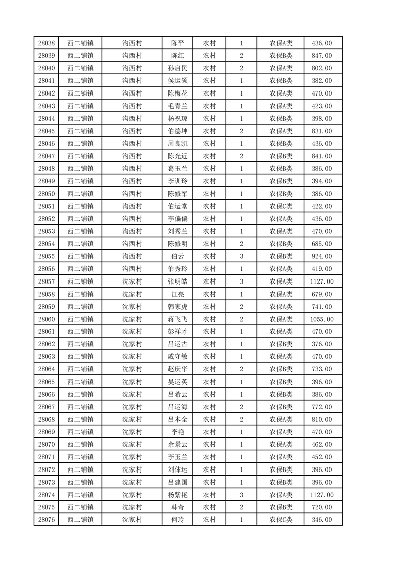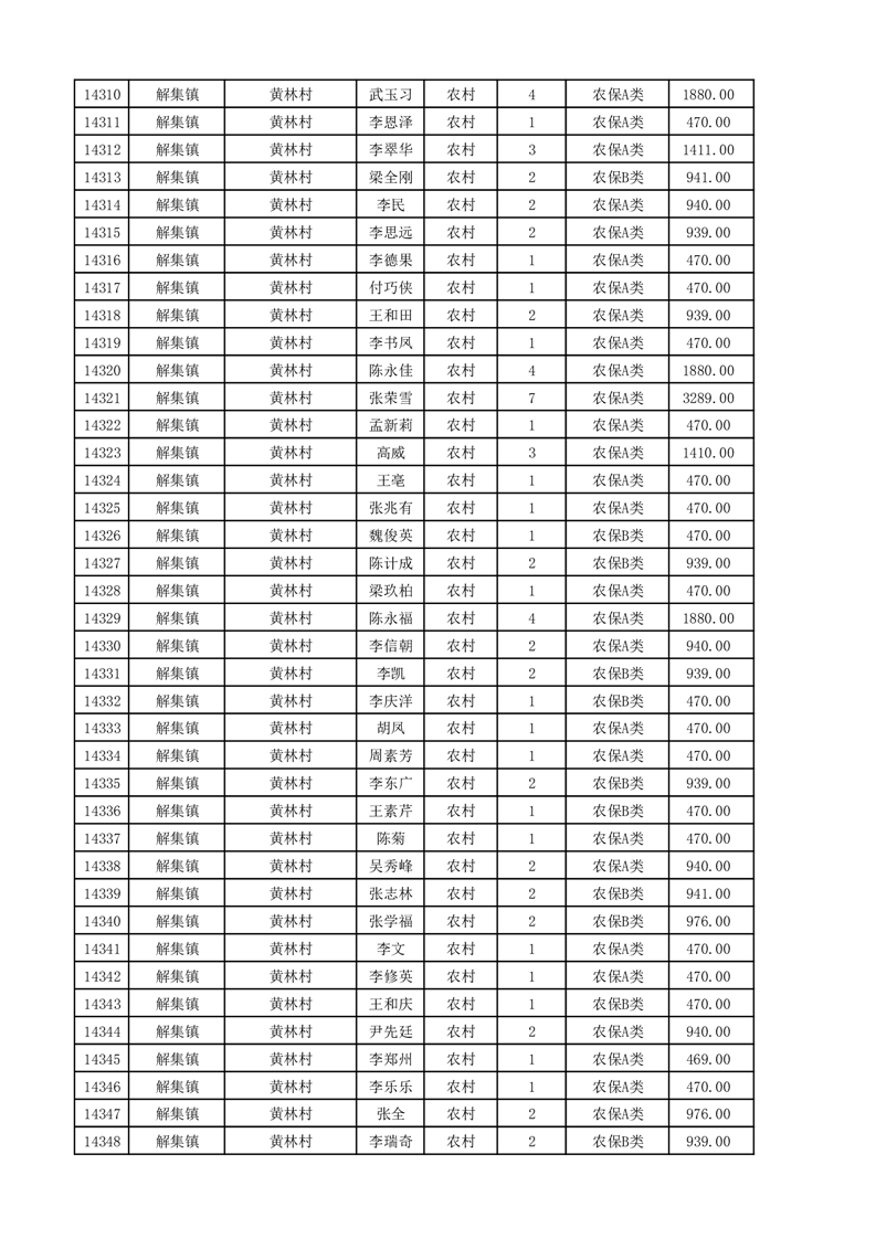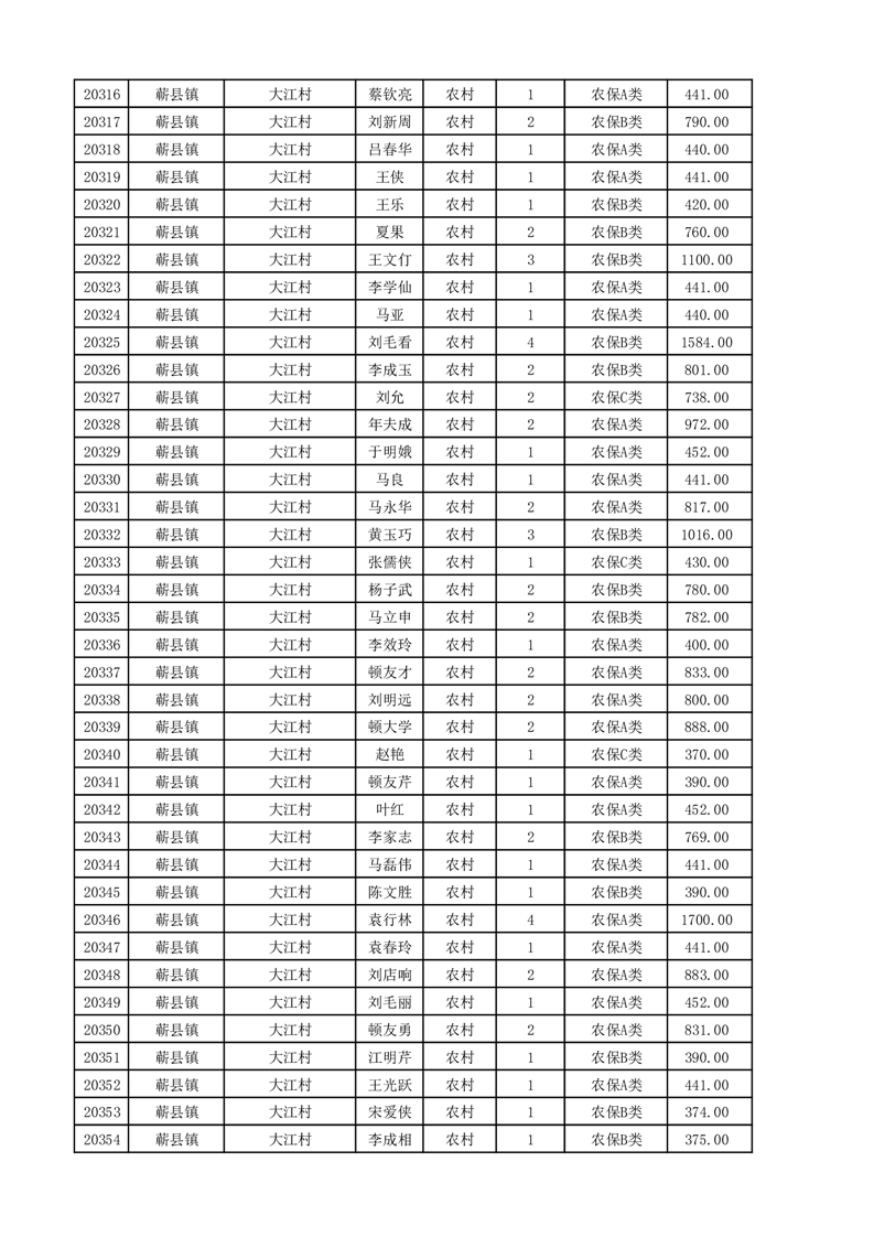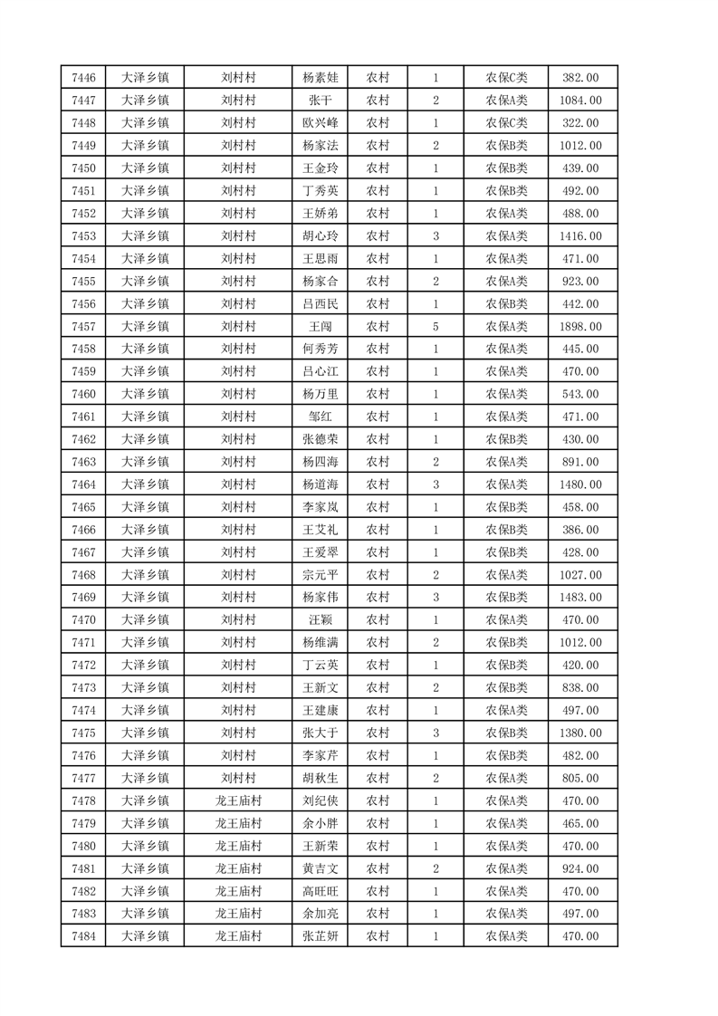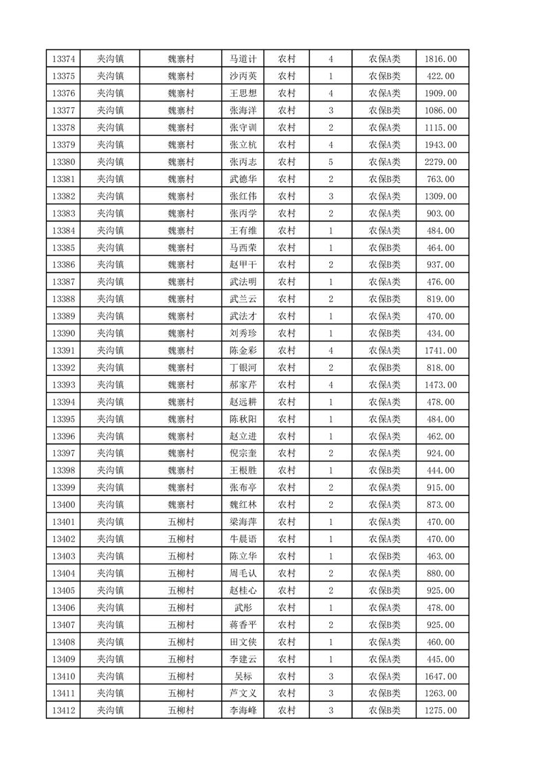 埇桥区2025年11月份农村低保花名册