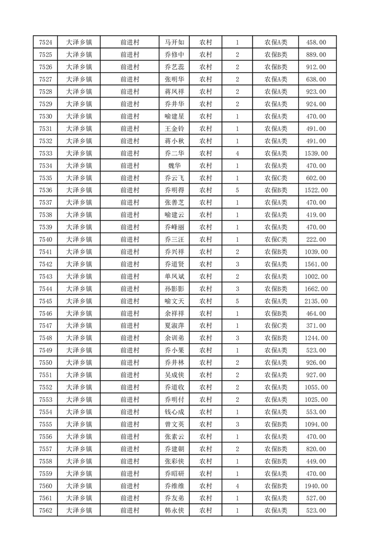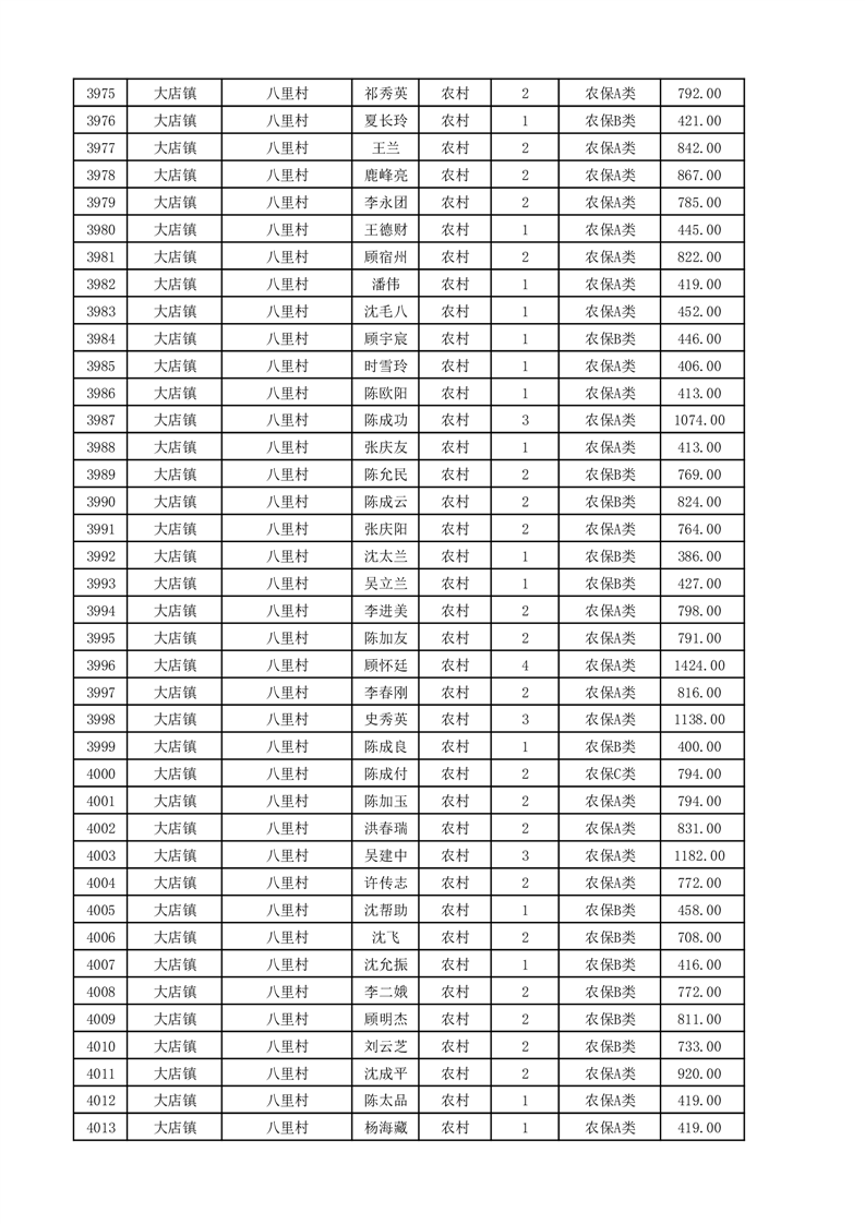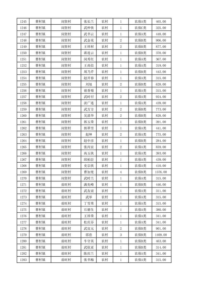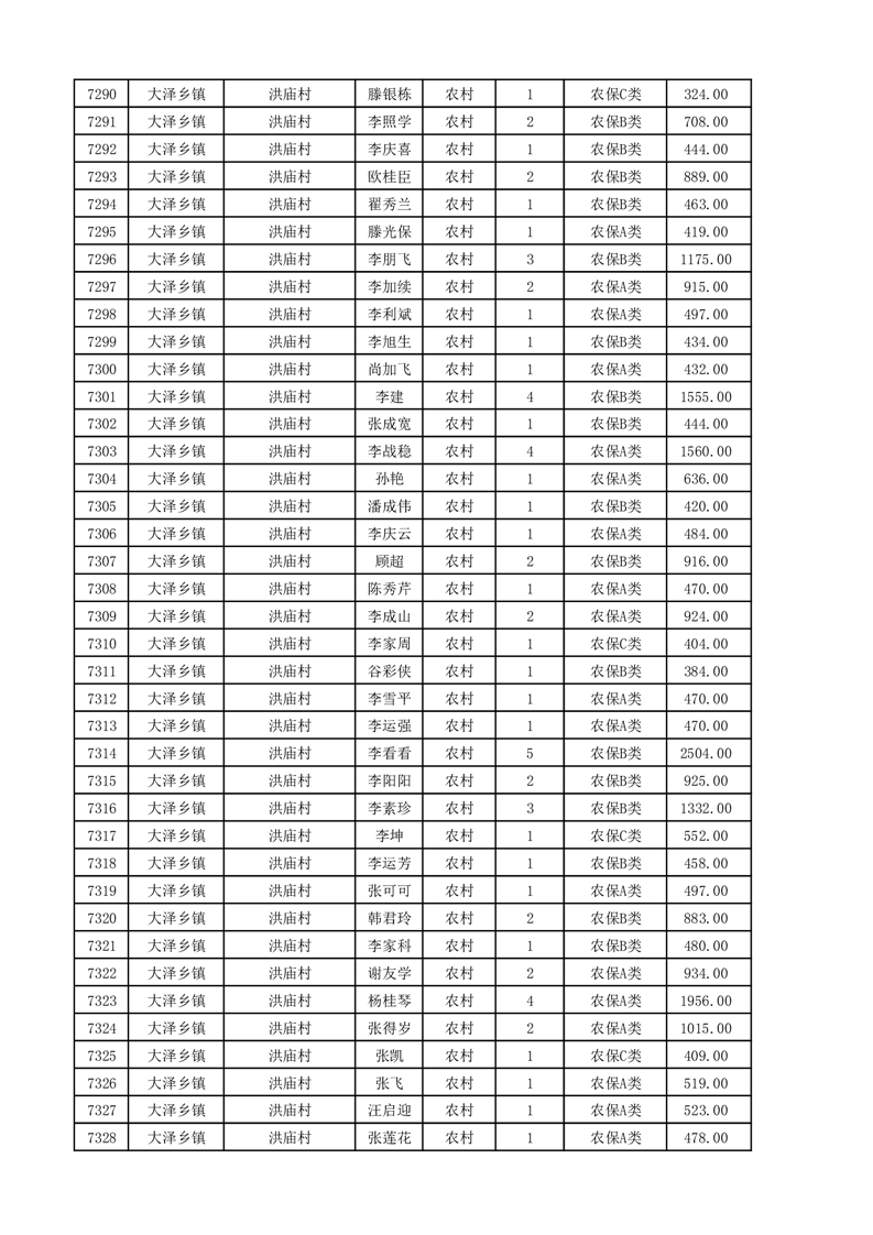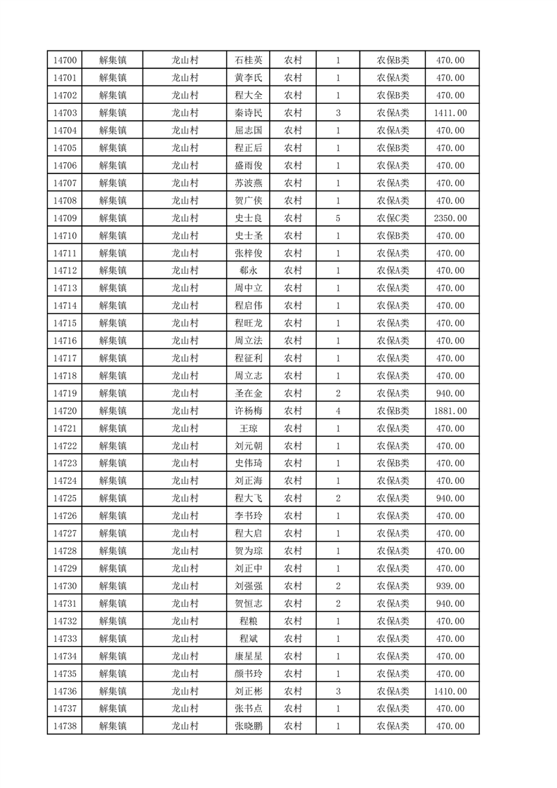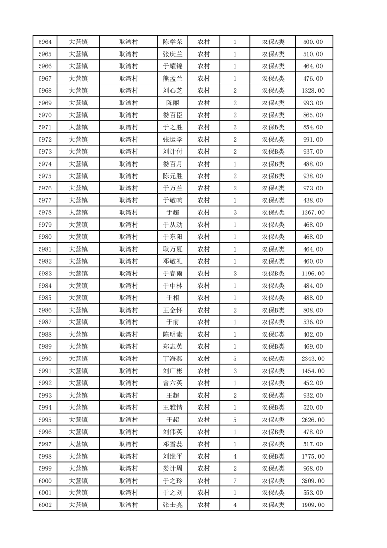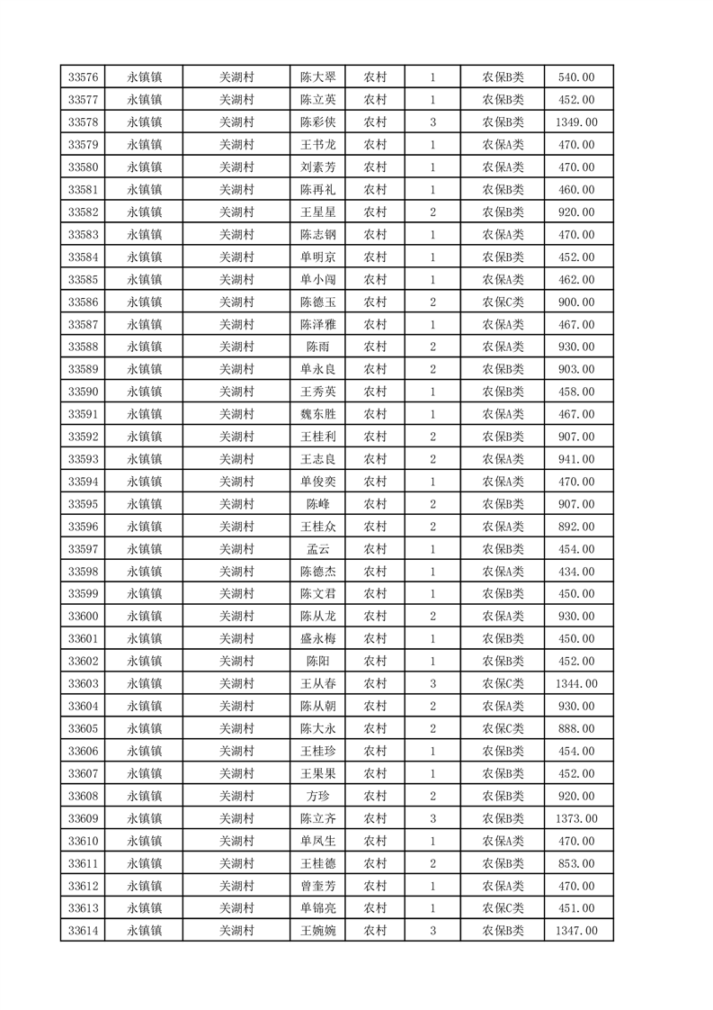 埇桥区2025年11月份农村低保花名册