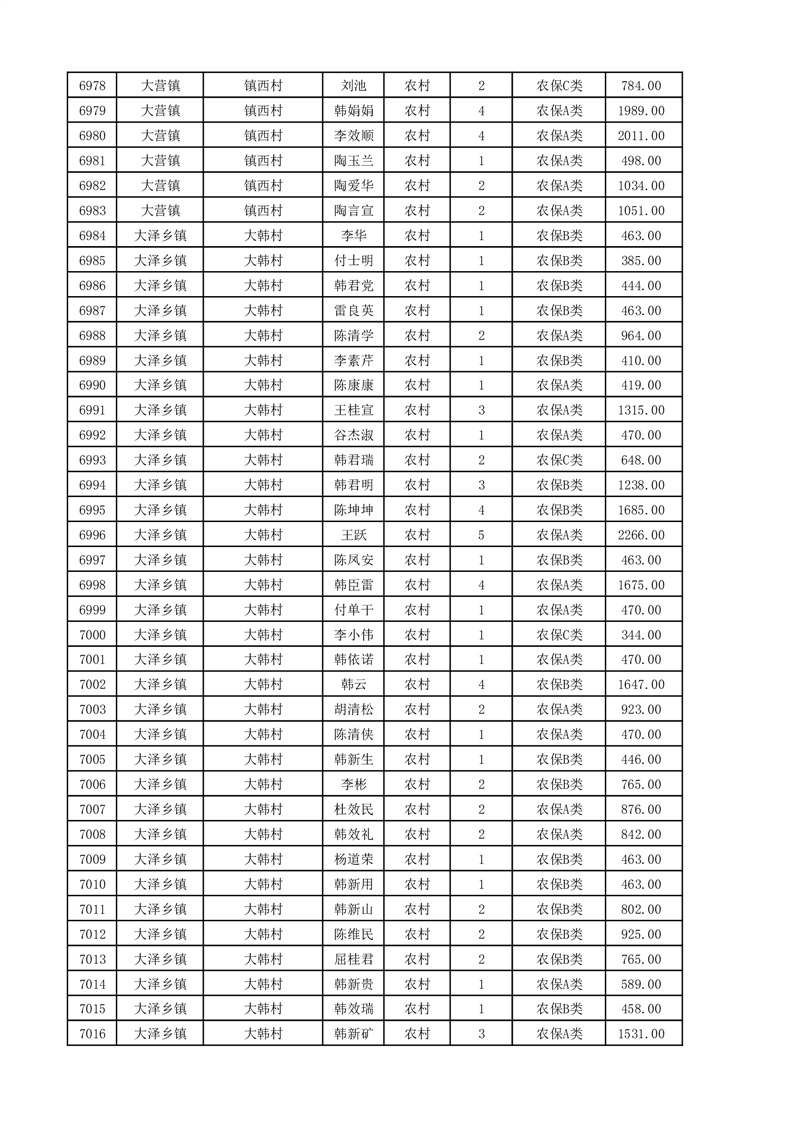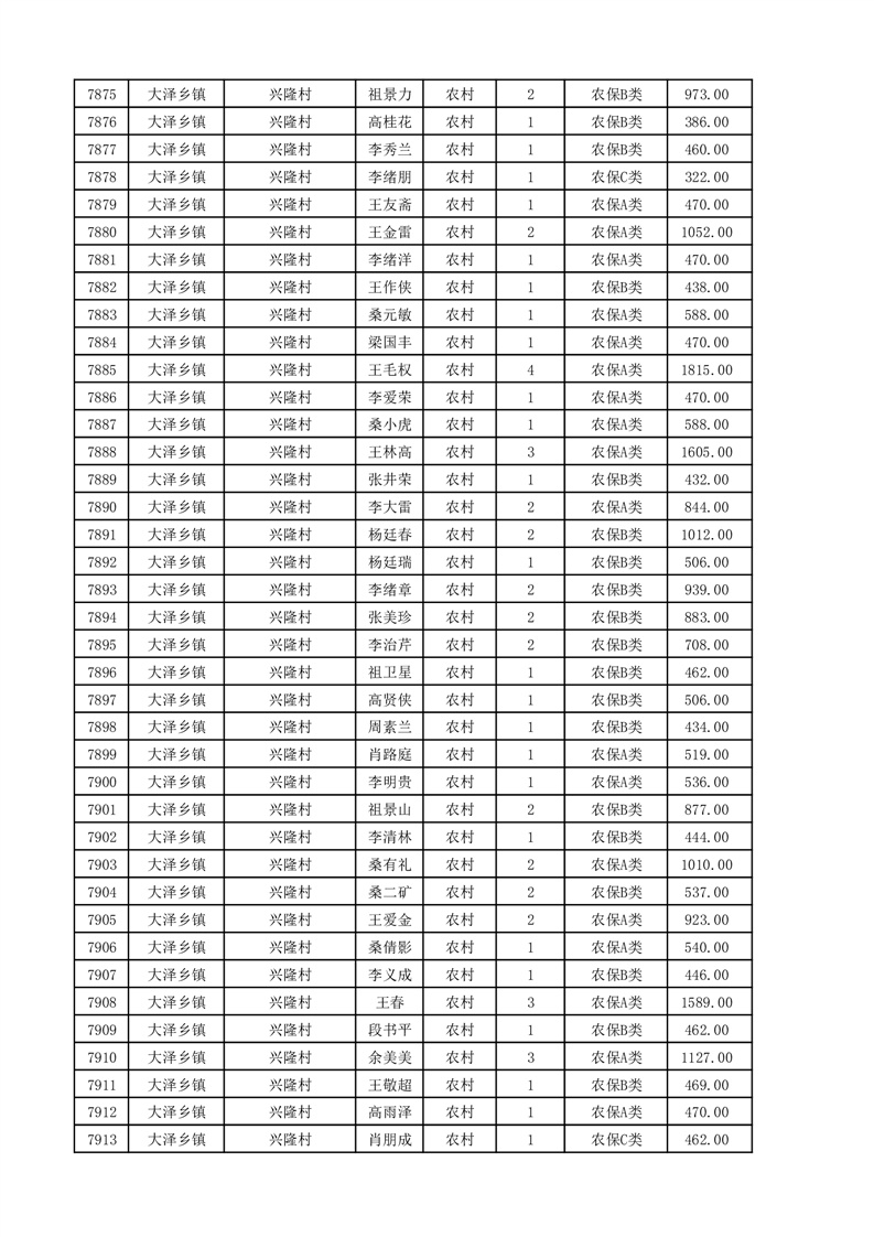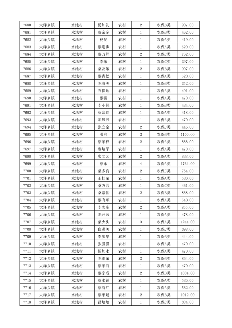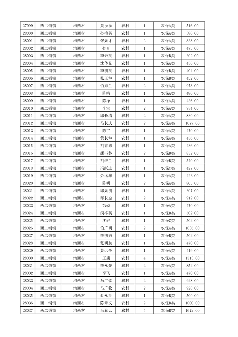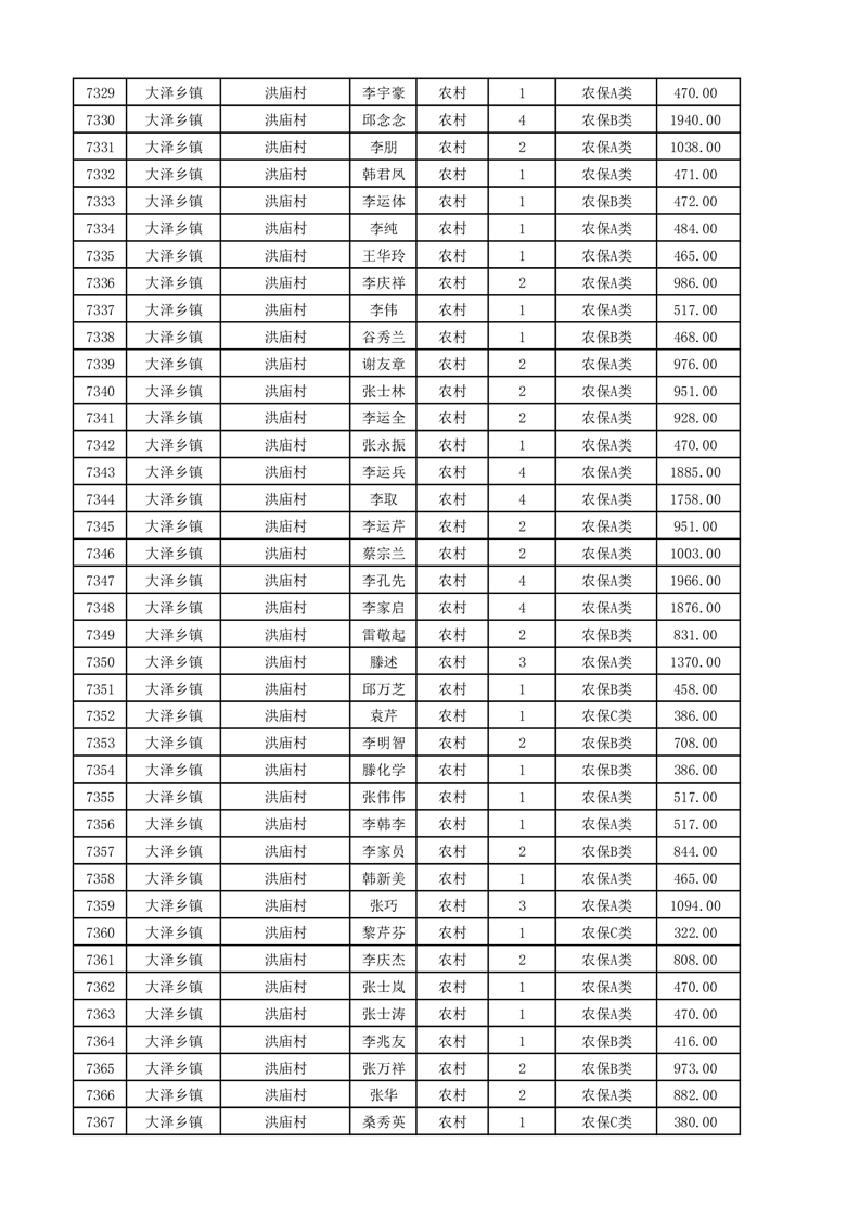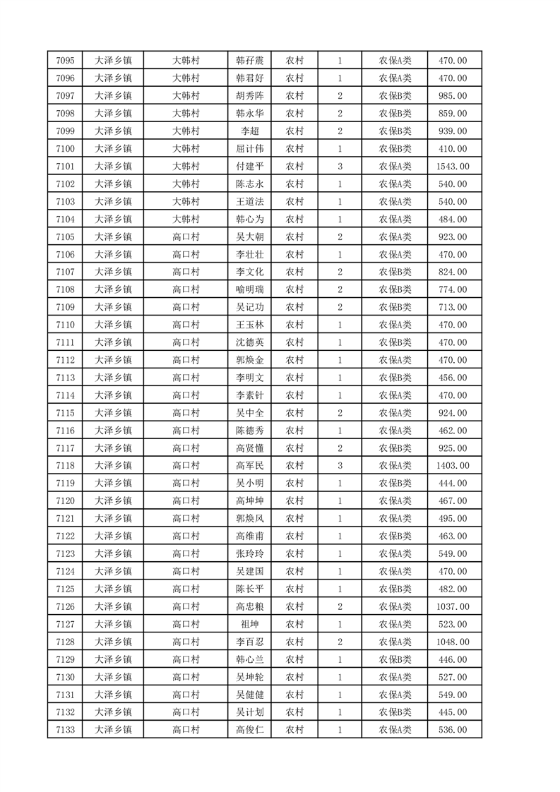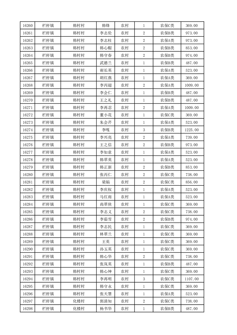 埇桥区2025年11月份农村低保花名册