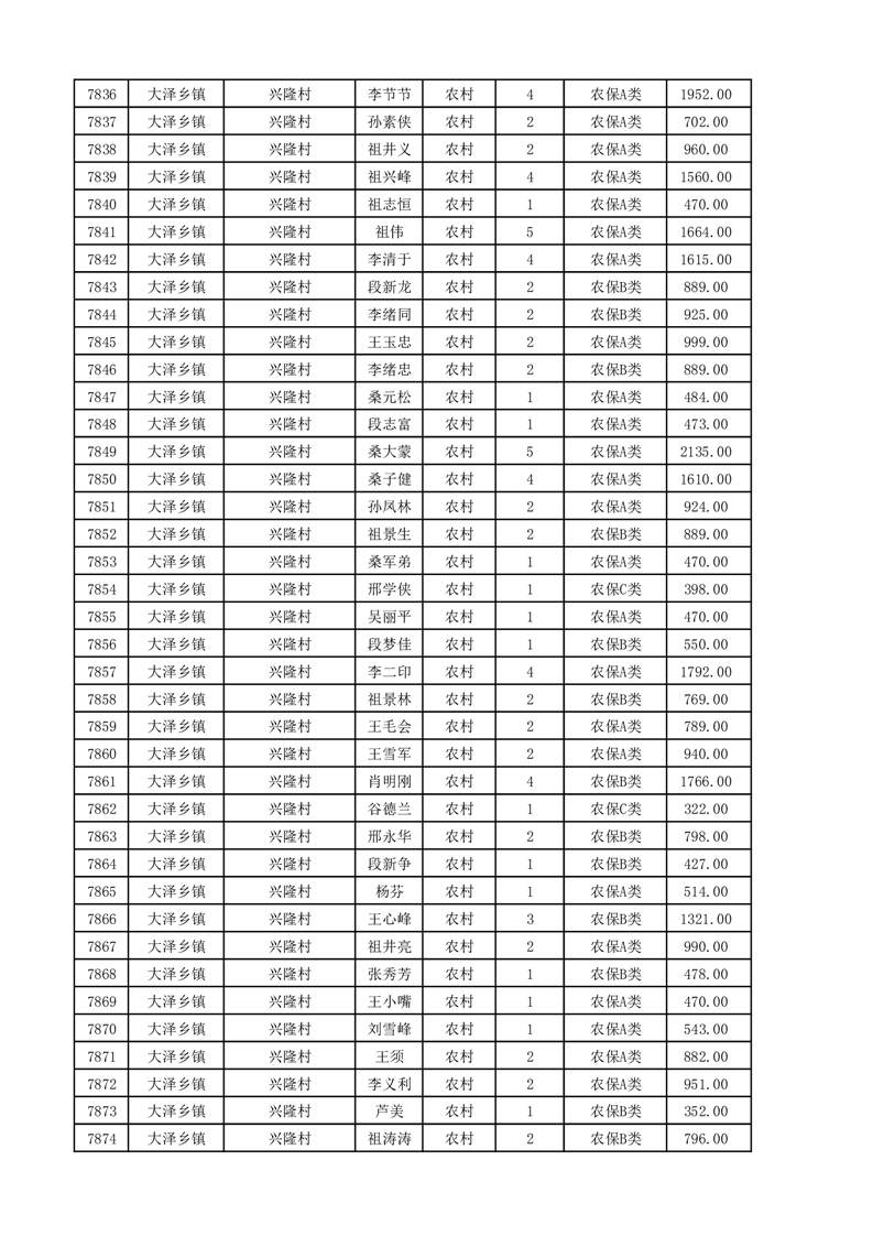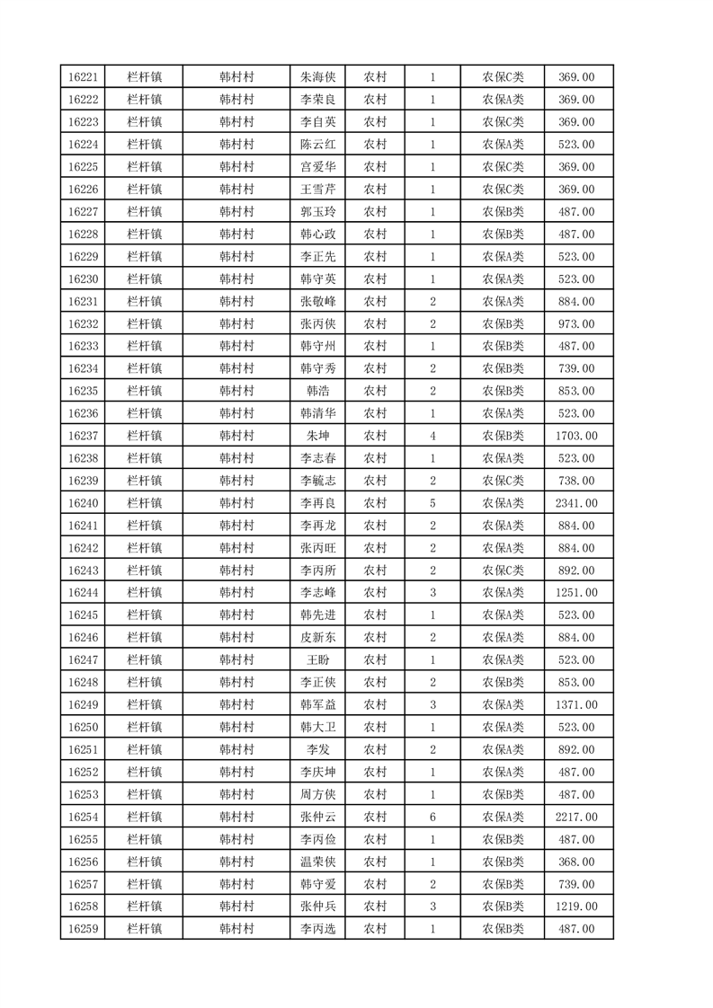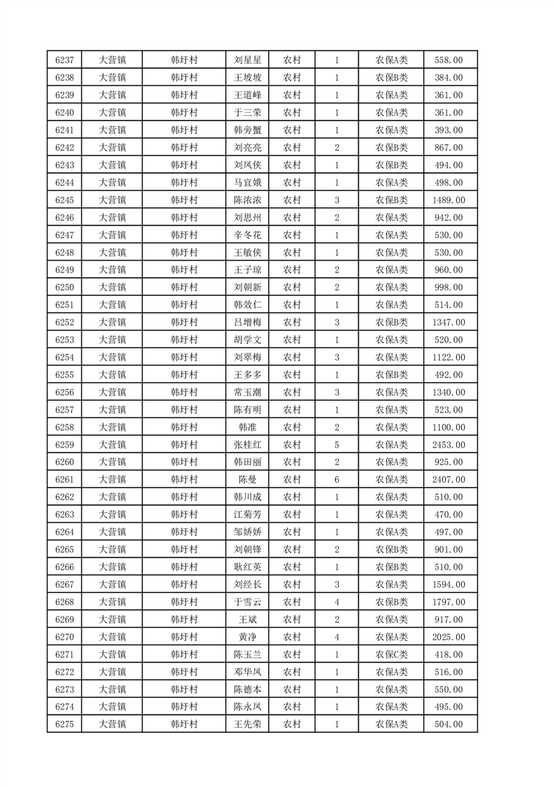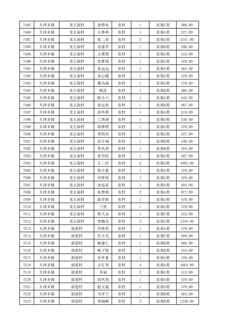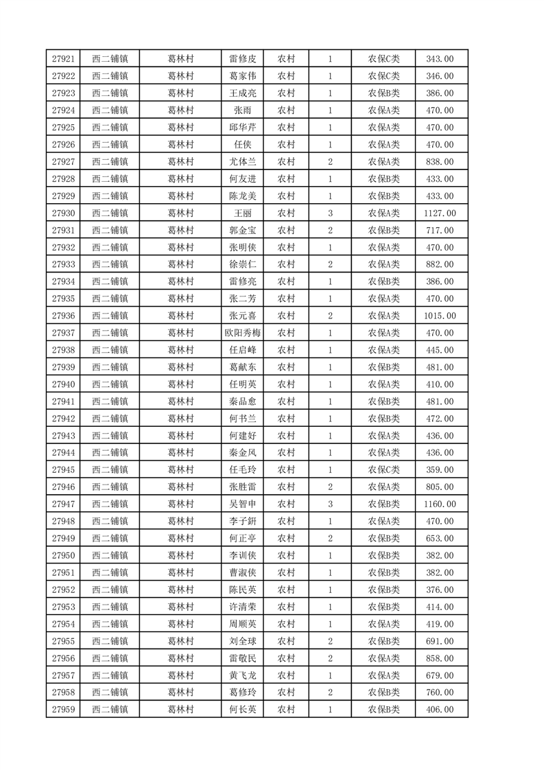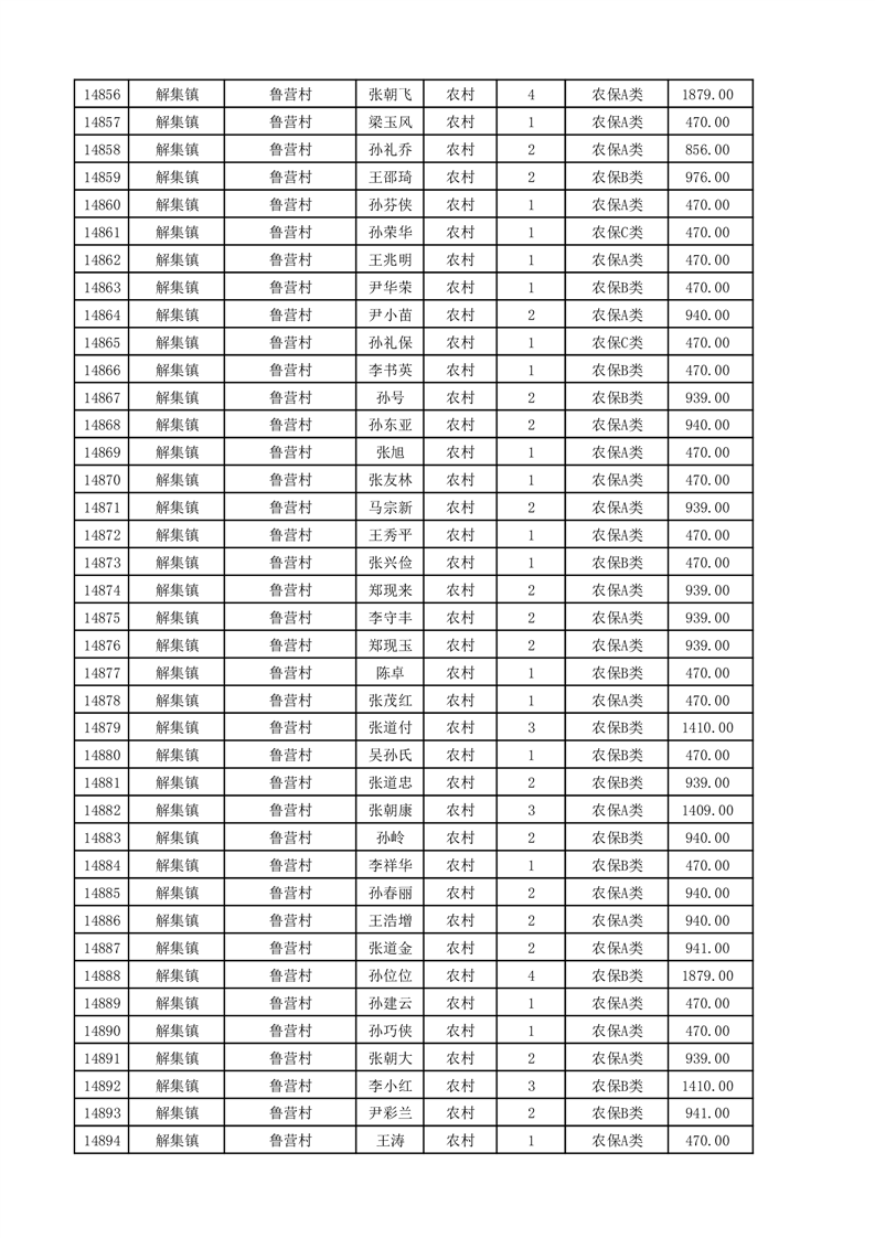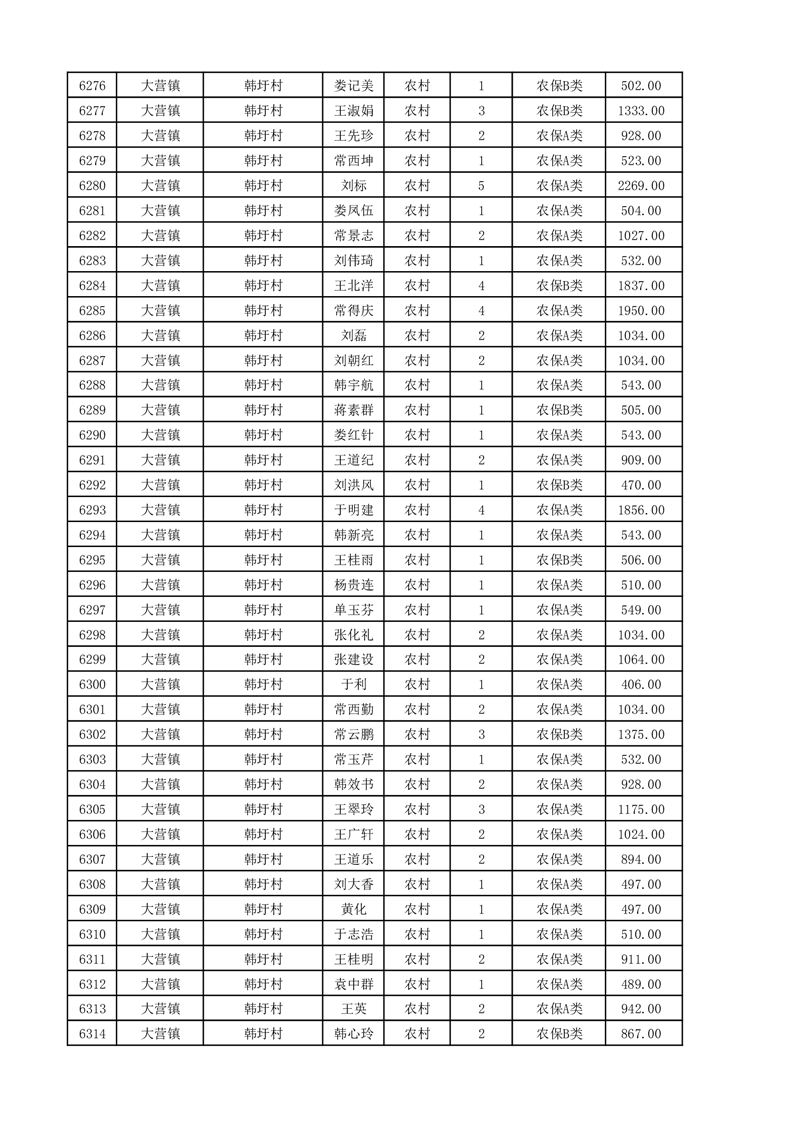 埇桥区2025年11月份农村低保花名册