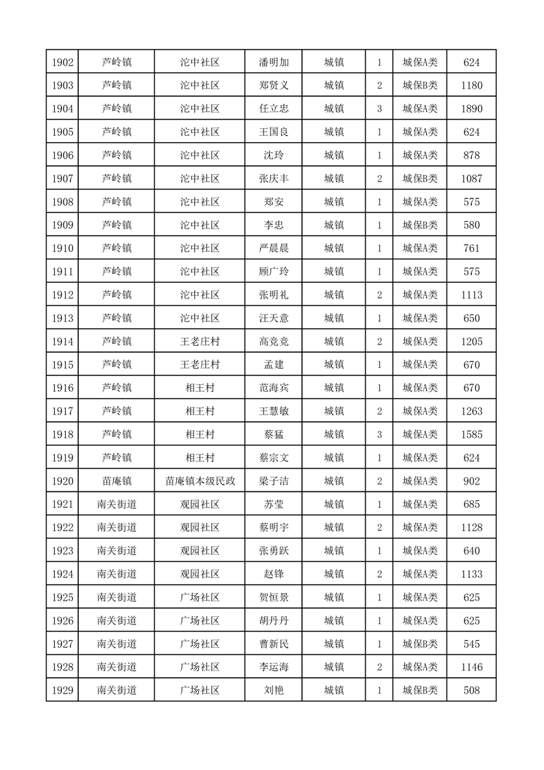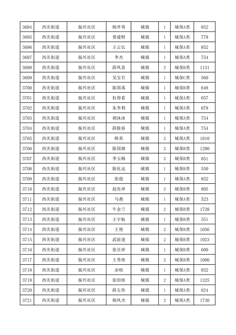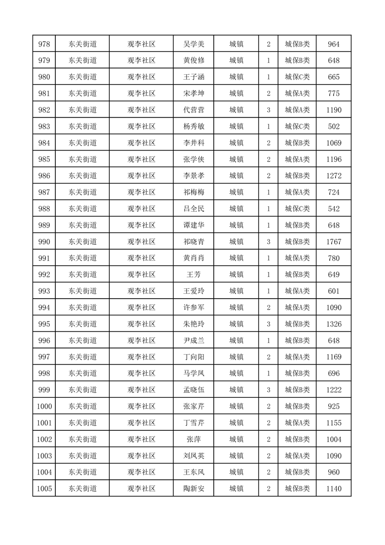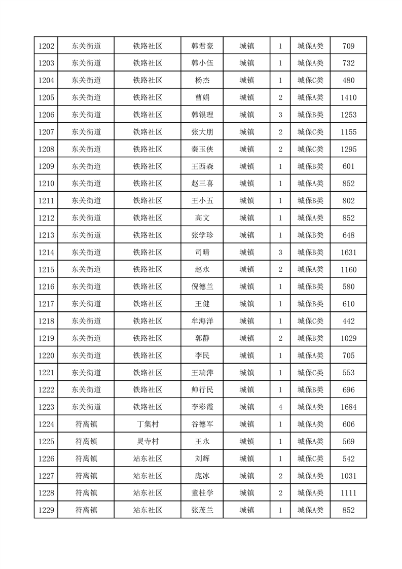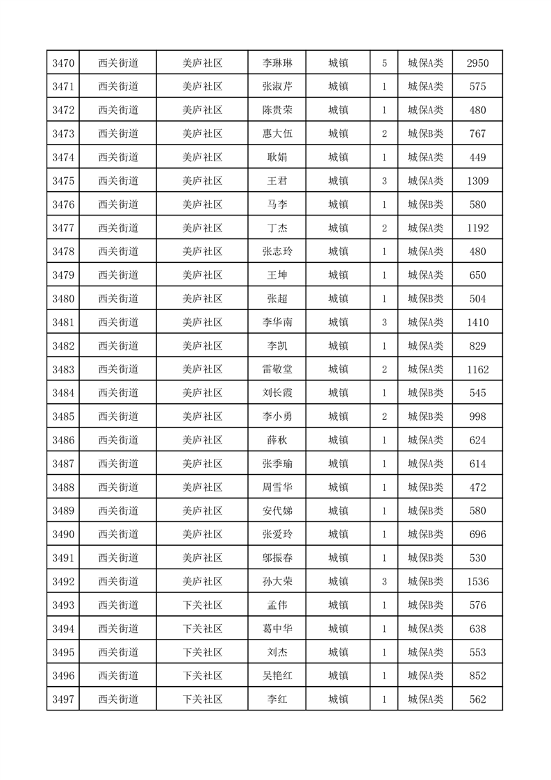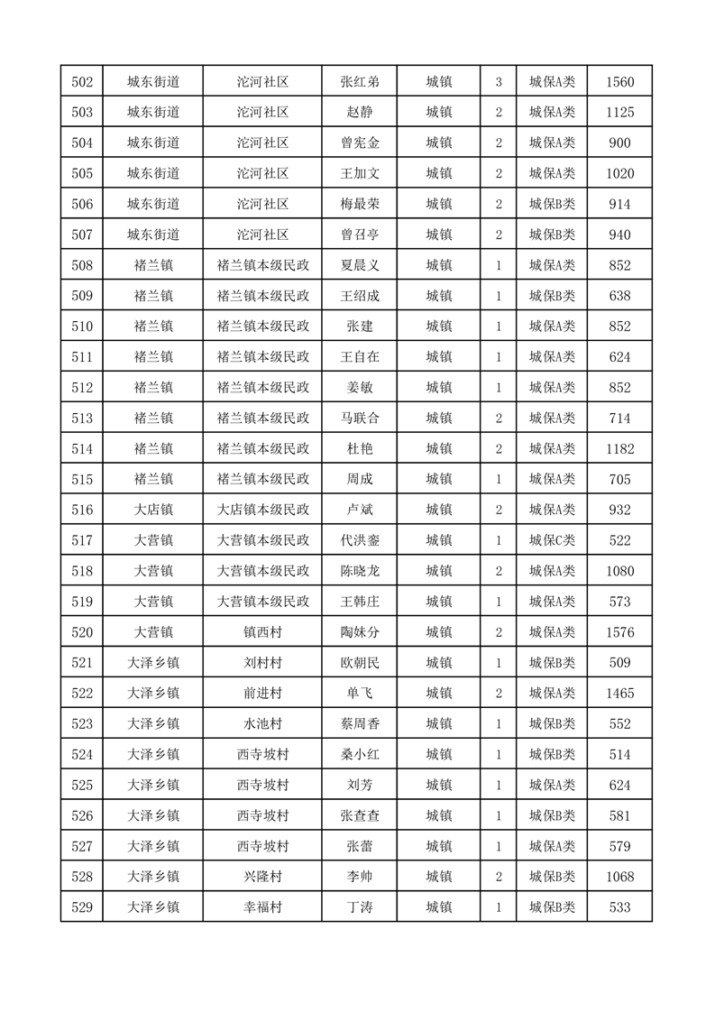 埇桥区2025年11月份城镇低保花名册