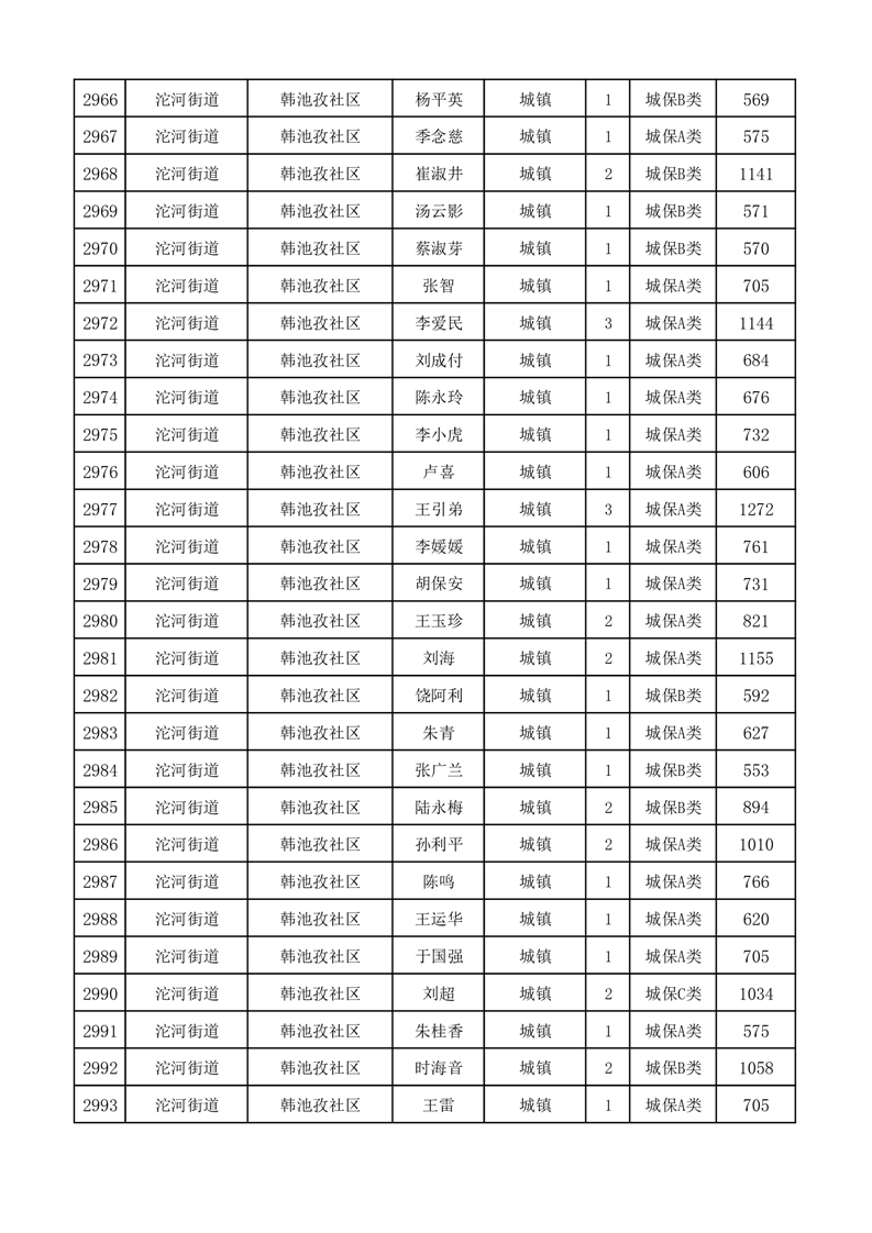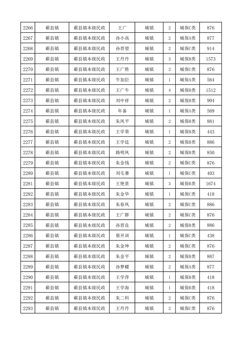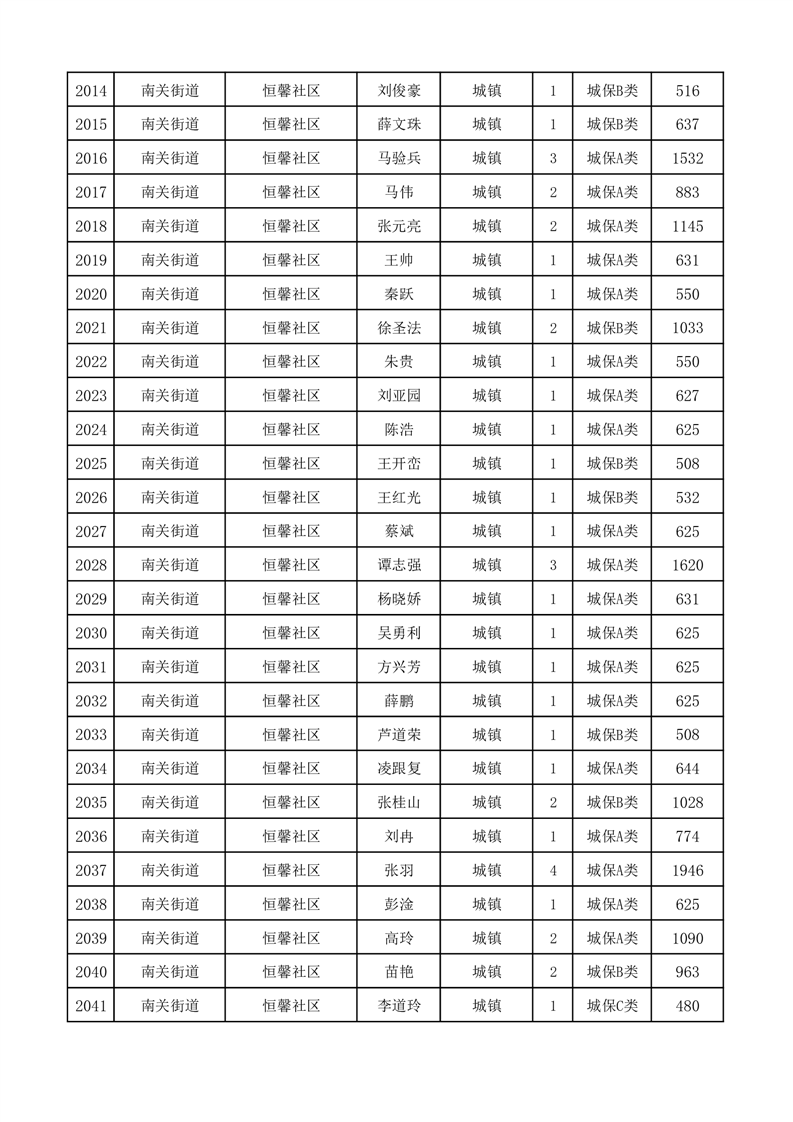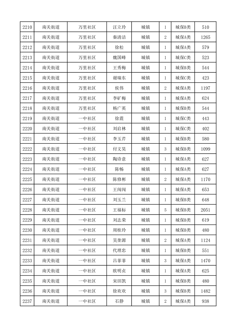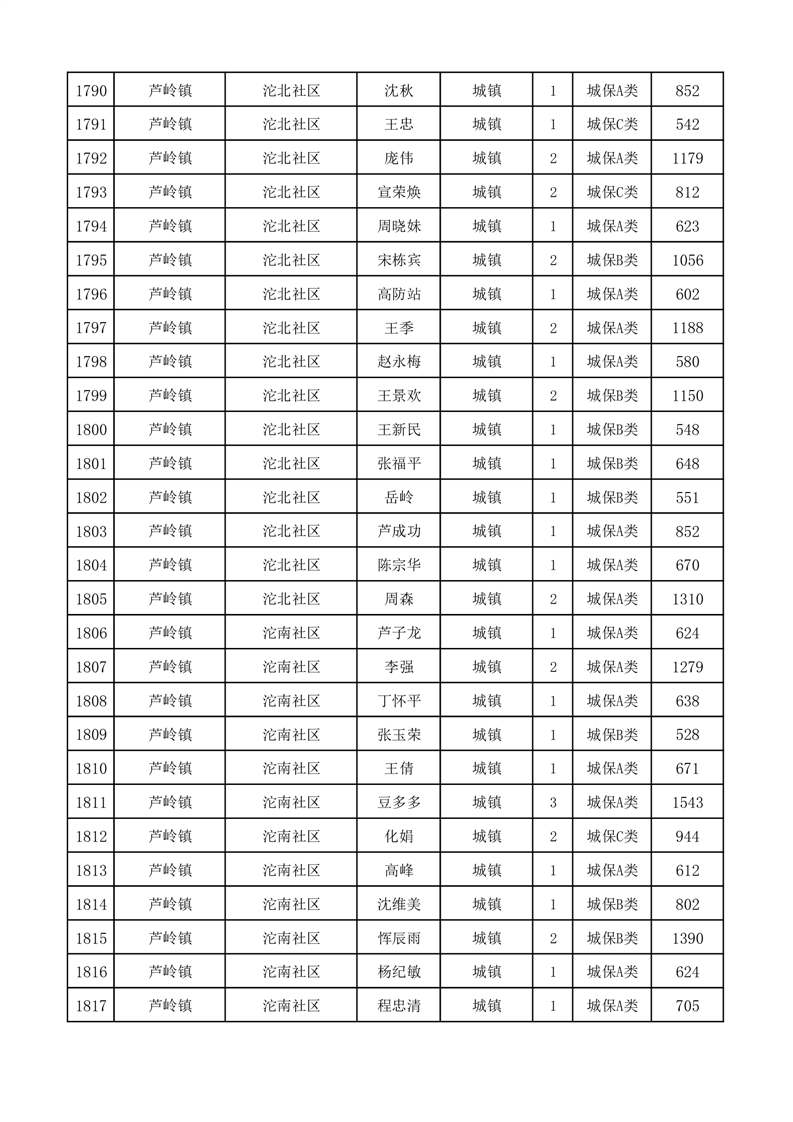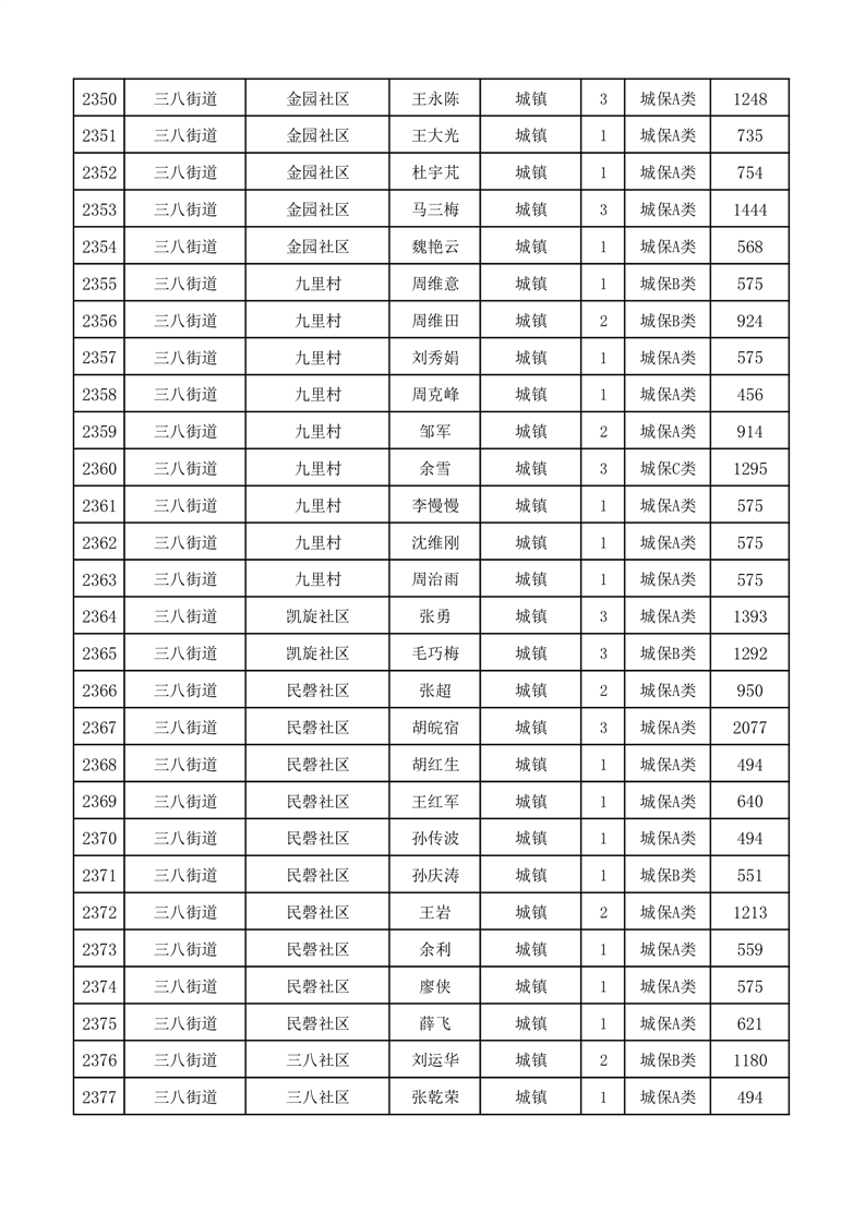 埇桥区2025年11月份城镇低保花名册