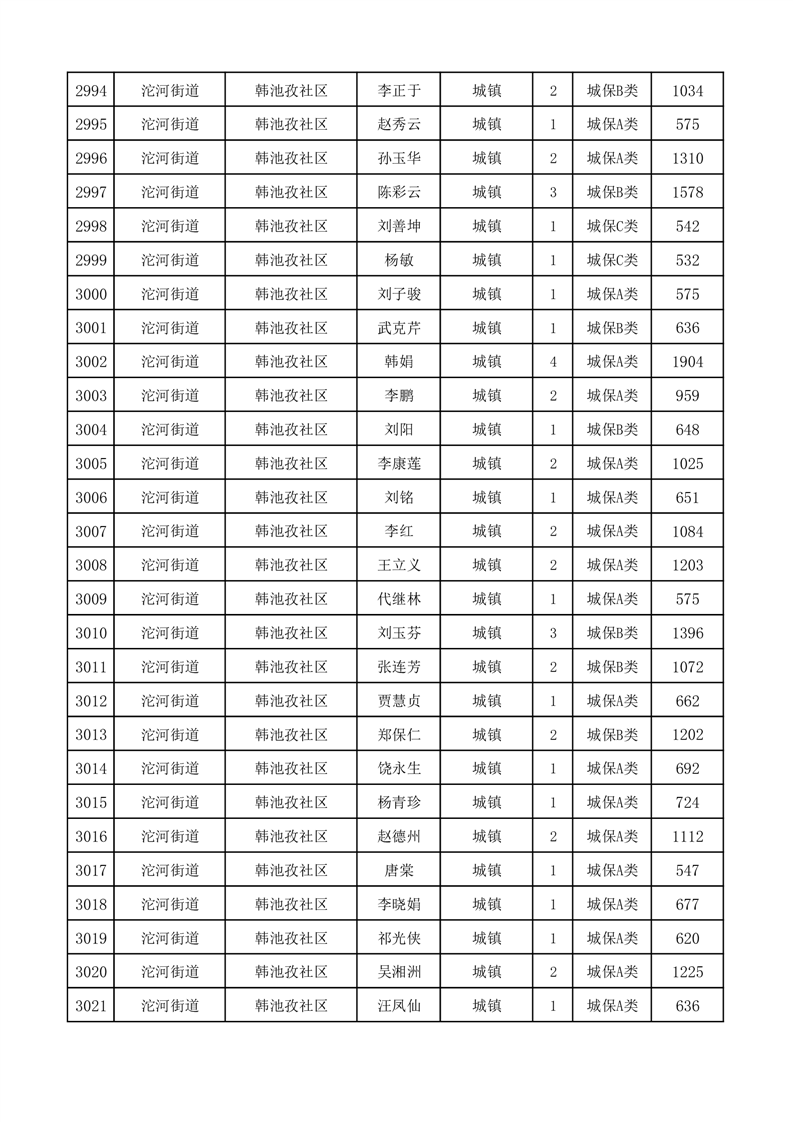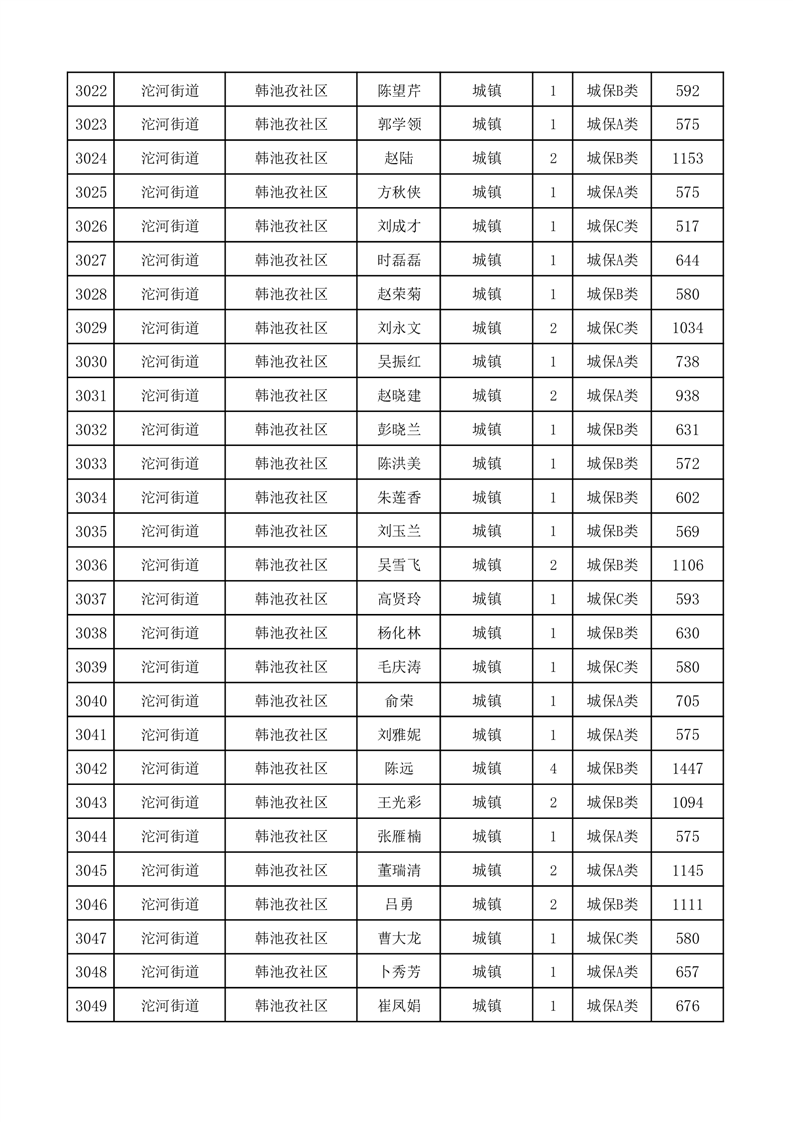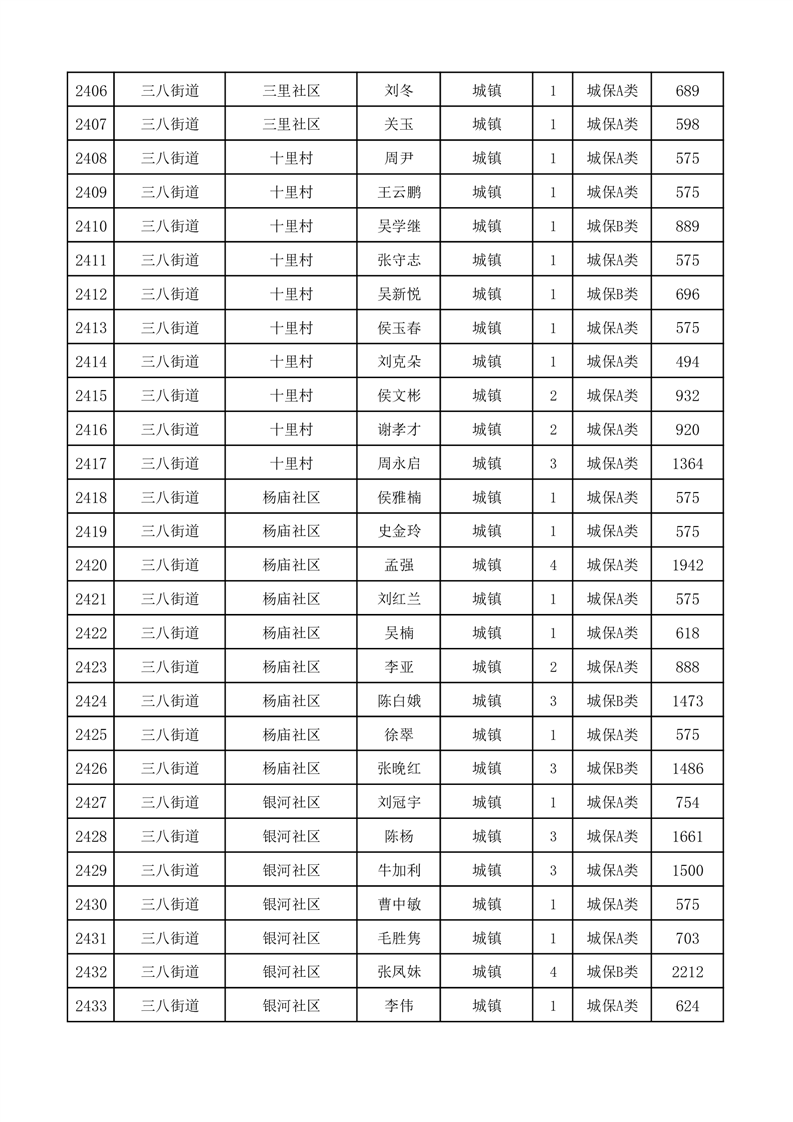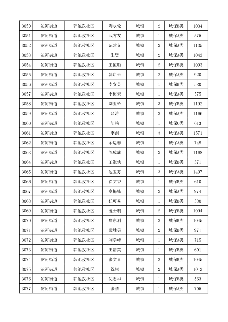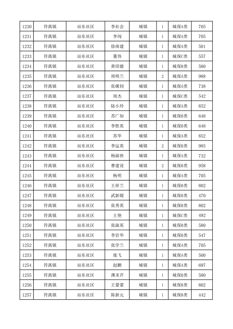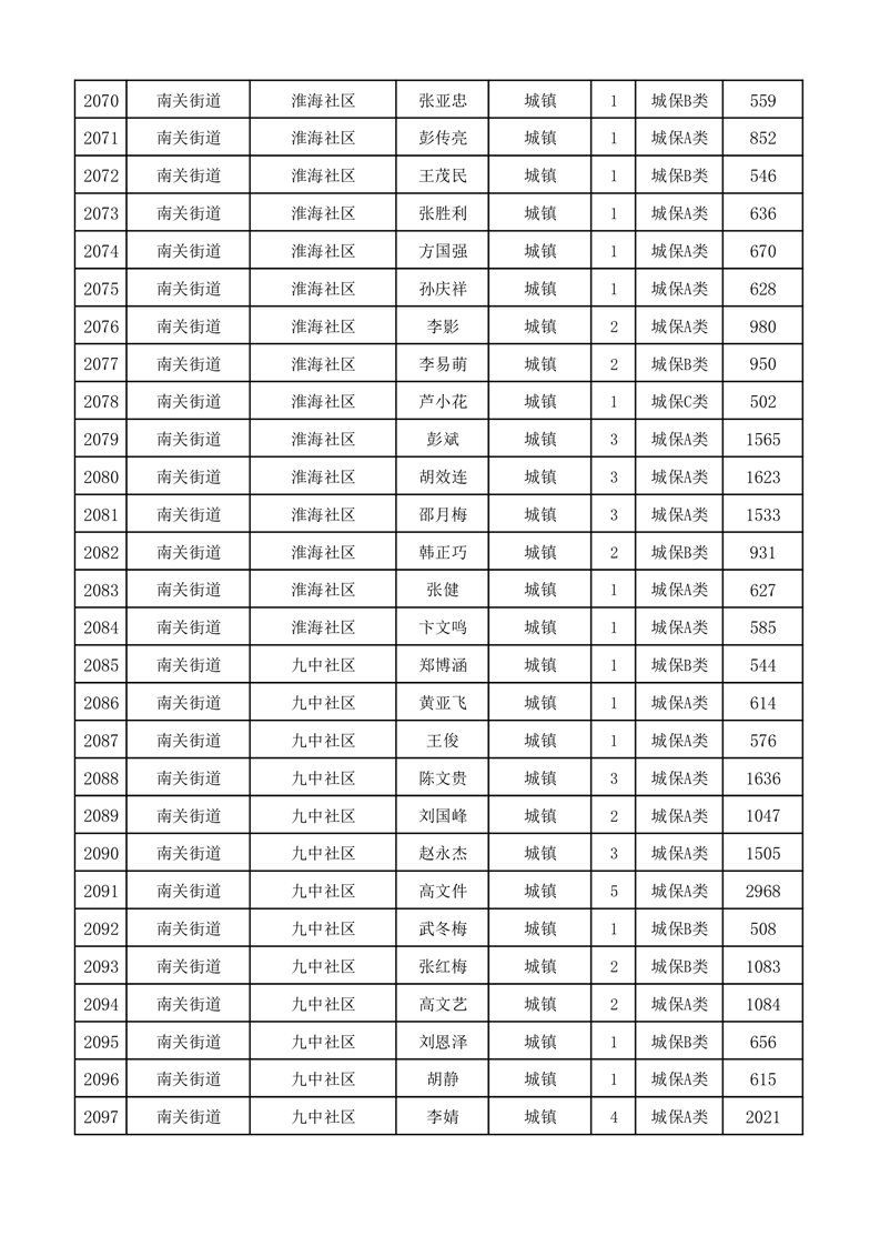 埇桥区2025年11月份城镇低保花名册