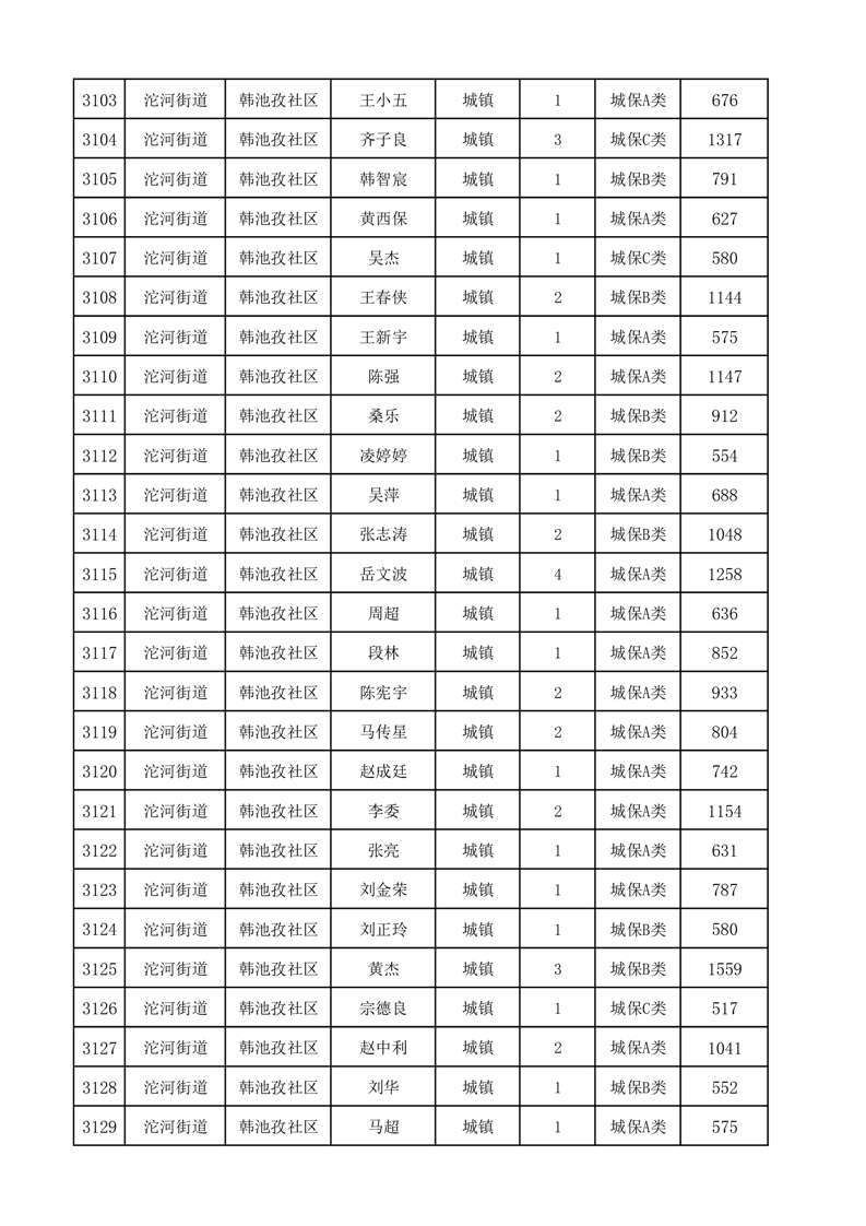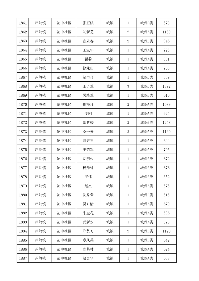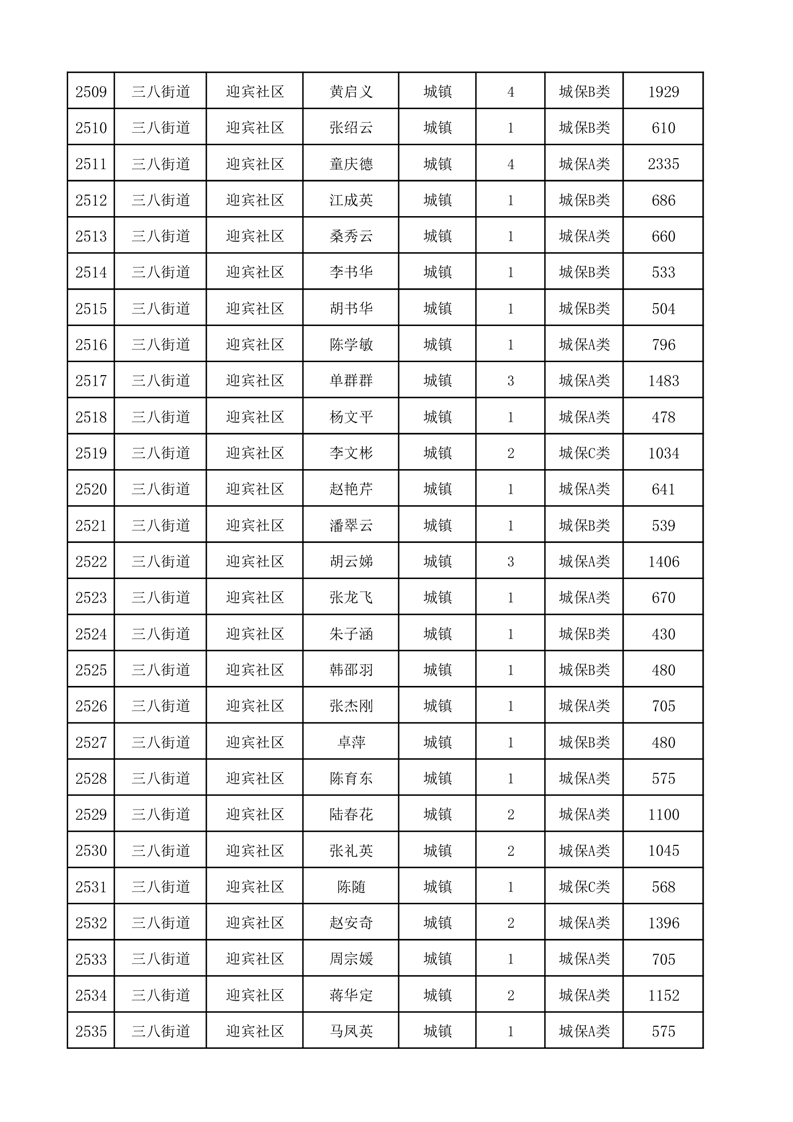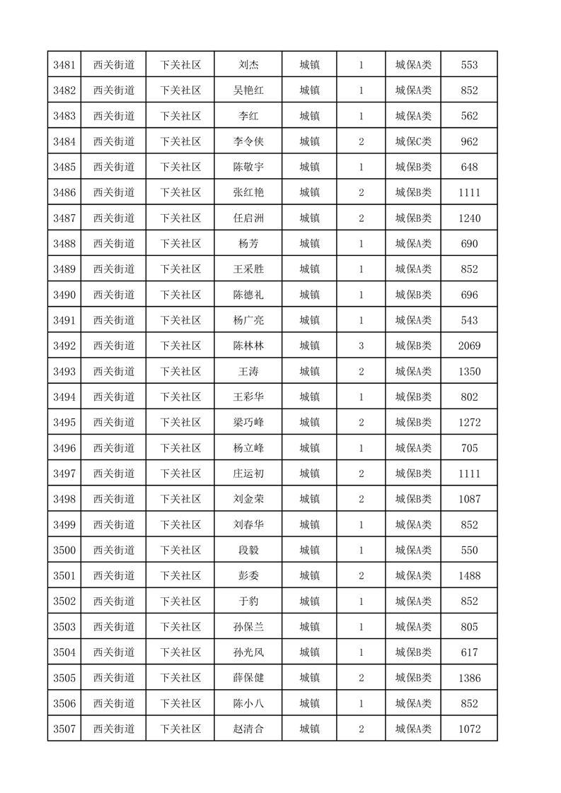 埇桥区2025年12月份城镇低保花名册