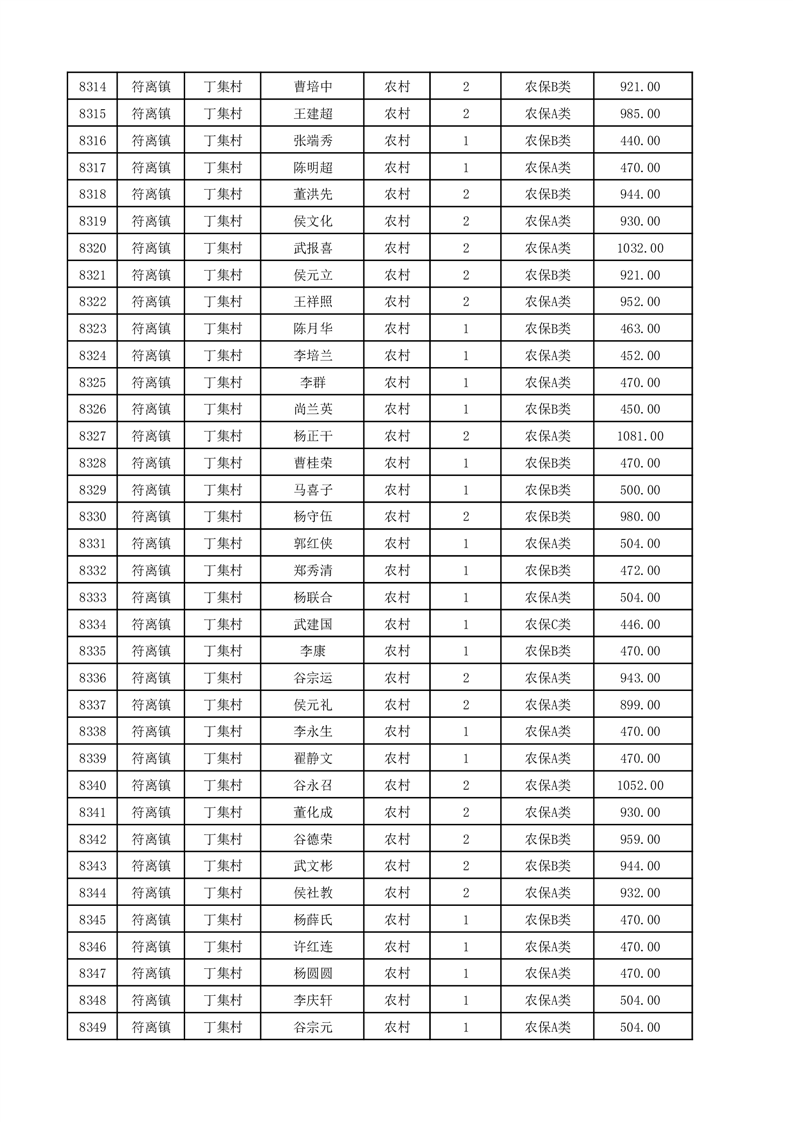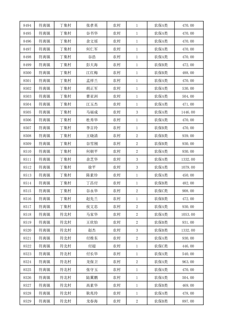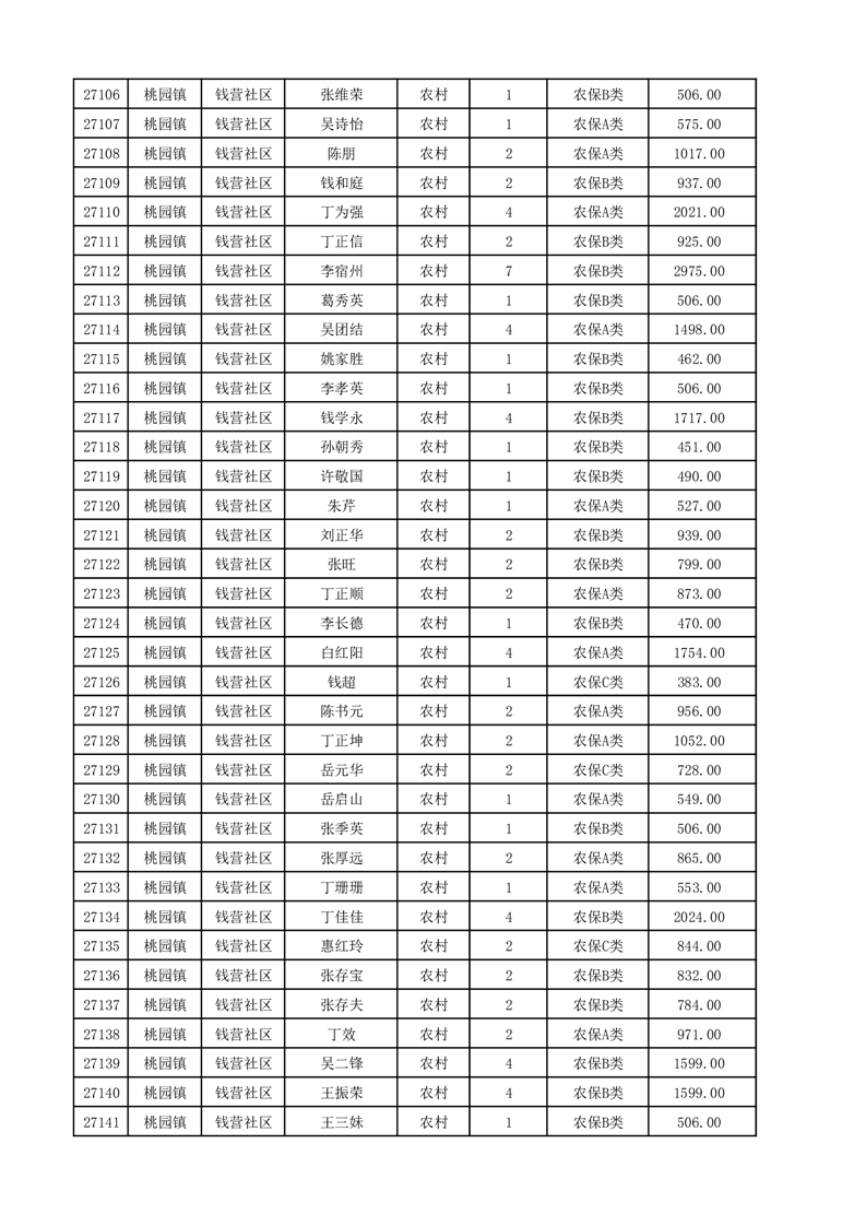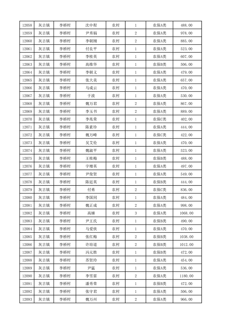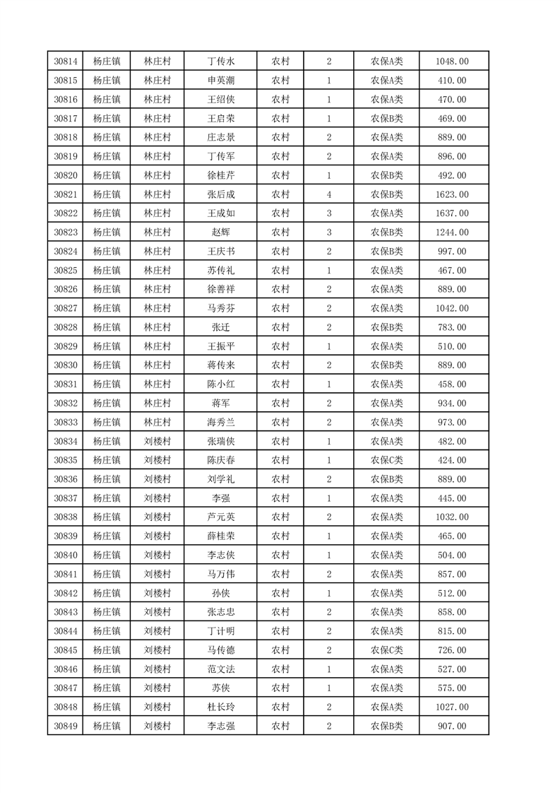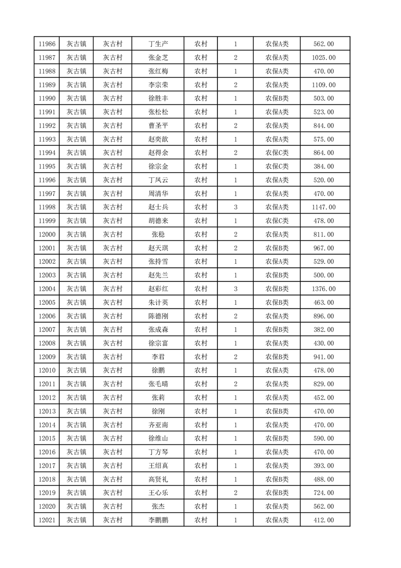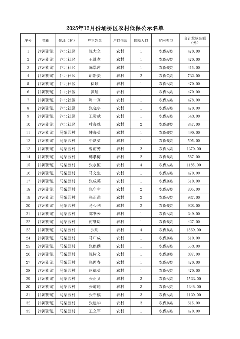 埇桥区2025年12月份农村低保花名册