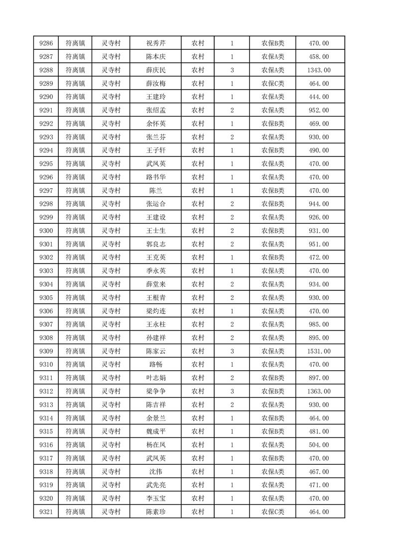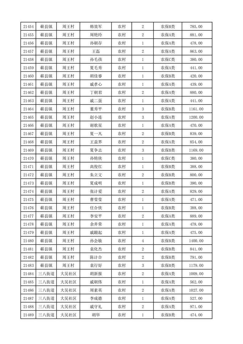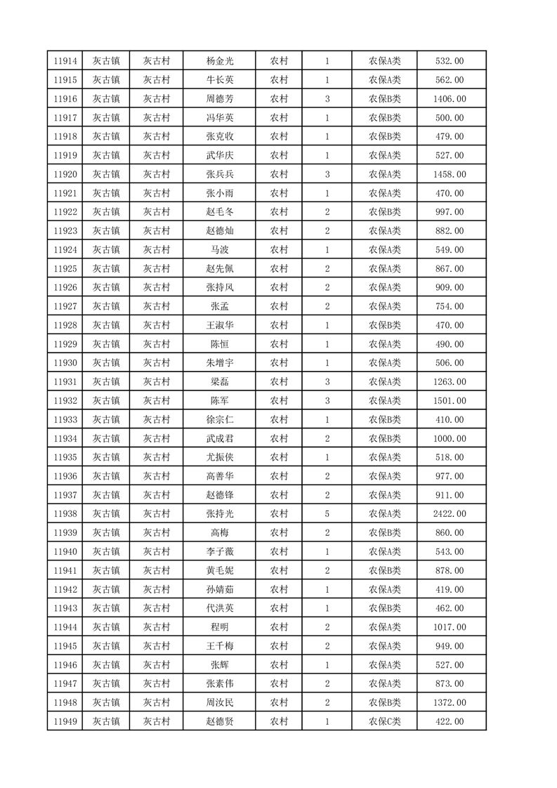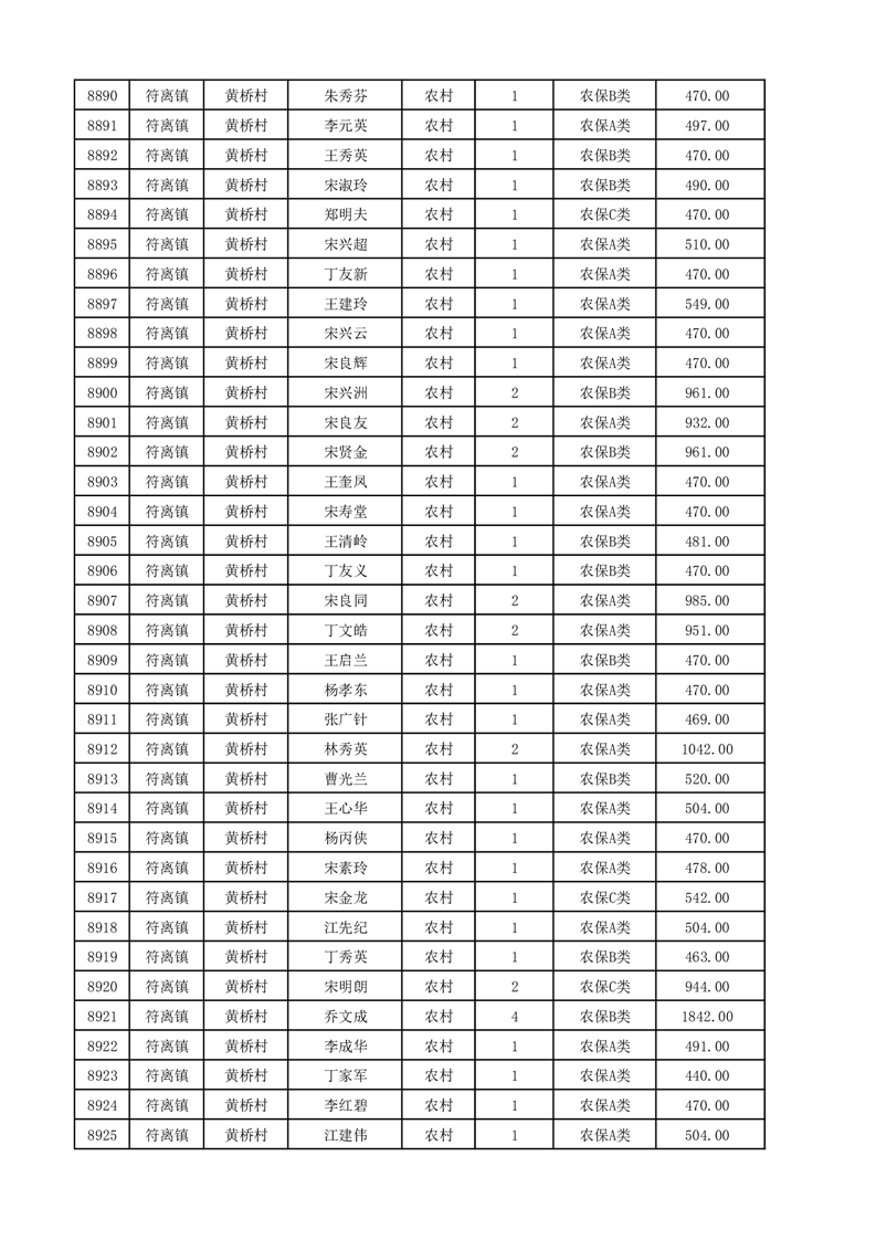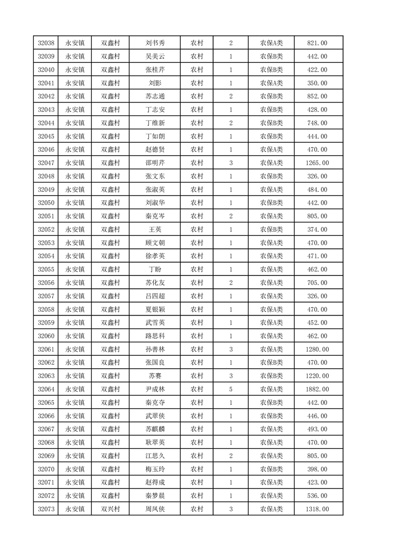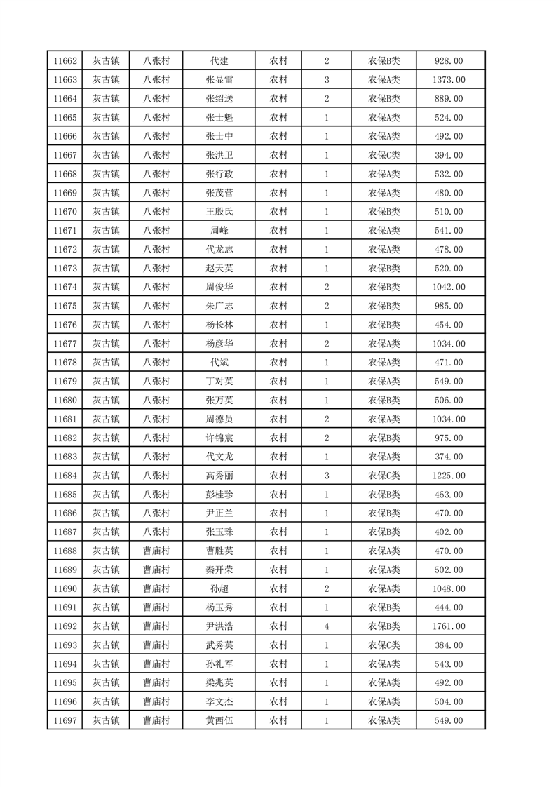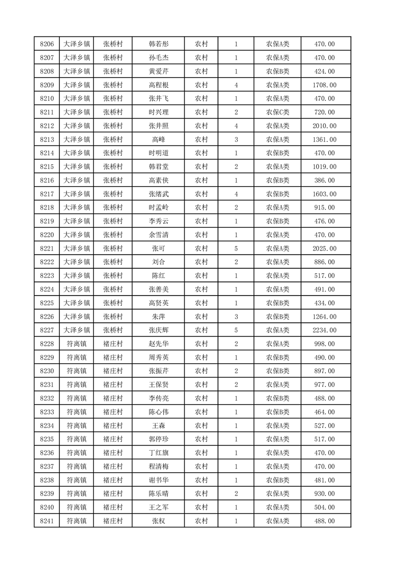 埇桥区2025年12月份农村低保花名册