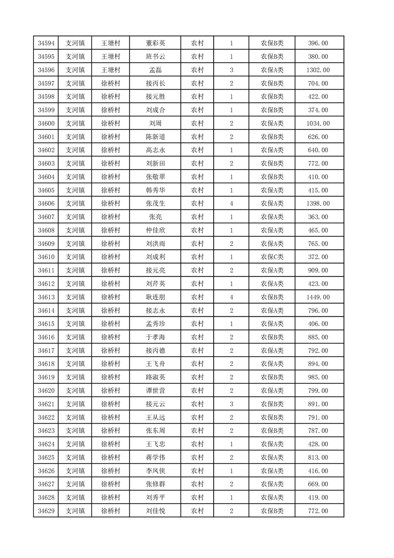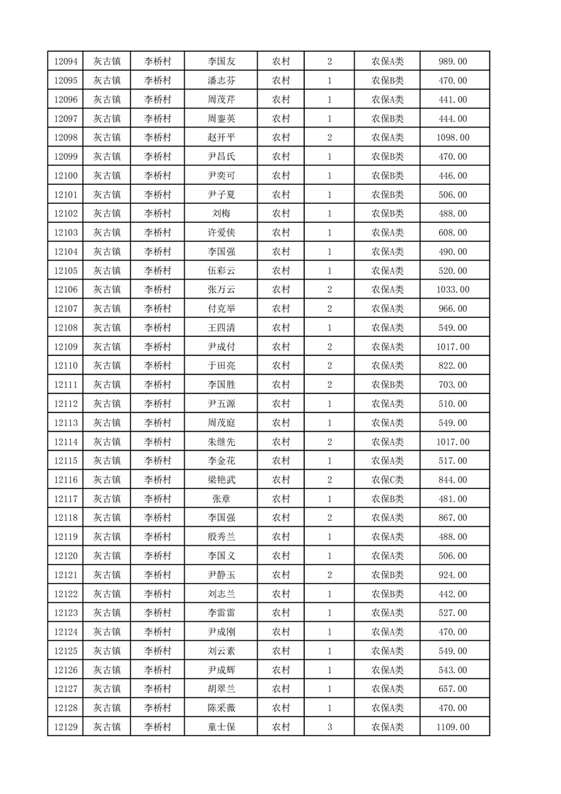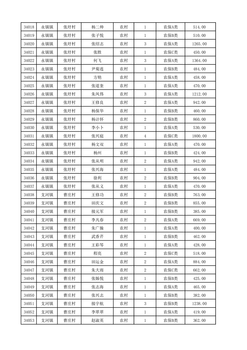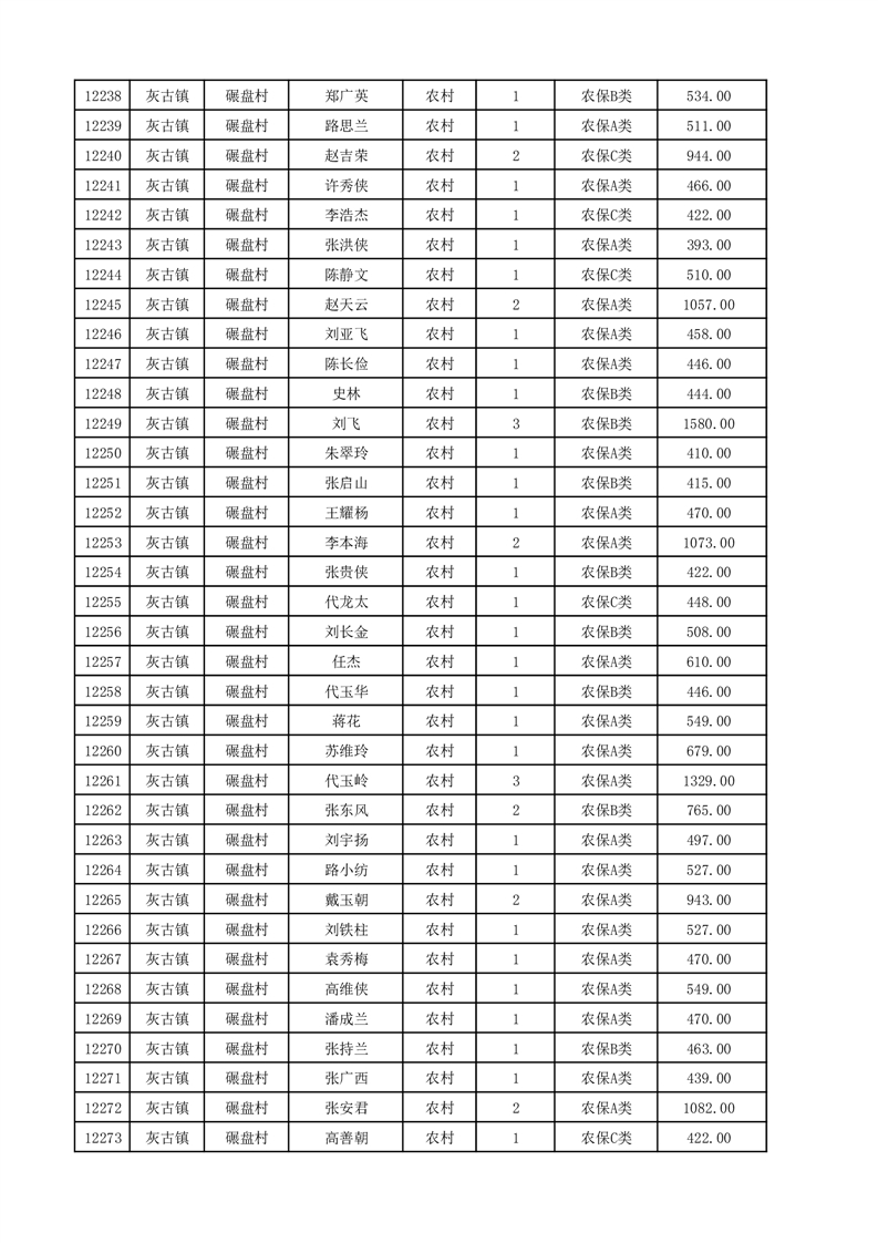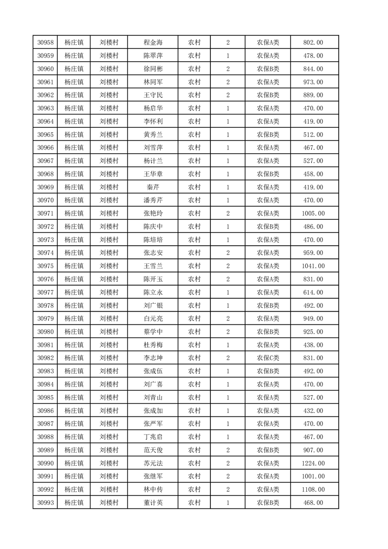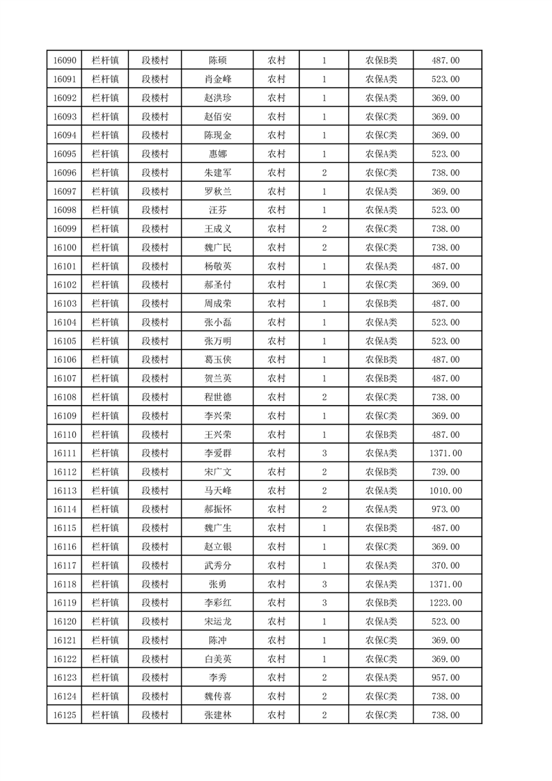 埇桥区2025年12月份农村低保花名册