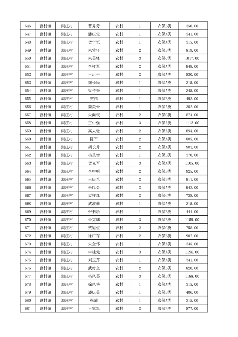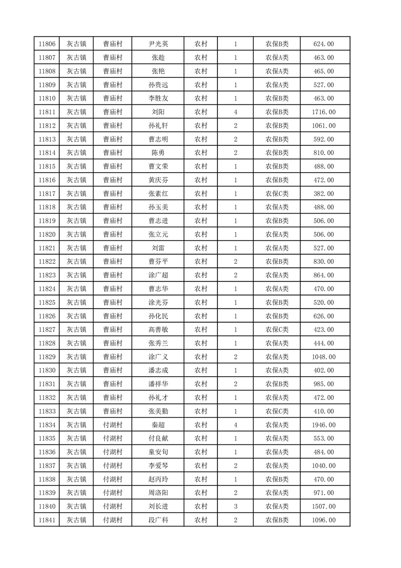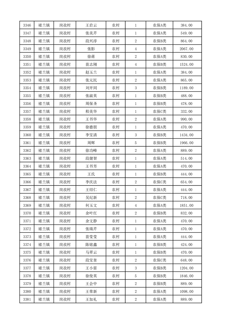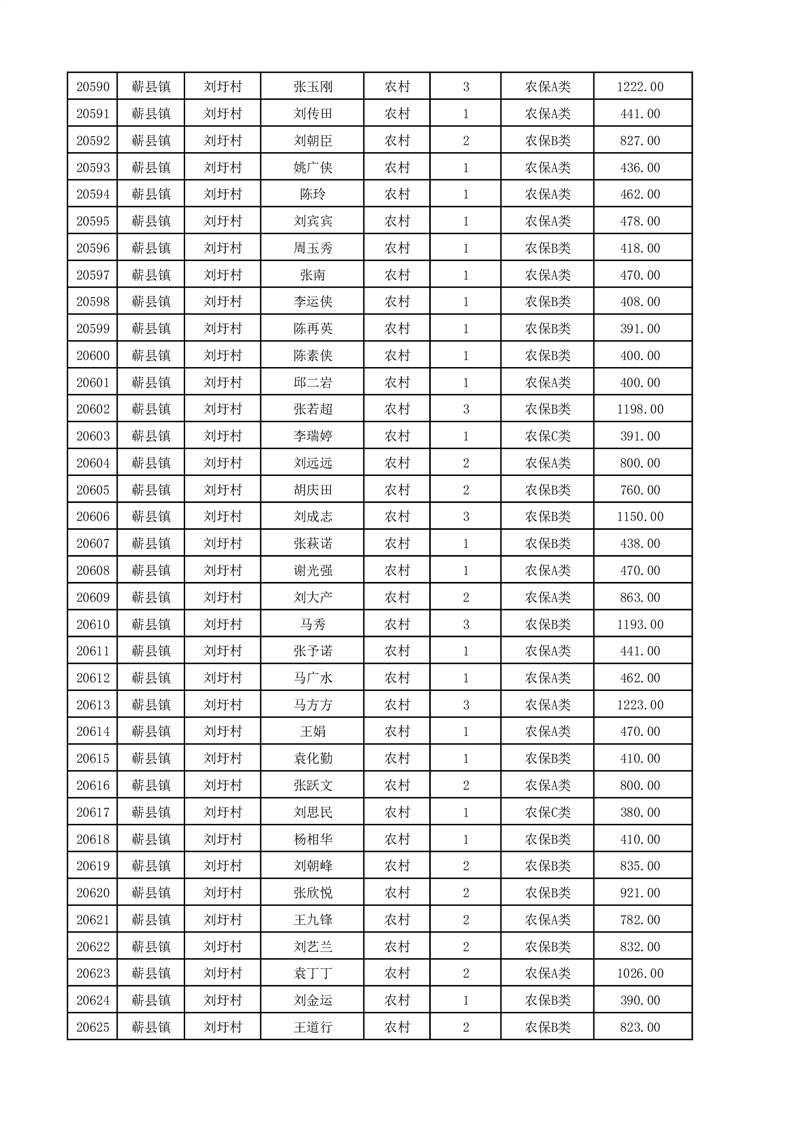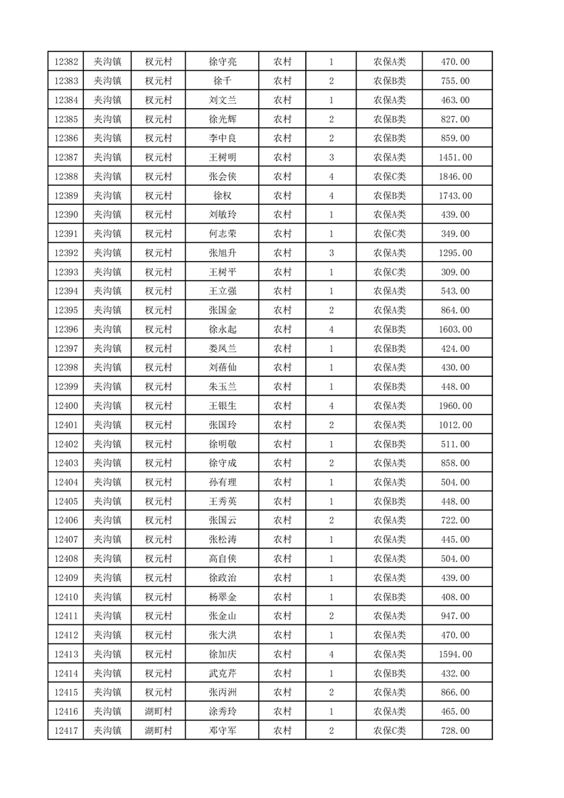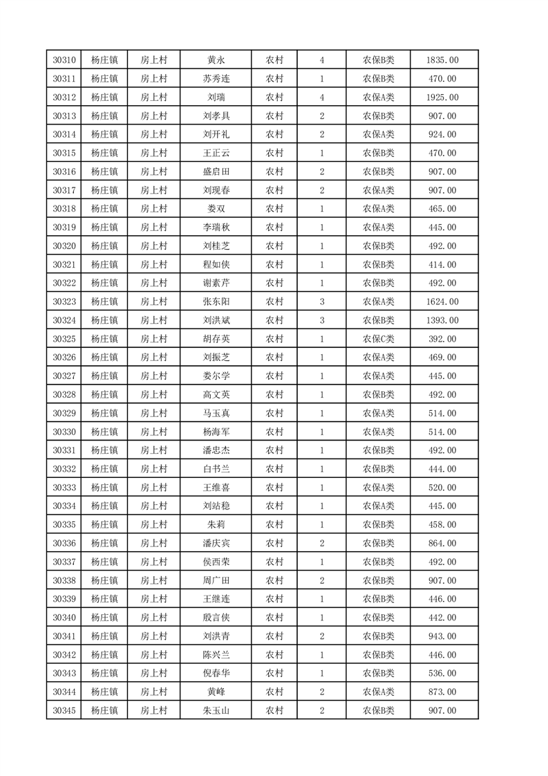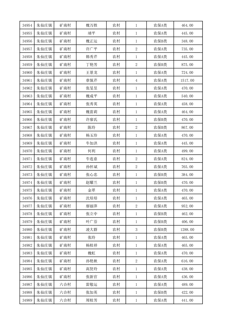 埇桥区2025年12月份农村低保花名册