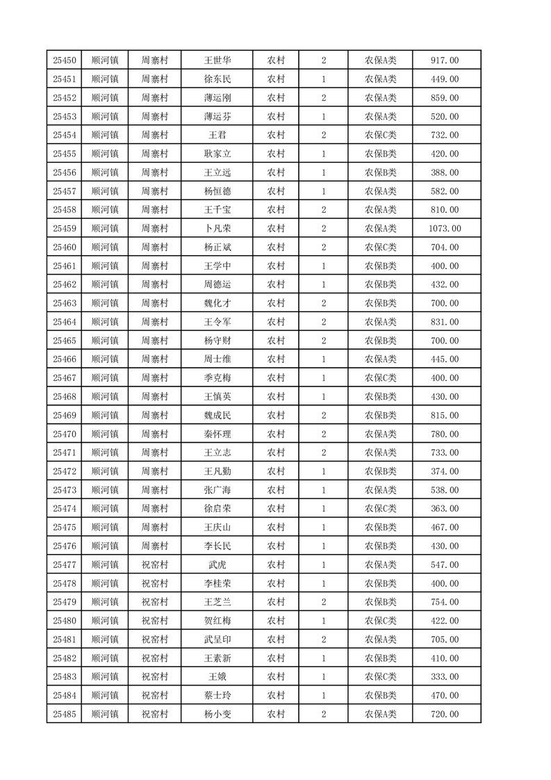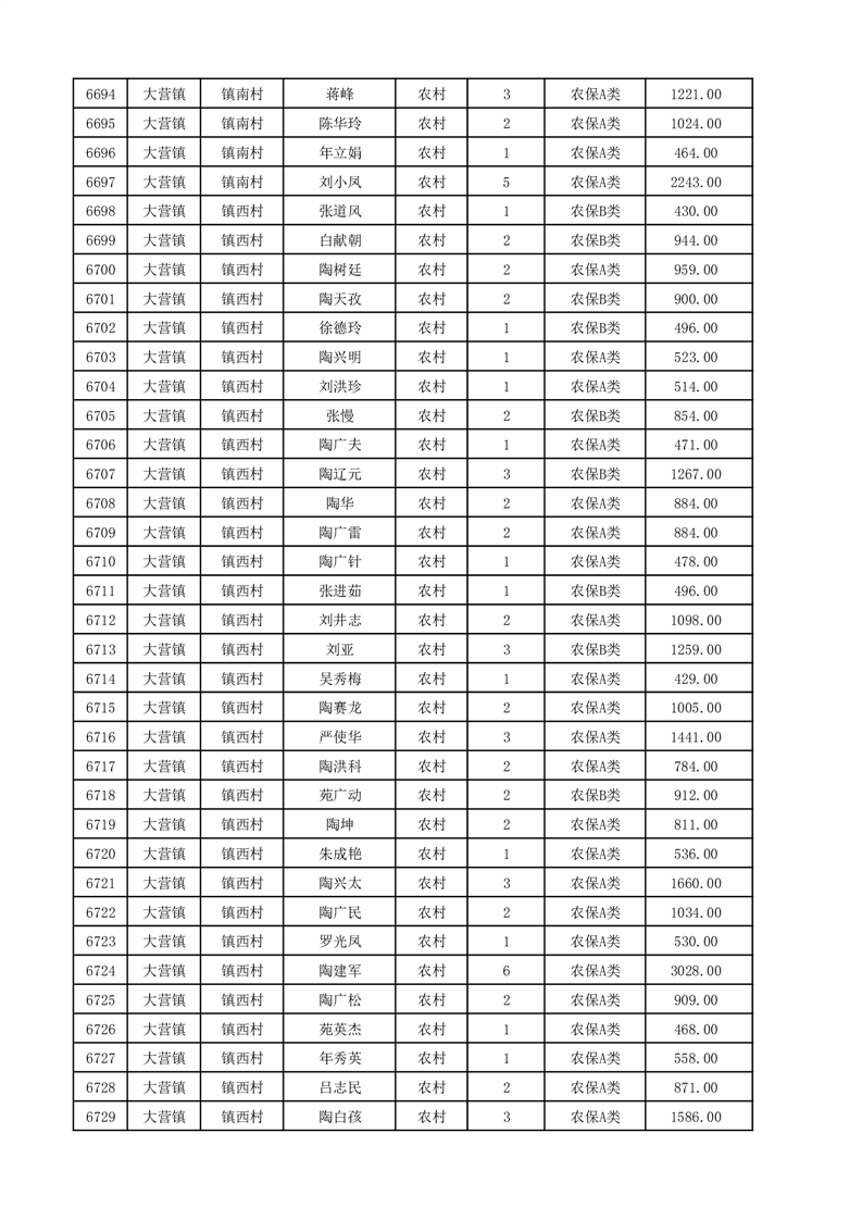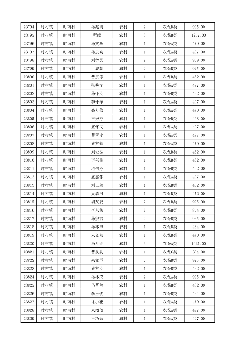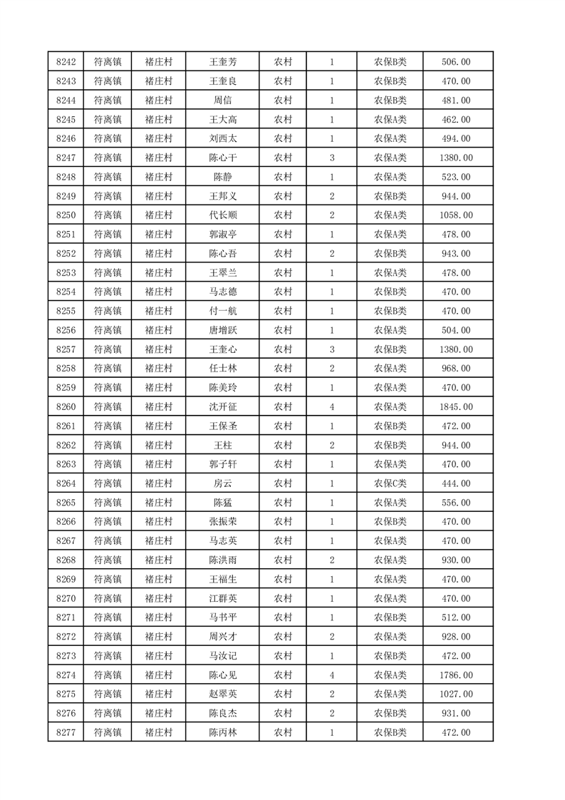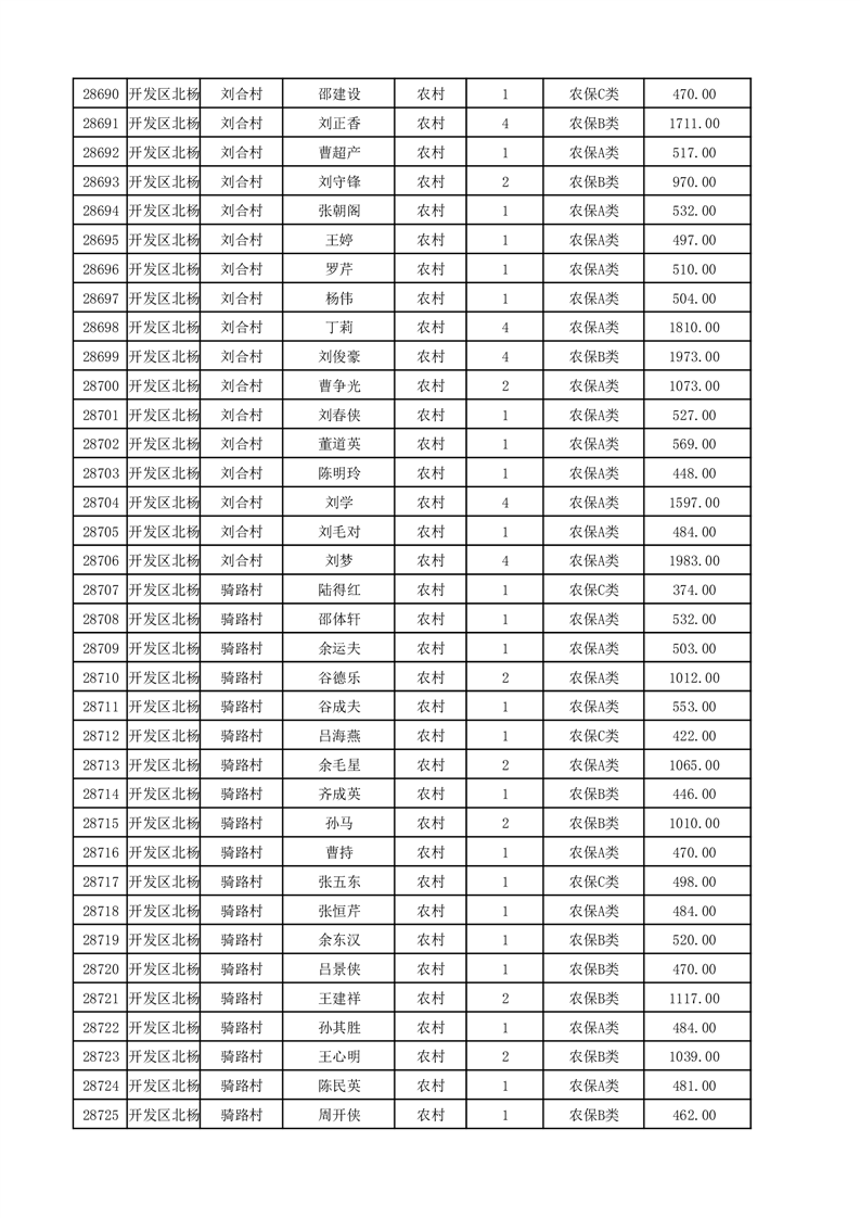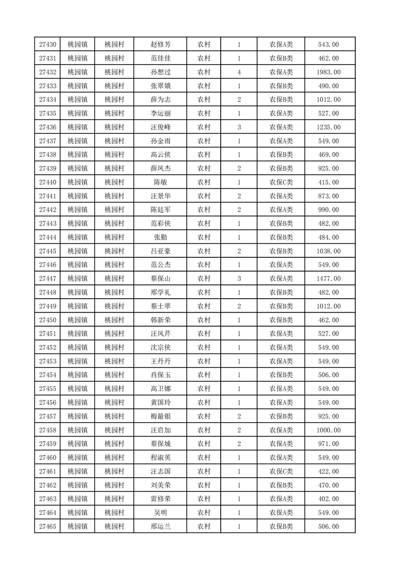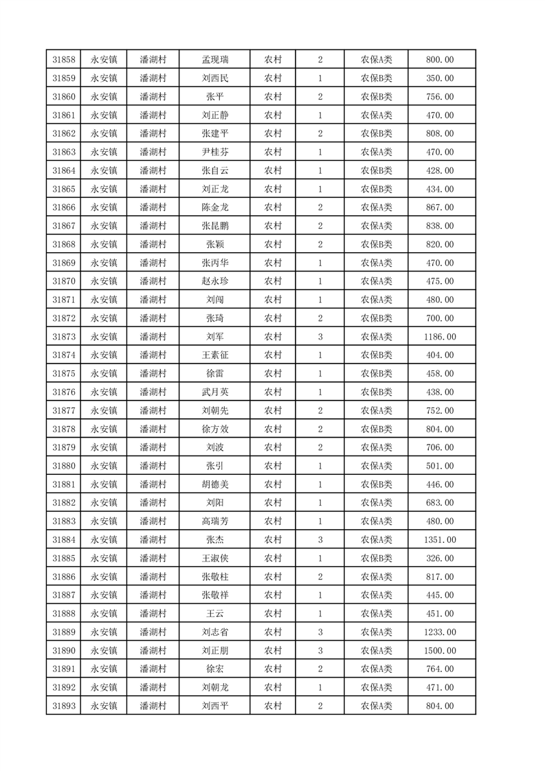 埇桥区2025年12月份农村低保花名册