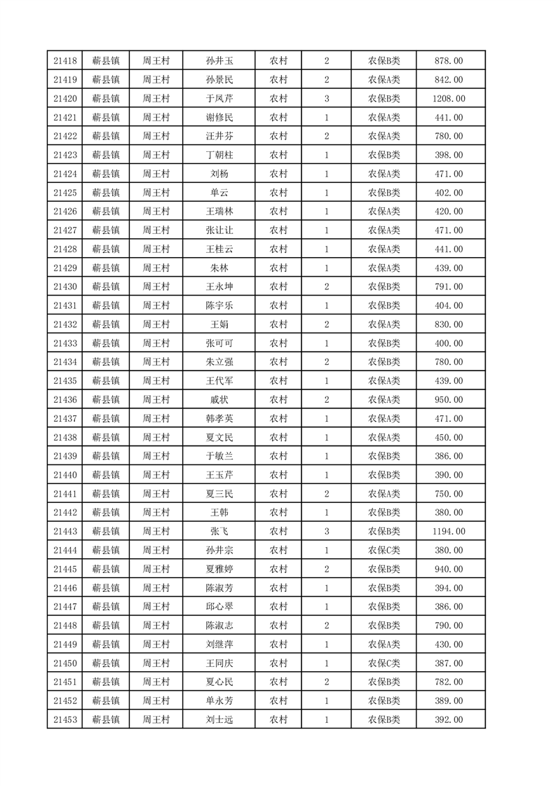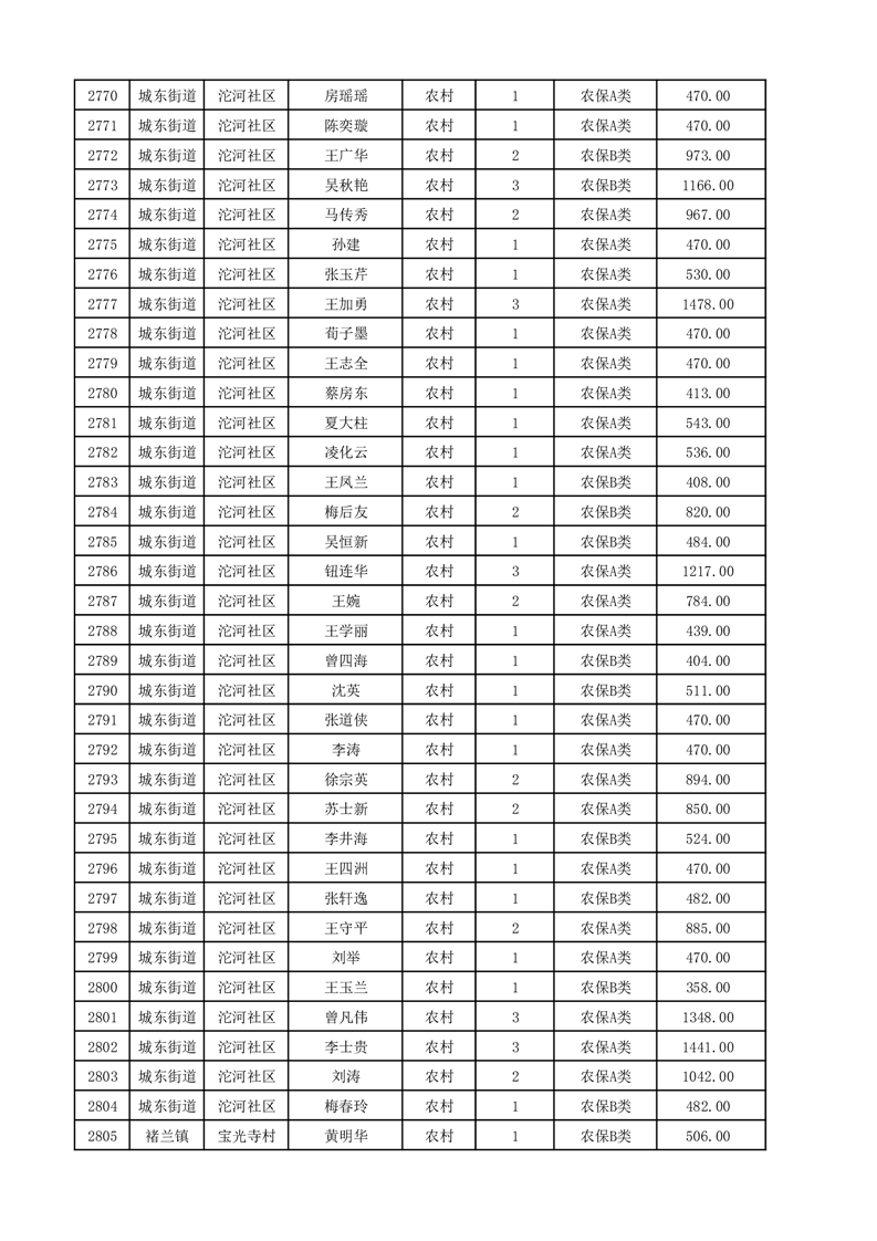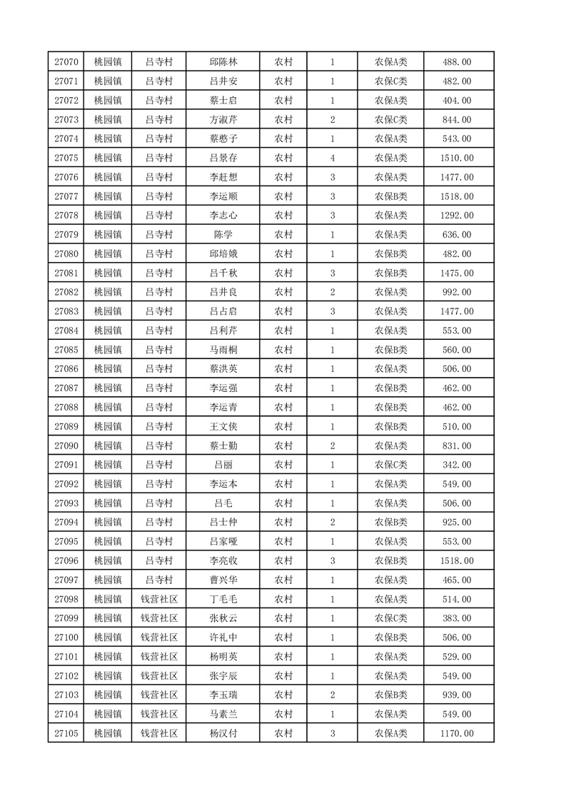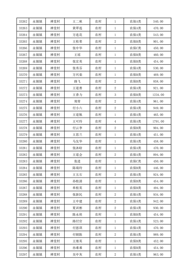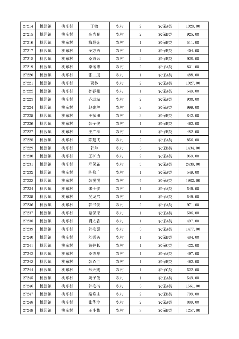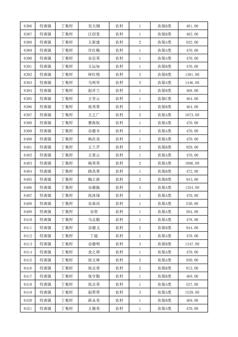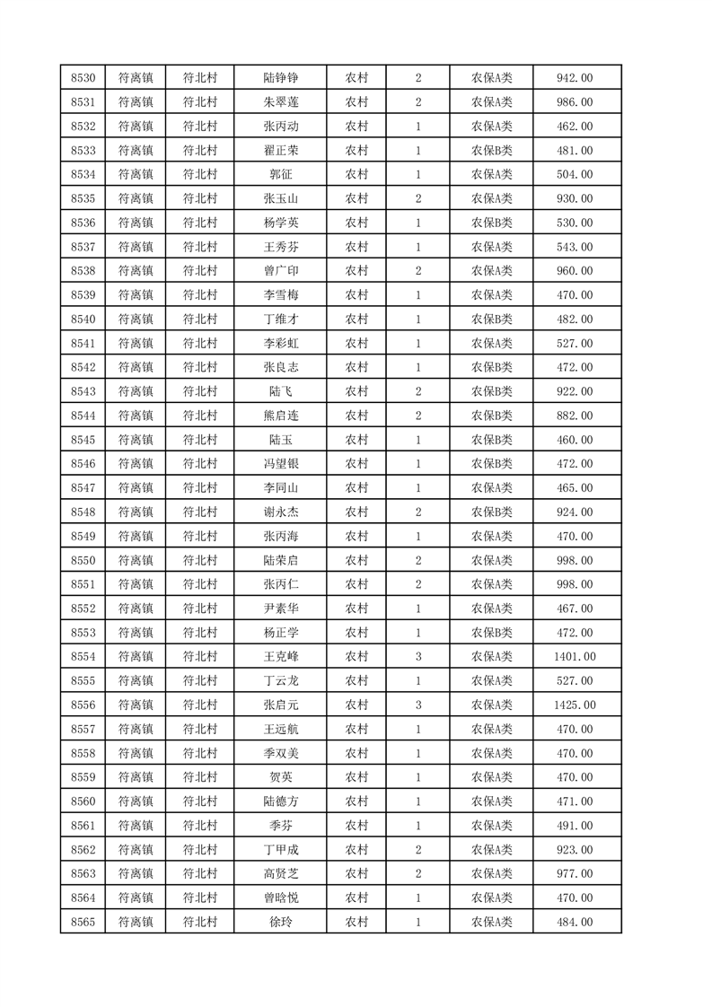 埇桥区2025年12月份农村低保花名册
