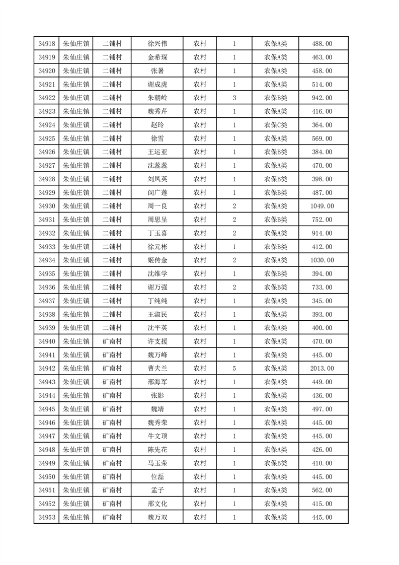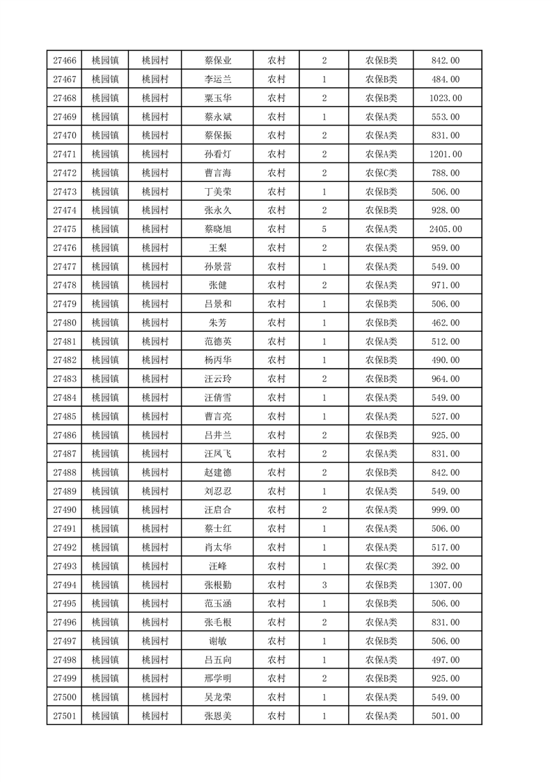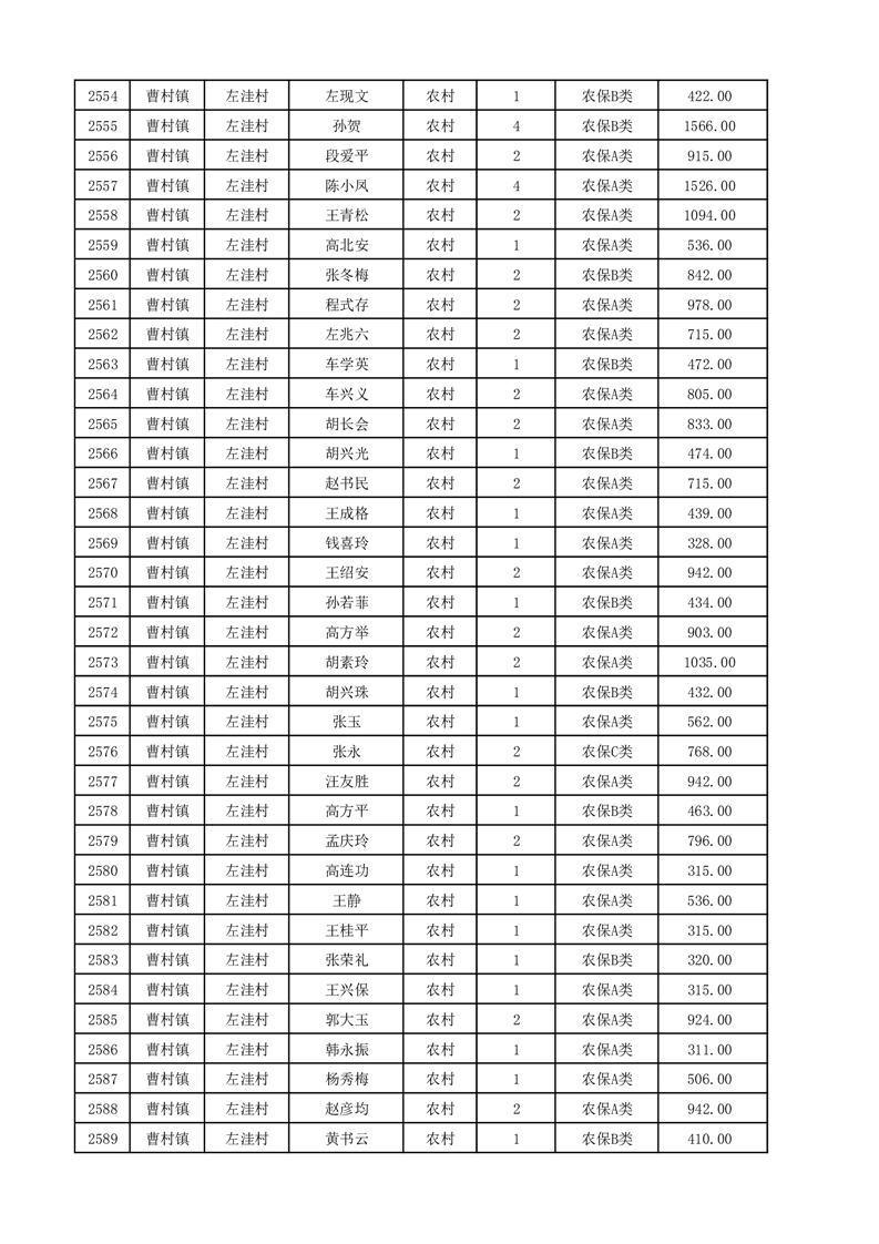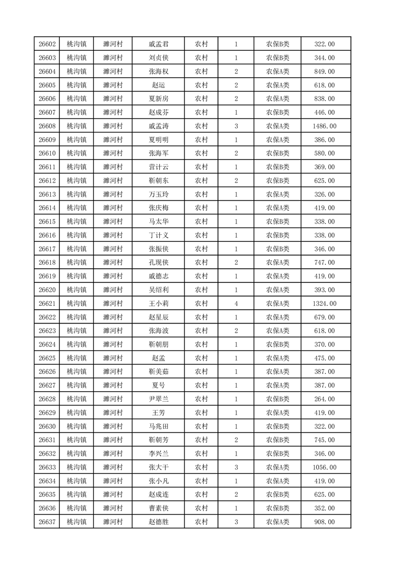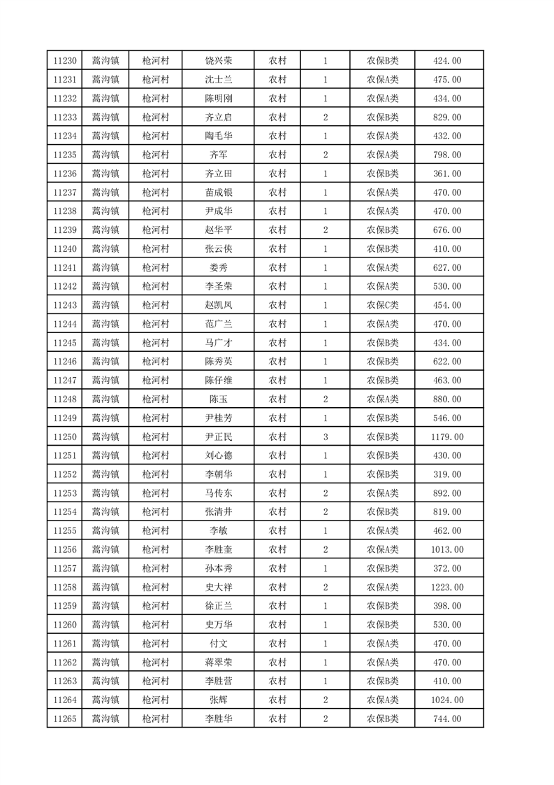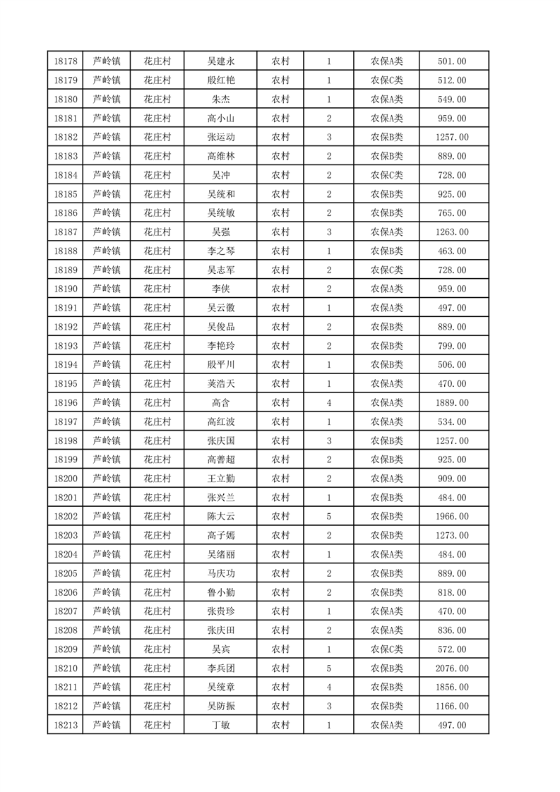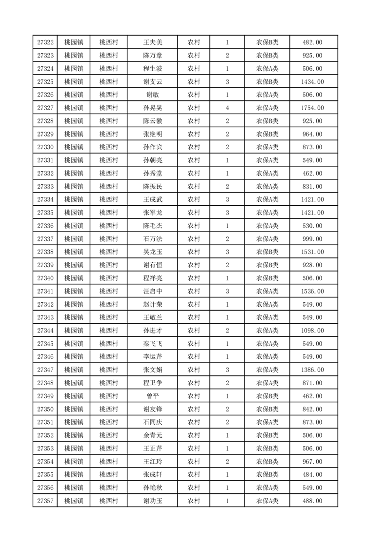 埇桥区2025年12月份农村低保花名册