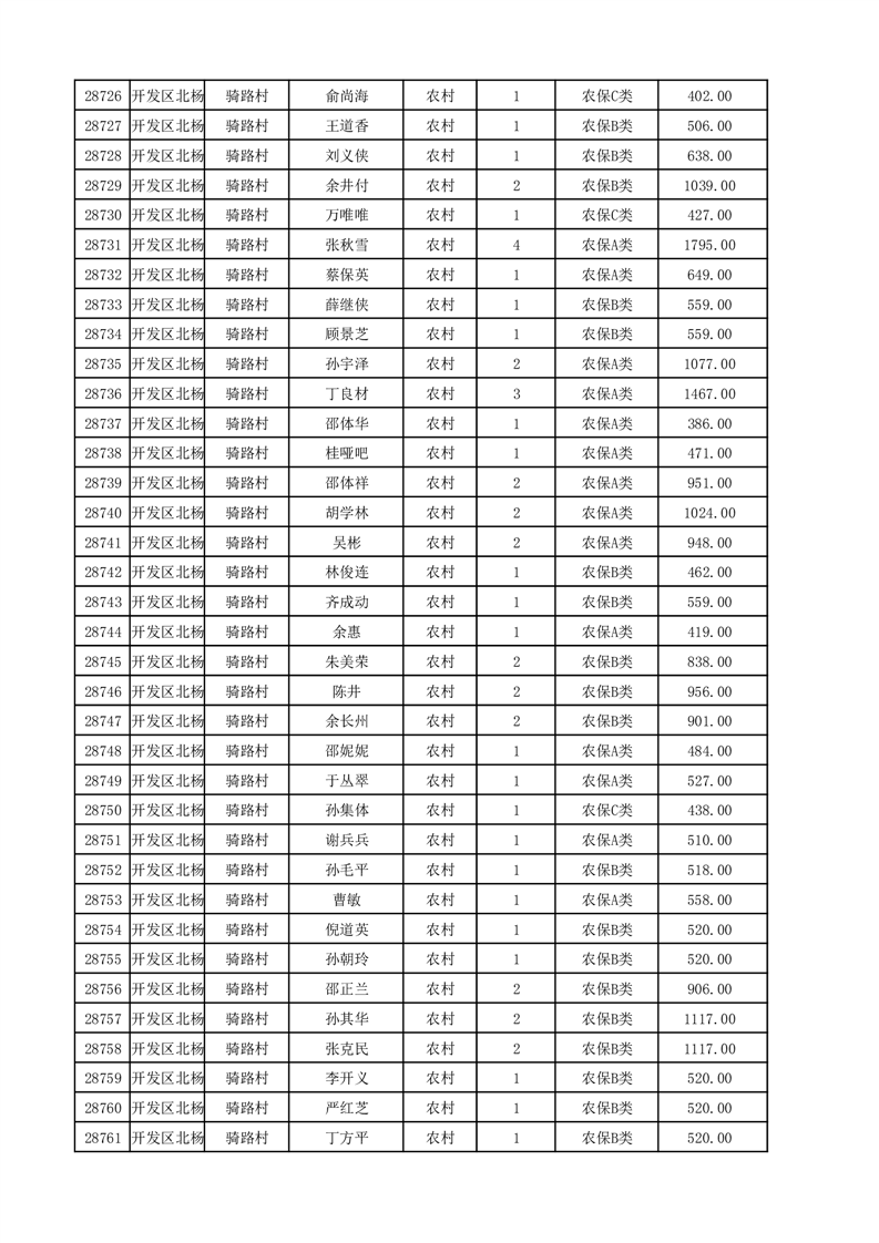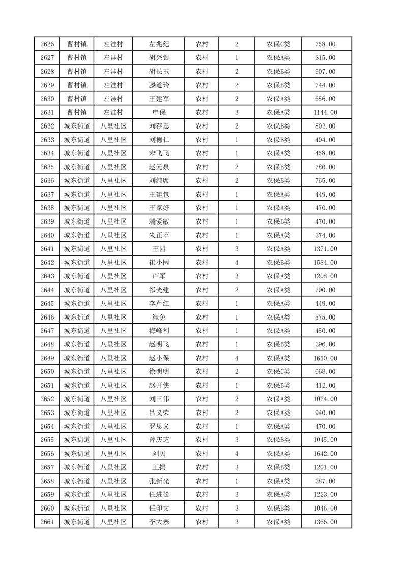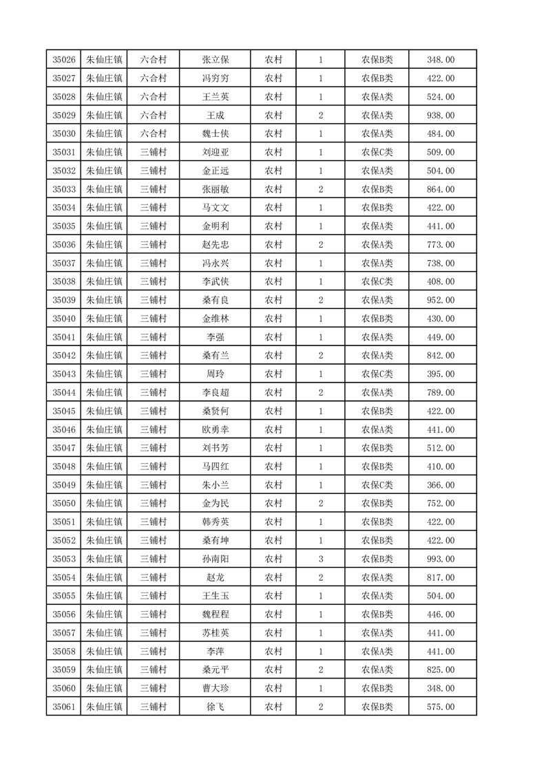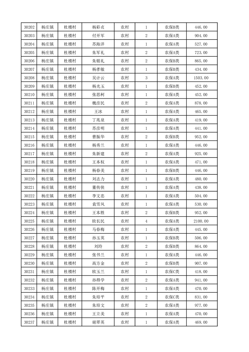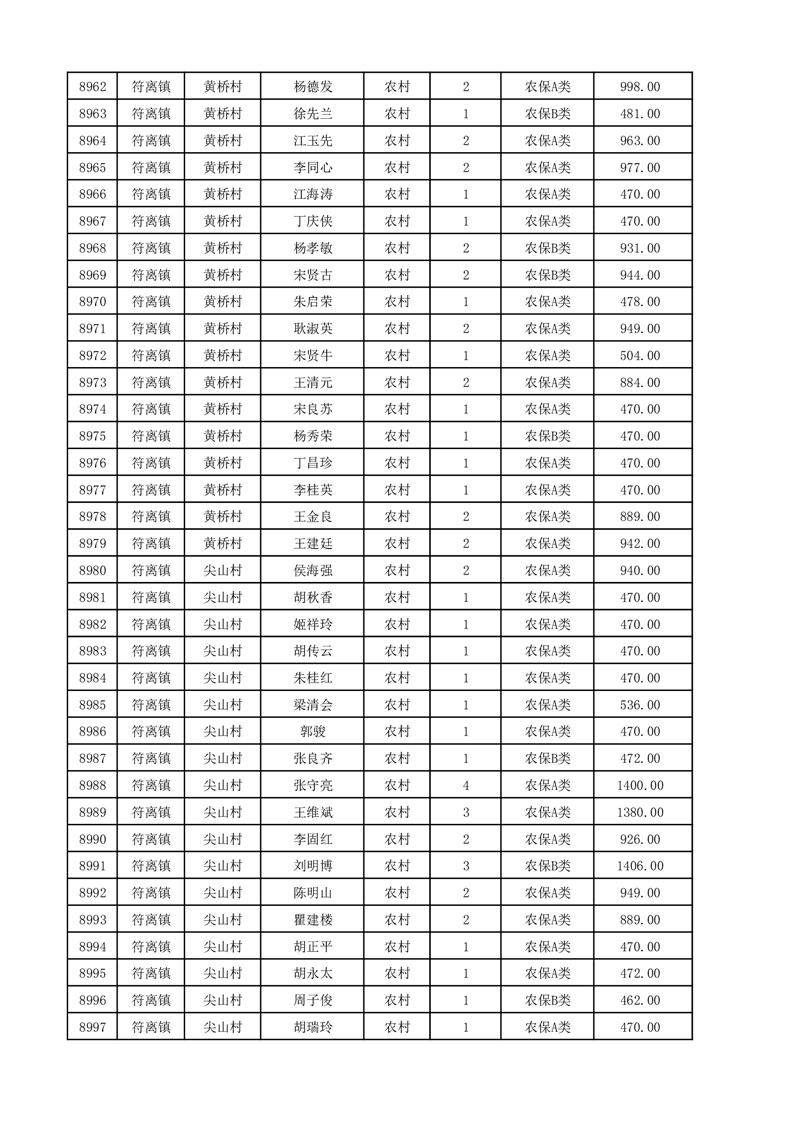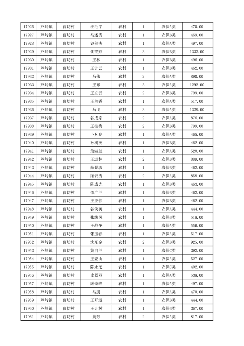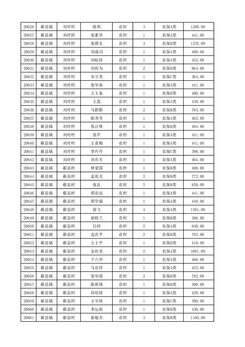 埇桥区2025年12月份农村低保花名册