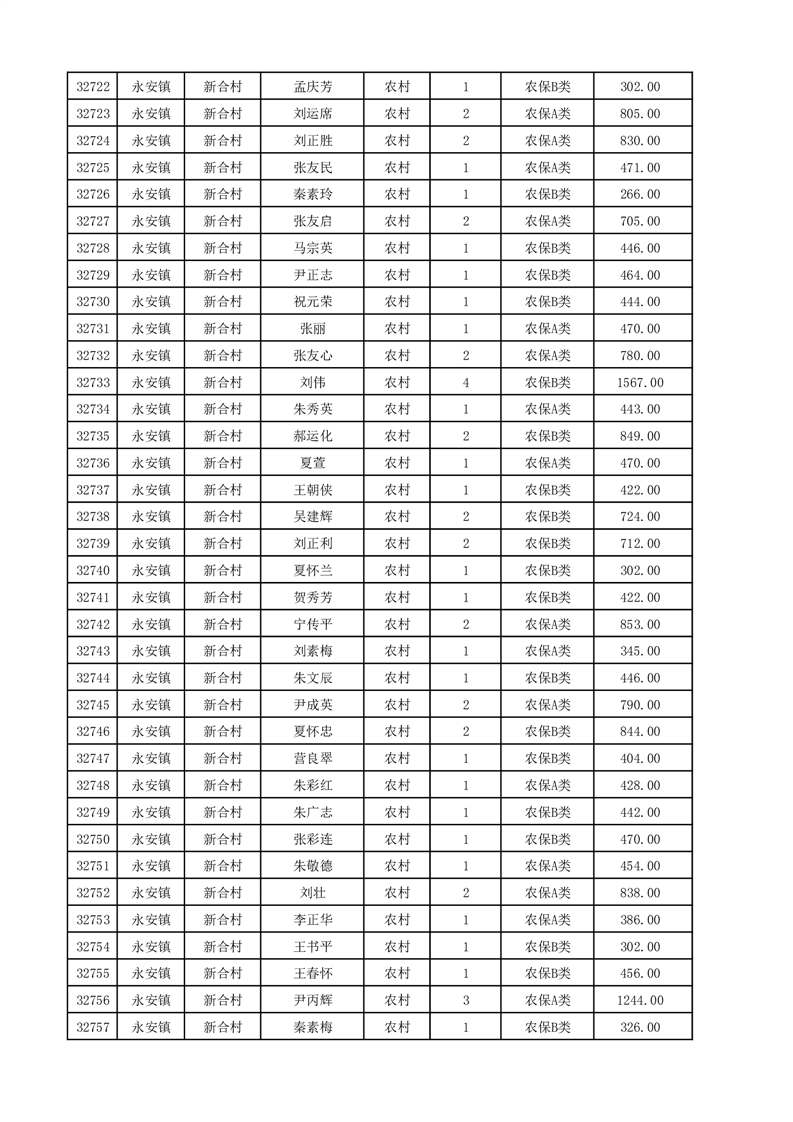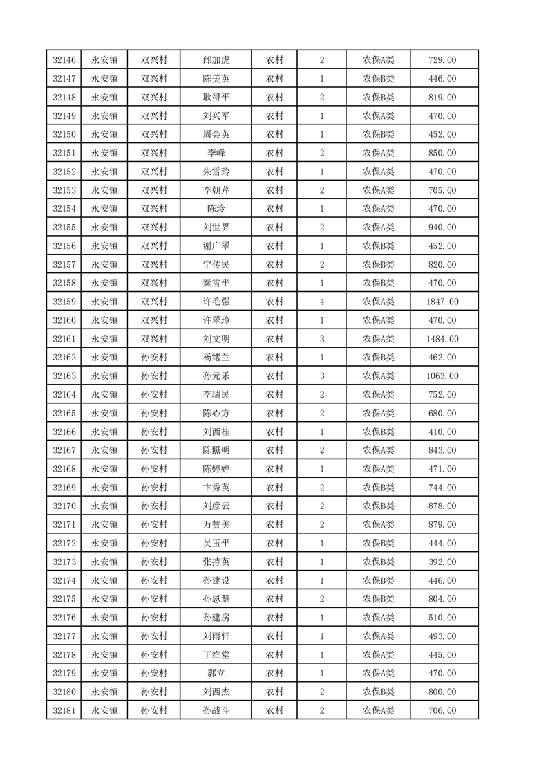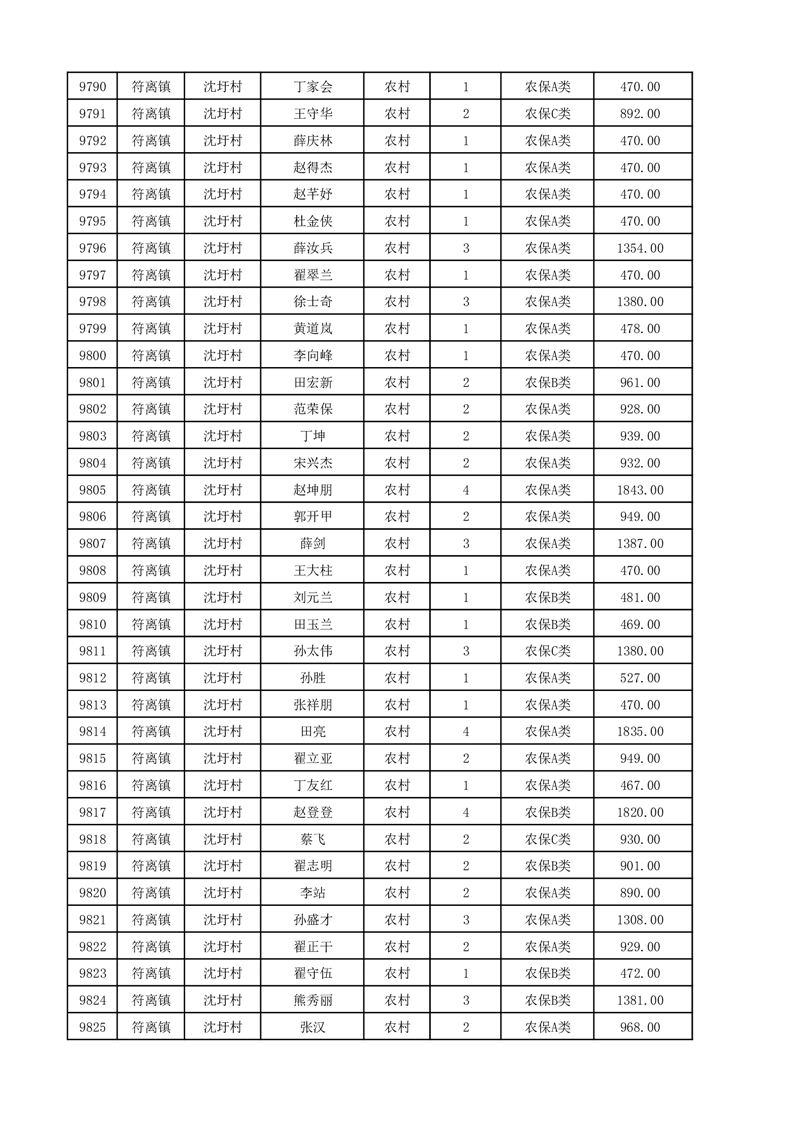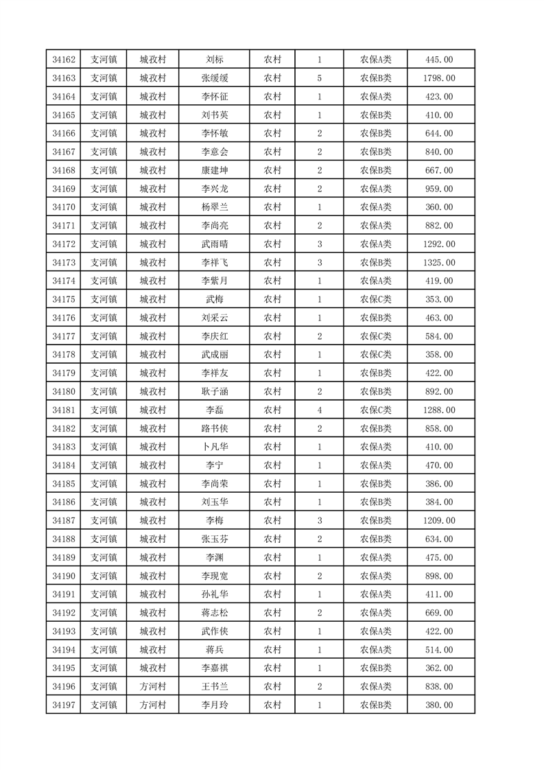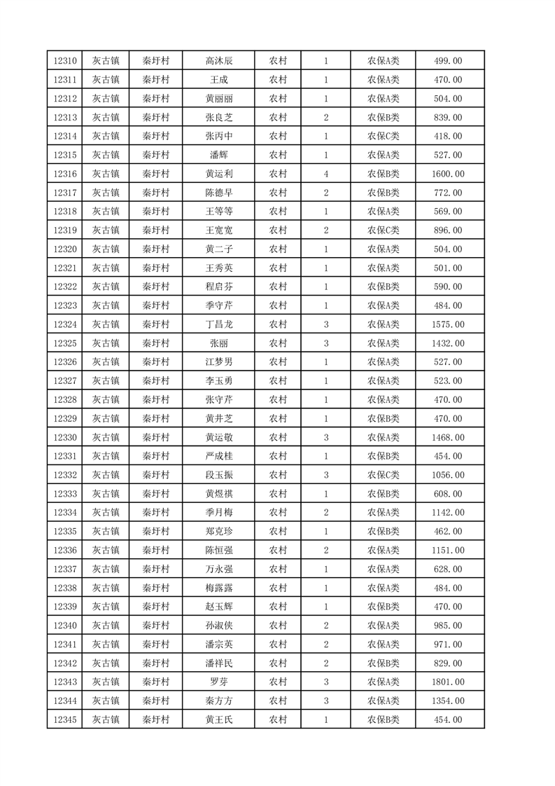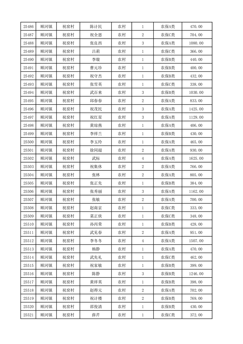 埇桥区2025年12月份农村低保花名册