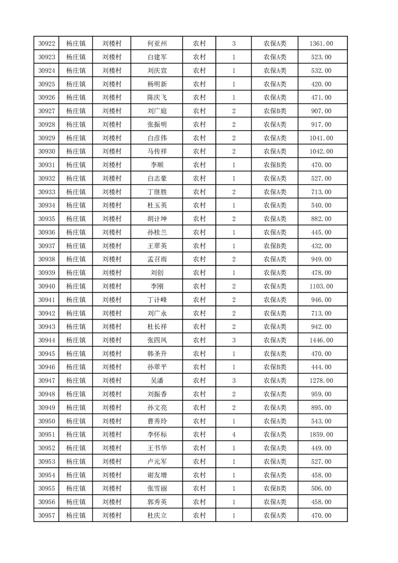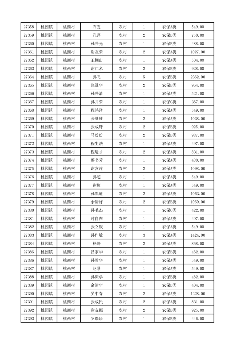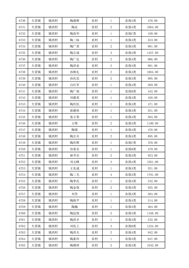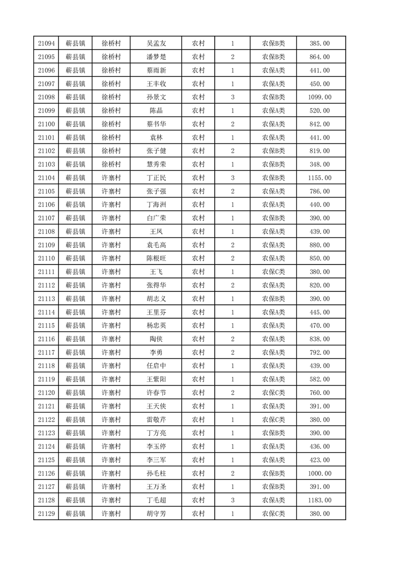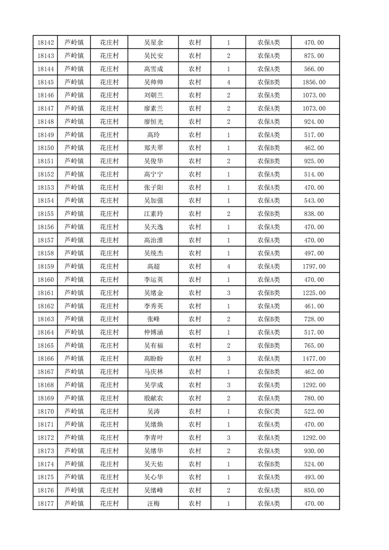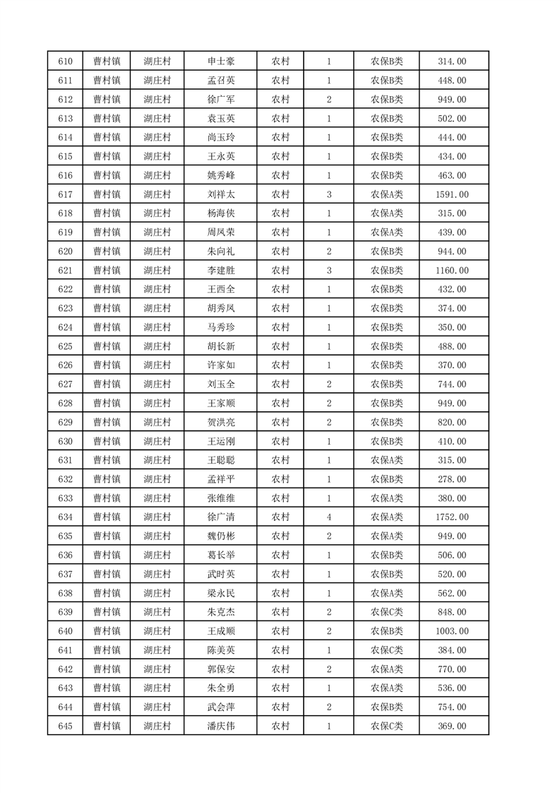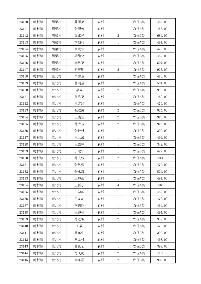 埇桥区2025年12月份农村低保花名册