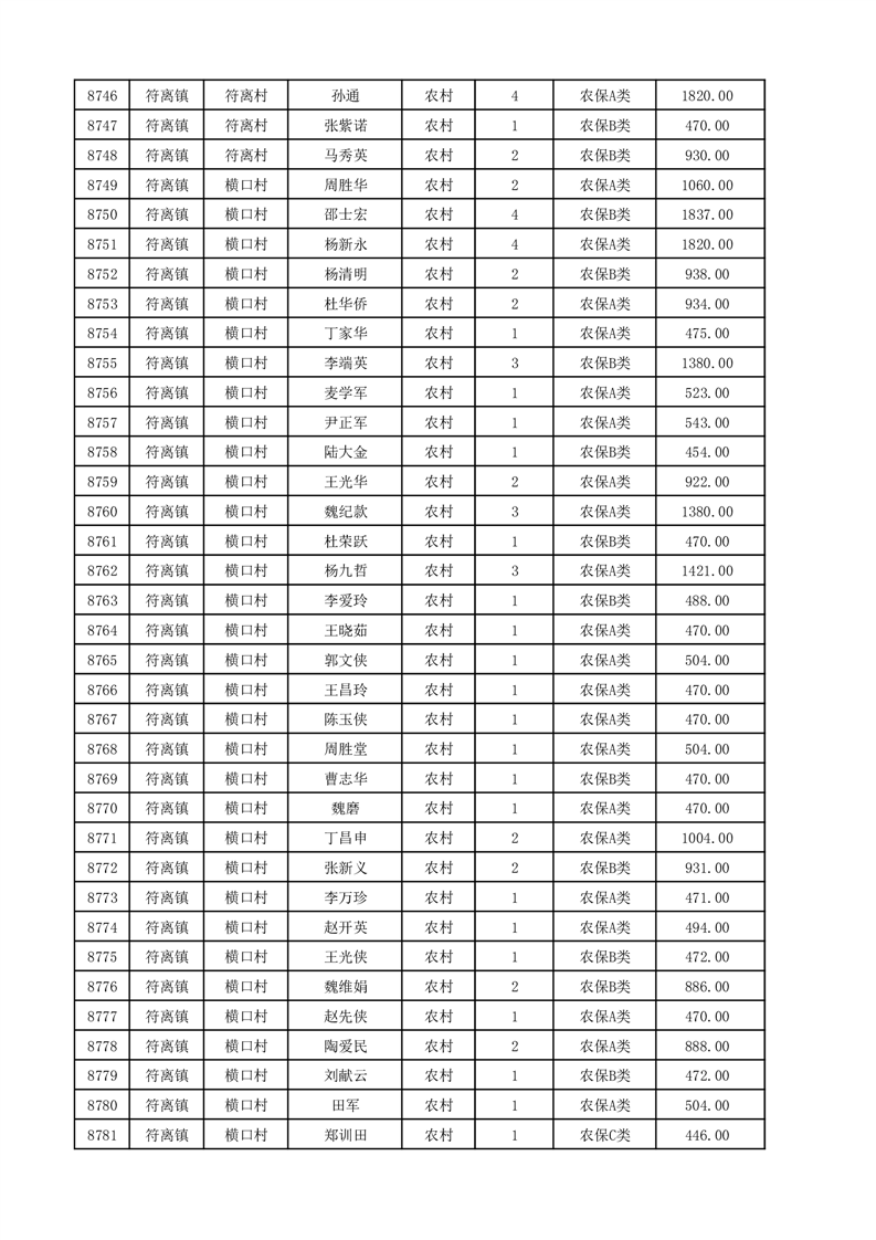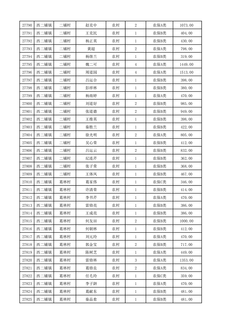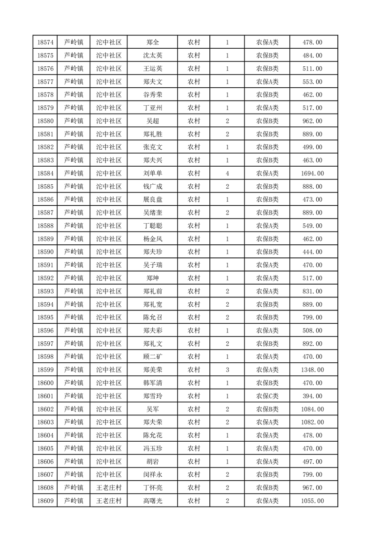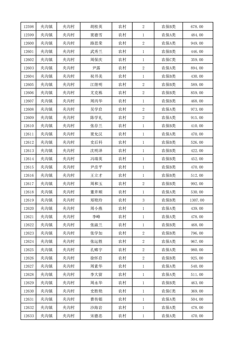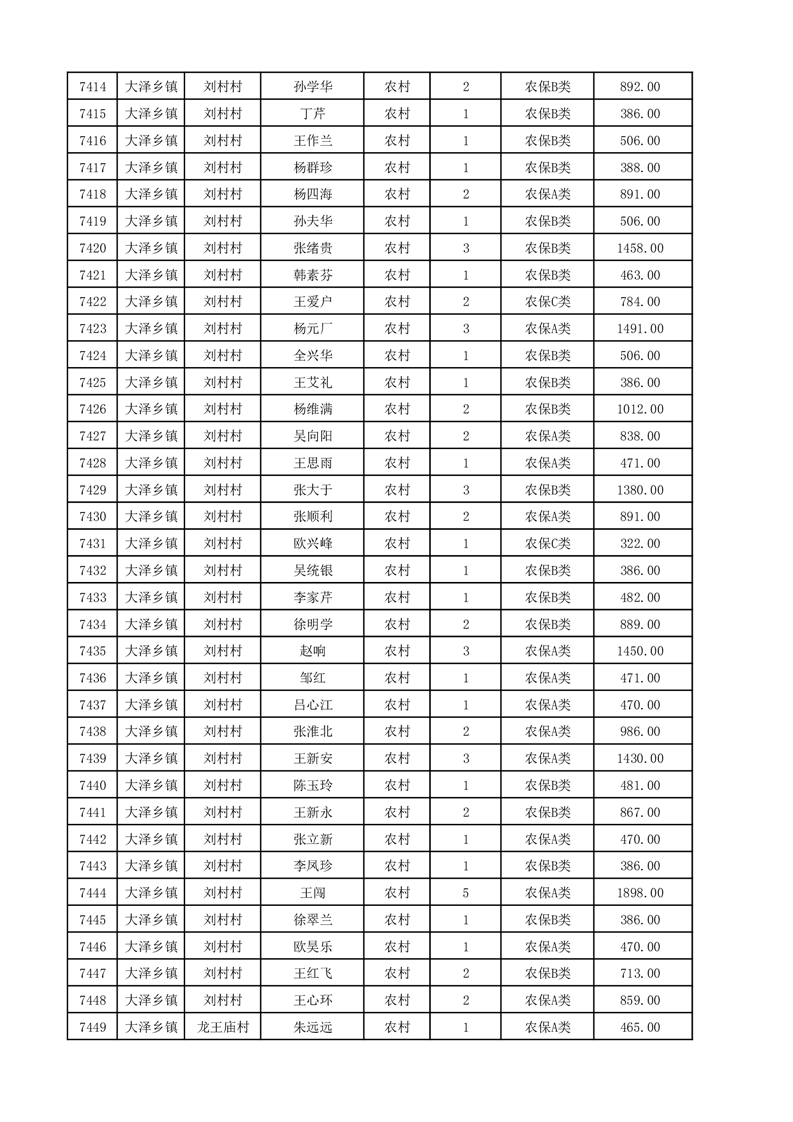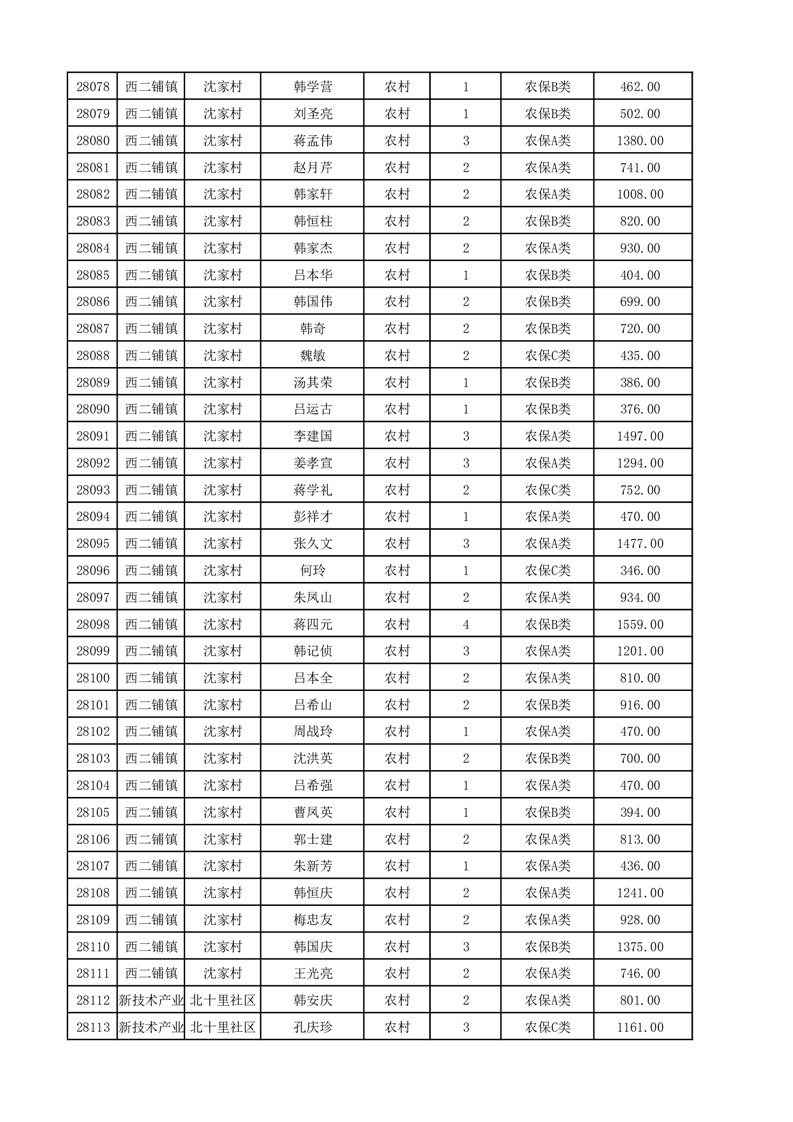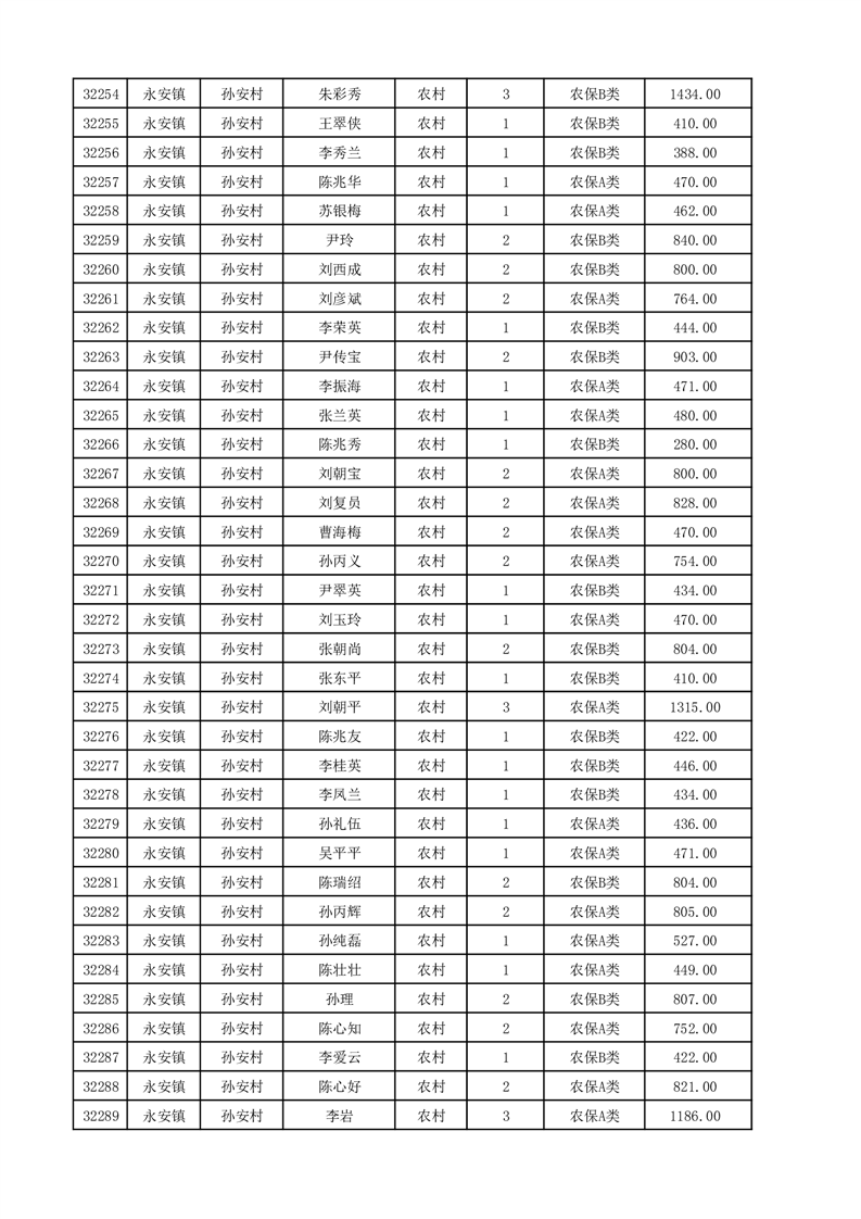 埇桥区2025年12月份农村低保花名册