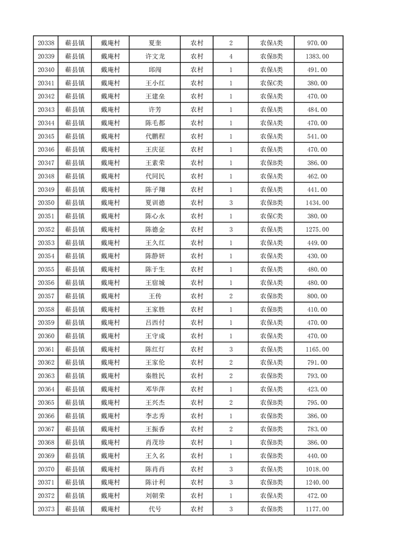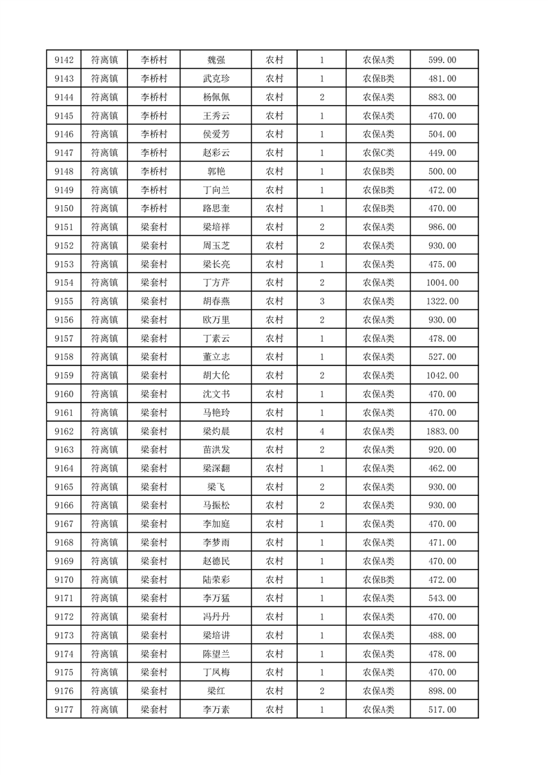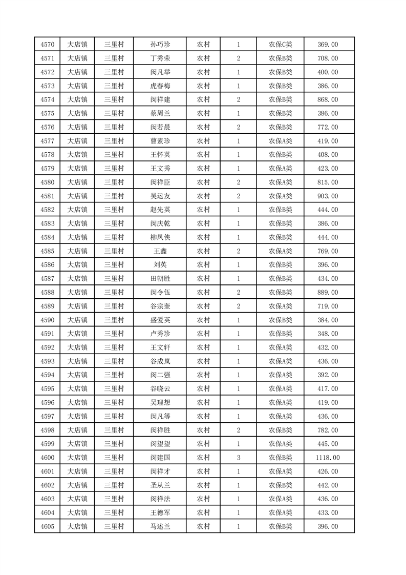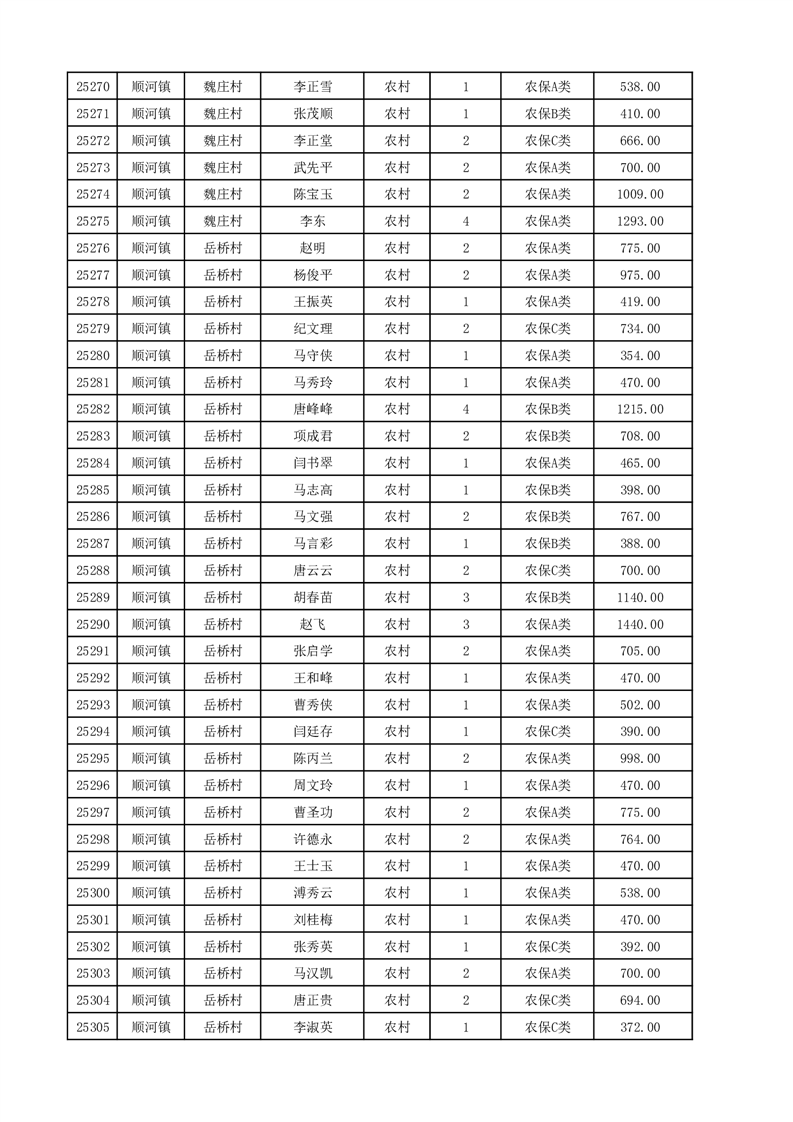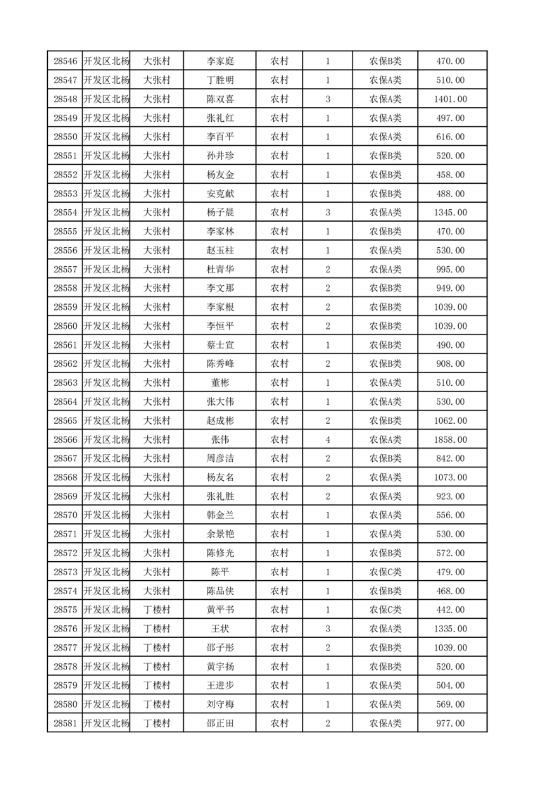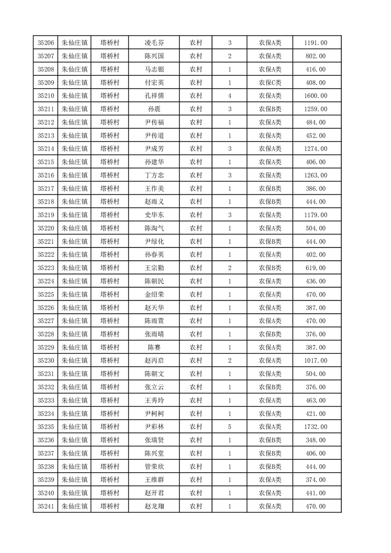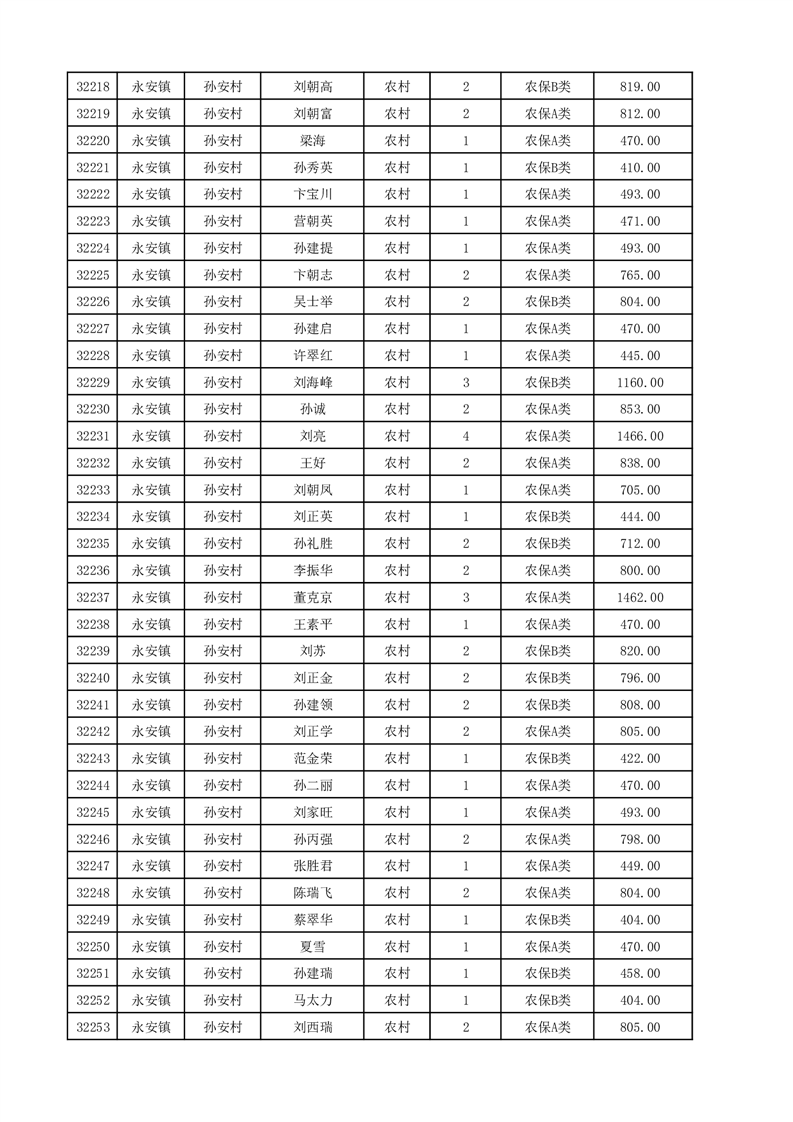 埇桥区2025年12月份农村低保花名册