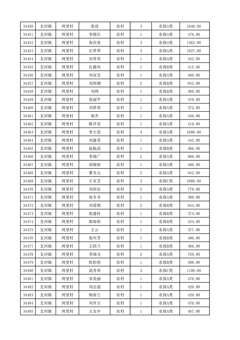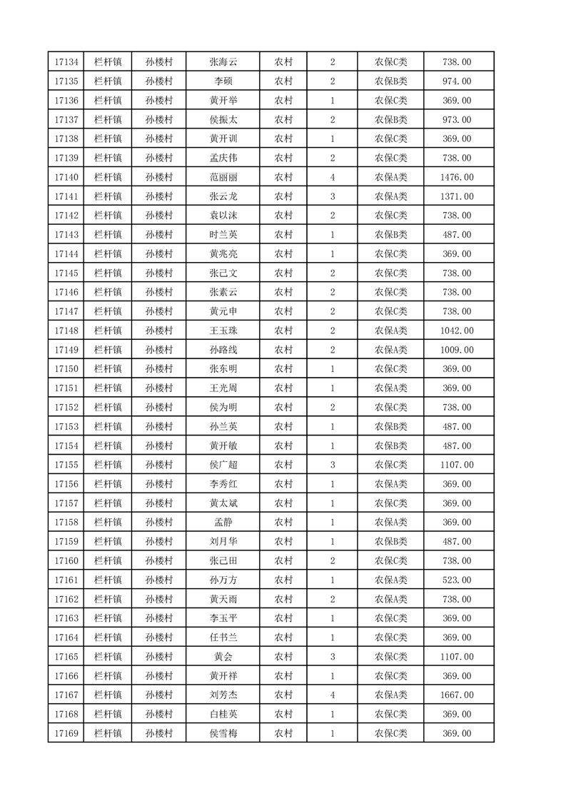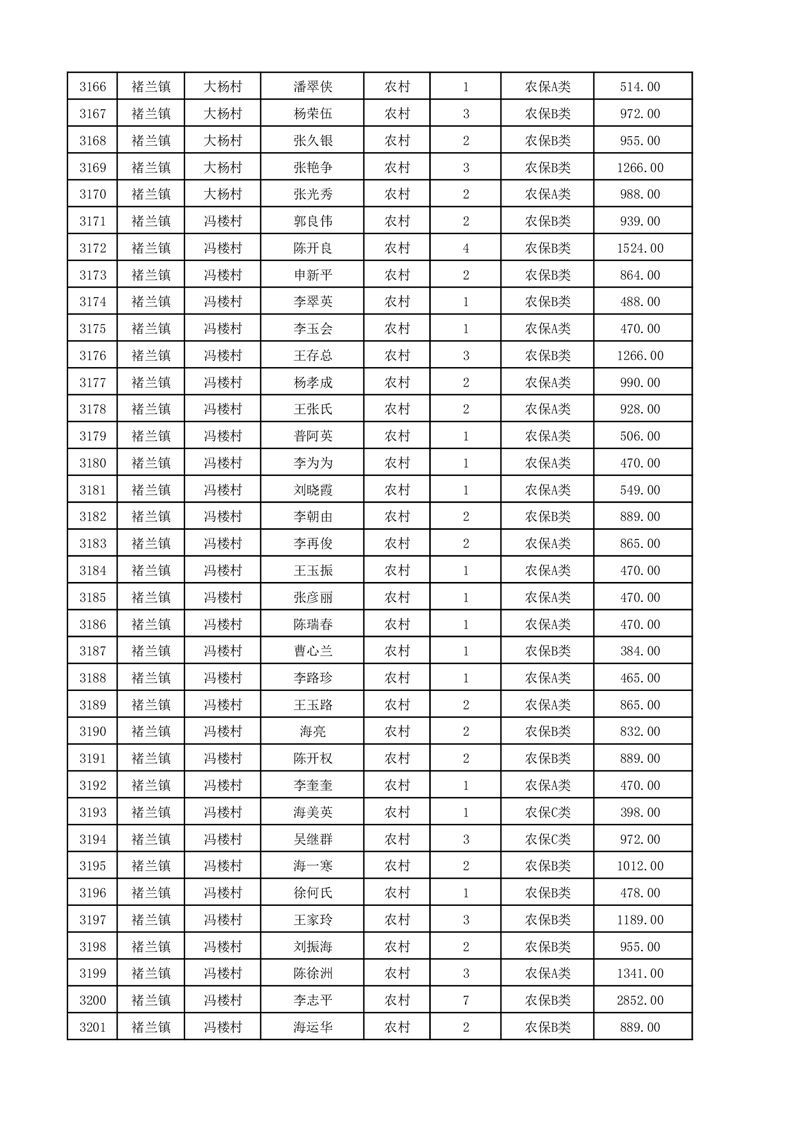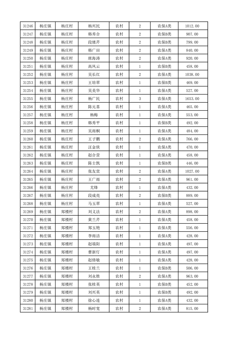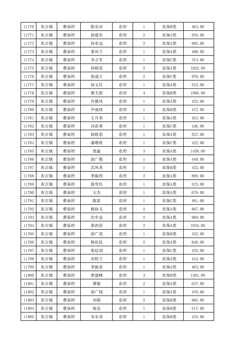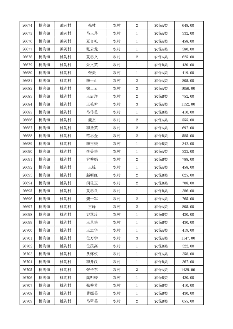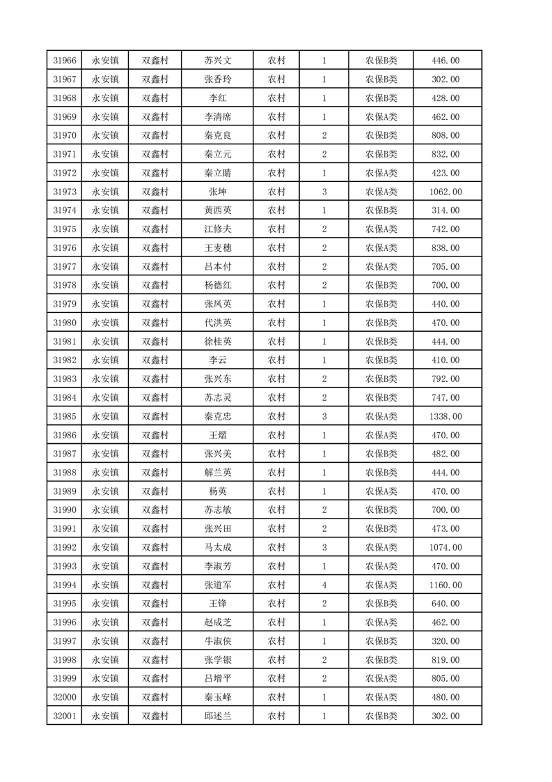 埇桥区2025年12月份农村低保花名册