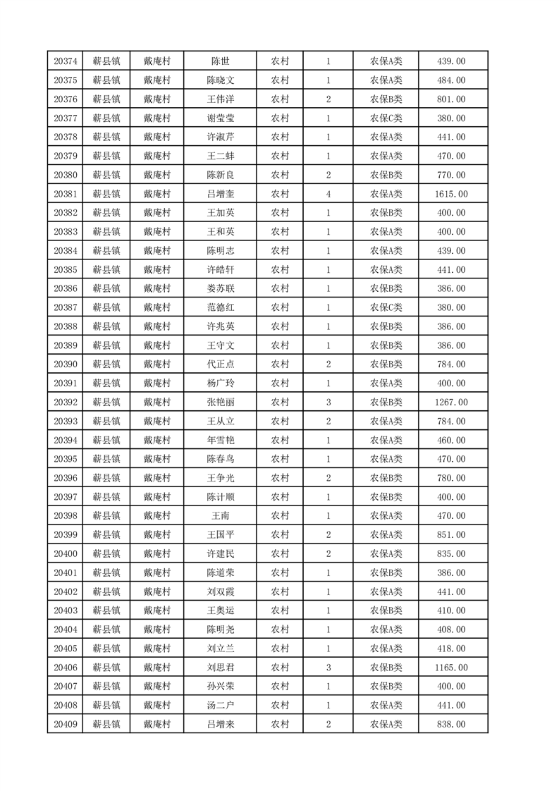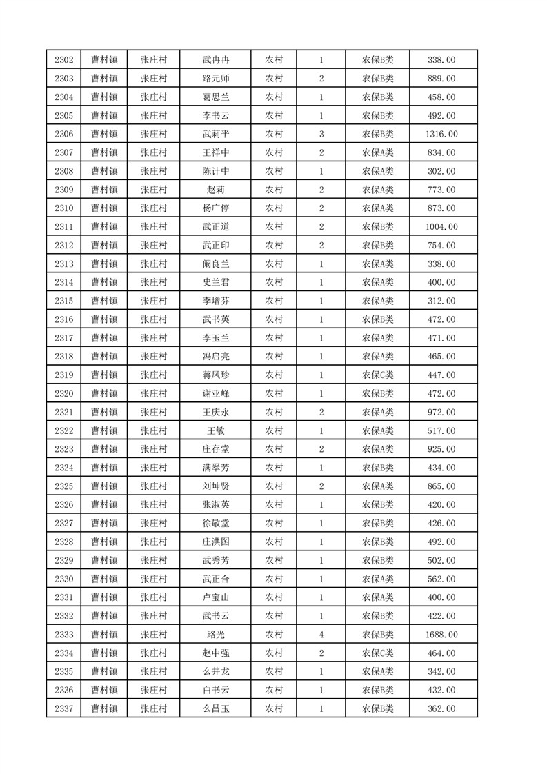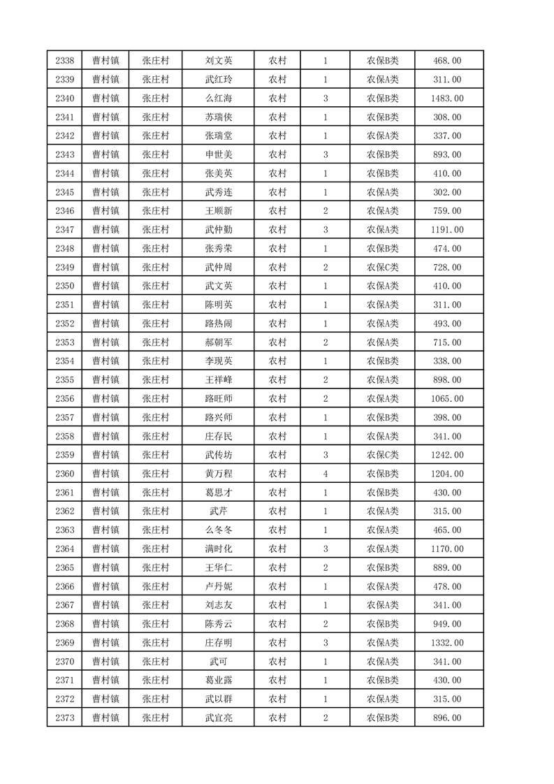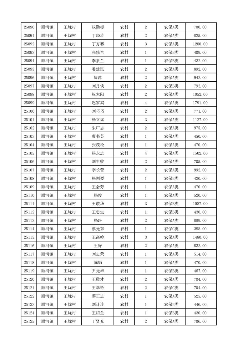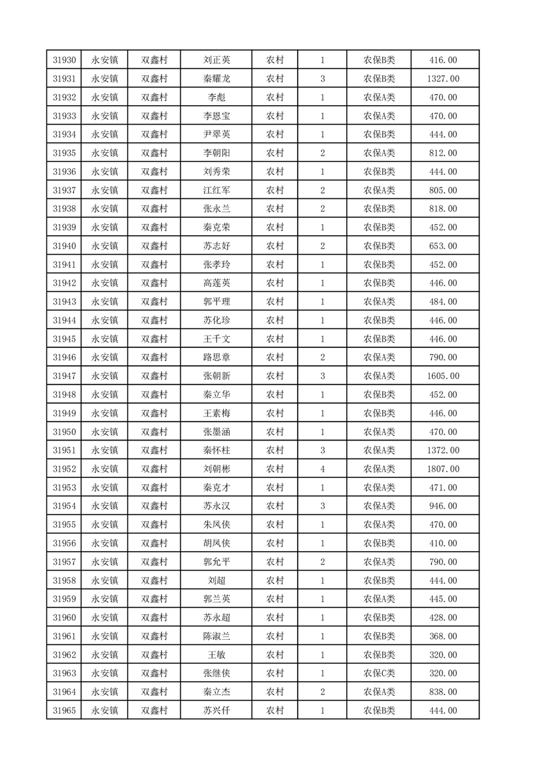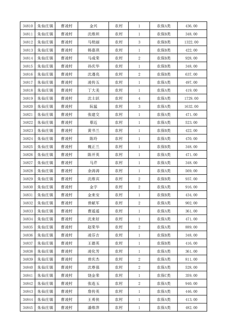埇桥区2025年12月份农村低保花名册