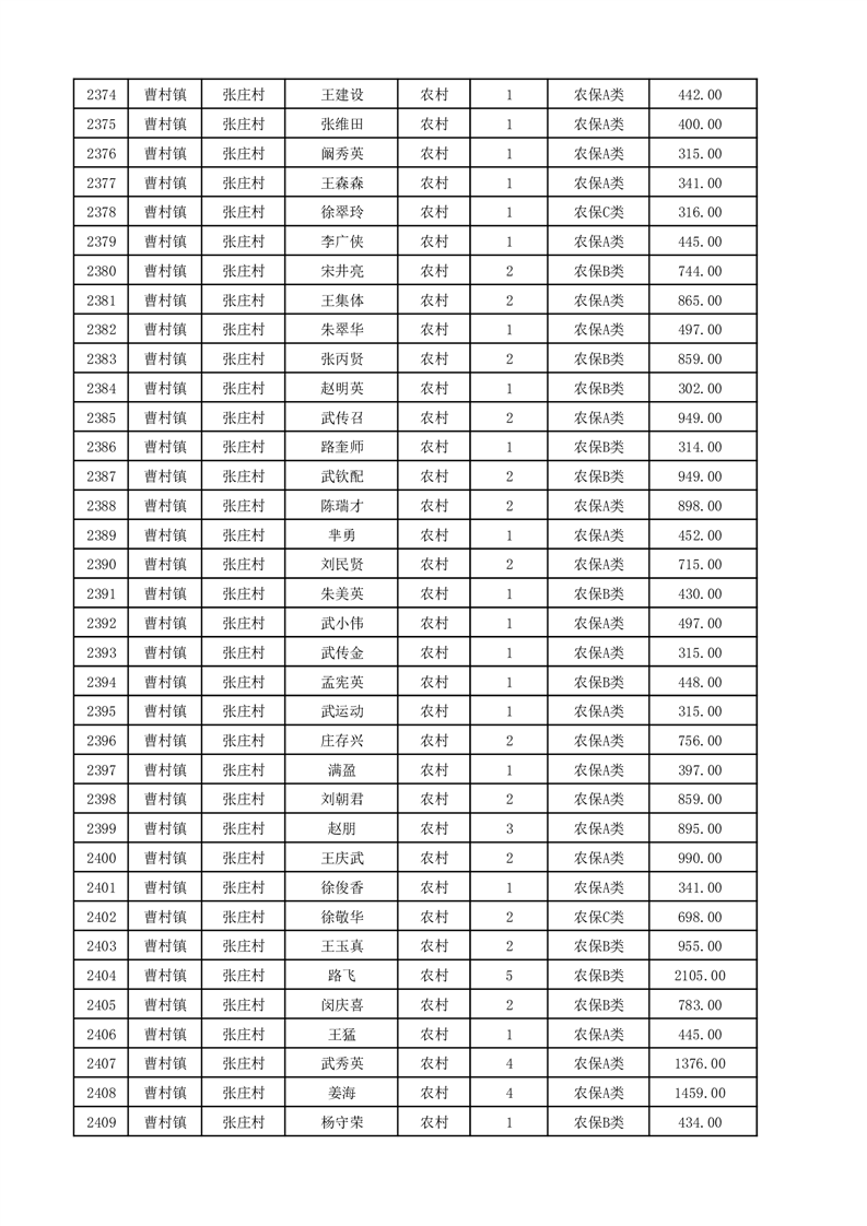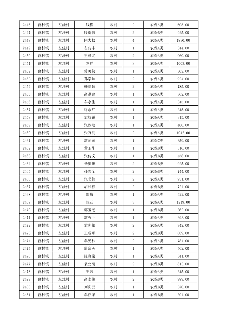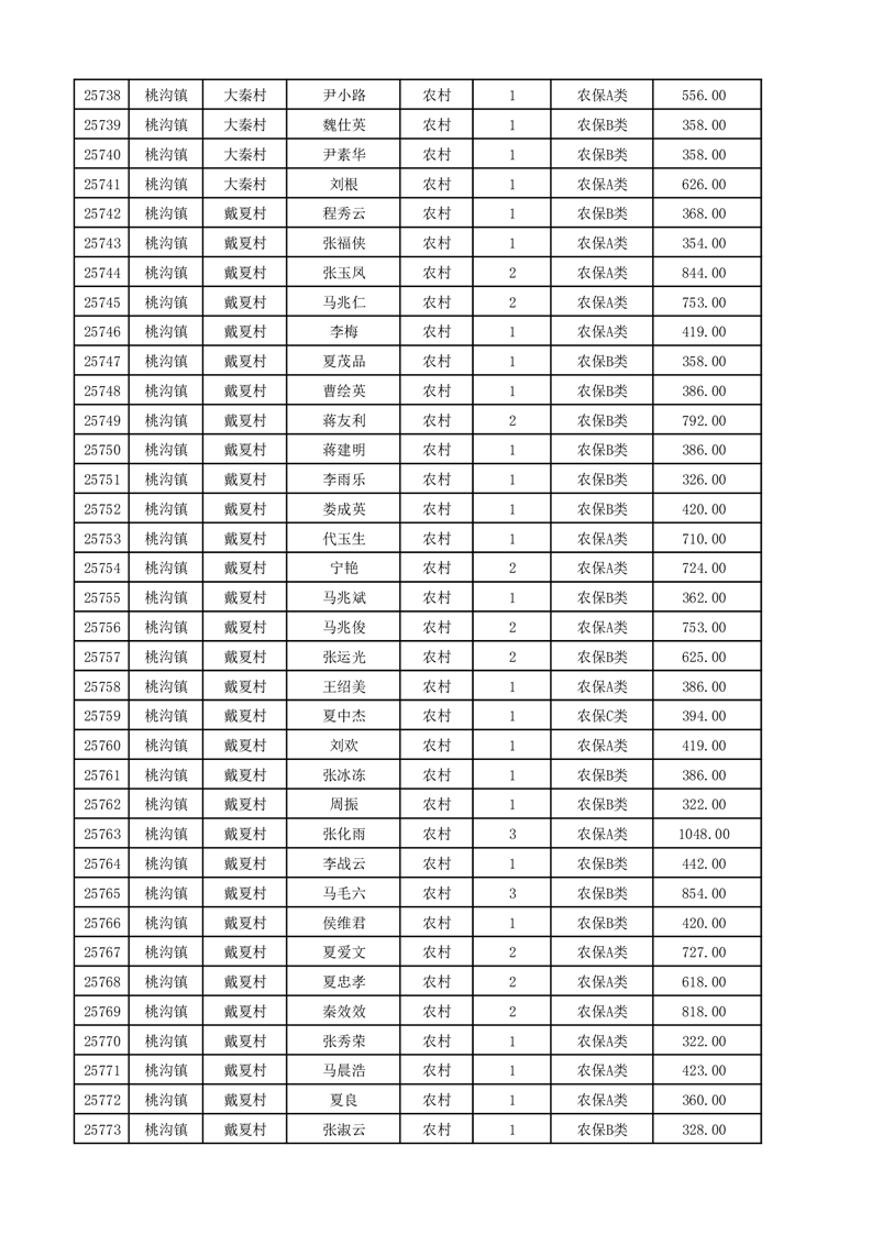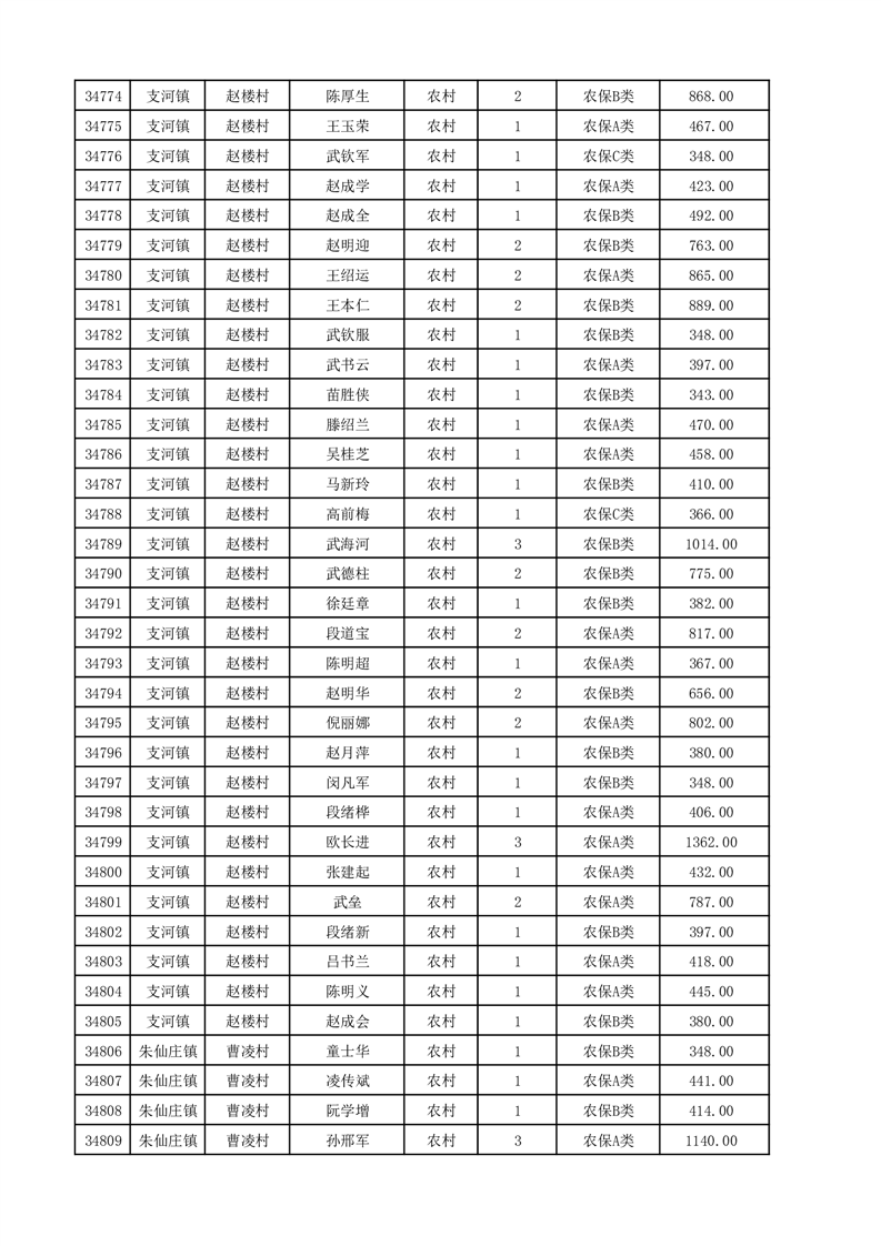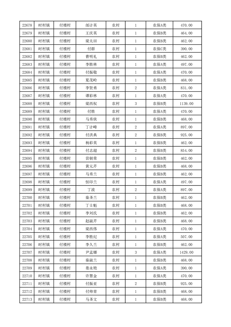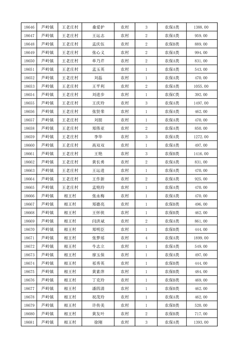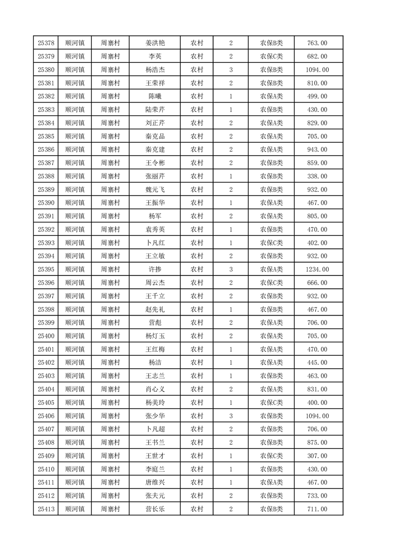埇桥区2025年12月份农村低保花名册