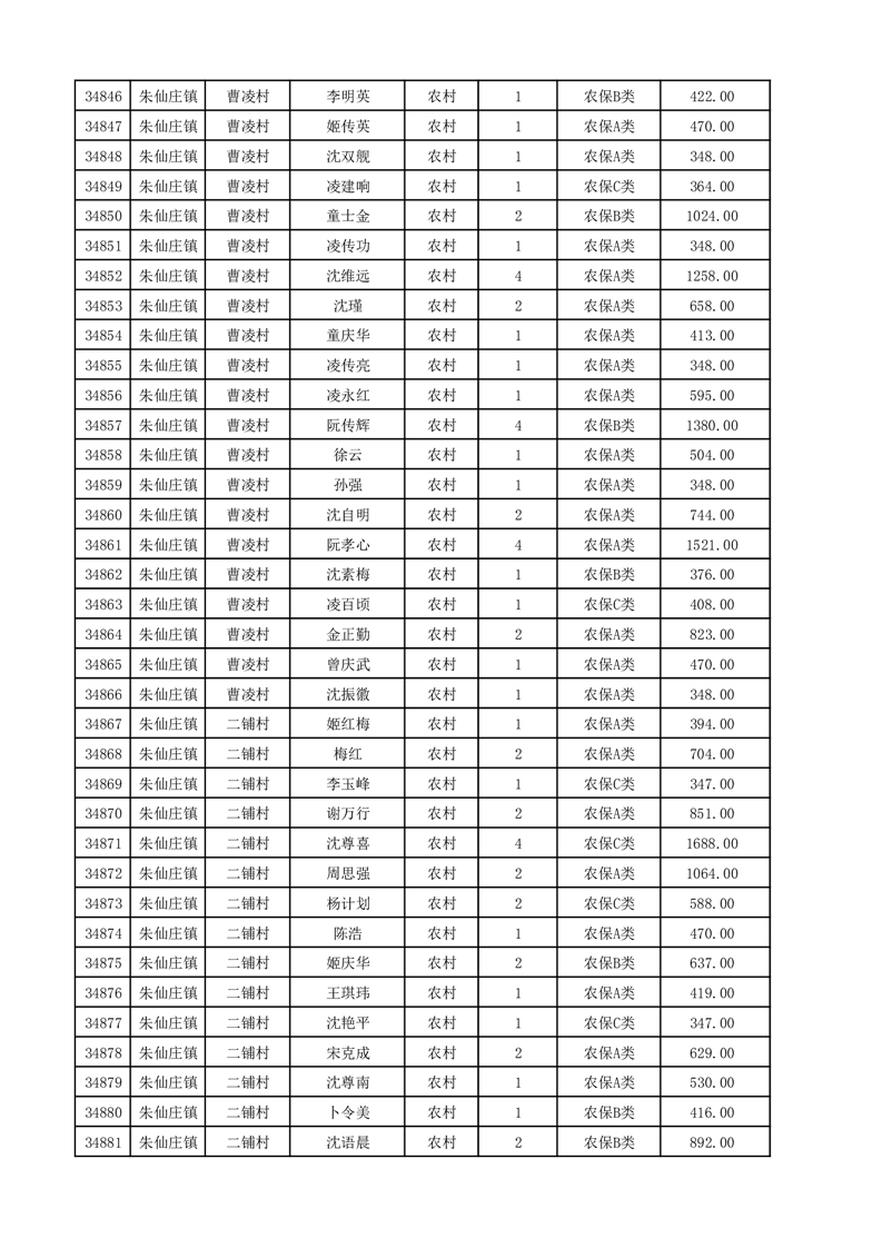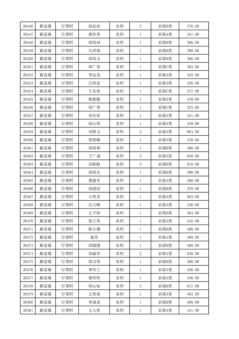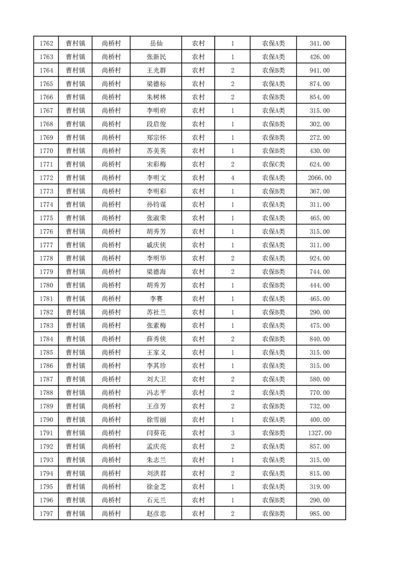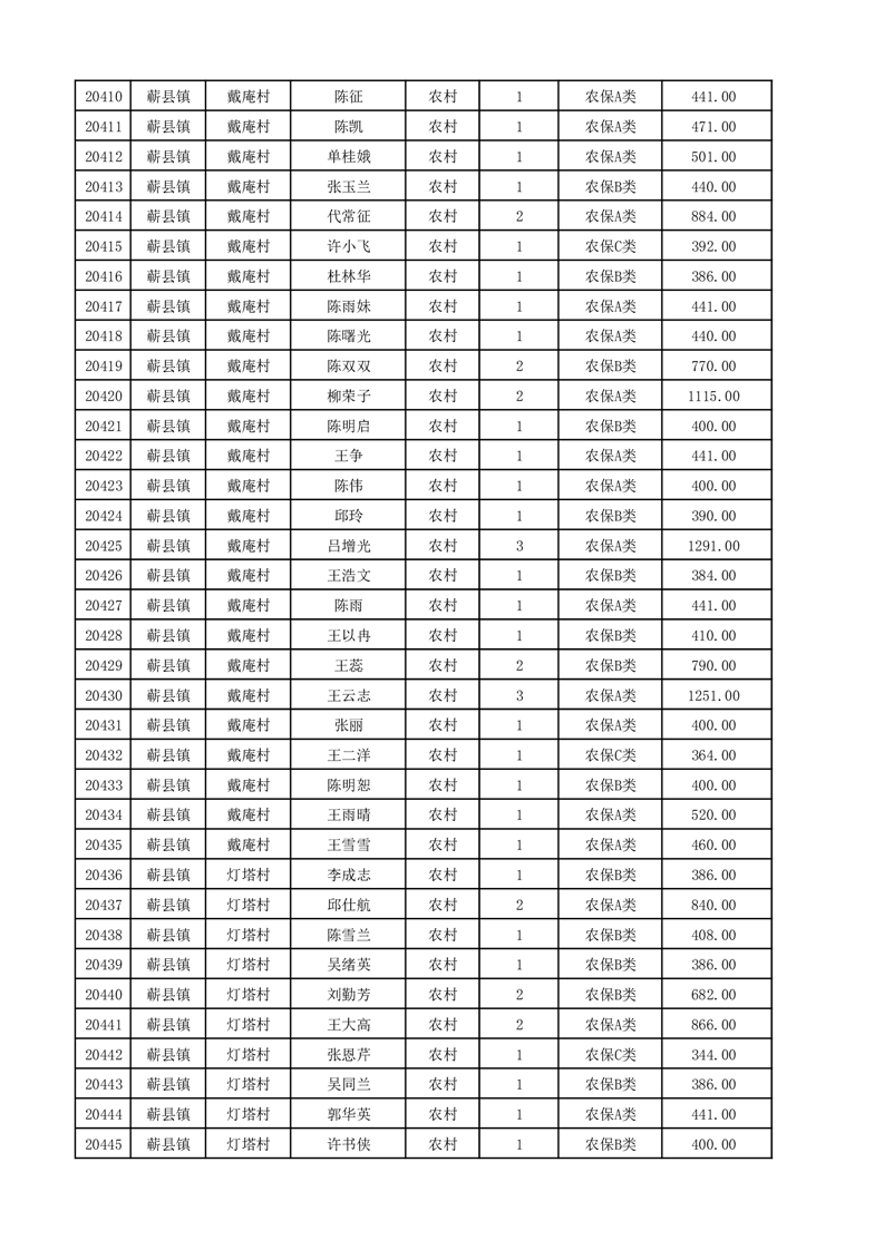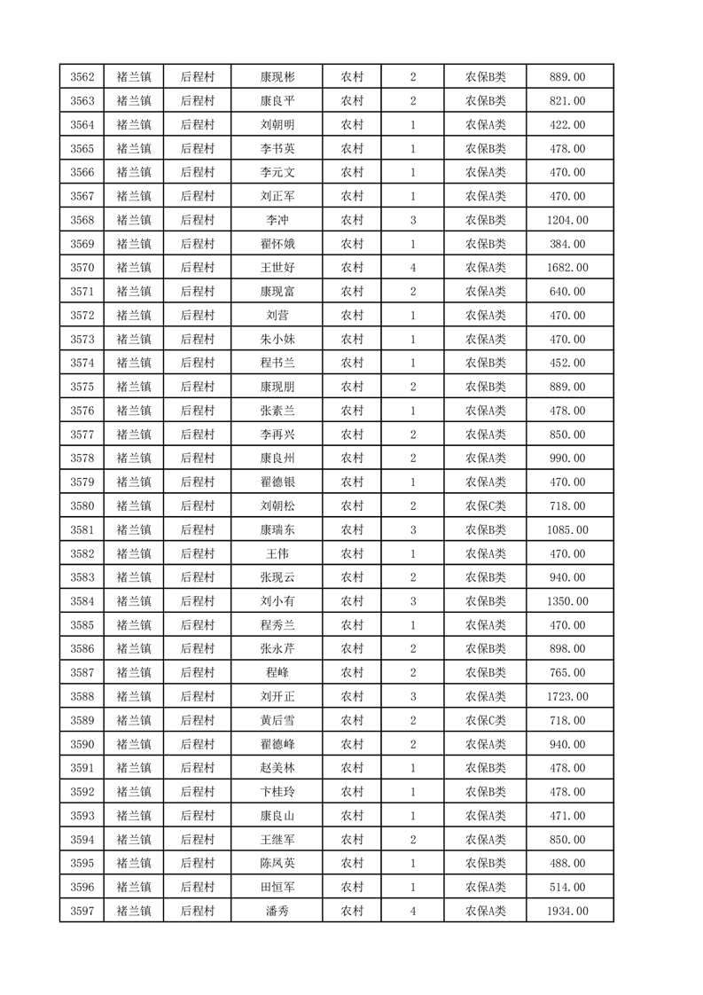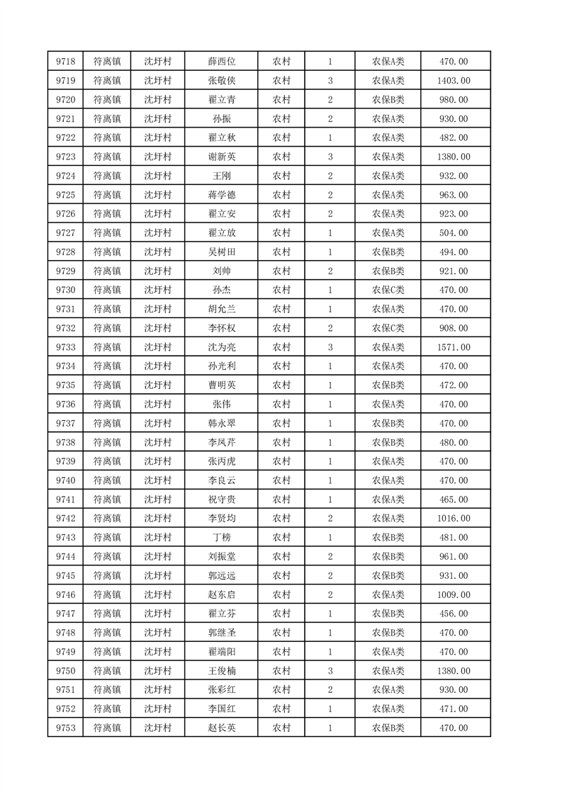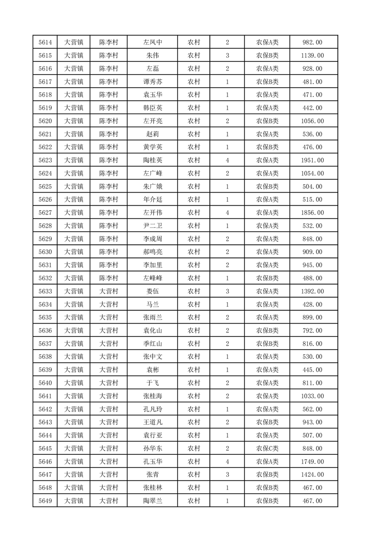 埇桥区2025年12月份农村低保花名册