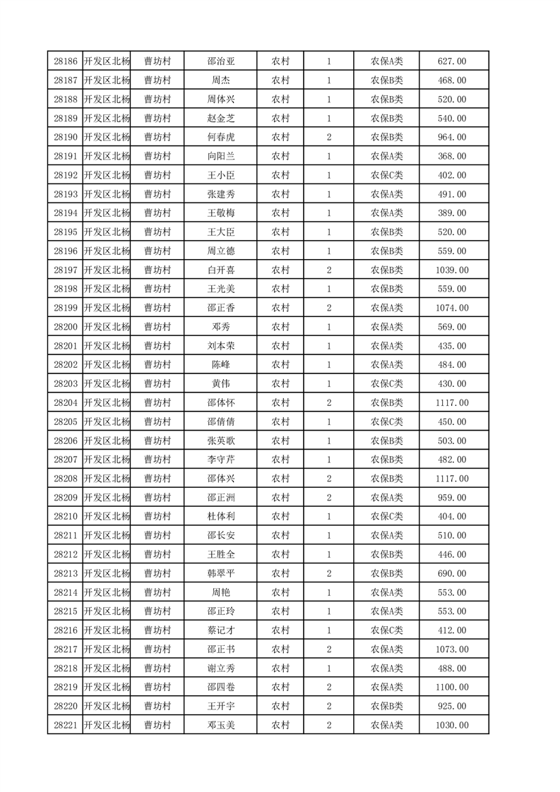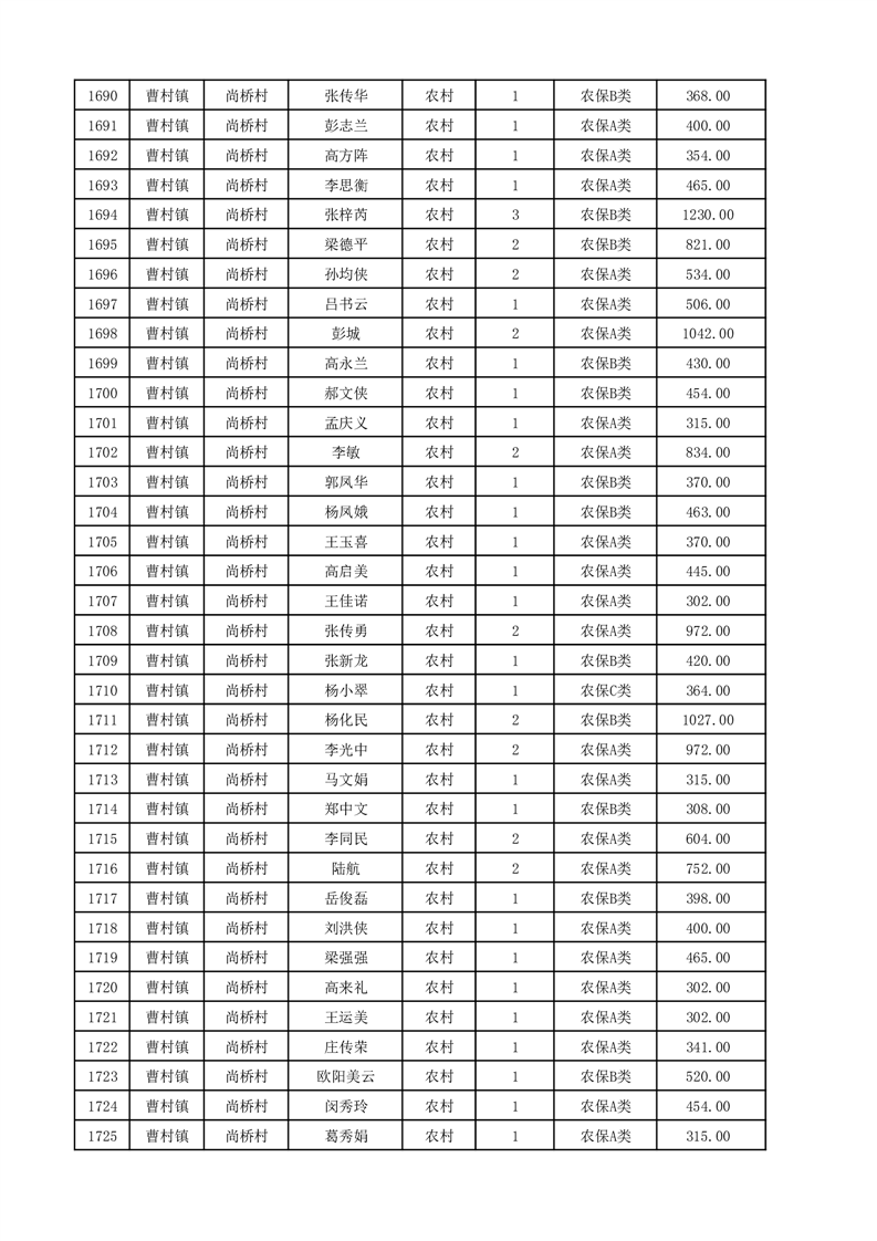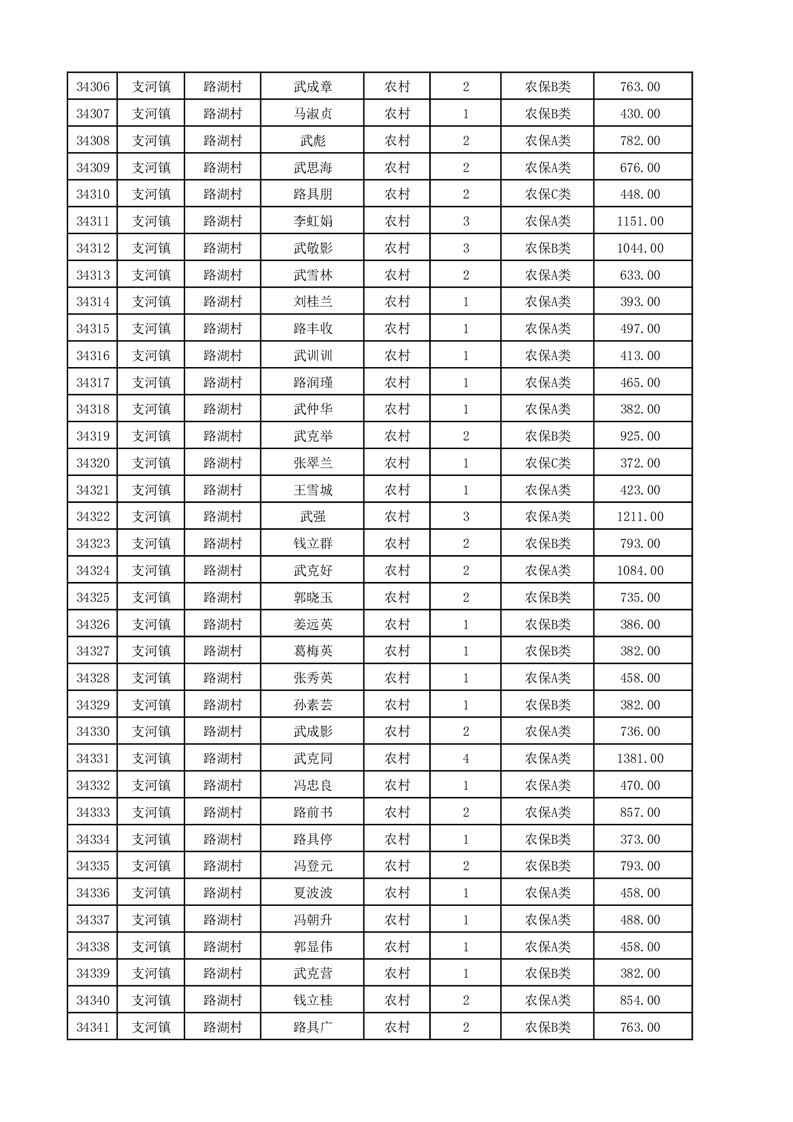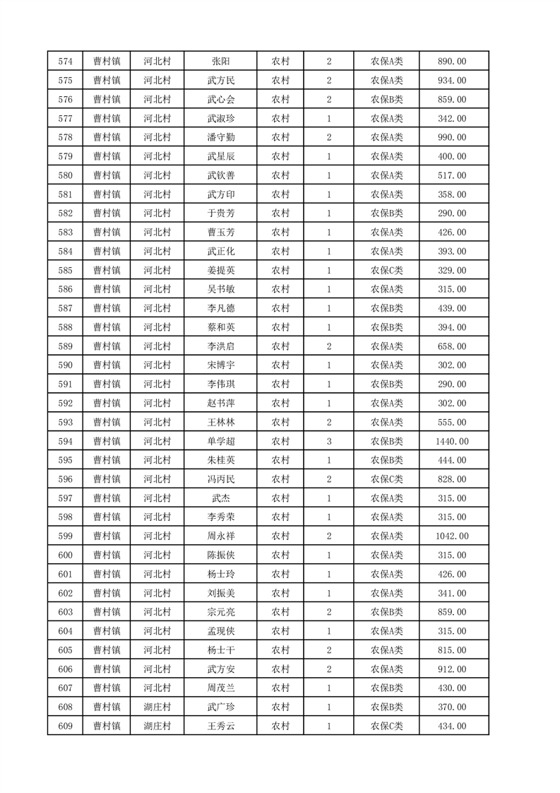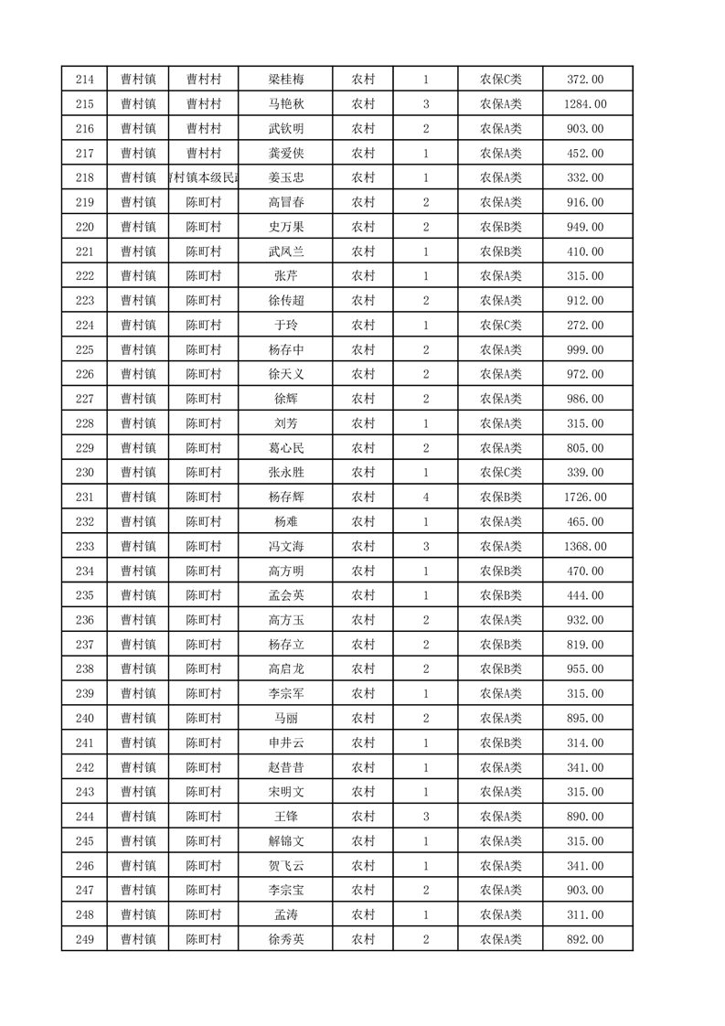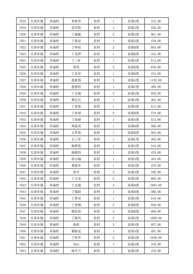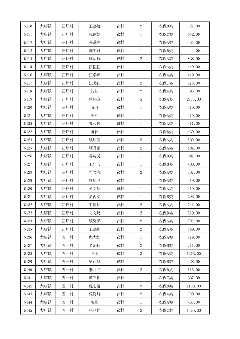 埇桥区2025年12月份农村低保花名册