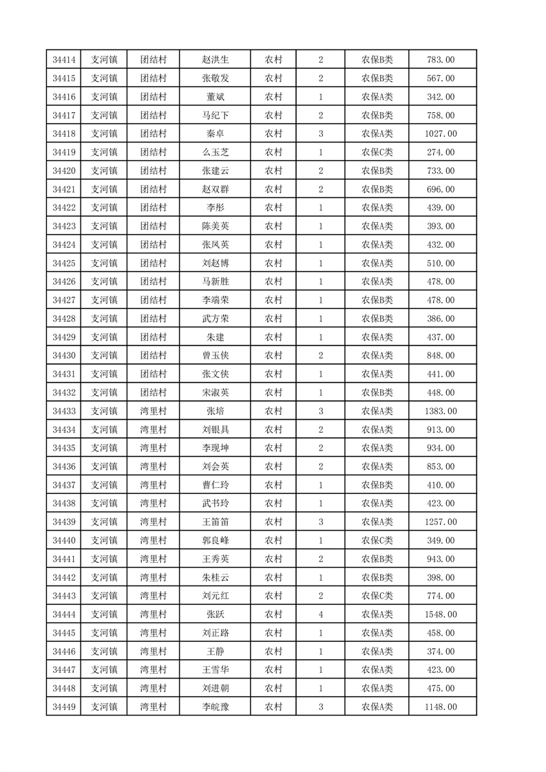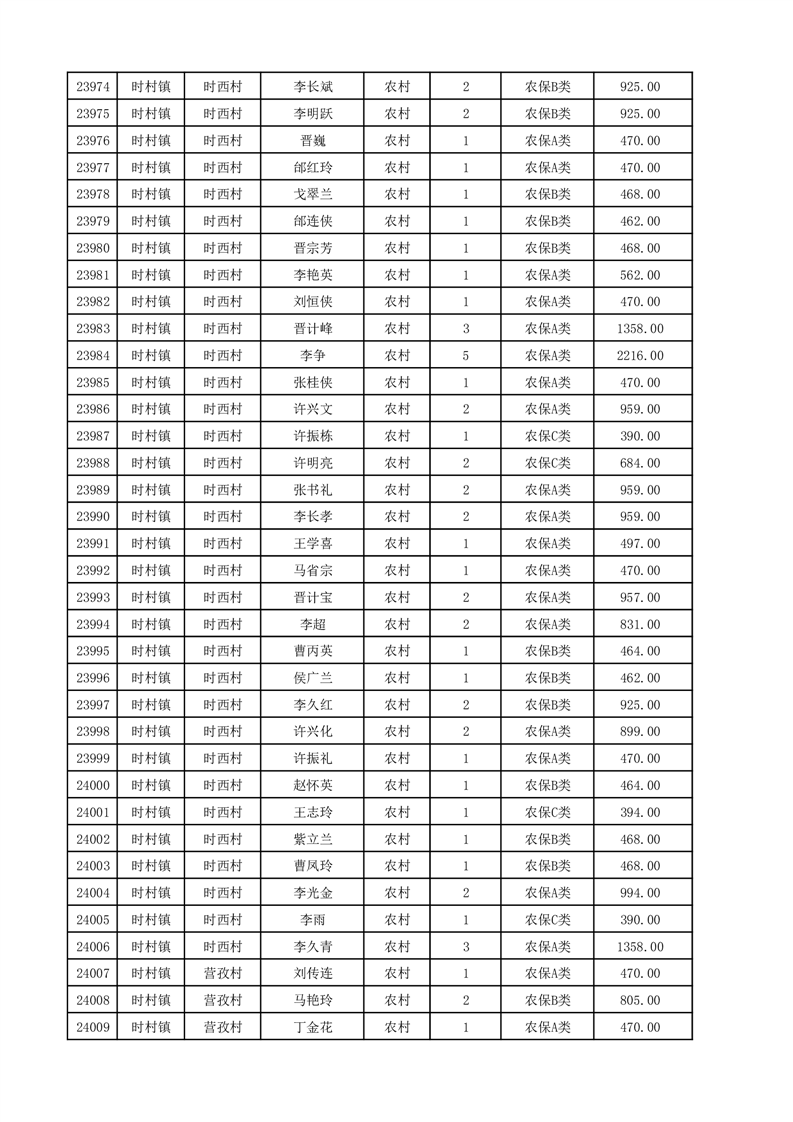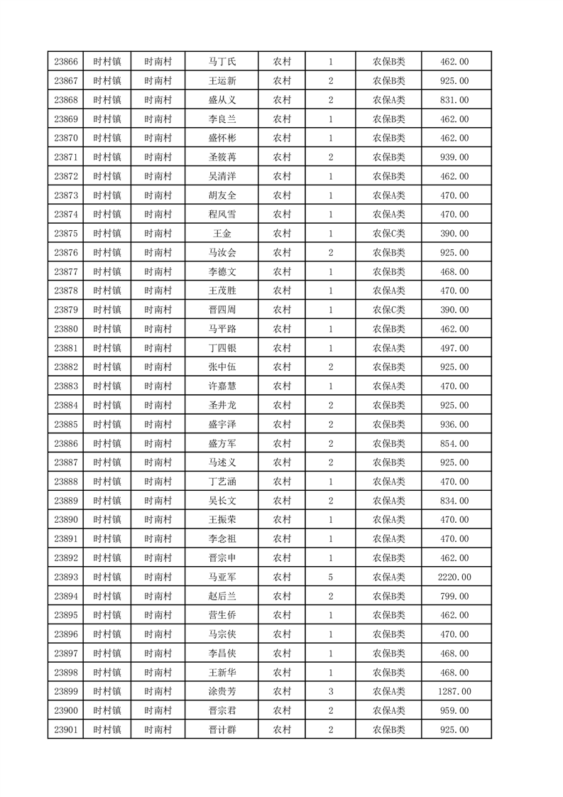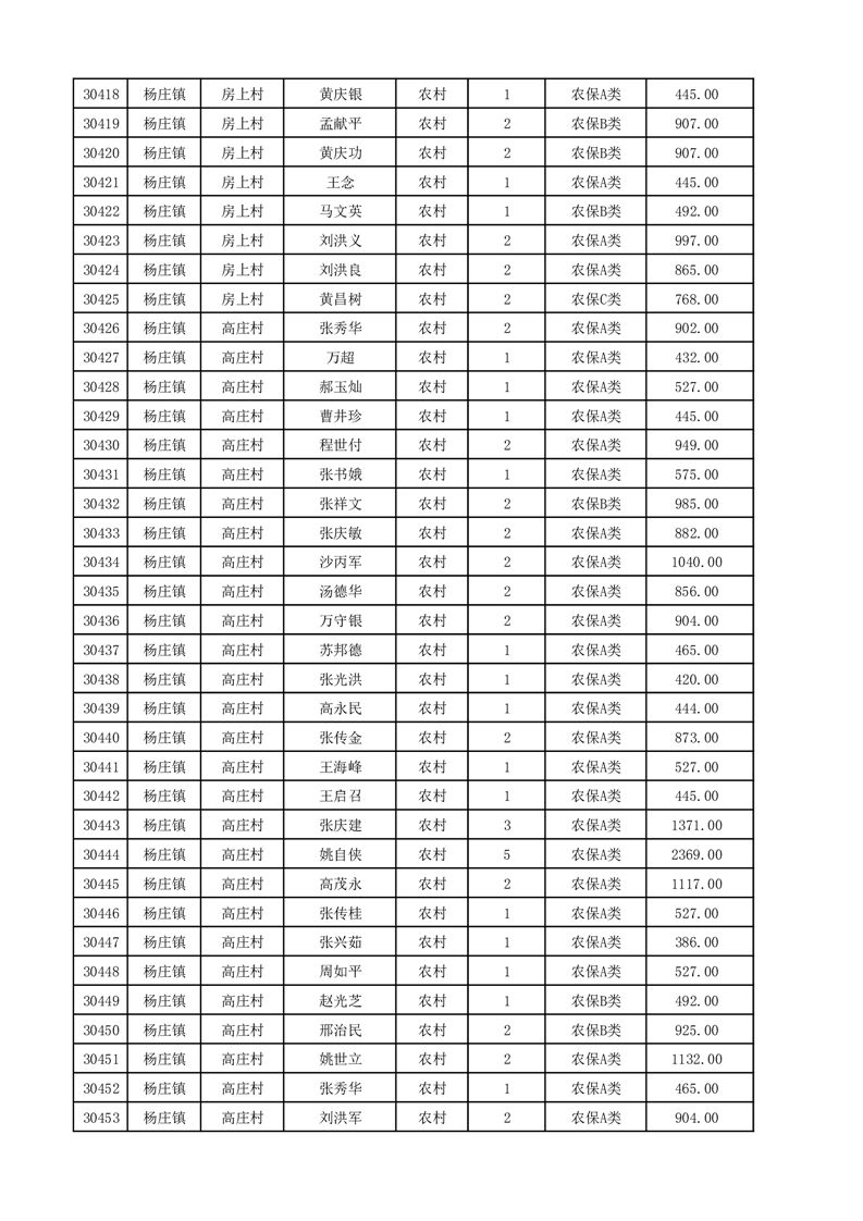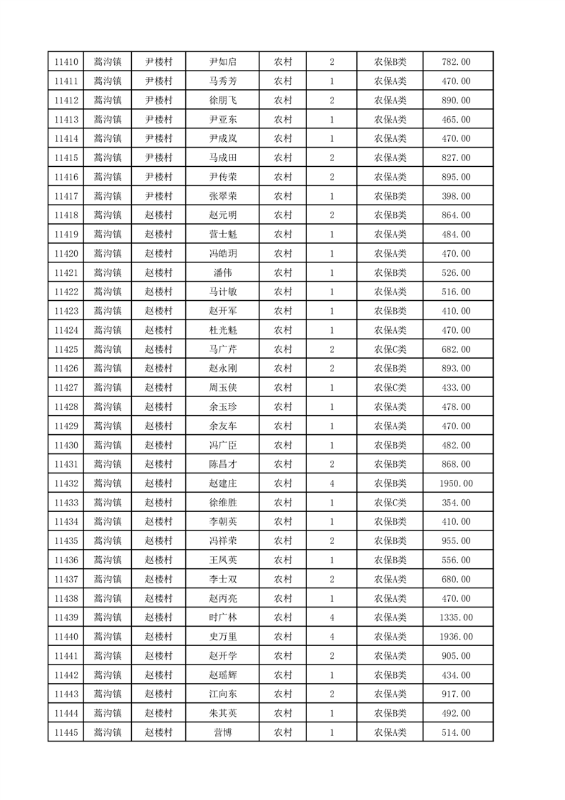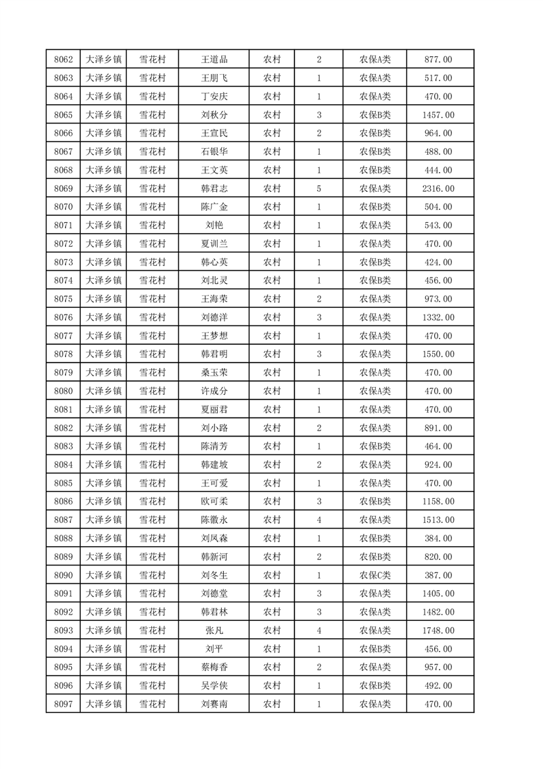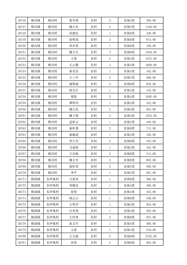 埇桥区2025年12月份农村低保花名册