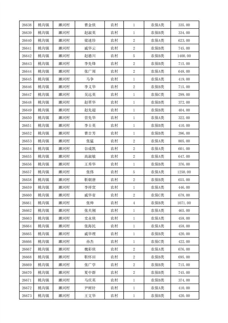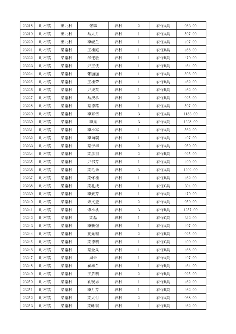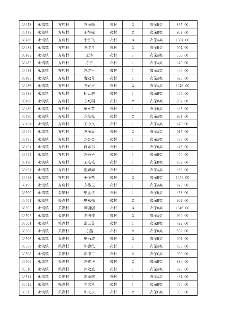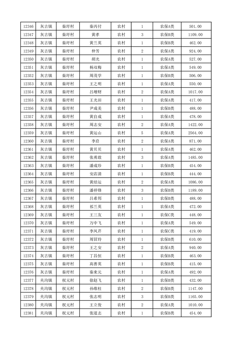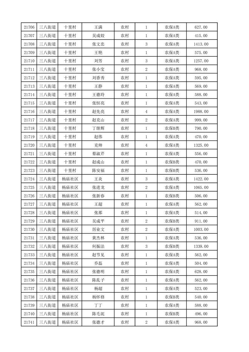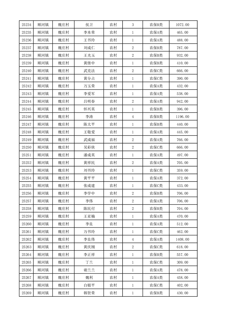埇桥区2025年12月份农村低保花名册
