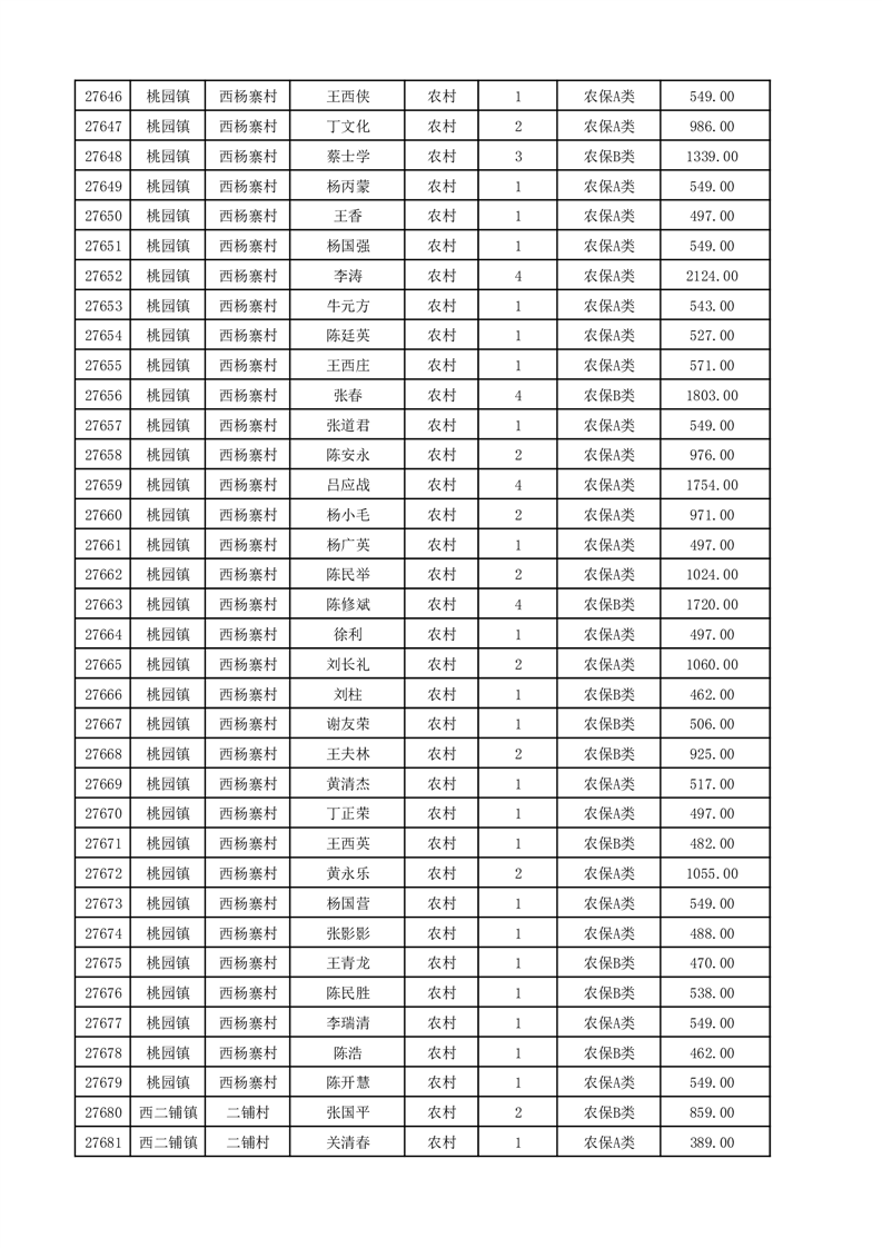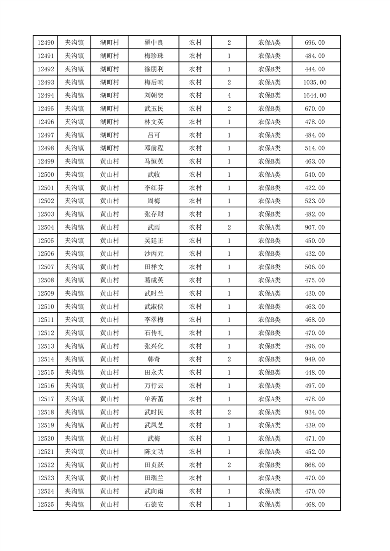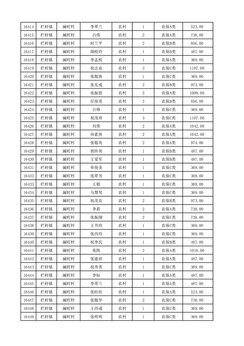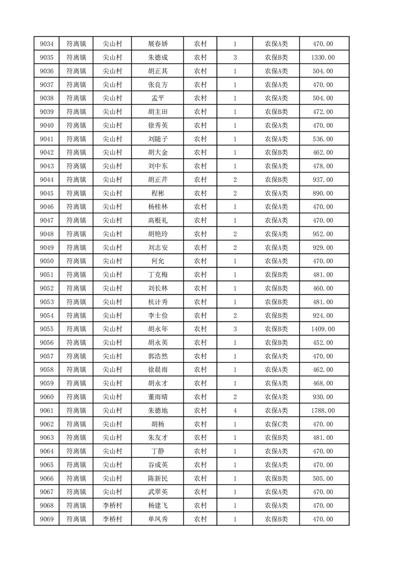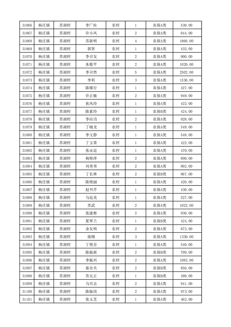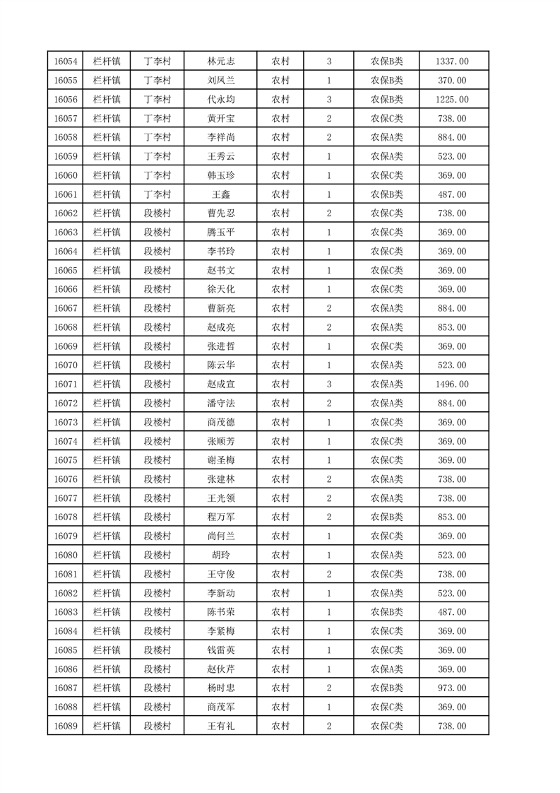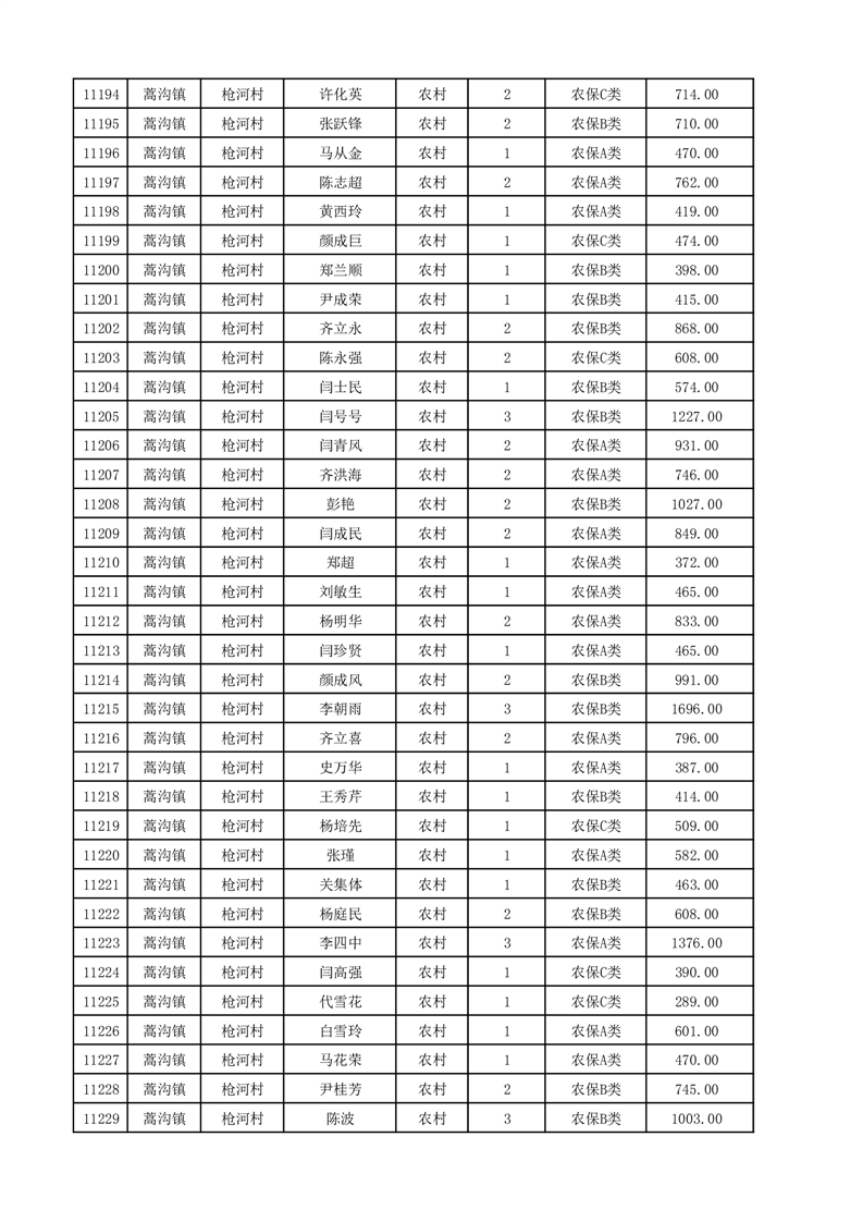 埇桥区2025年12月份农村低保花名册