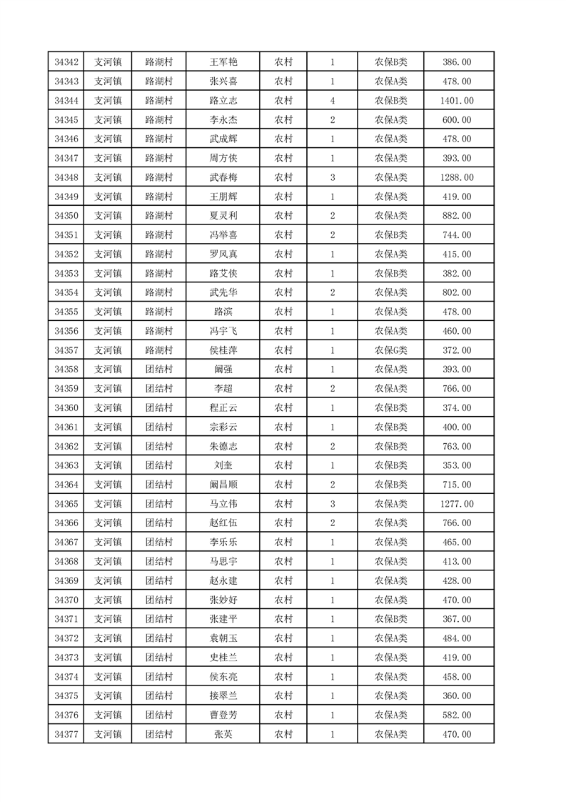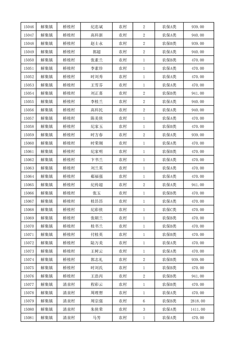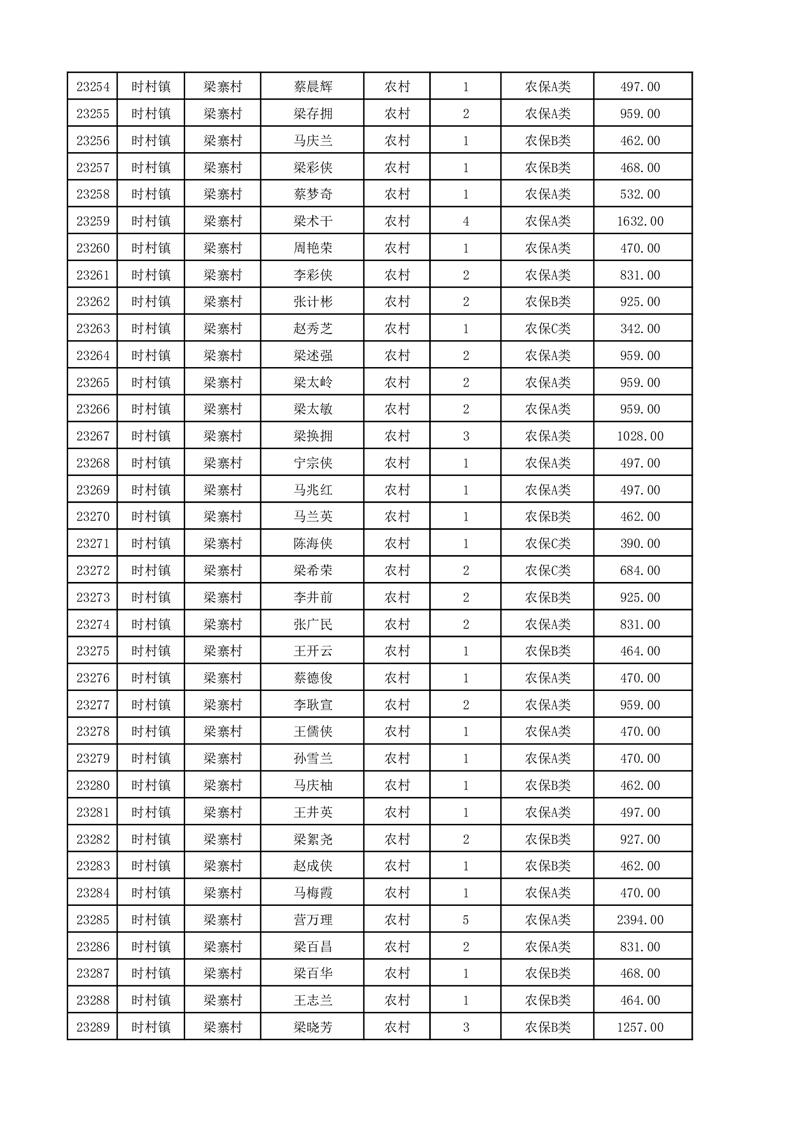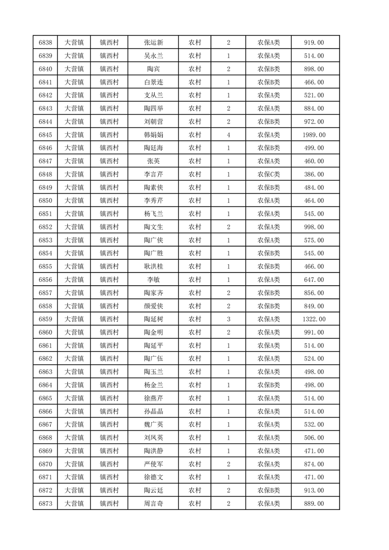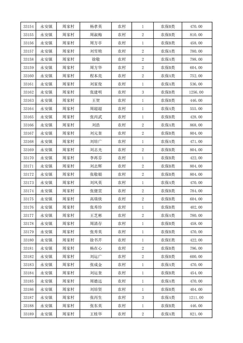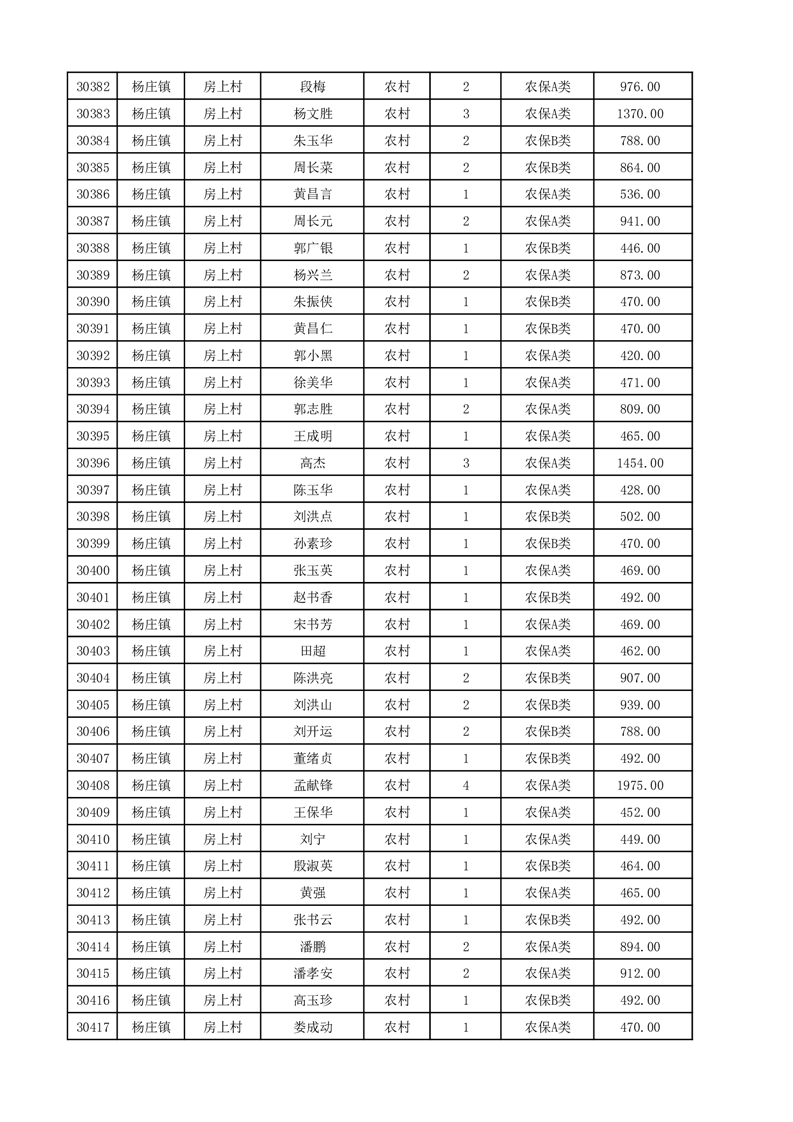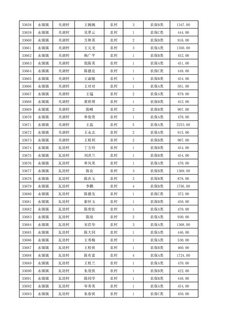 埇桥区2025年12月份农村低保花名册