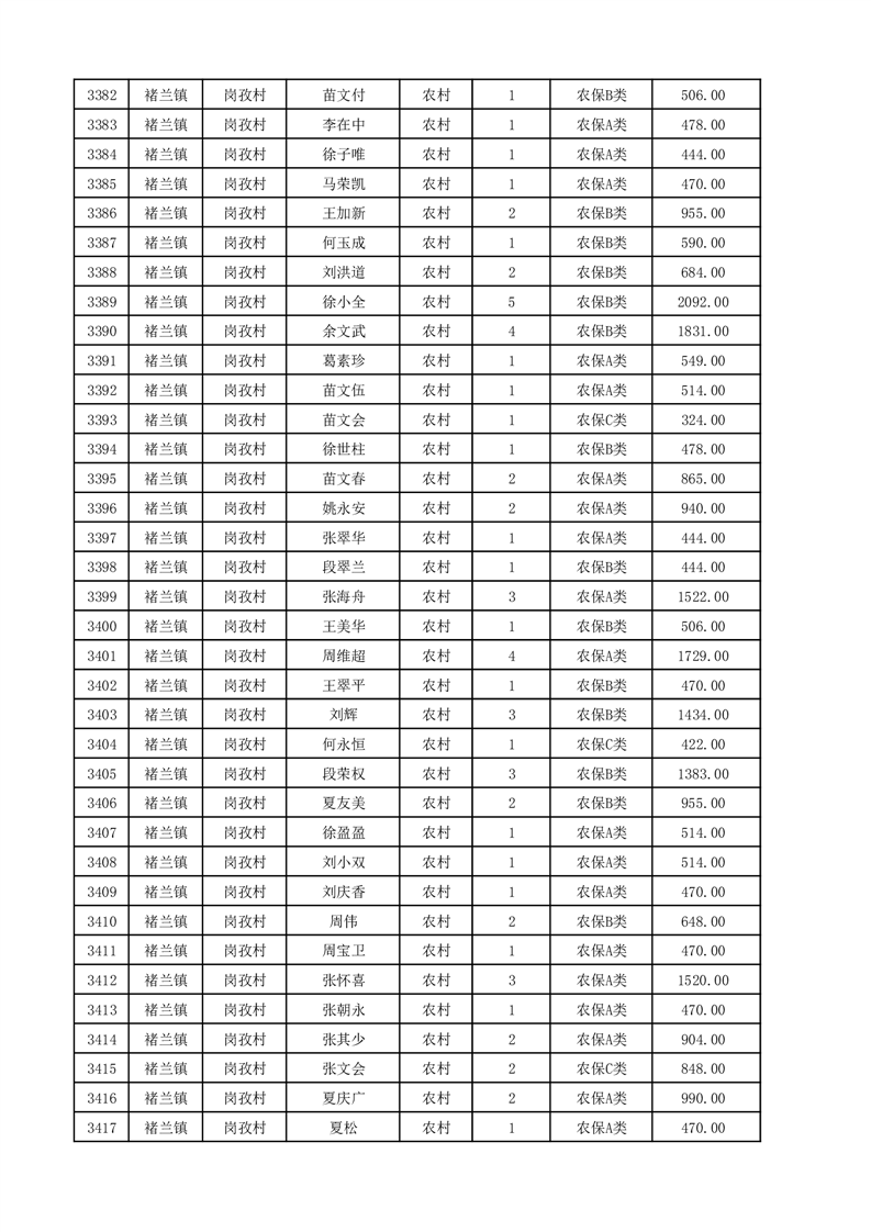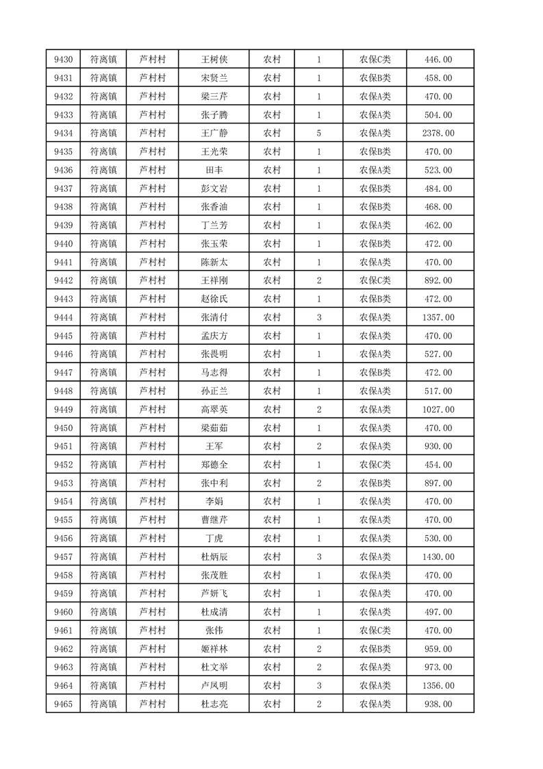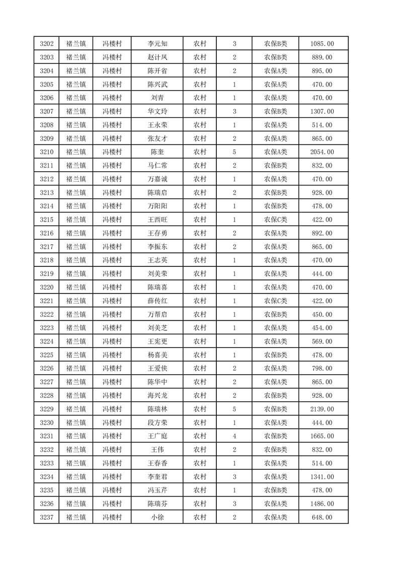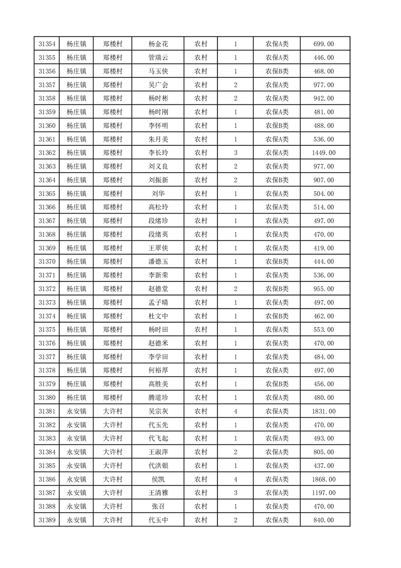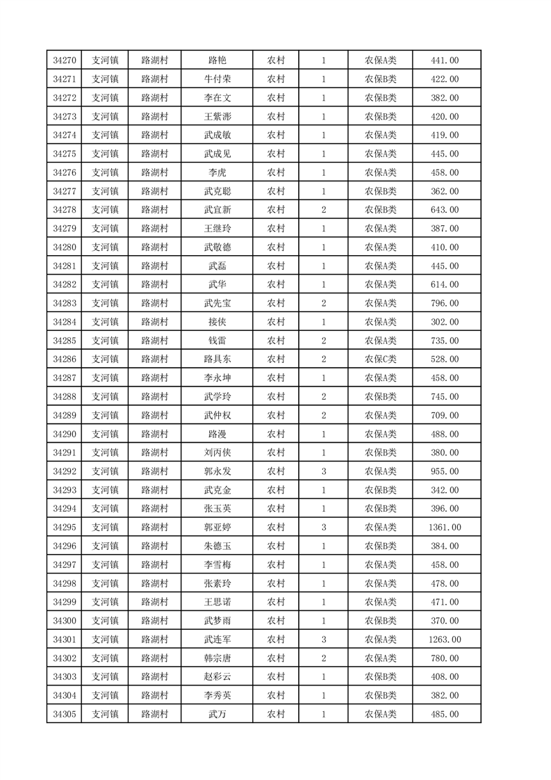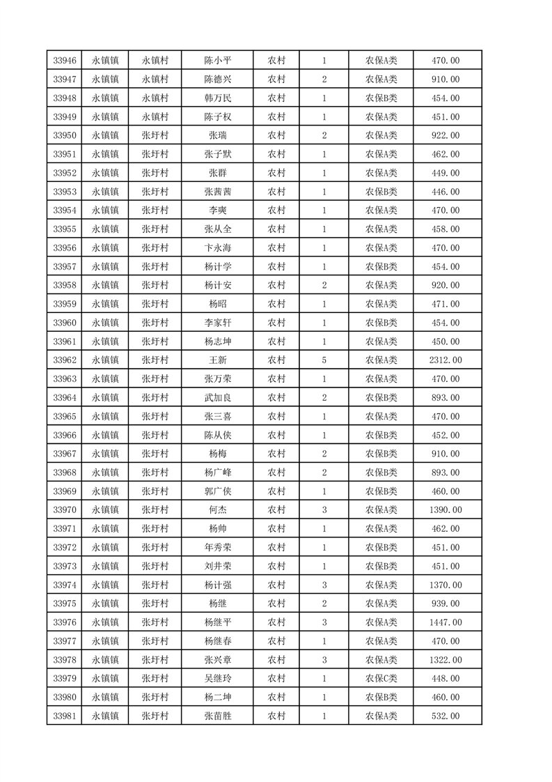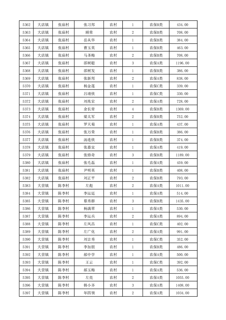 埇桥区2025年12月份农村低保花名册