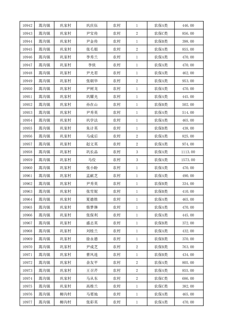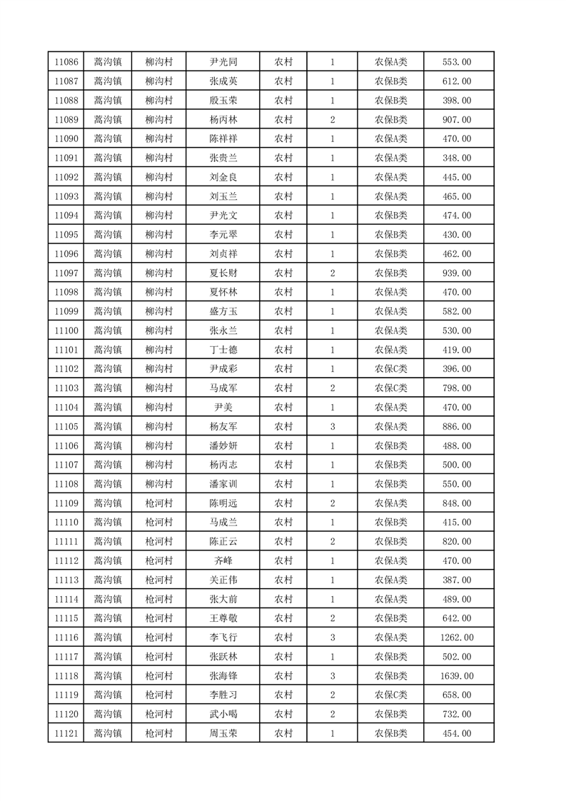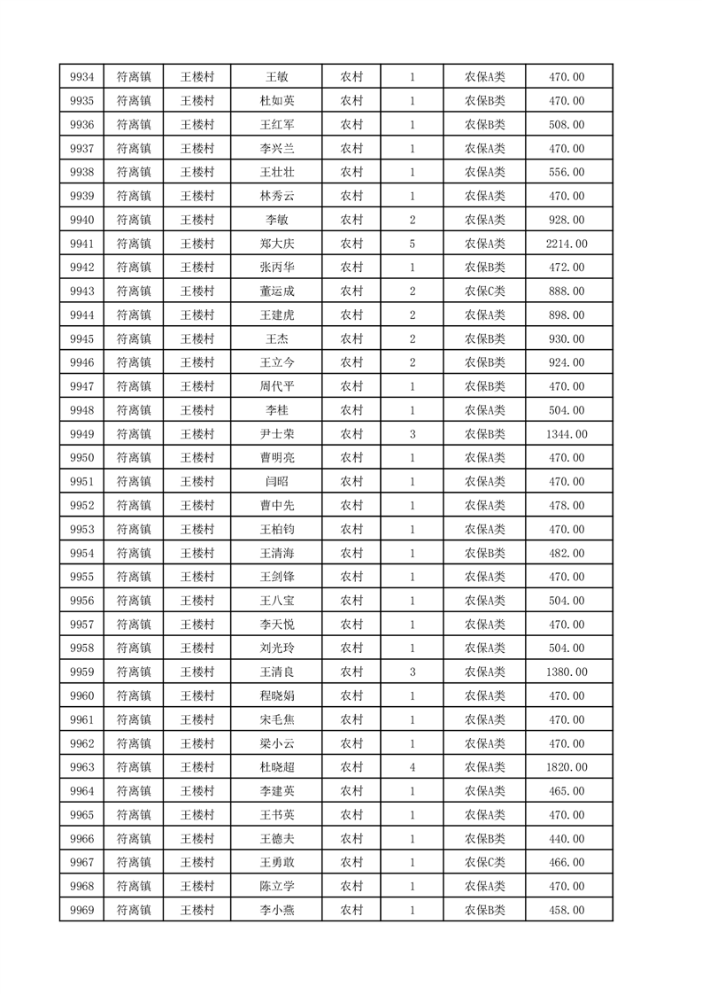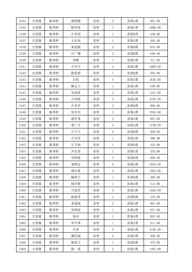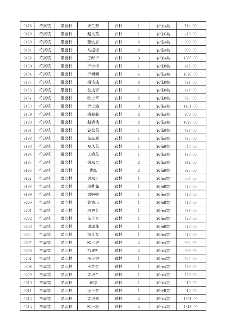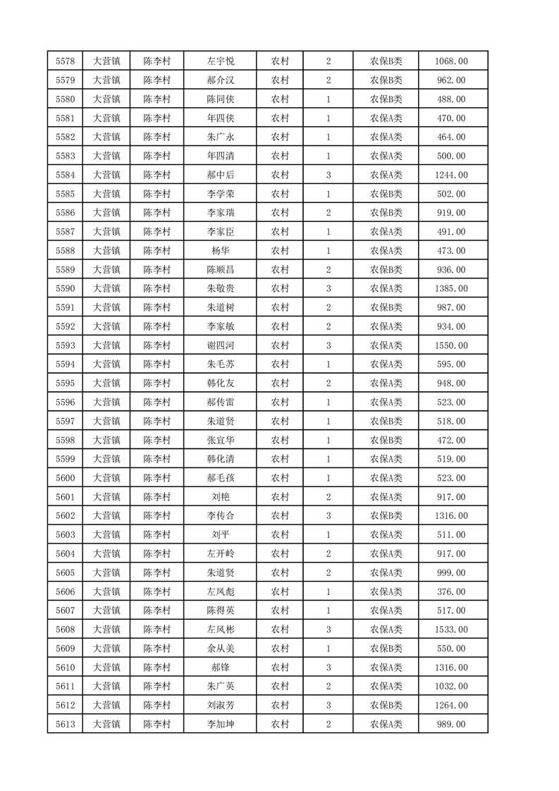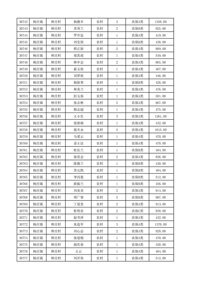 埇桥区2025年12月份农村低保花名册