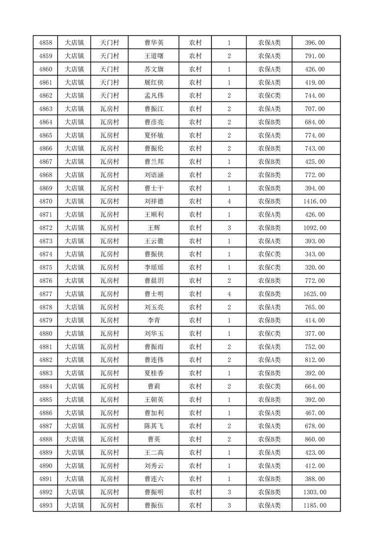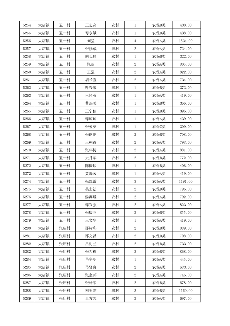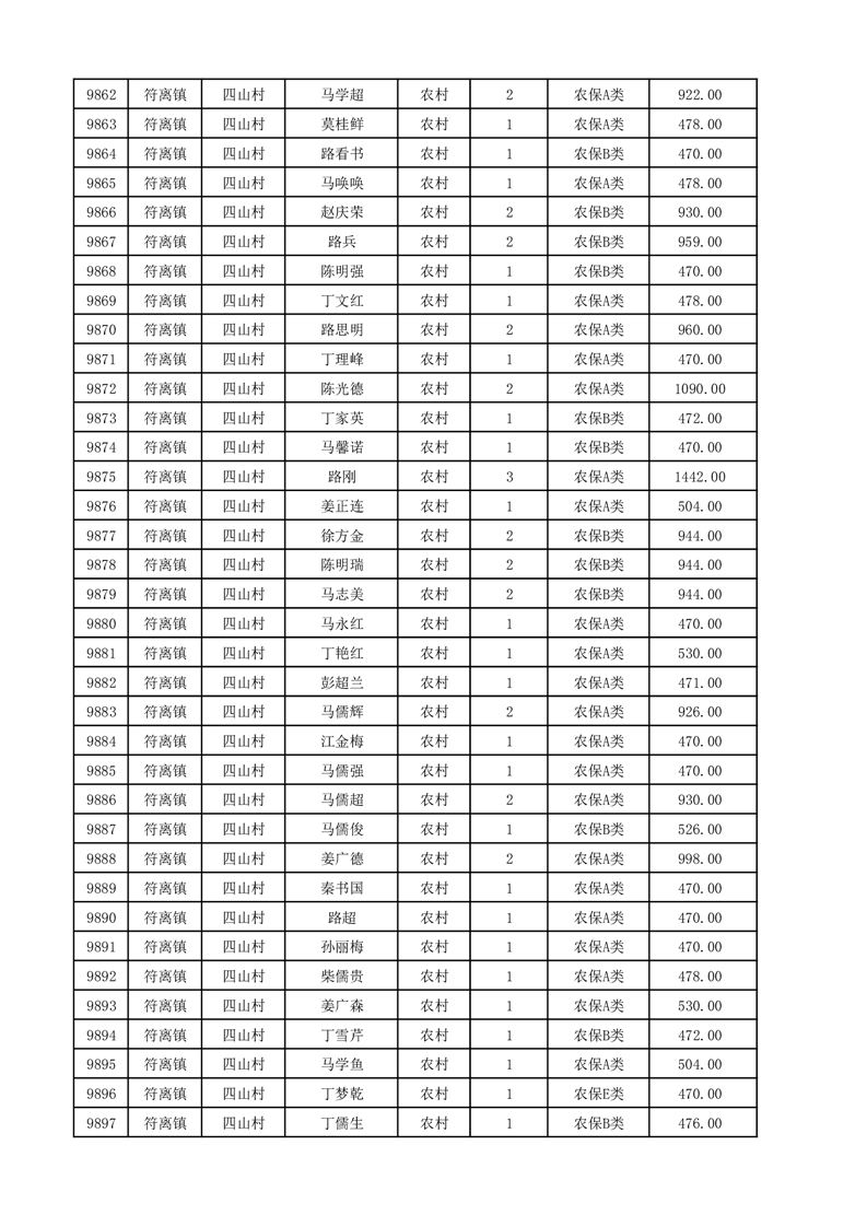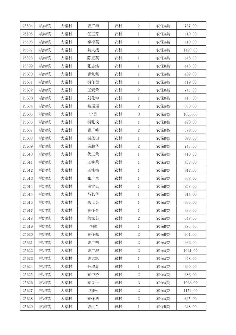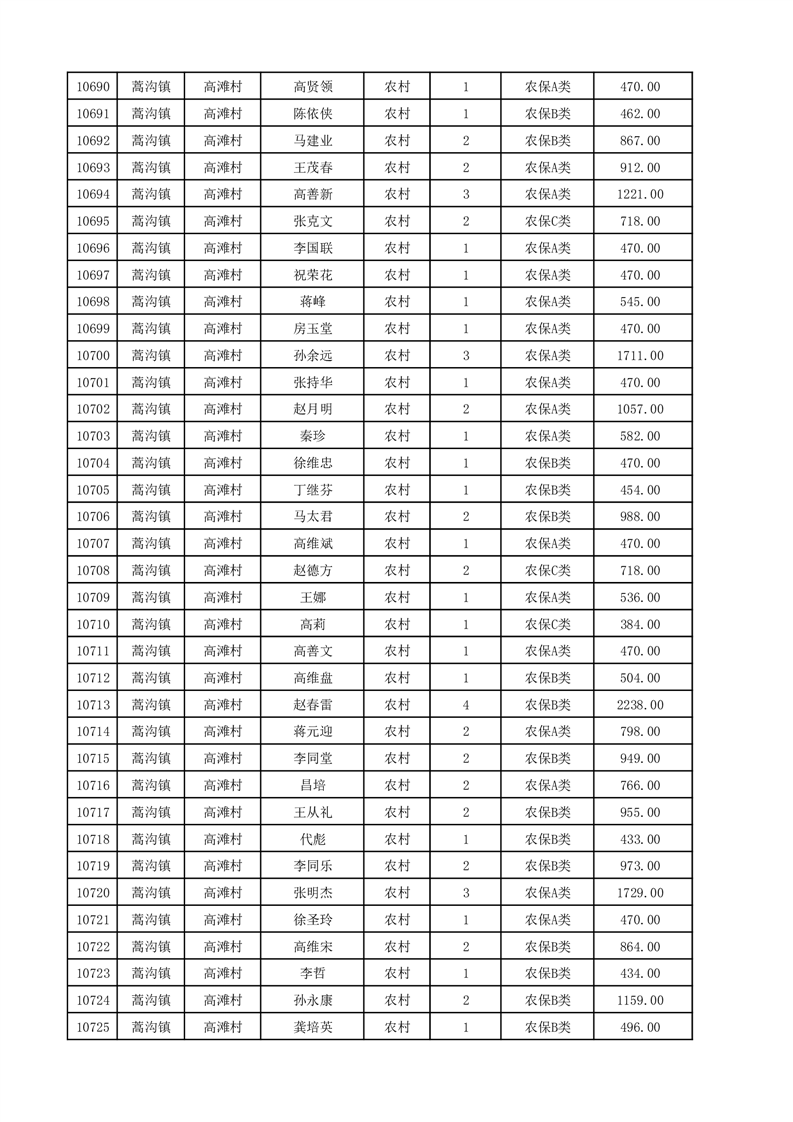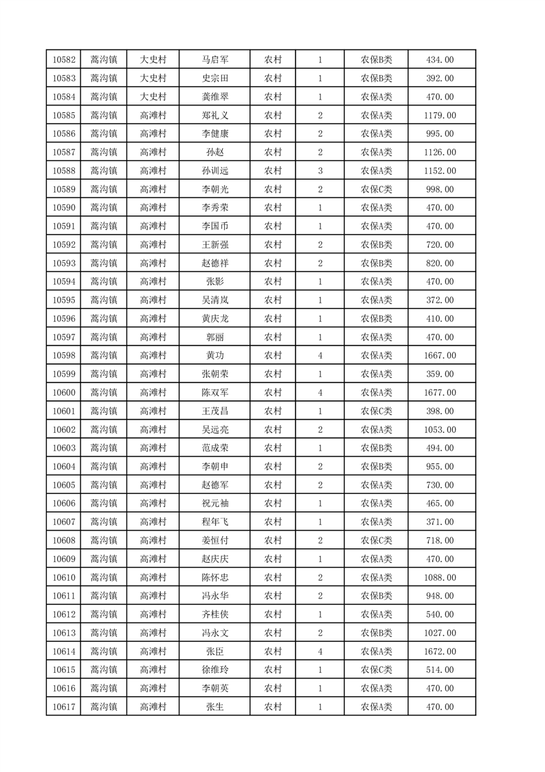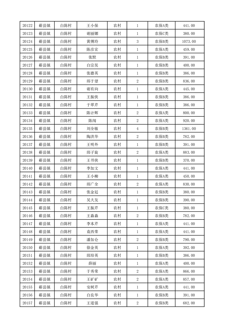 埇桥区2025年12月份农村低保花名册