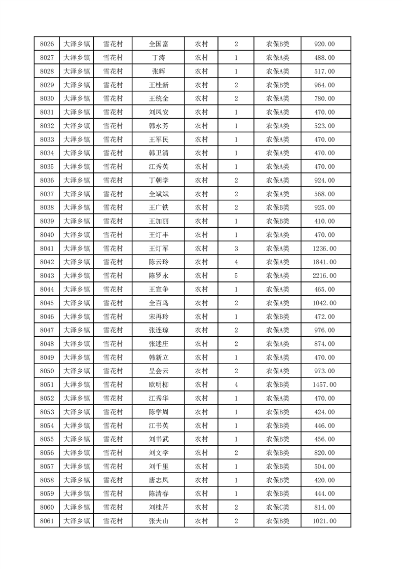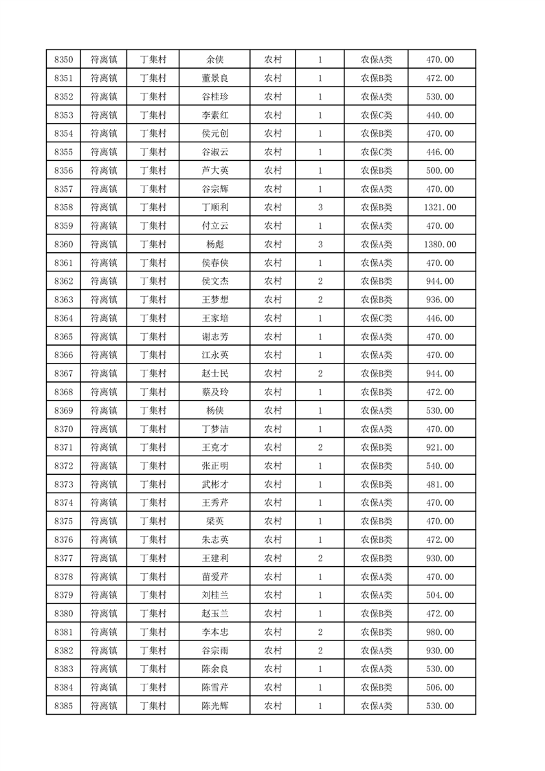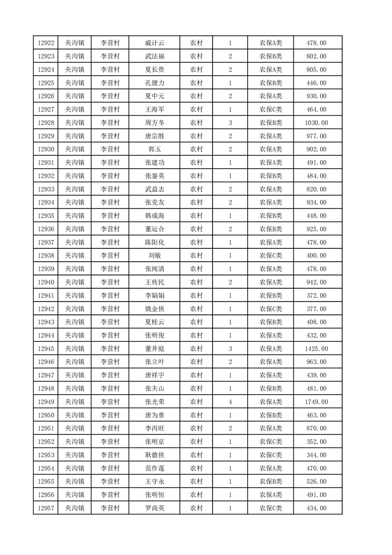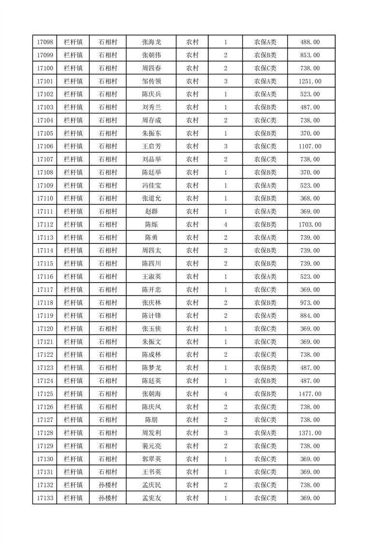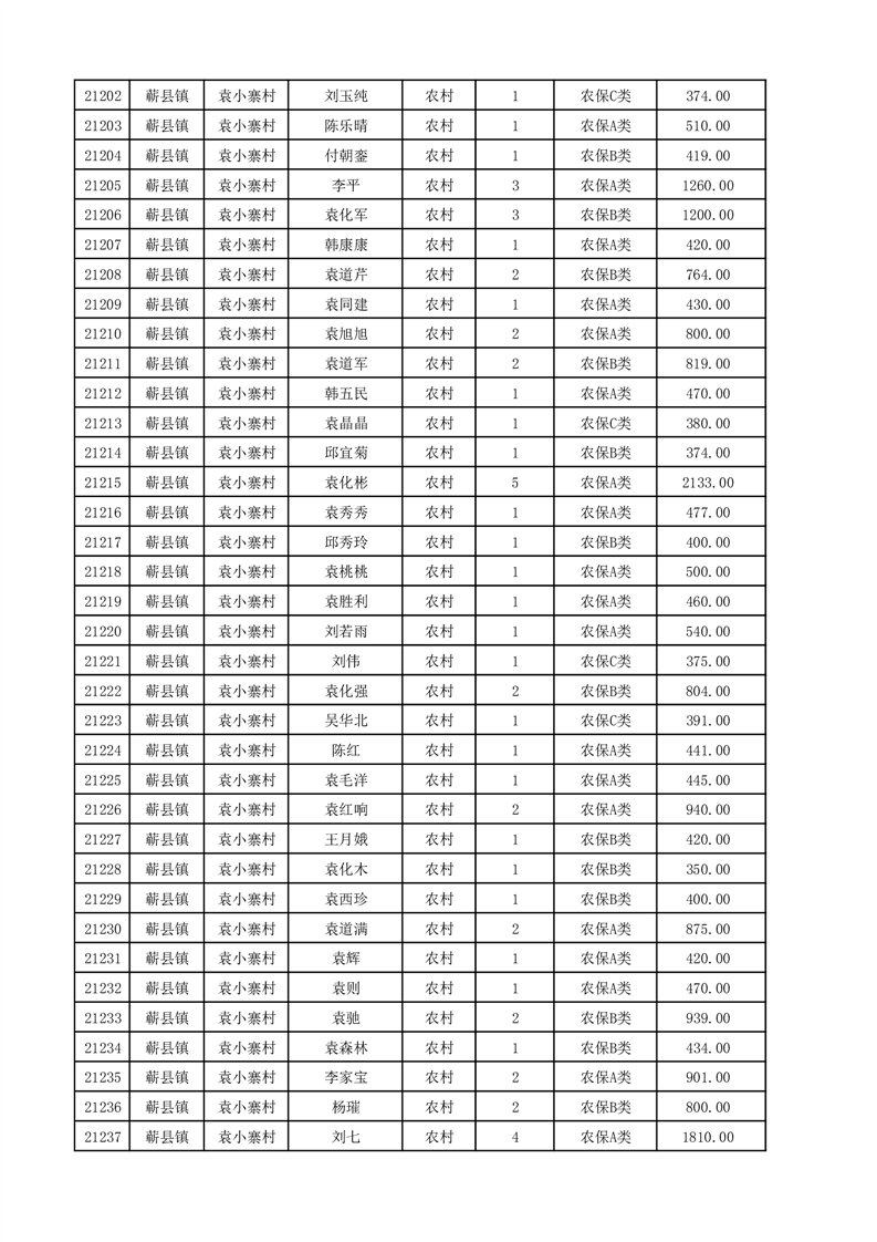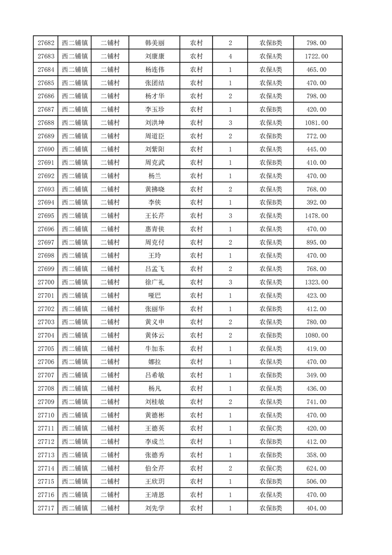 埇桥区2025年12月份农村低保花名册